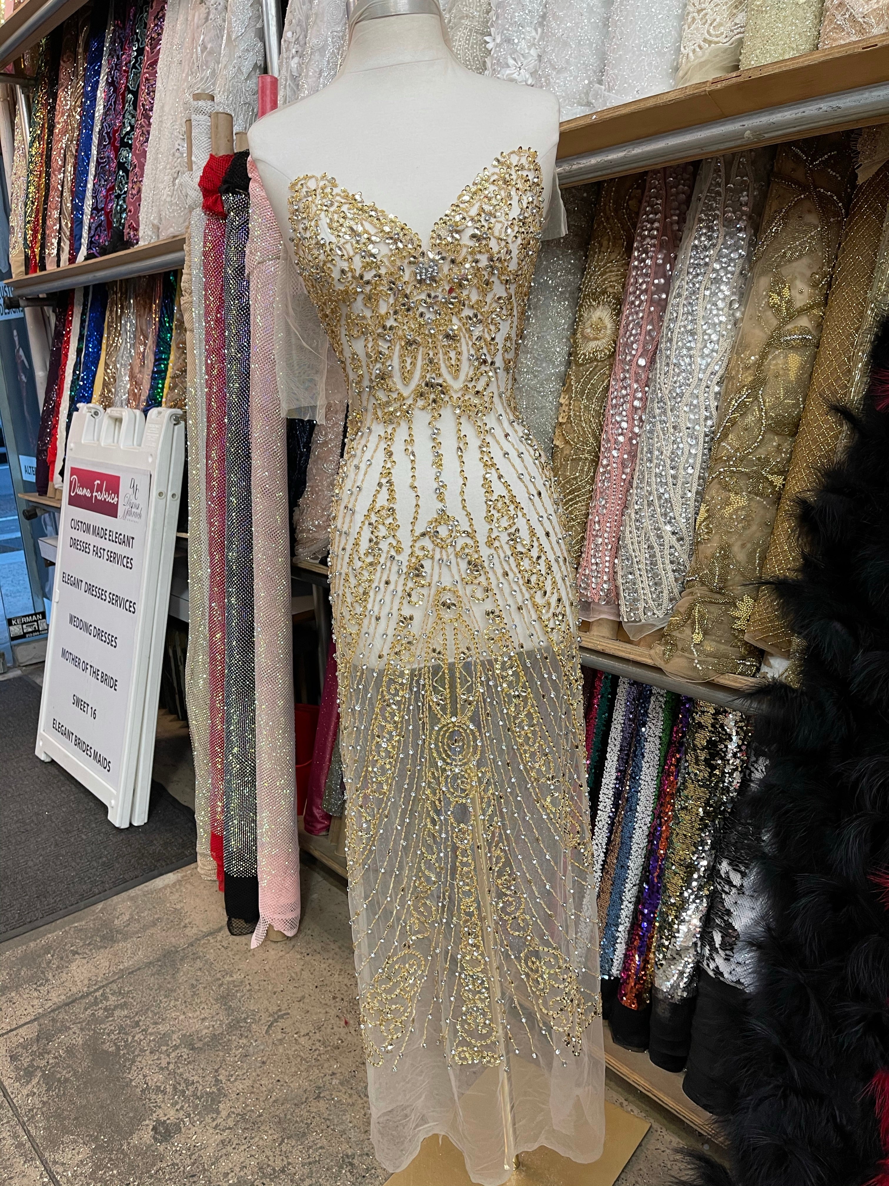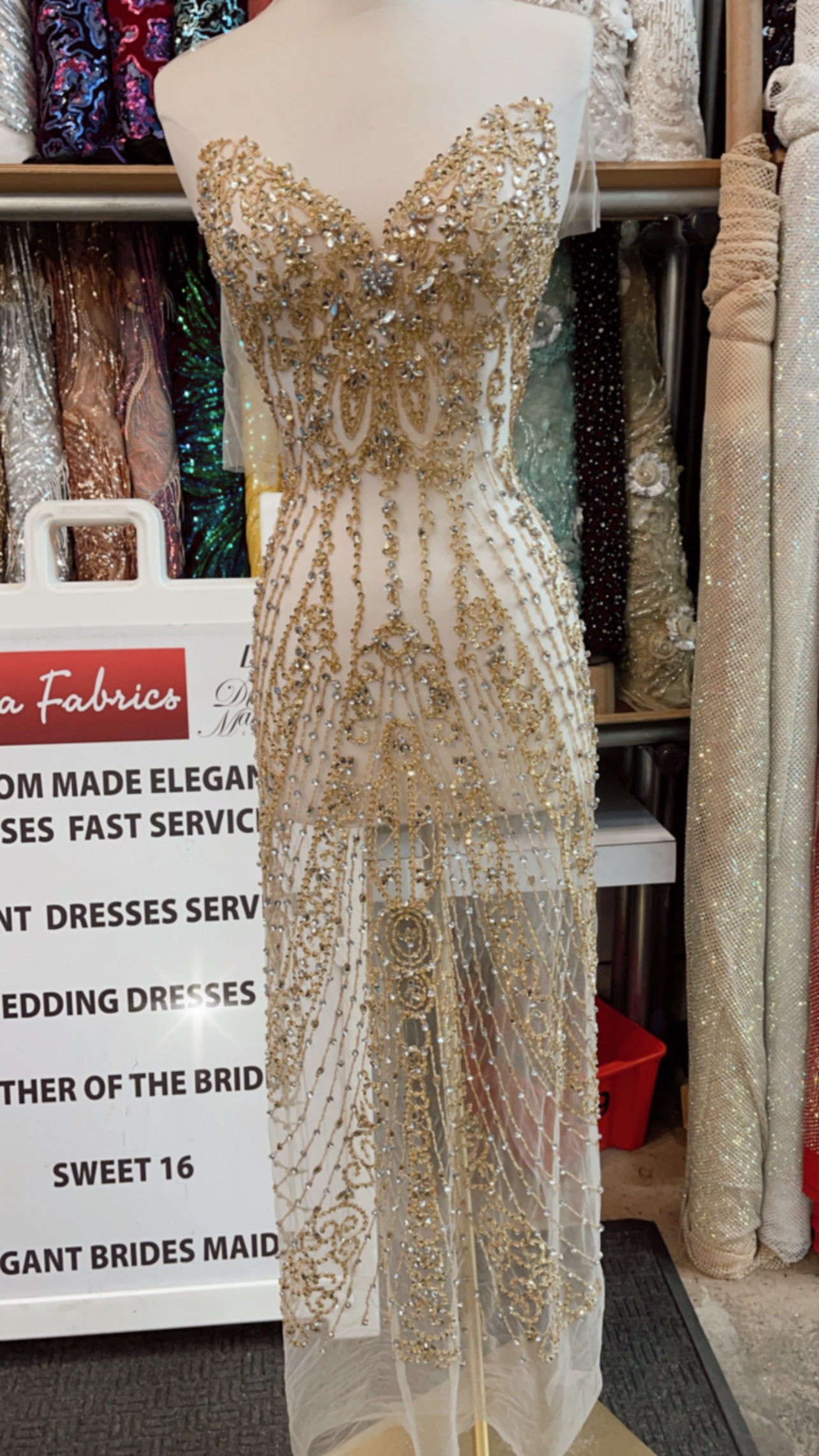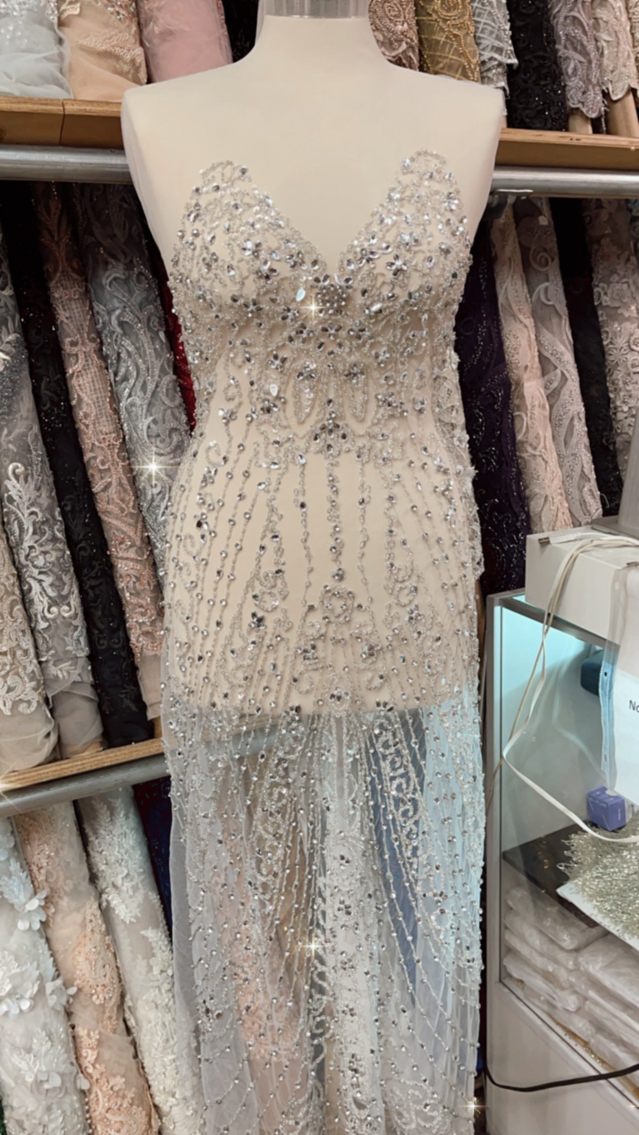 A whole front panel shaped a strapless sweetheart. With all stones embroidered and hand beaded and stoned all hand made all by hand. Made only @dianafabrics