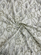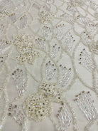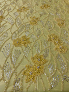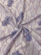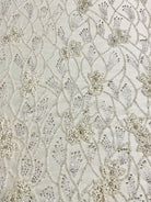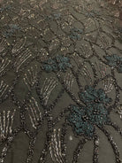Beaded wavy design on mesh with 3D flowers 54" wide