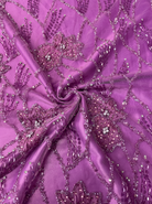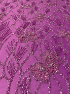 Hand Beaded Net with 3D Flowers