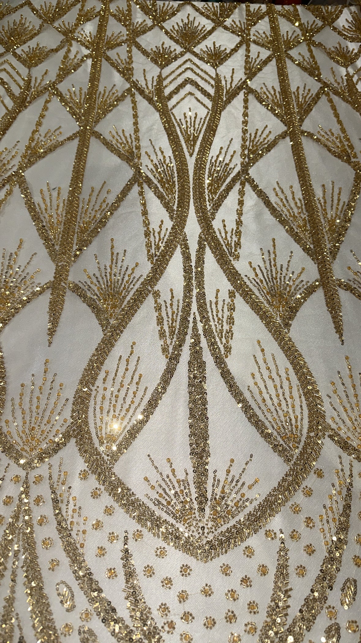 "Exquisitely hand-beaded lace, this lace features intricate detailing that adds a touch of luxury and elegance to any design."