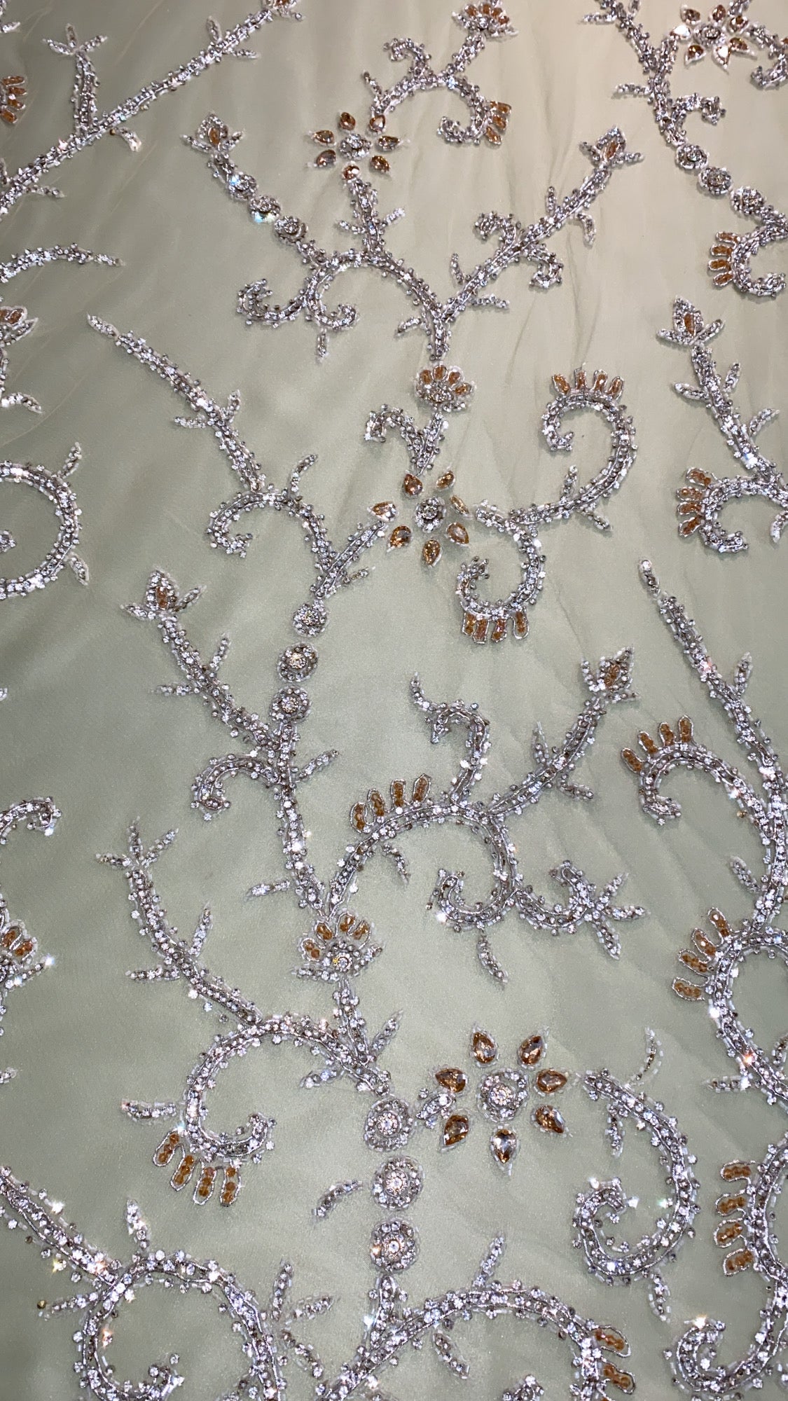Alice Hand Beaded Front and Back Applique Dress Panel with Sleeve