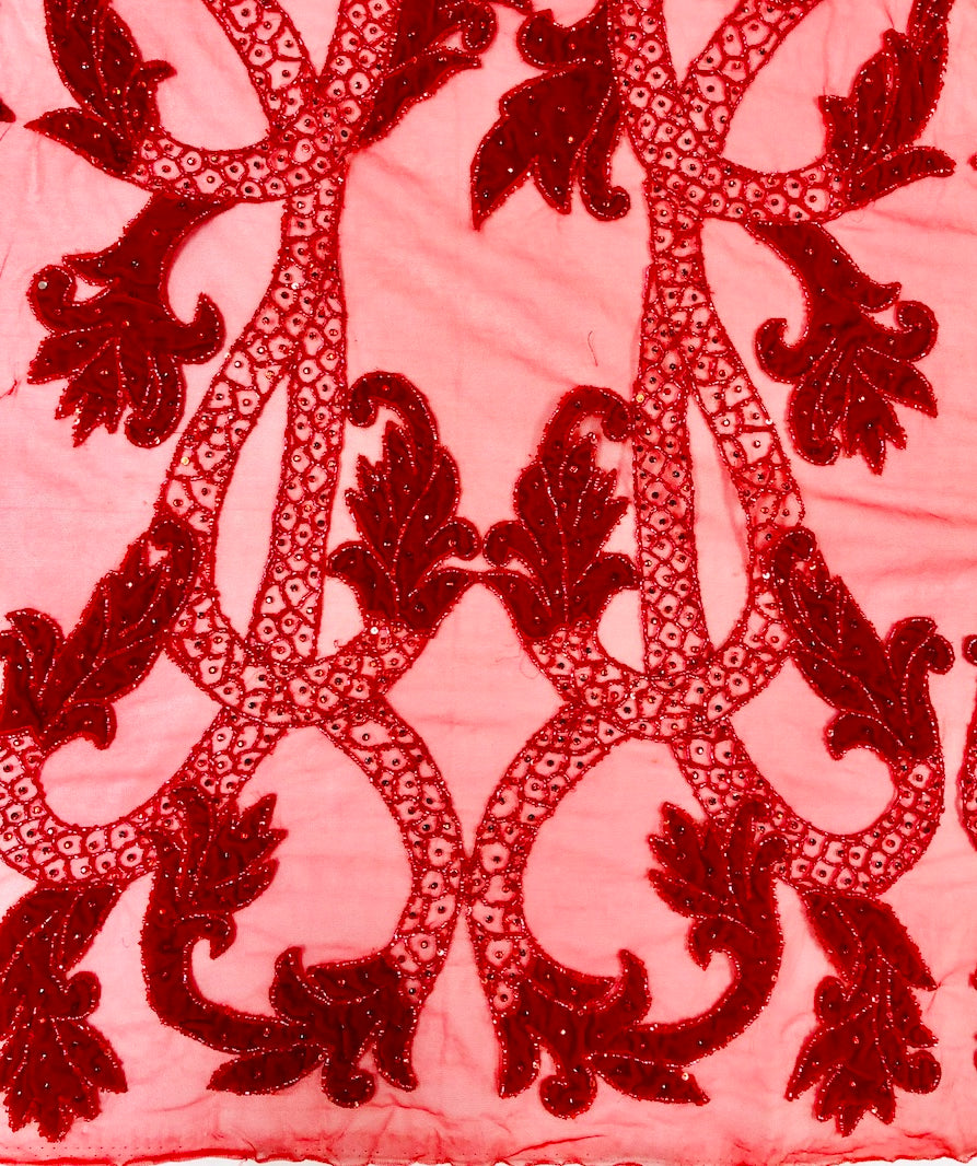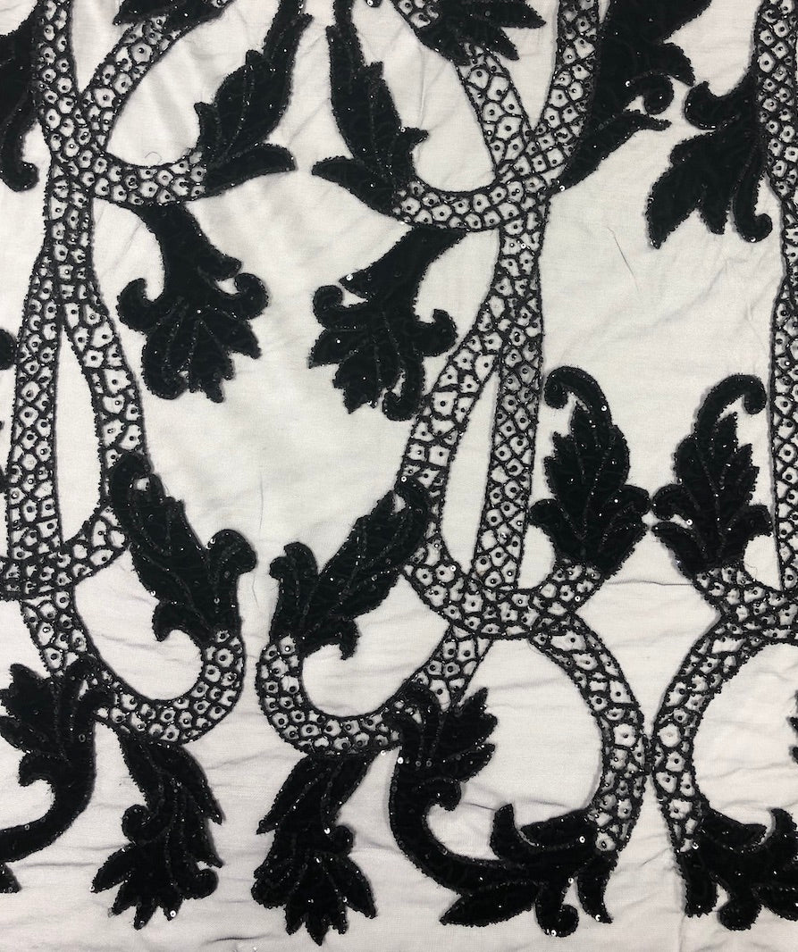 Two tone hand beaded lace