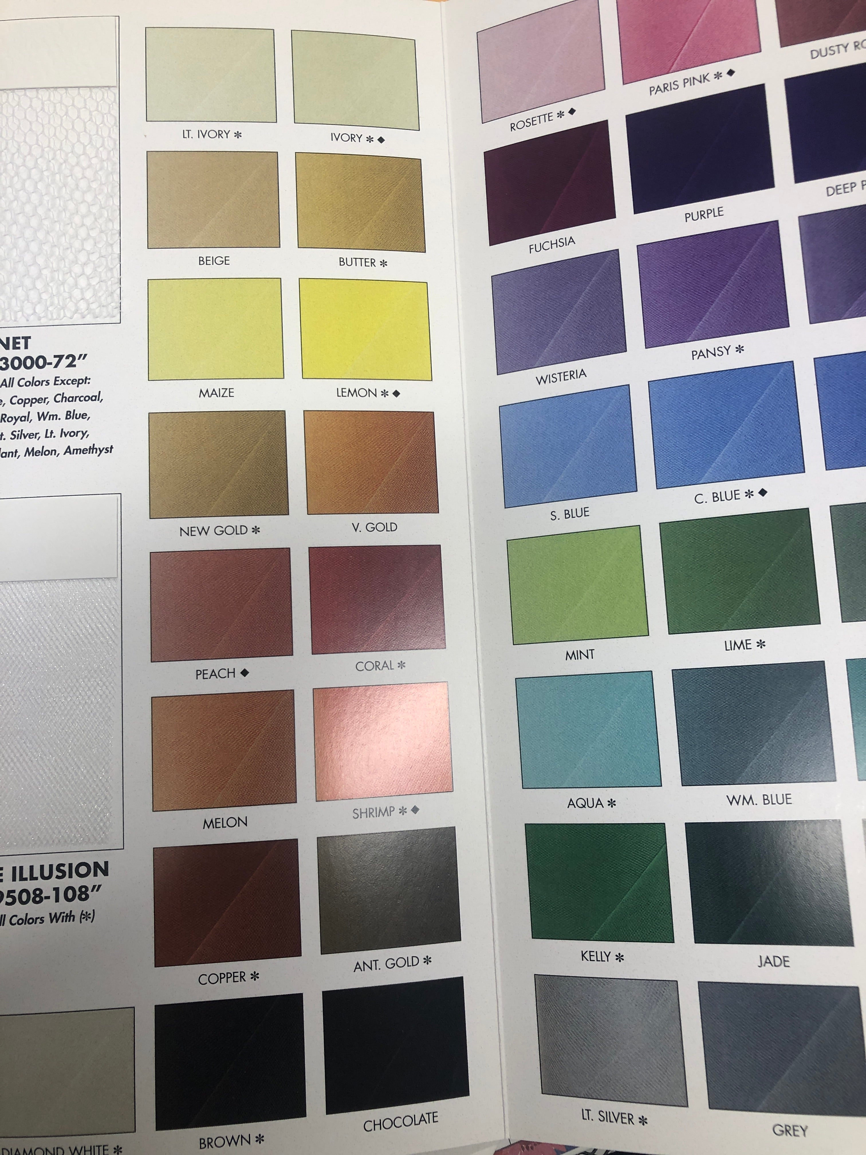 Tulle by roll the roll is 50 yard long by 108” wide