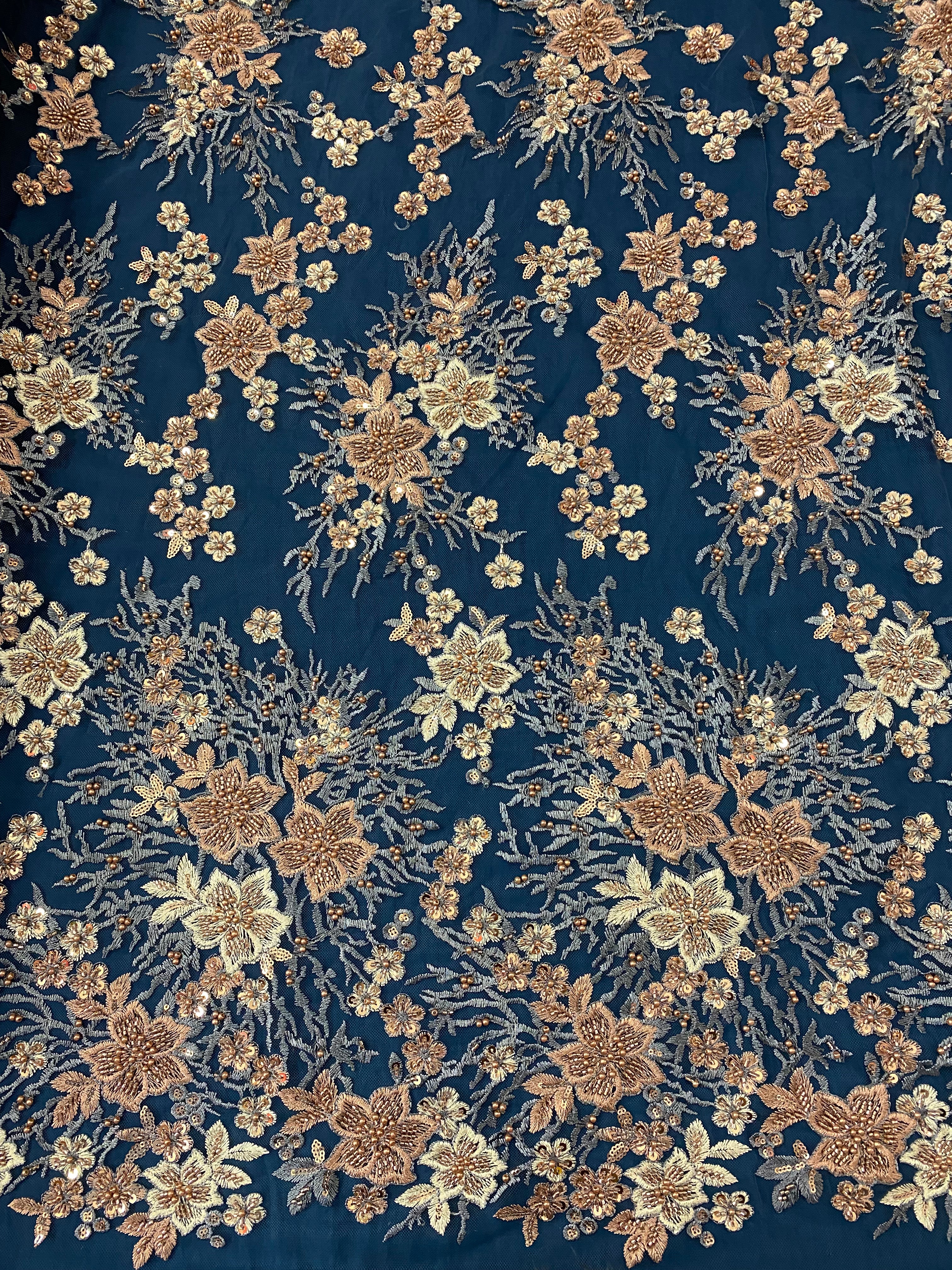 Beaded Sequins Flowers Lace