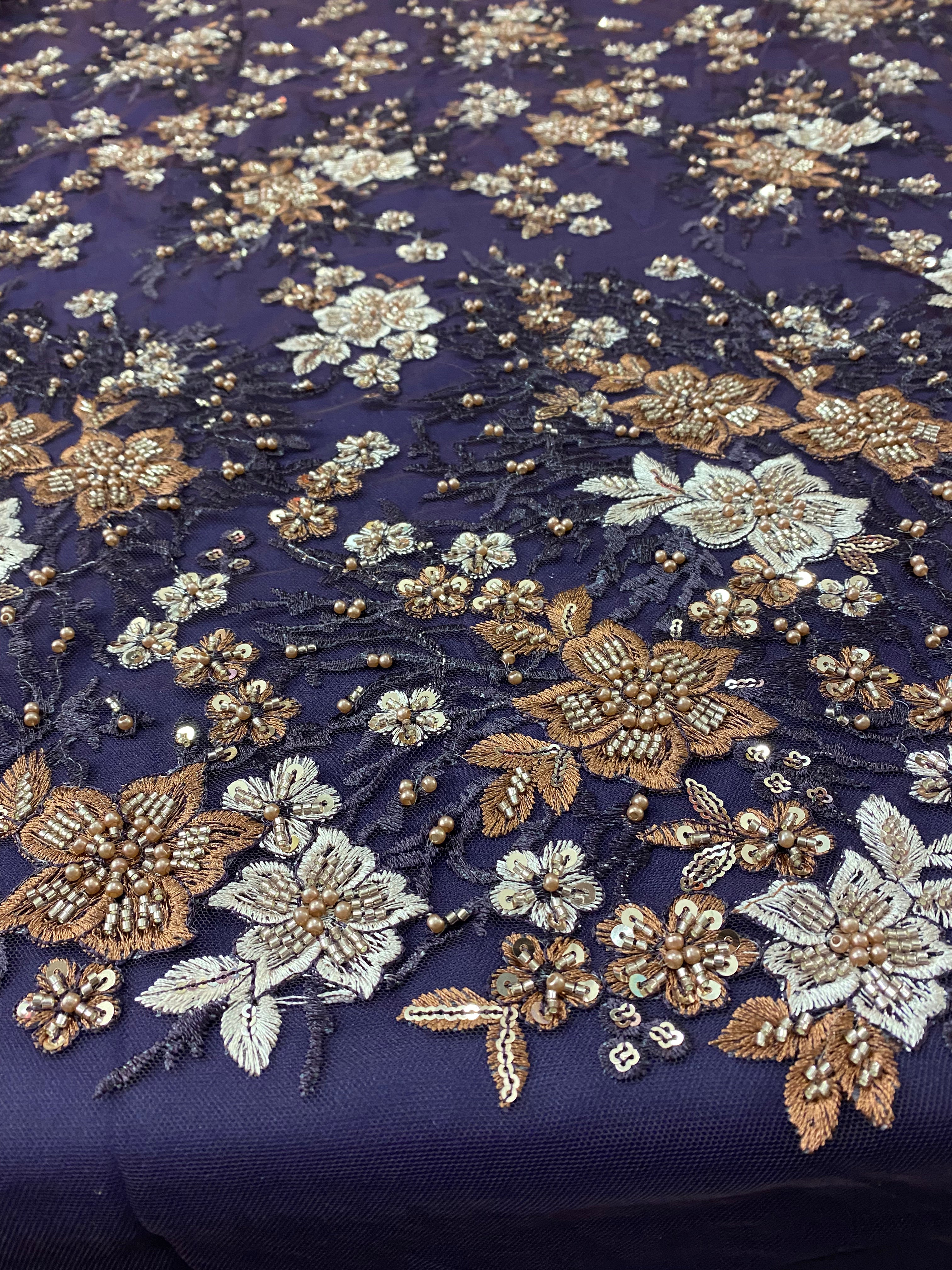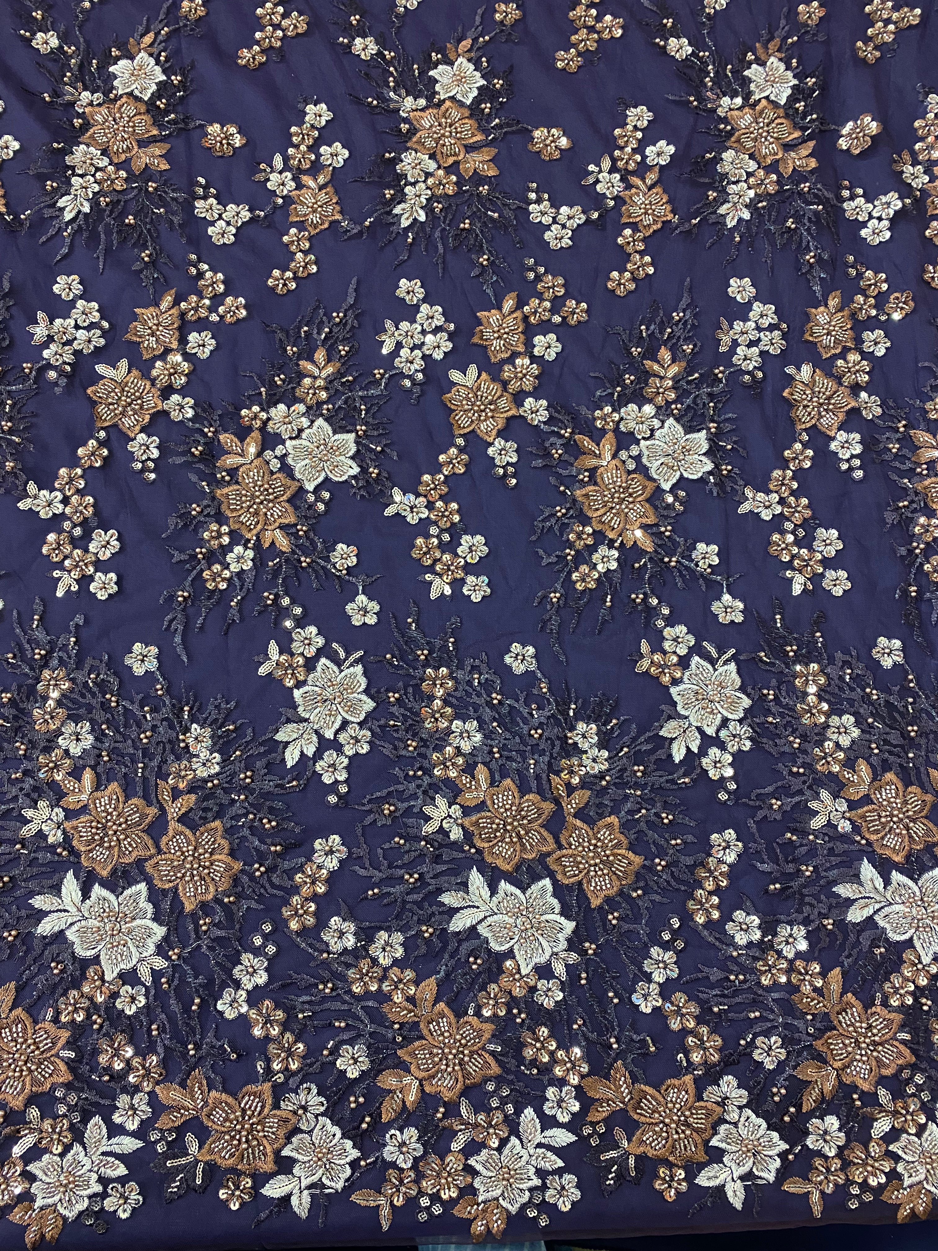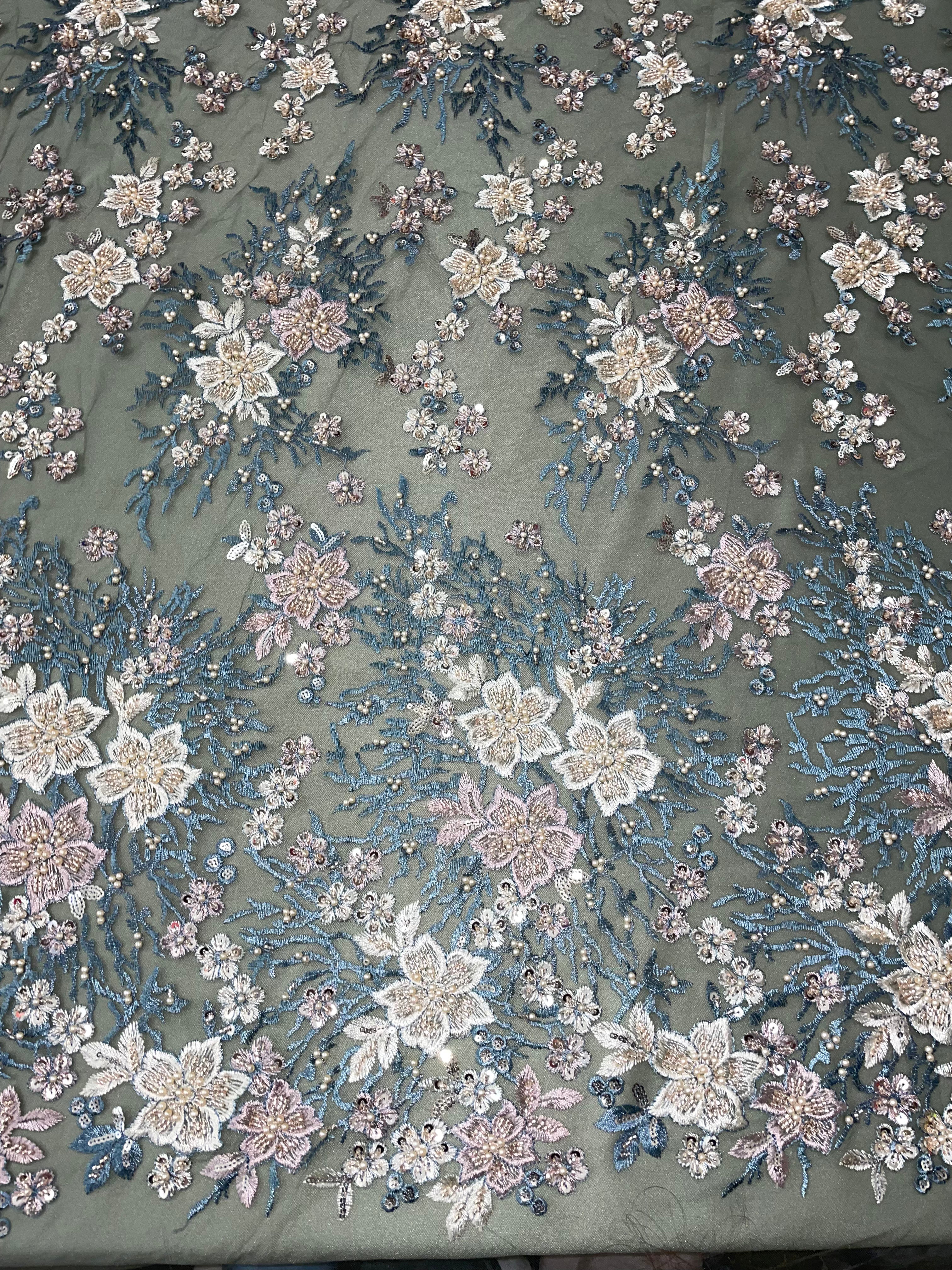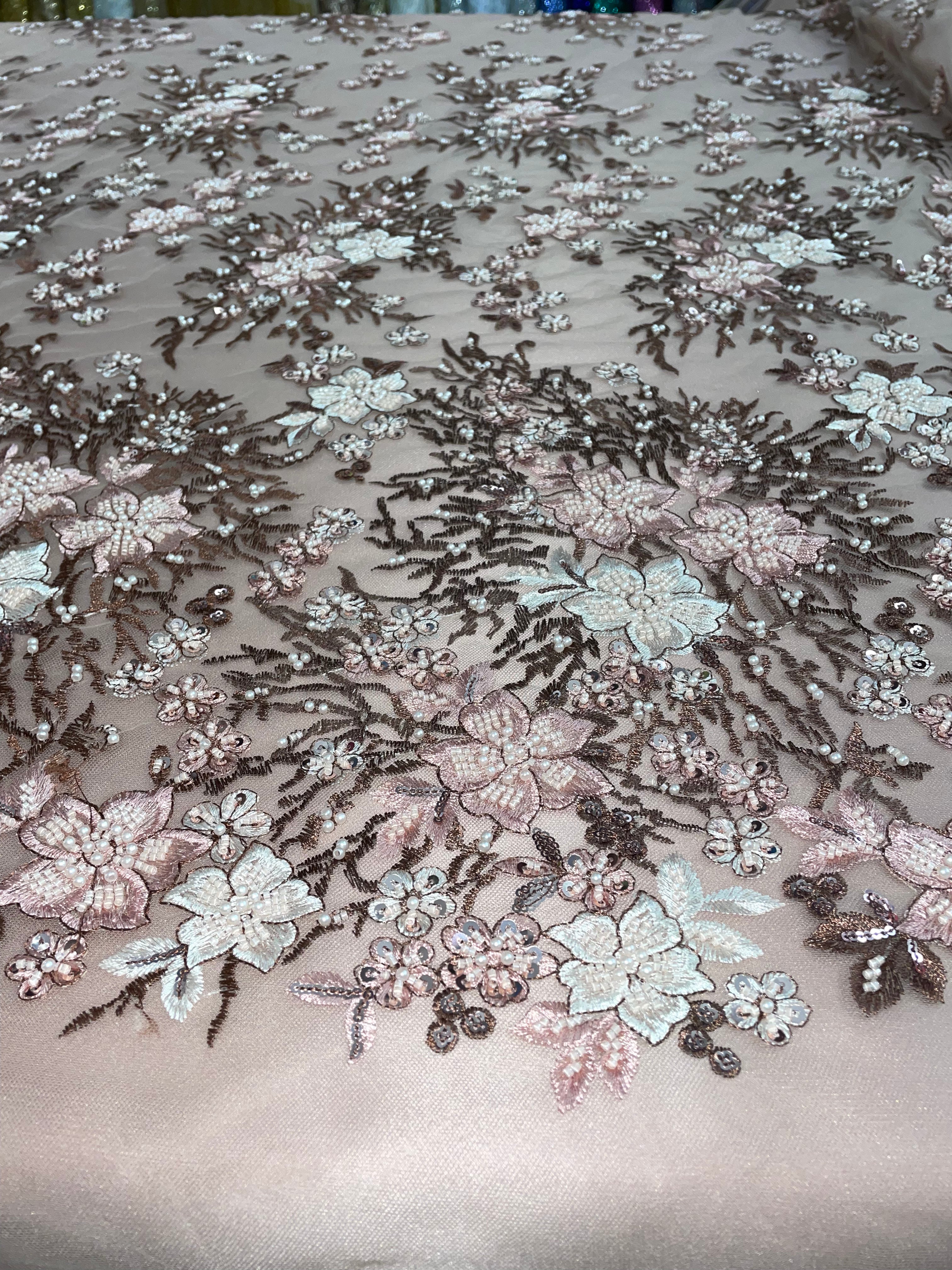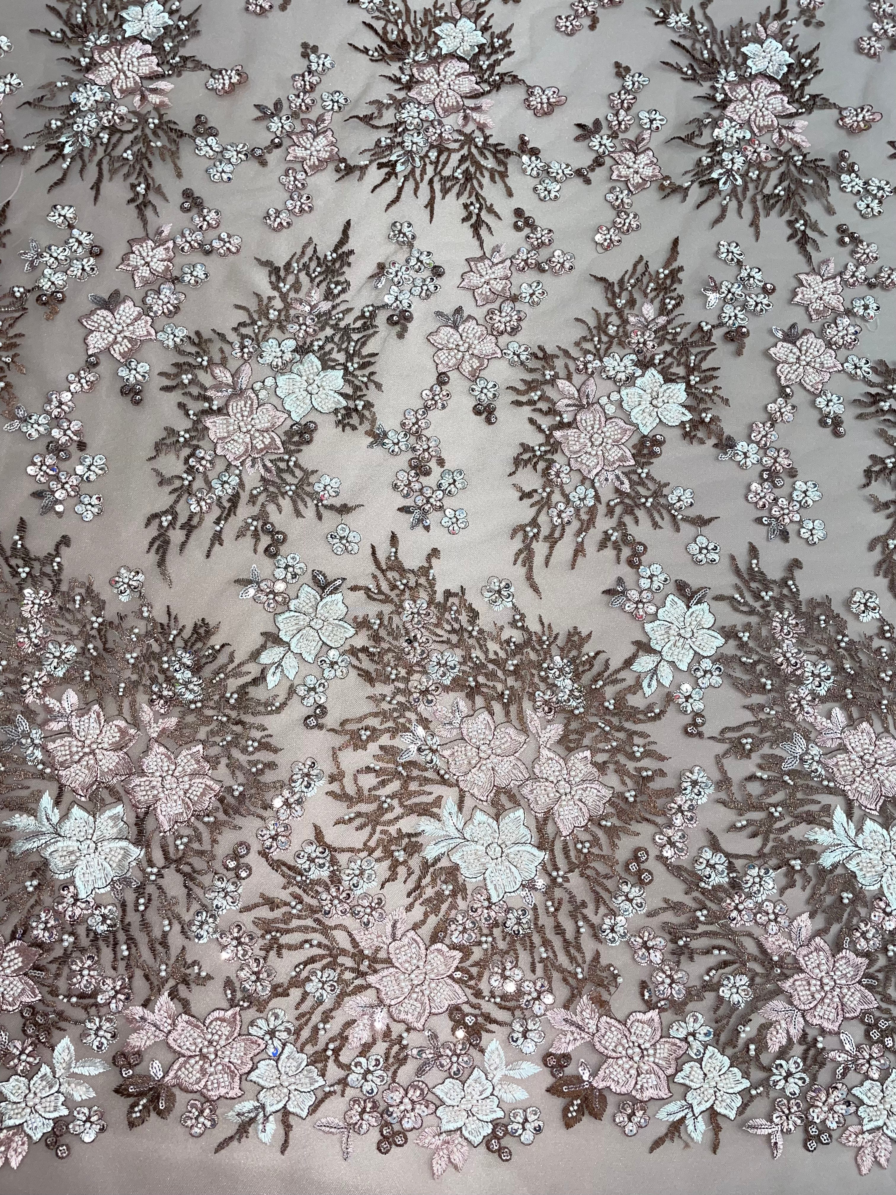 Flowers Pearls - Beaded Fabric