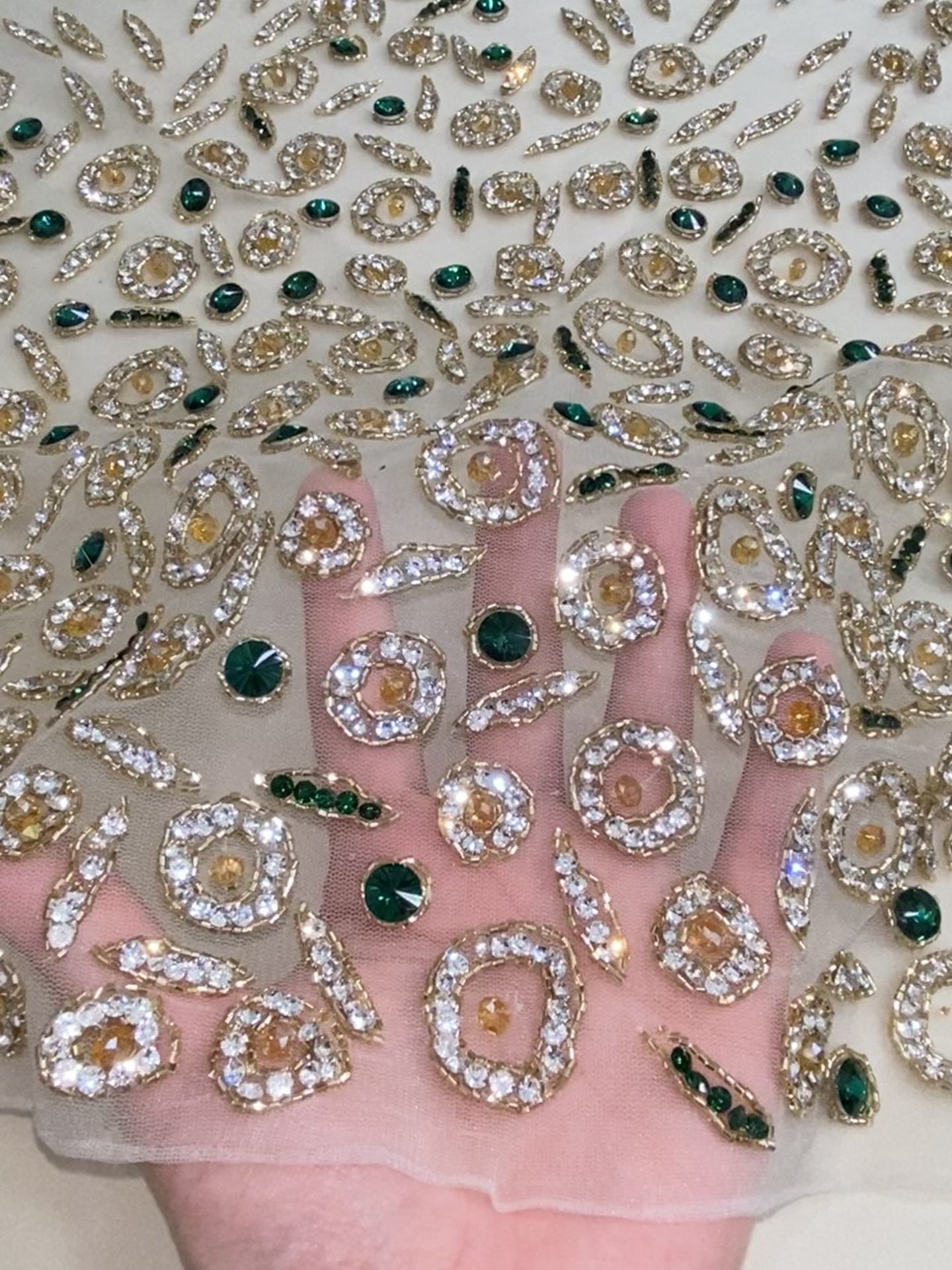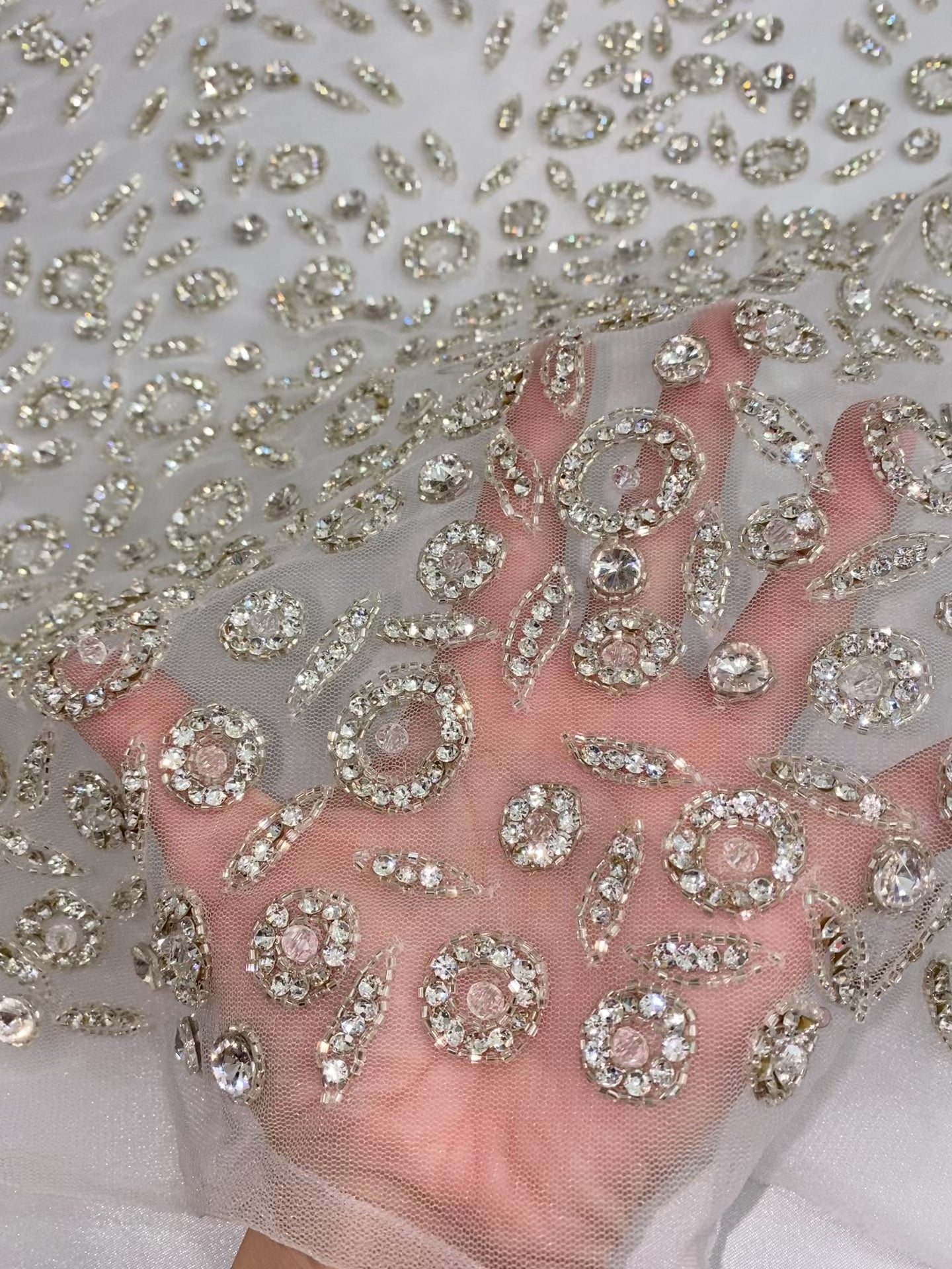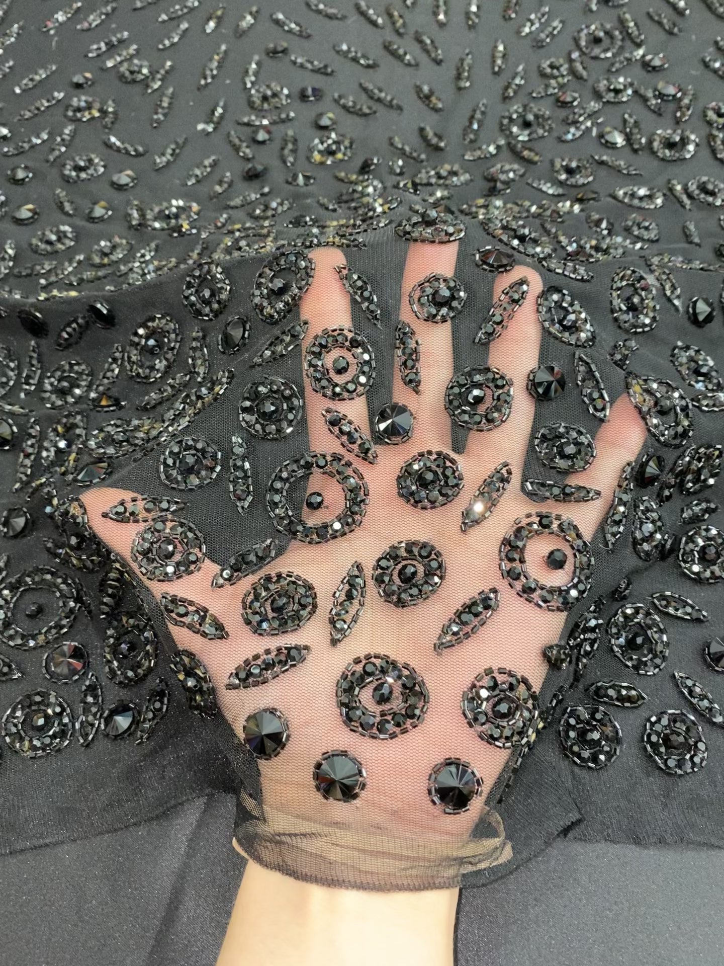 Stone hand beaded lace