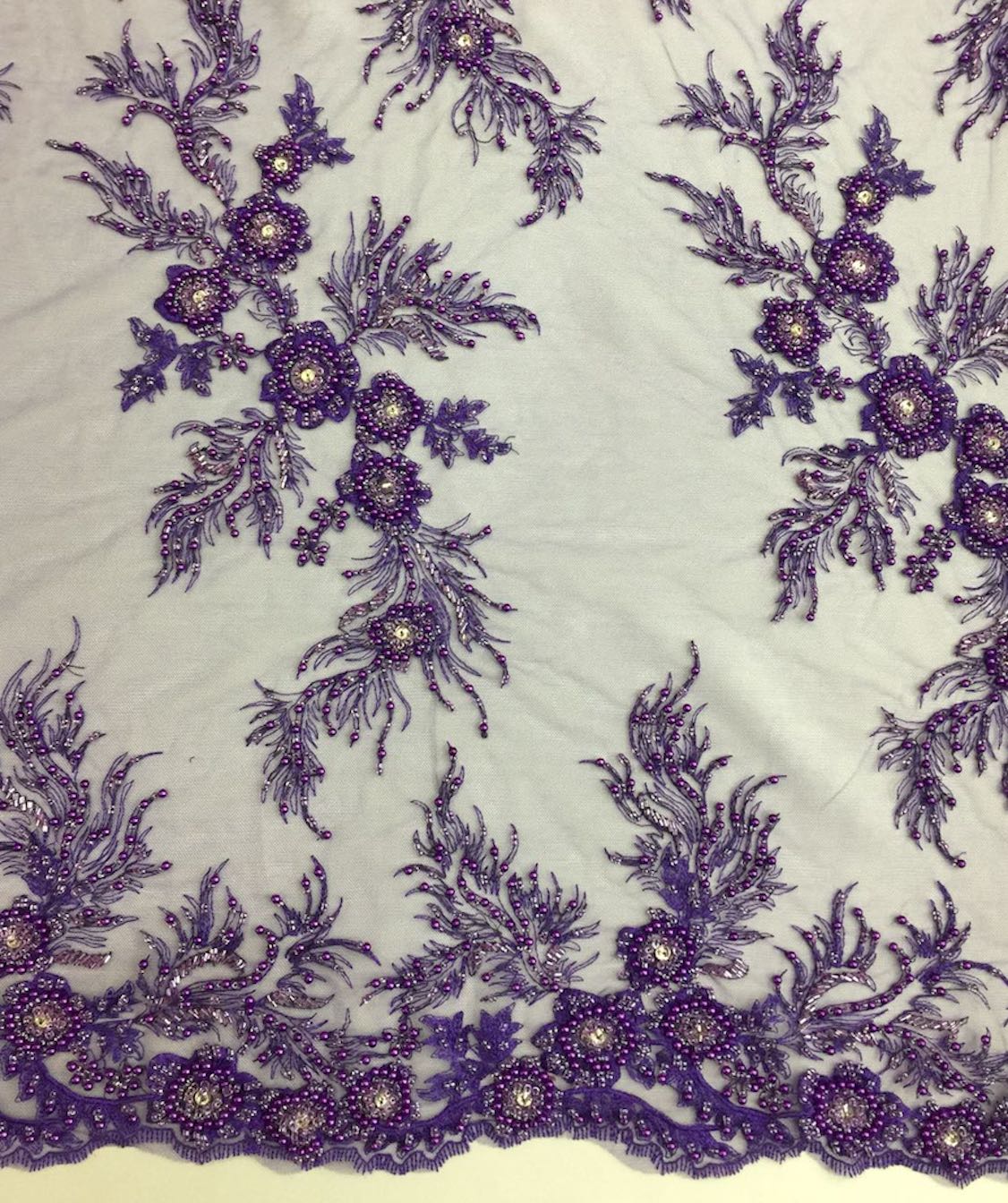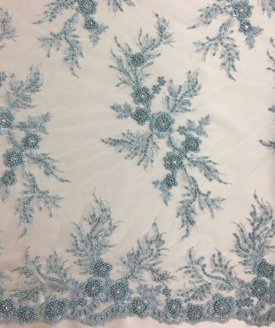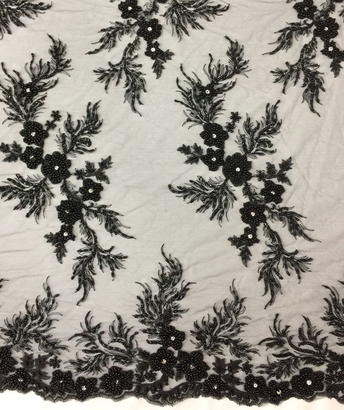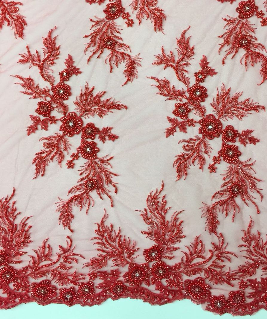 Beaded Floral Appliqué Lace