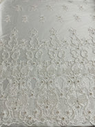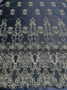Hand Beaded Applique Pearls and Rhinestones on Mesh