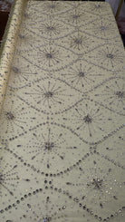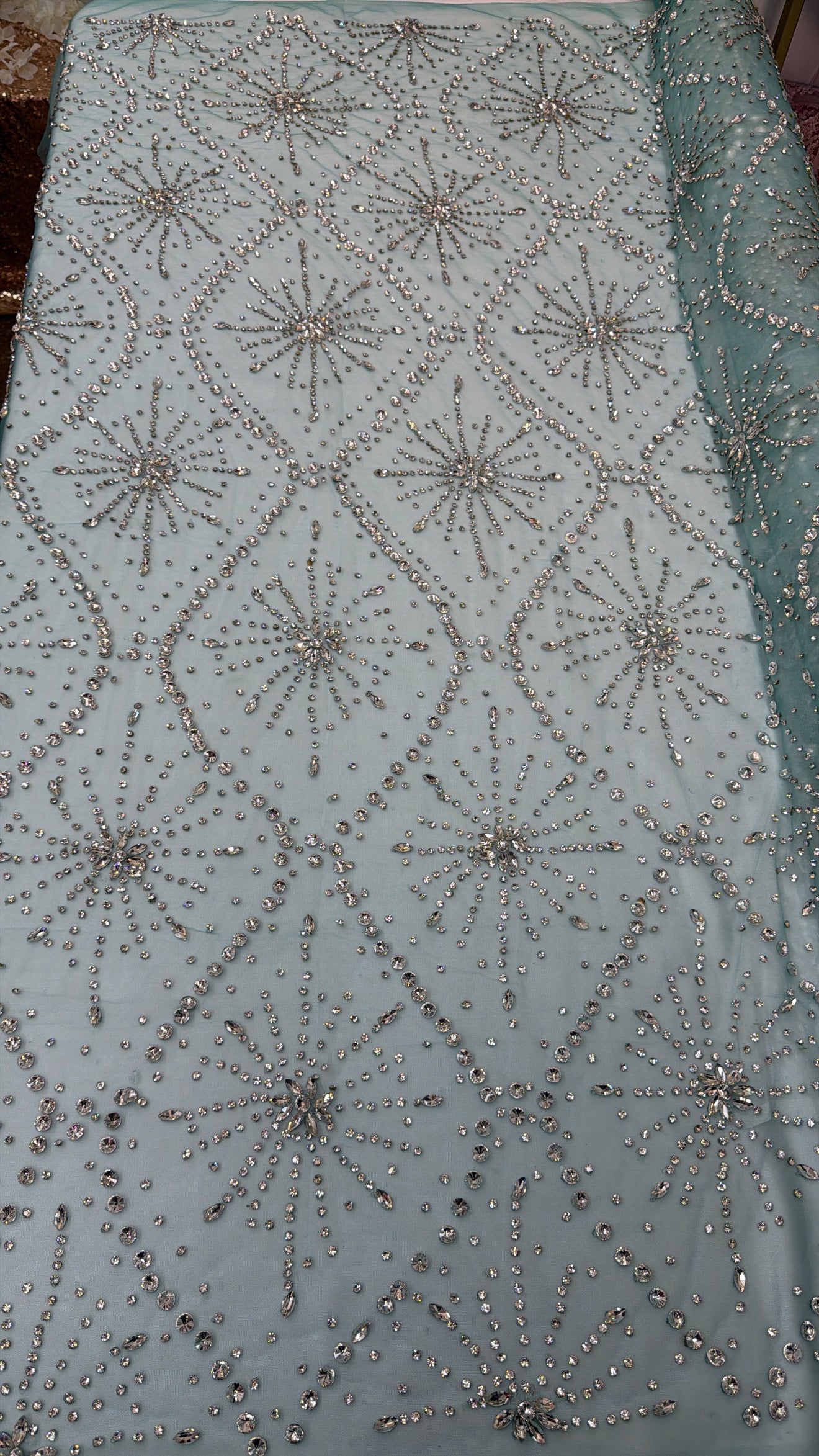Sculpted stones on a soft mint mesh, made to glow on every step