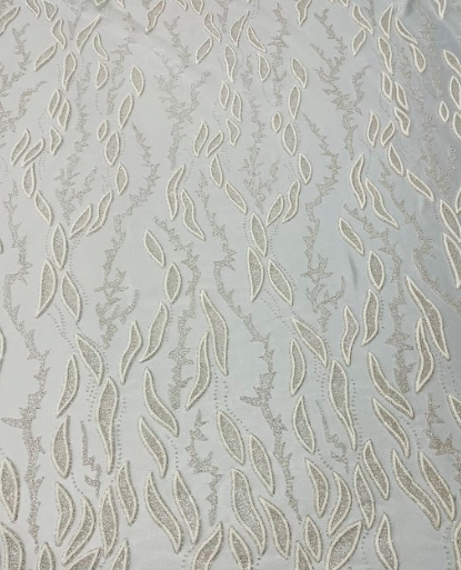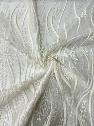 Beautiful fabric with 3D cracked ice glitter designs. Perfect for bridal wear and other special occasions!