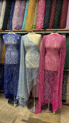 Add a touch of sophistication to your attire with our exquisite laces featuring intricate flower designs and sparkling stones.