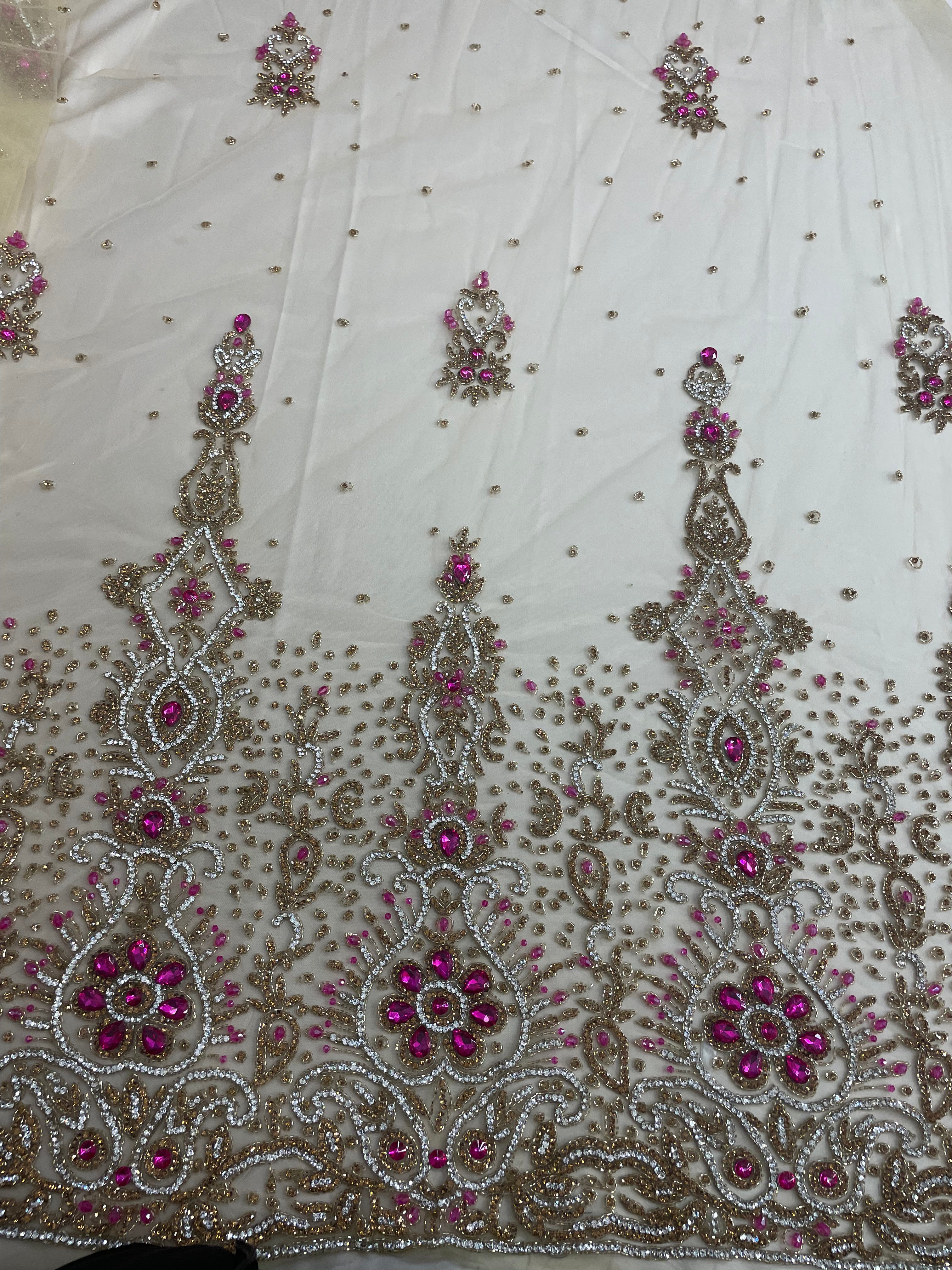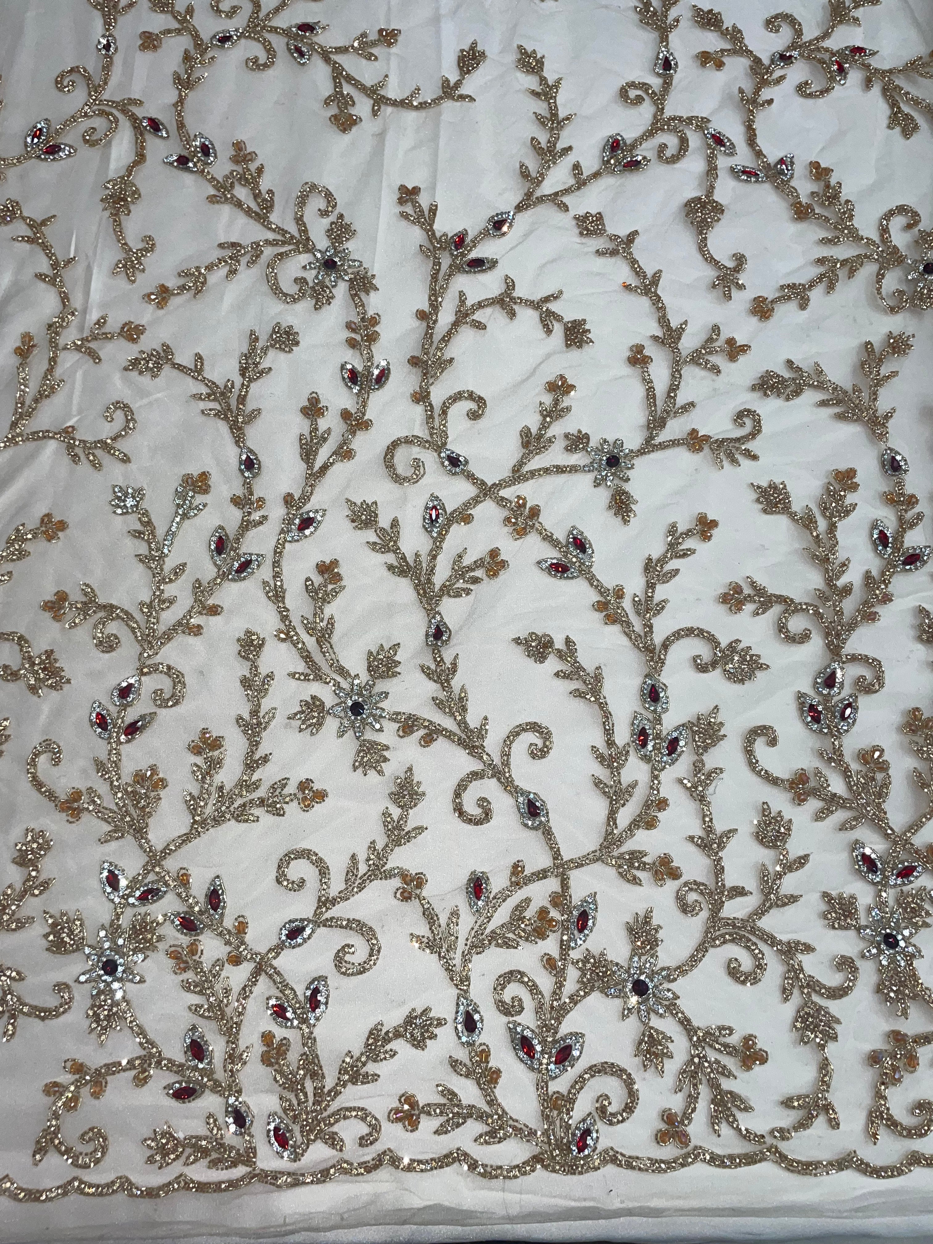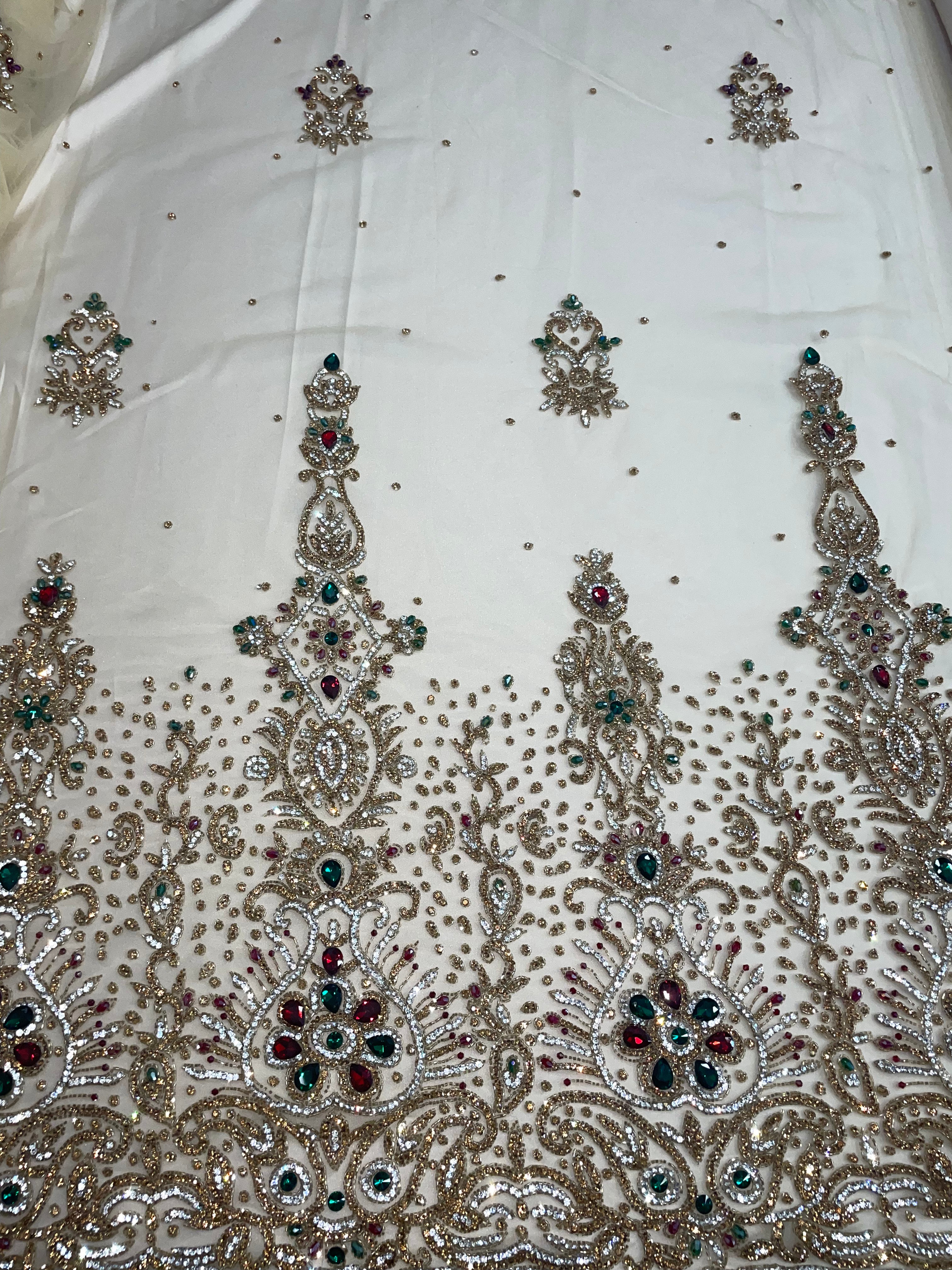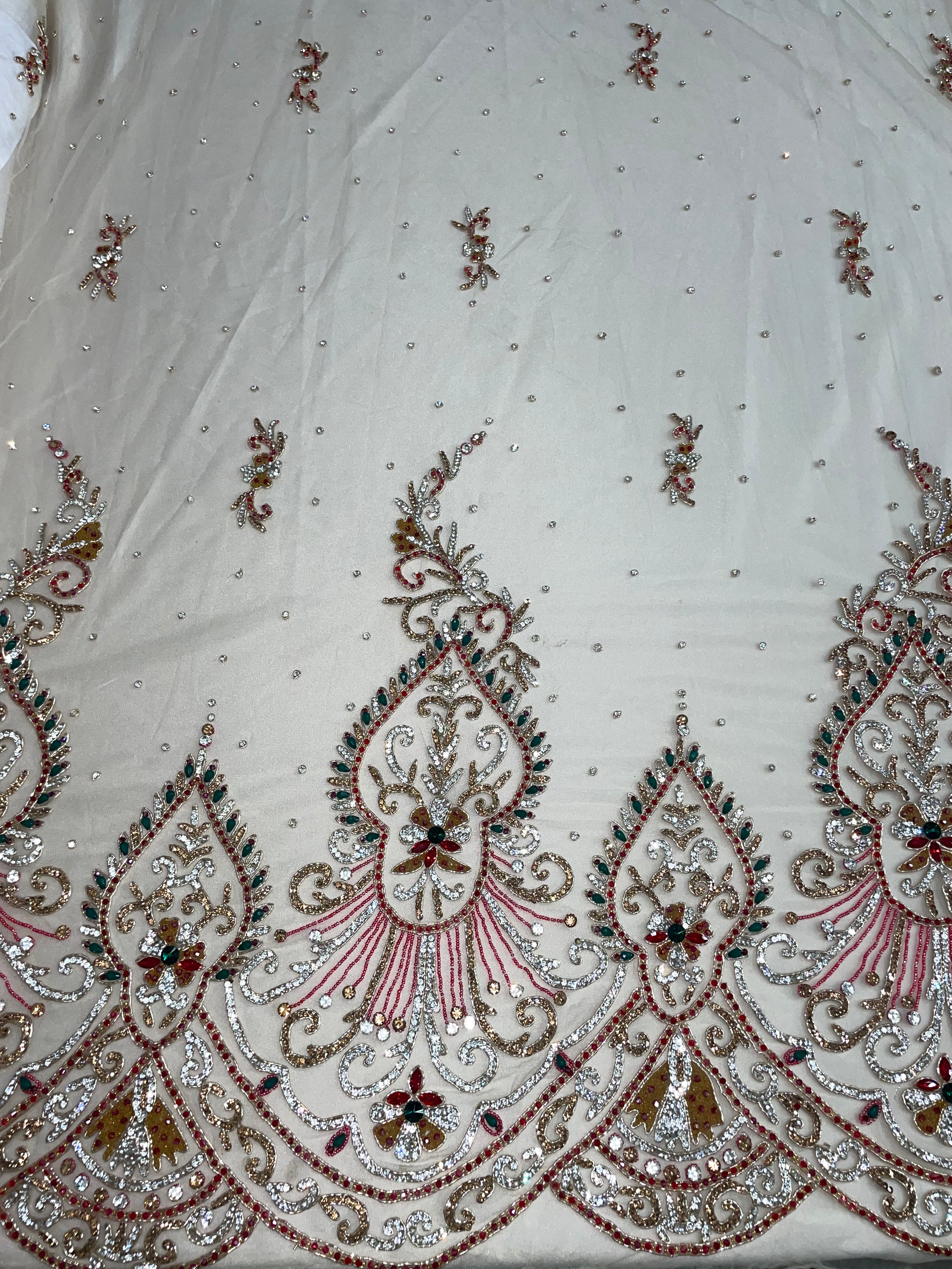 3D Multi Color hand beaded lace