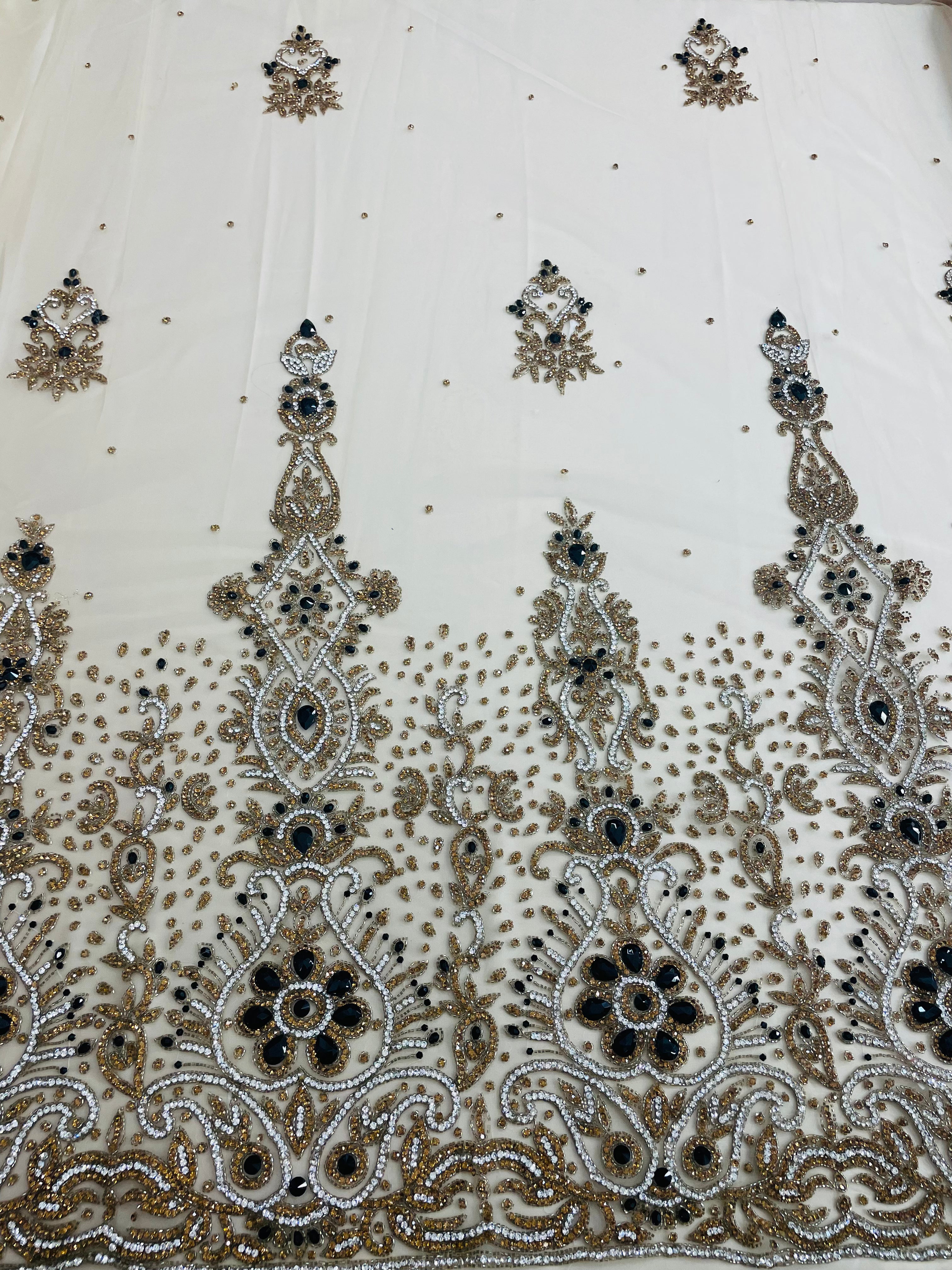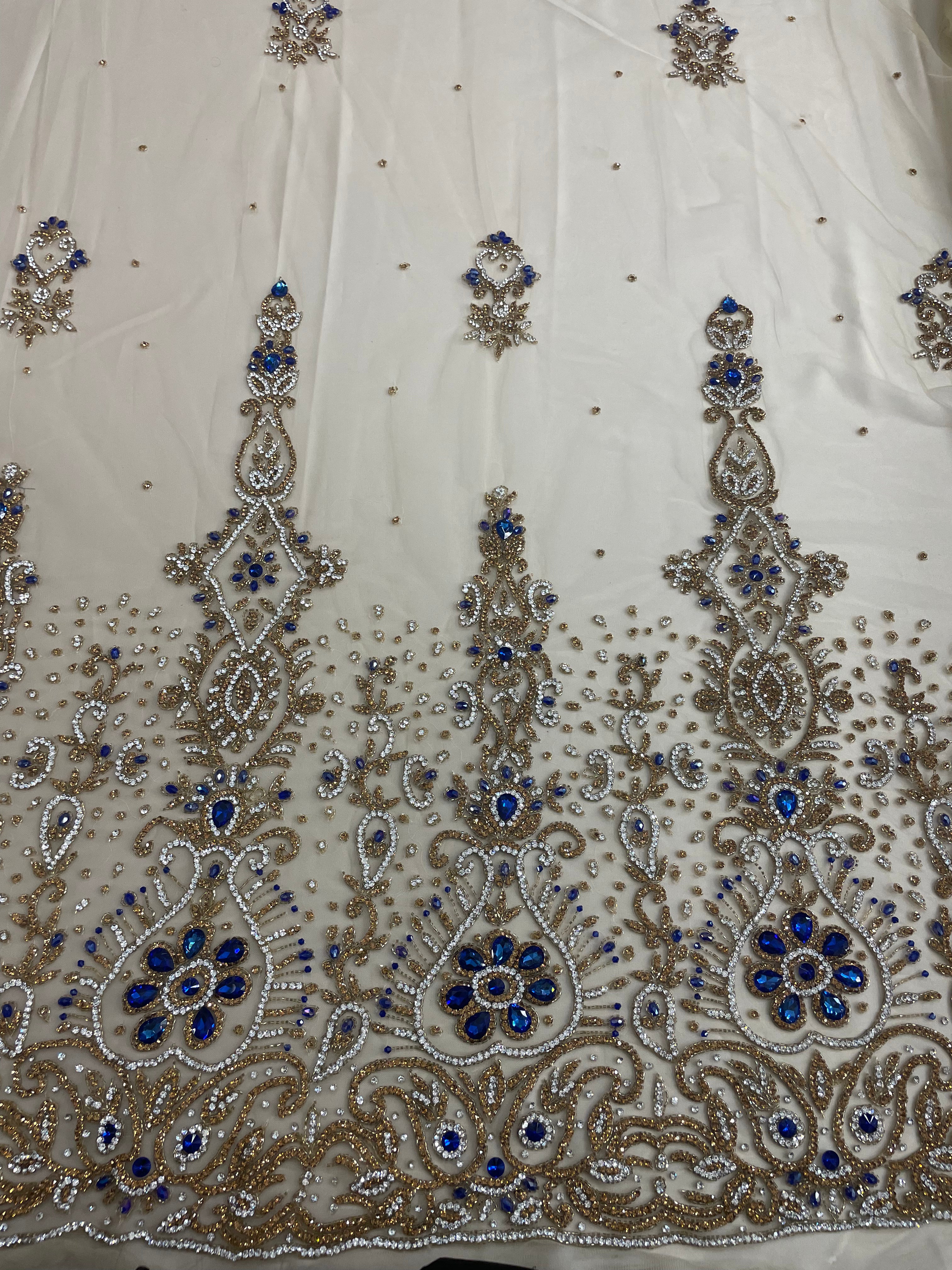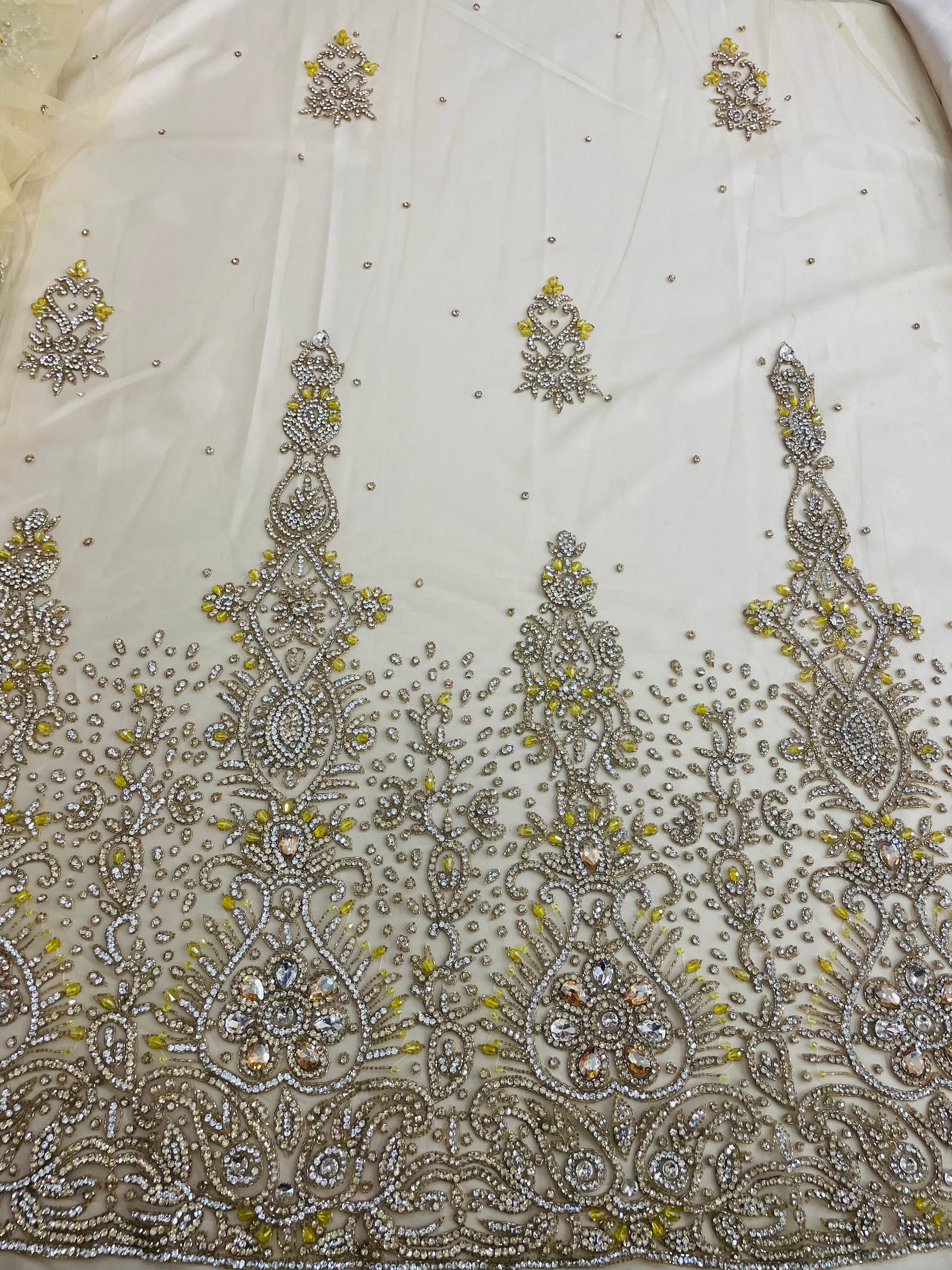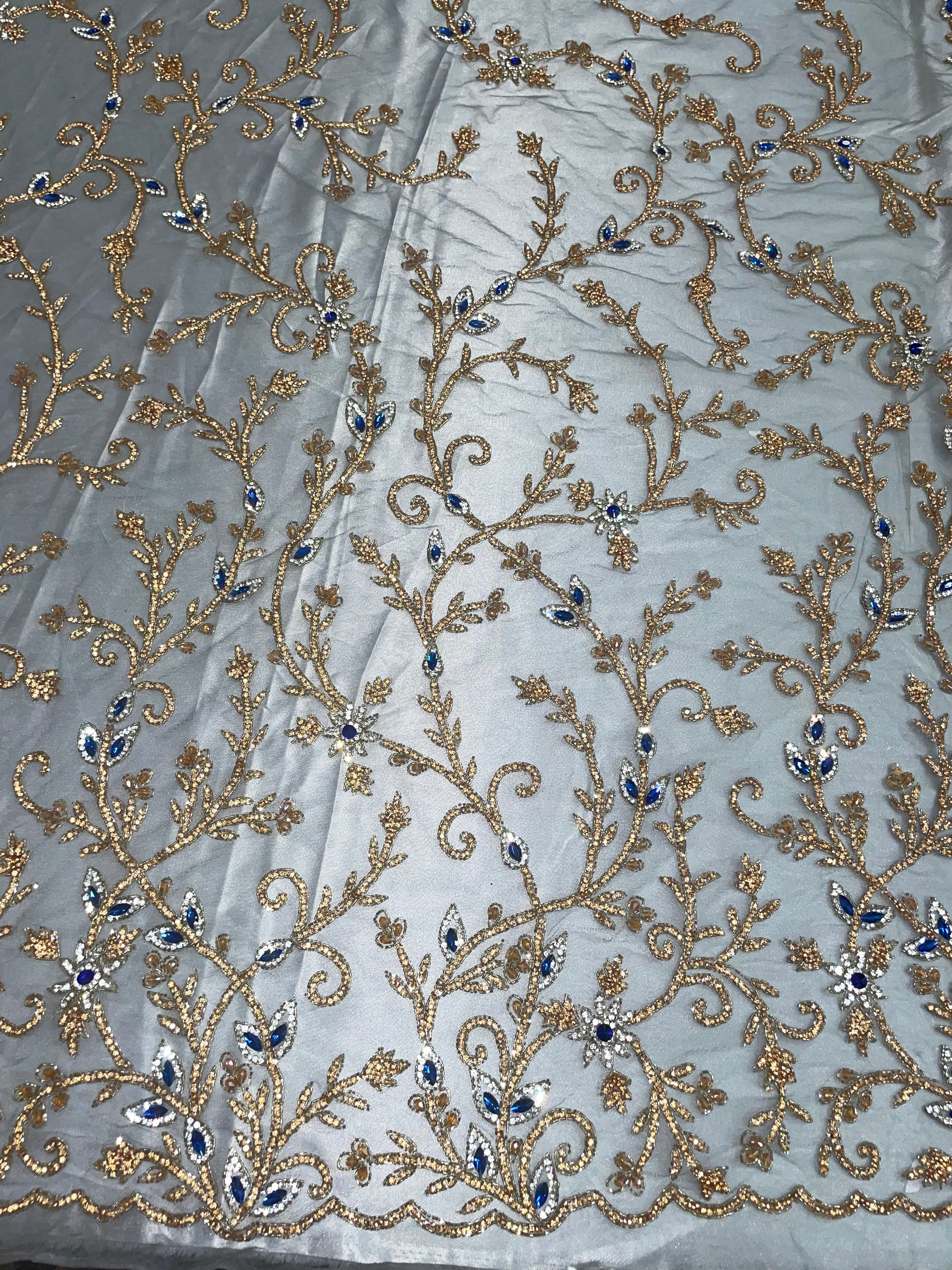 3D Multi Color hand beaded lace