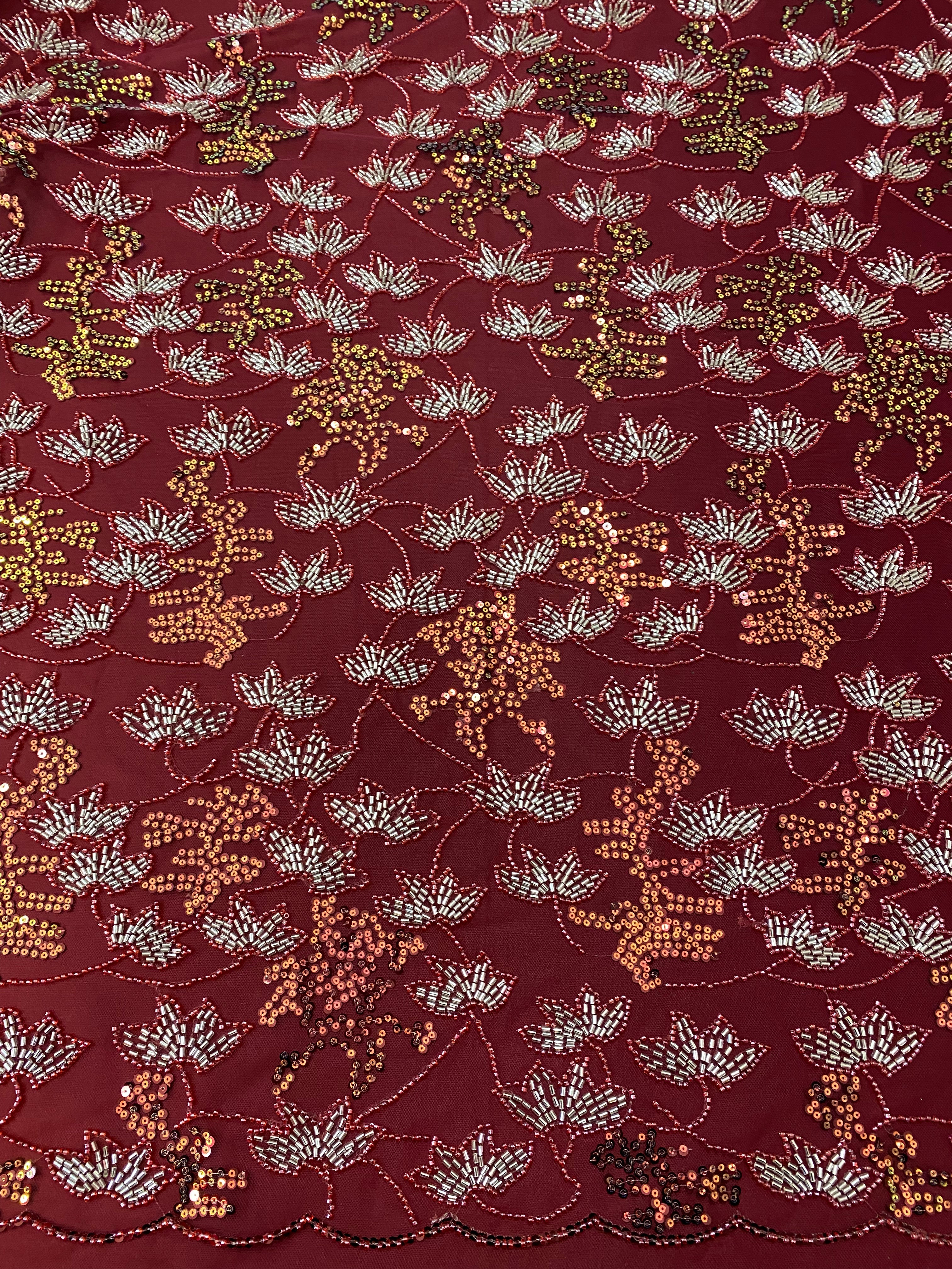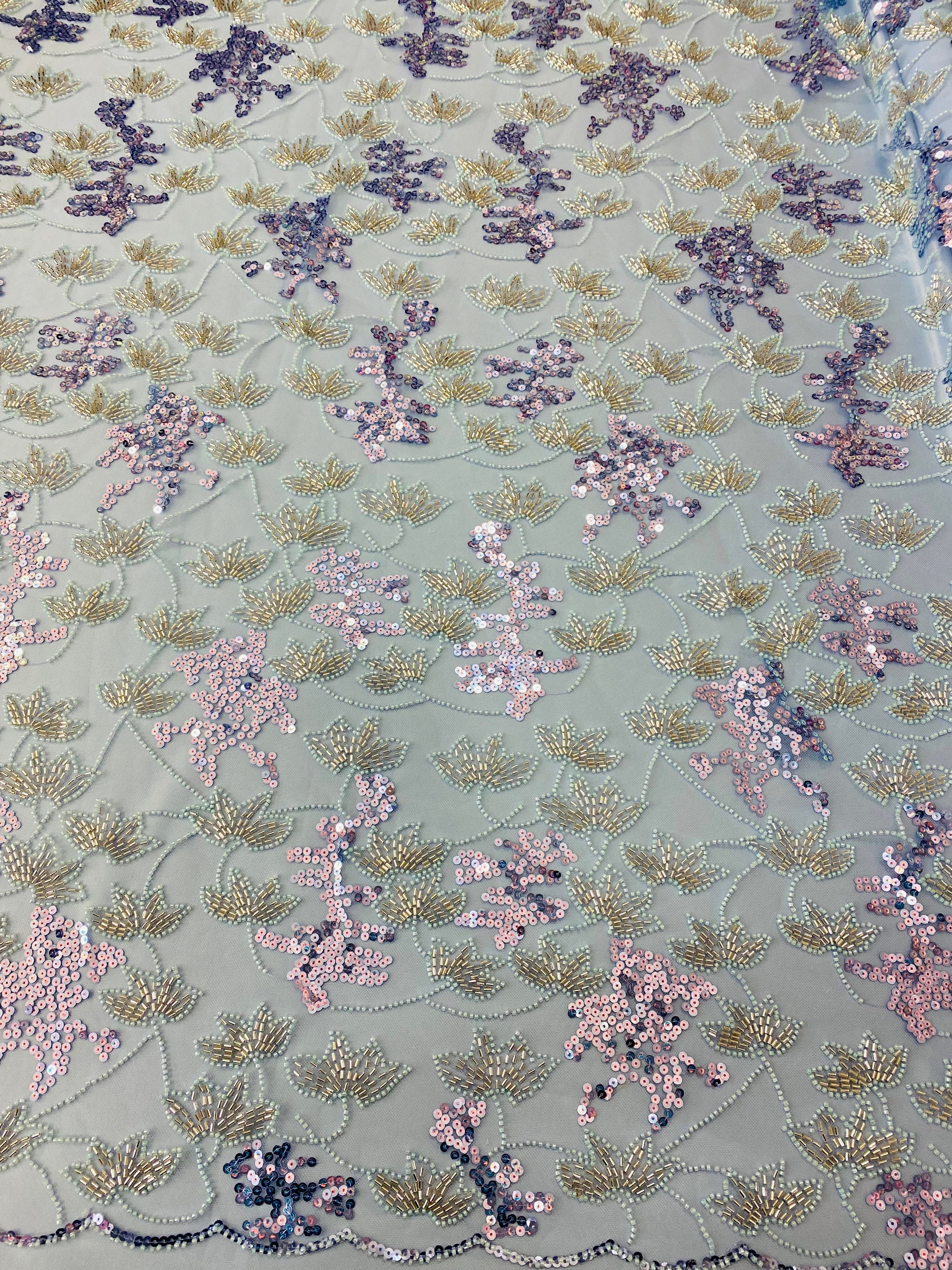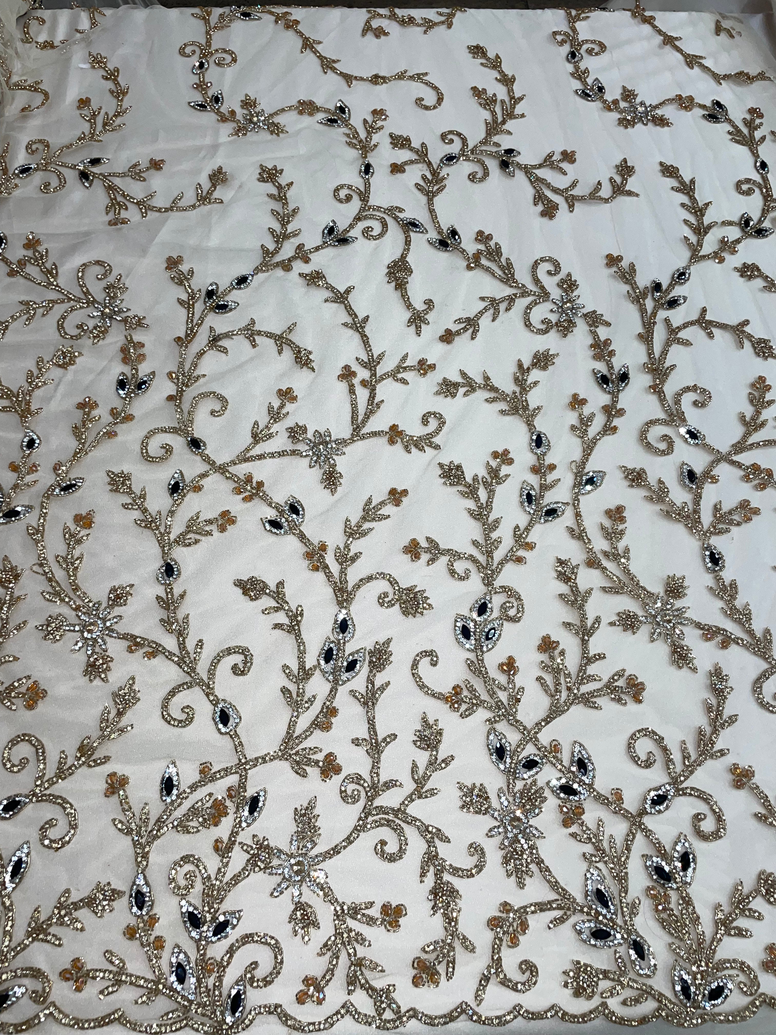 Beaded Floral Appliqué Lace