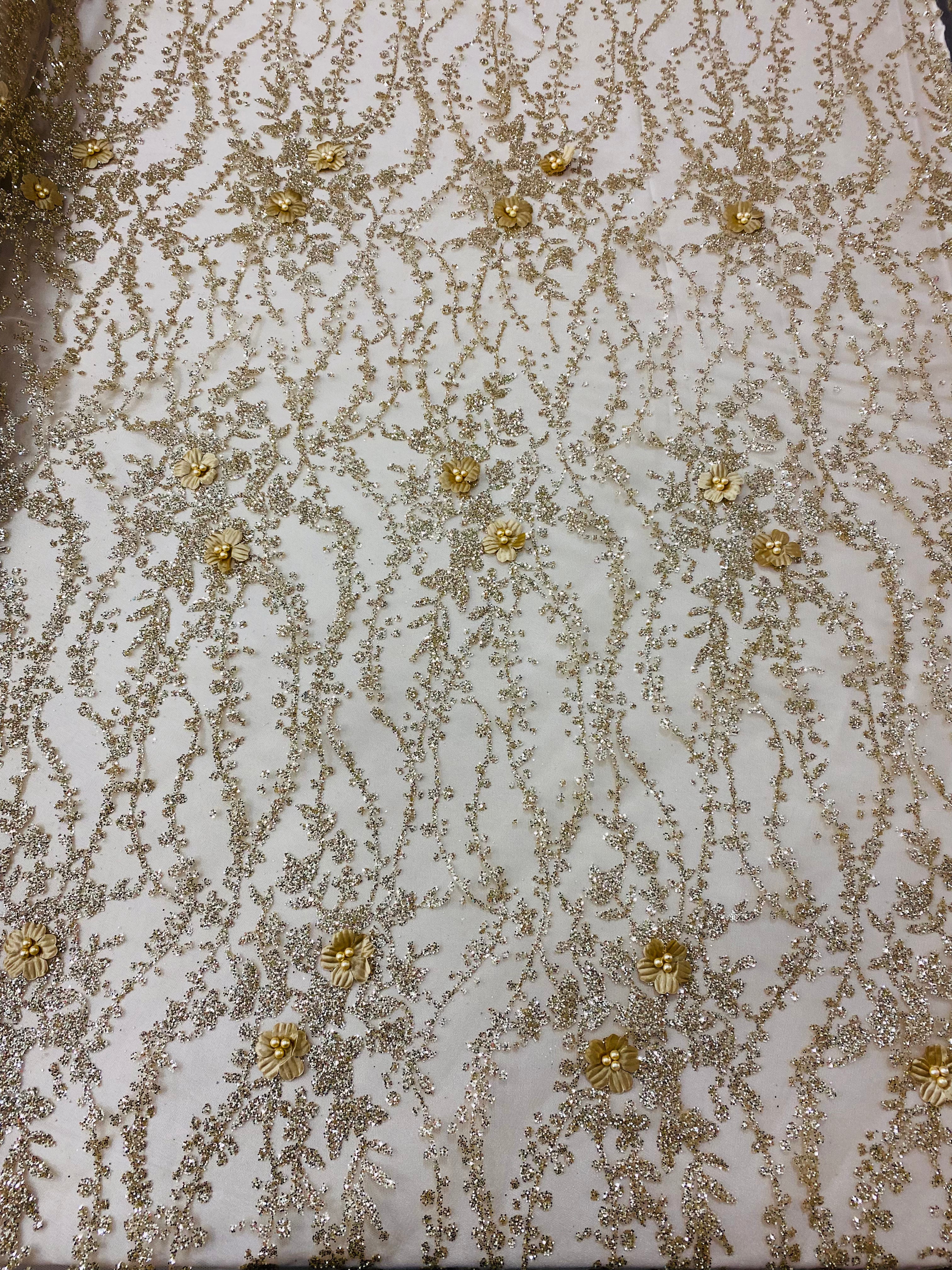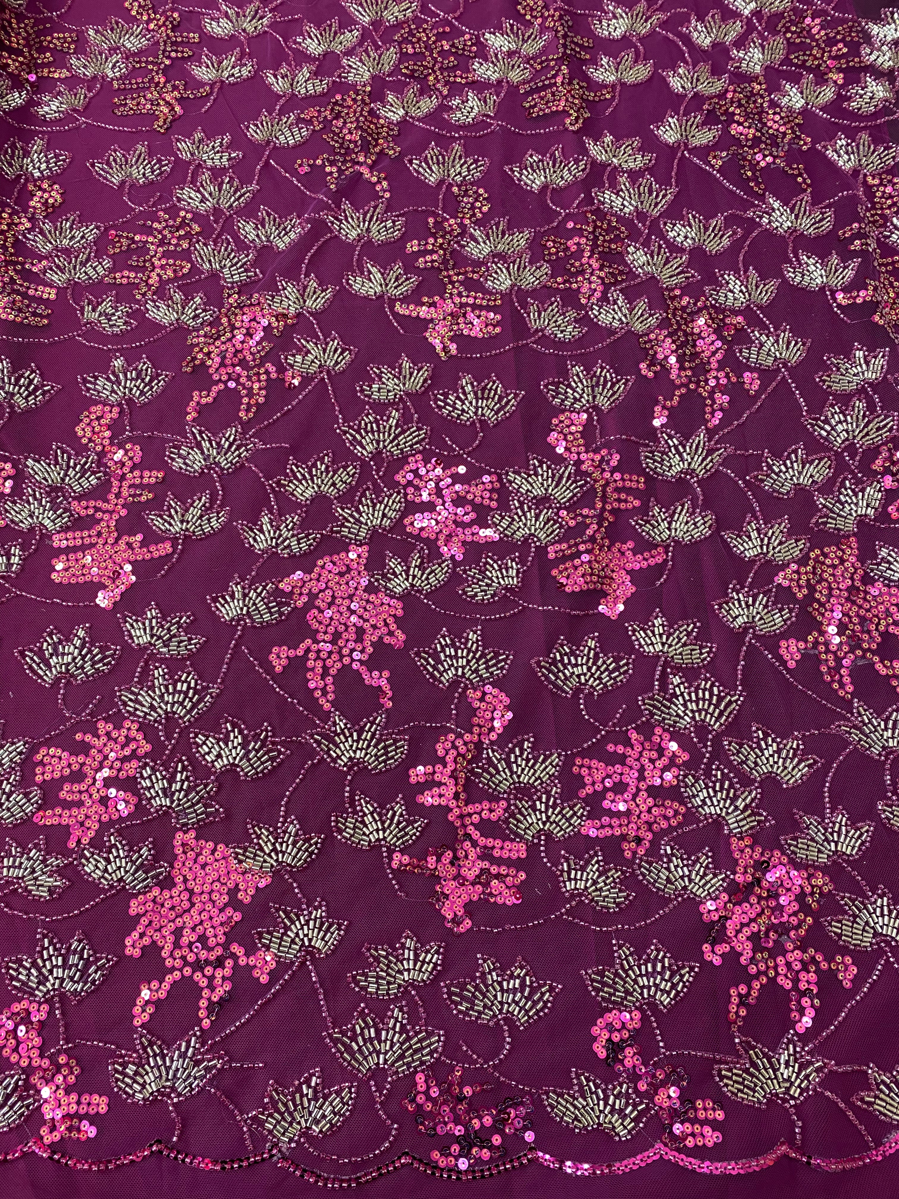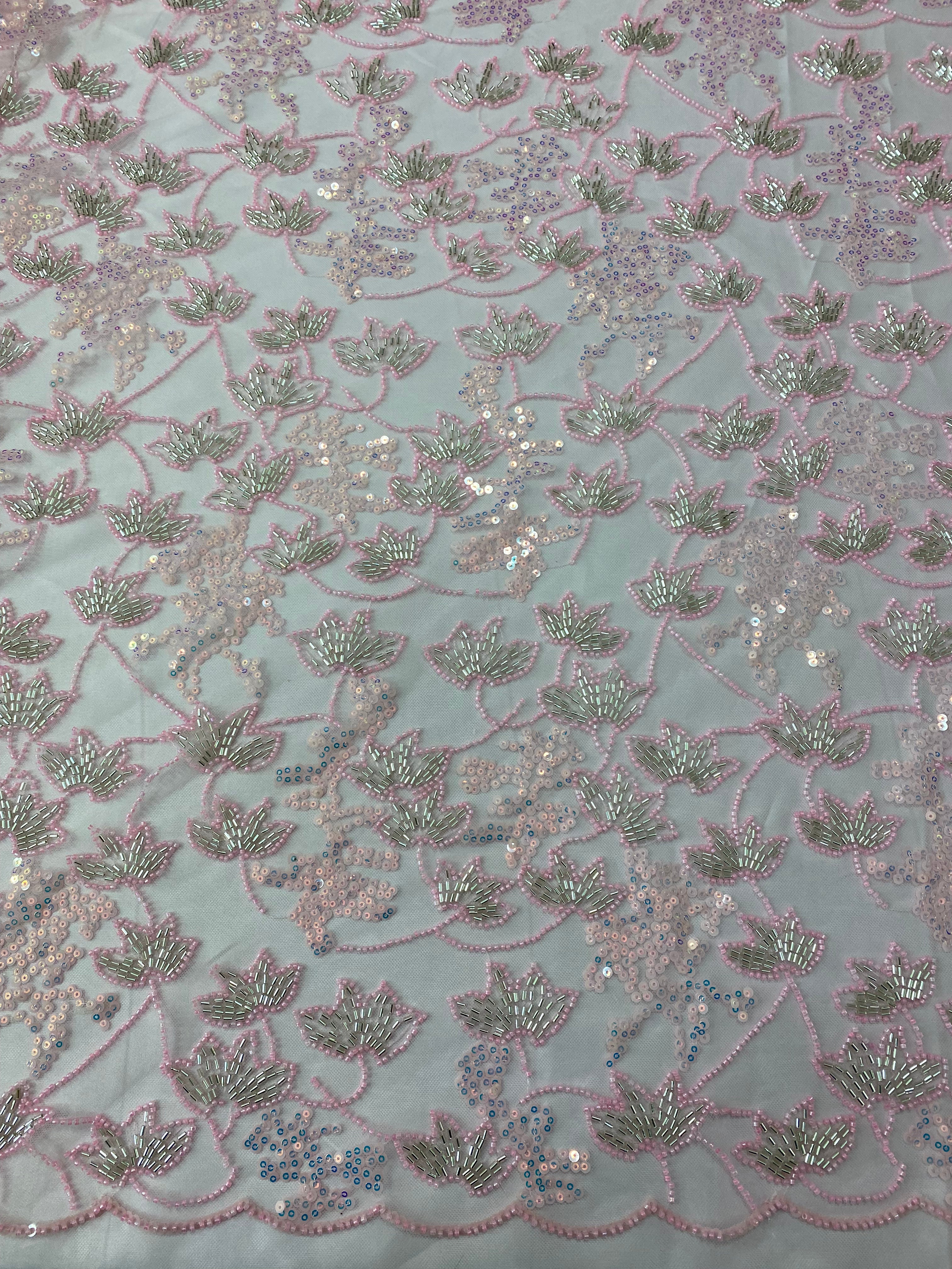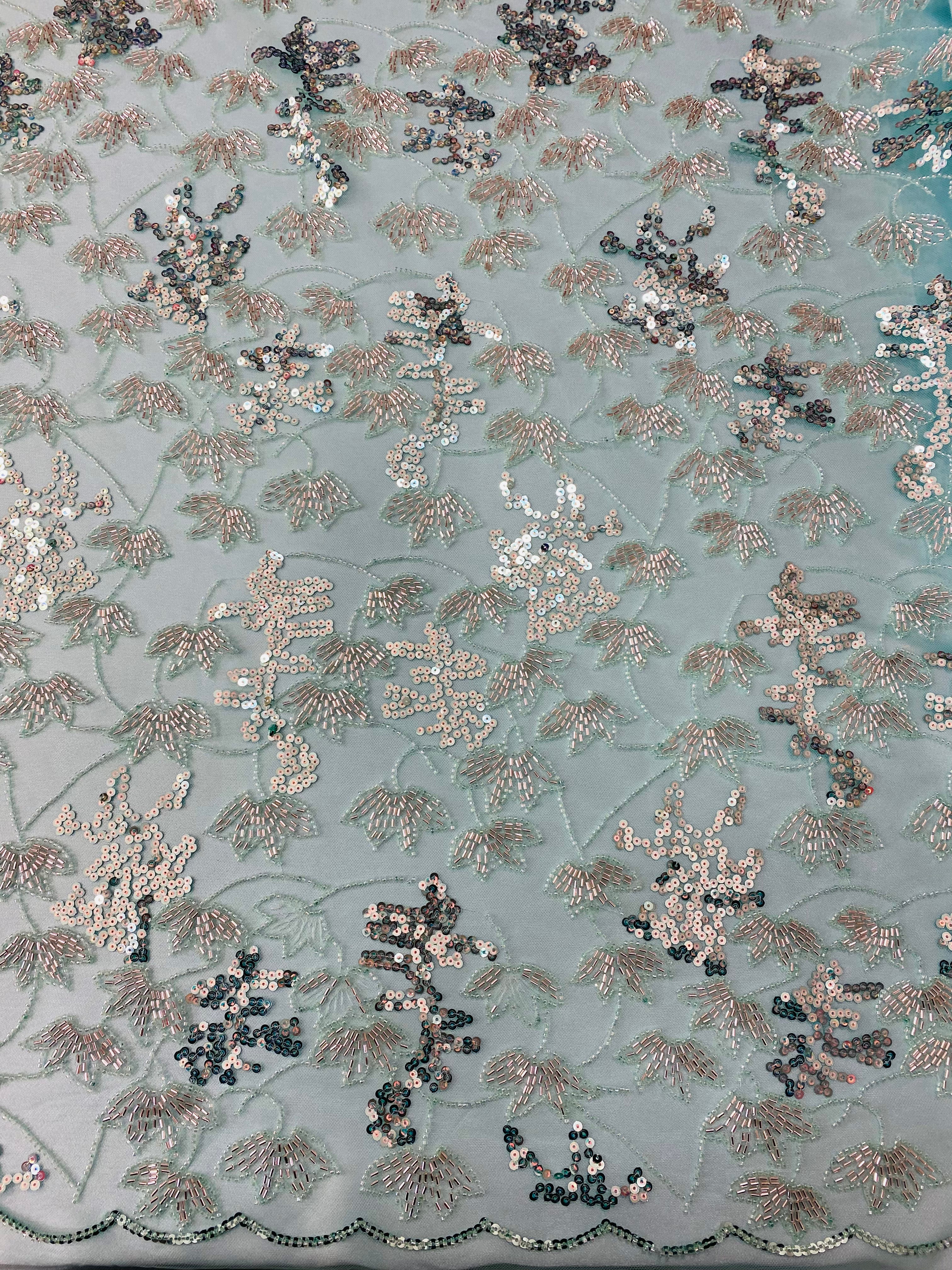 Beaded Floral Appliqué Lace