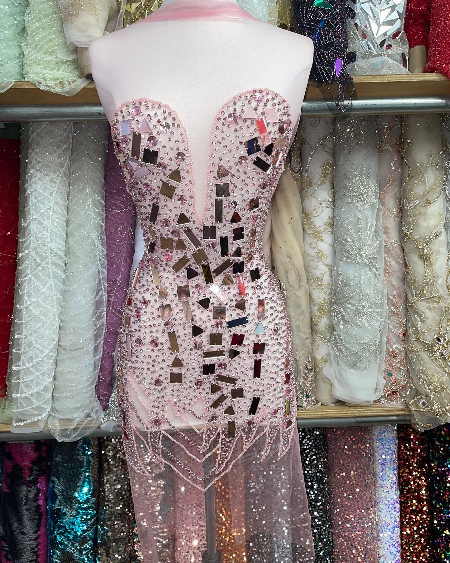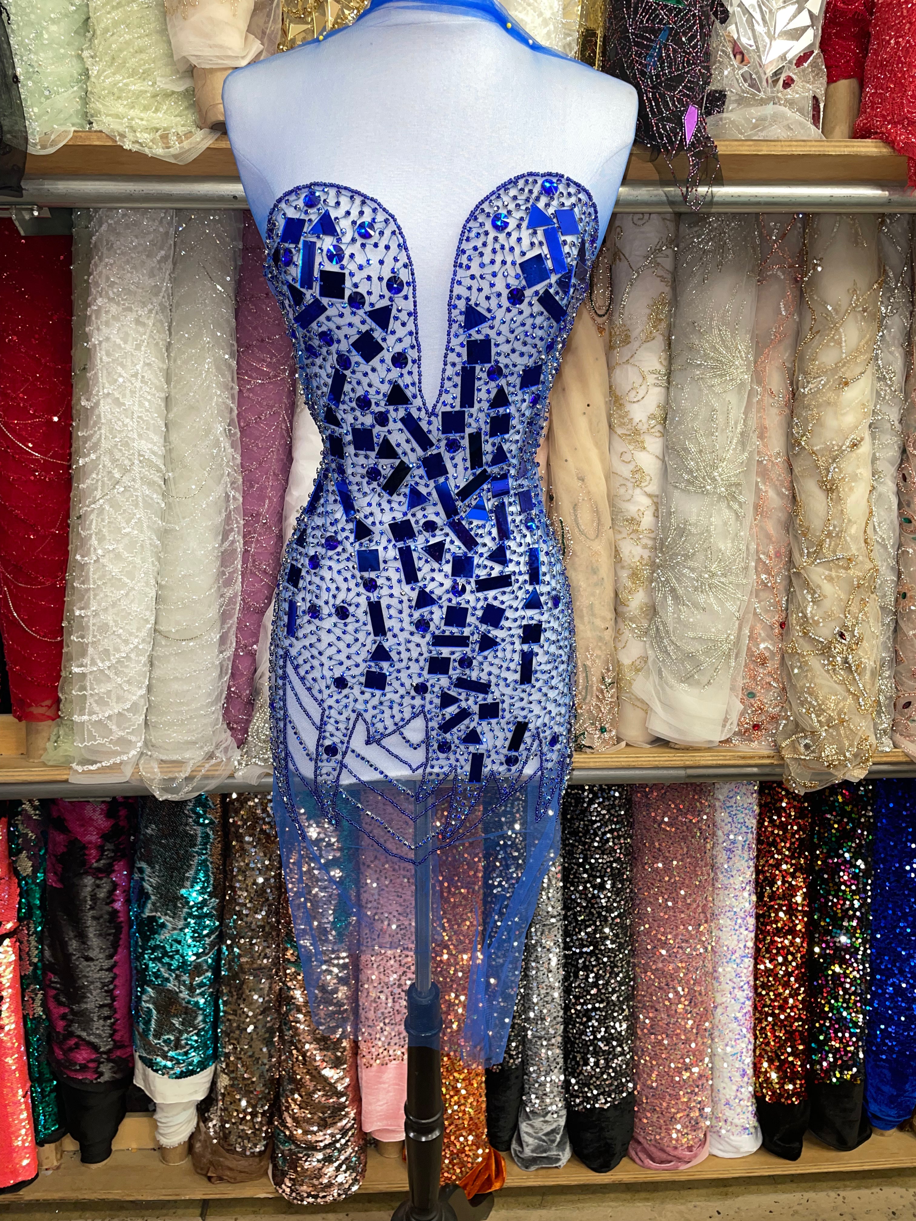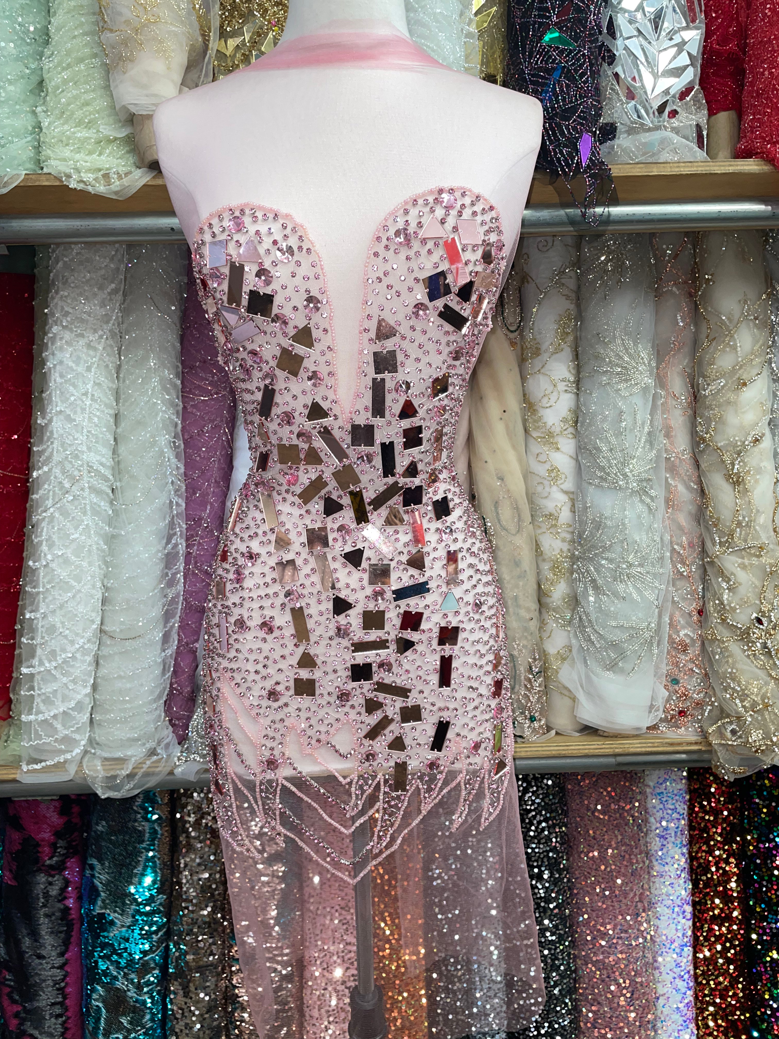 Glitter design on Illusion mesh with feathers