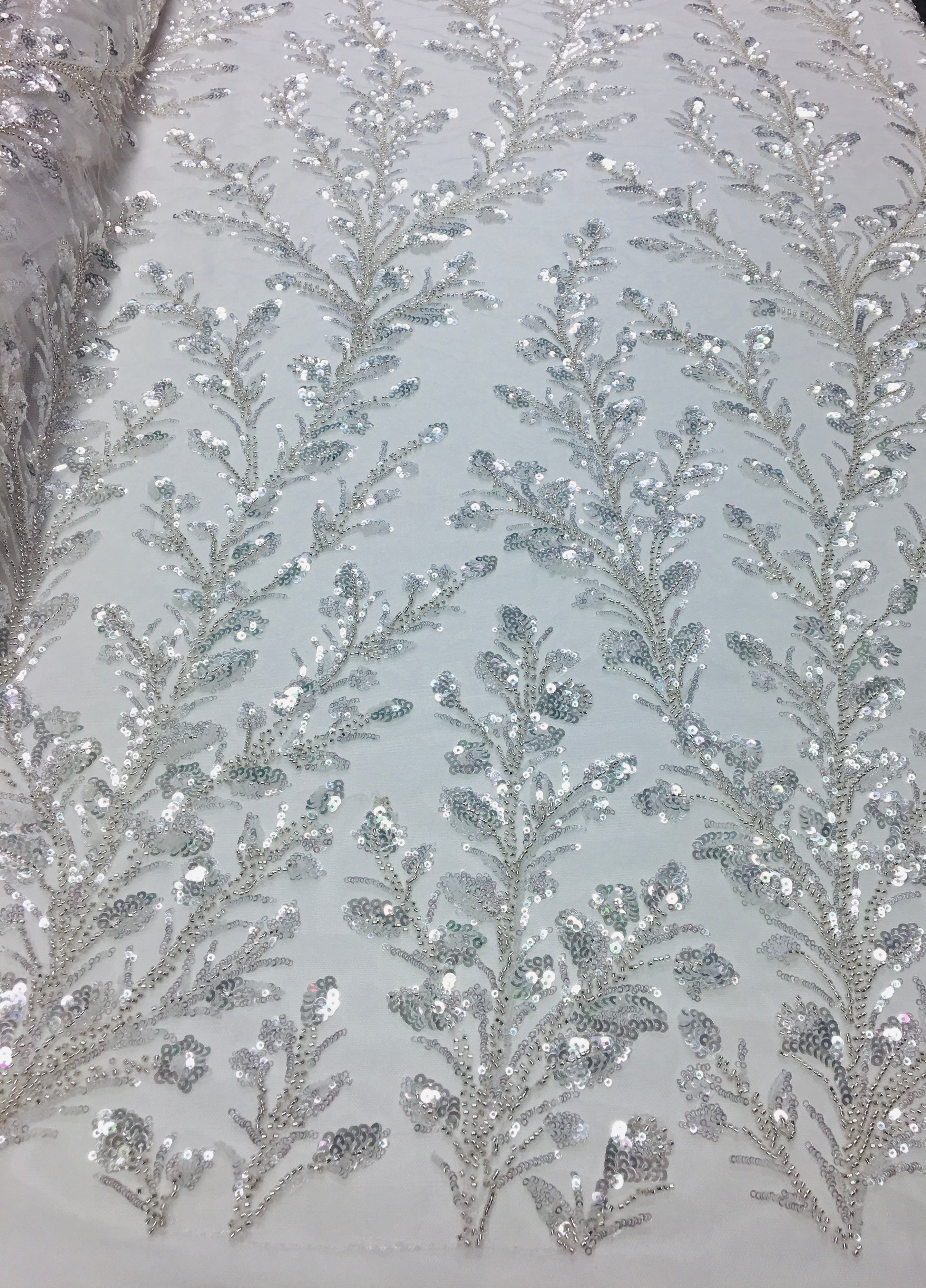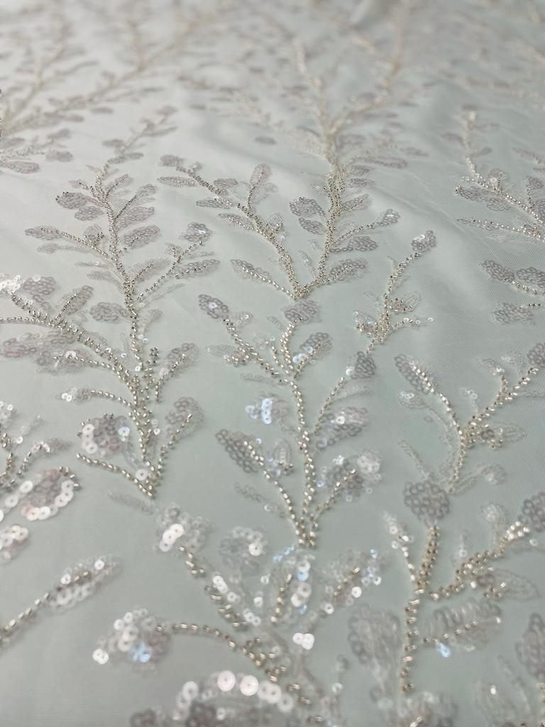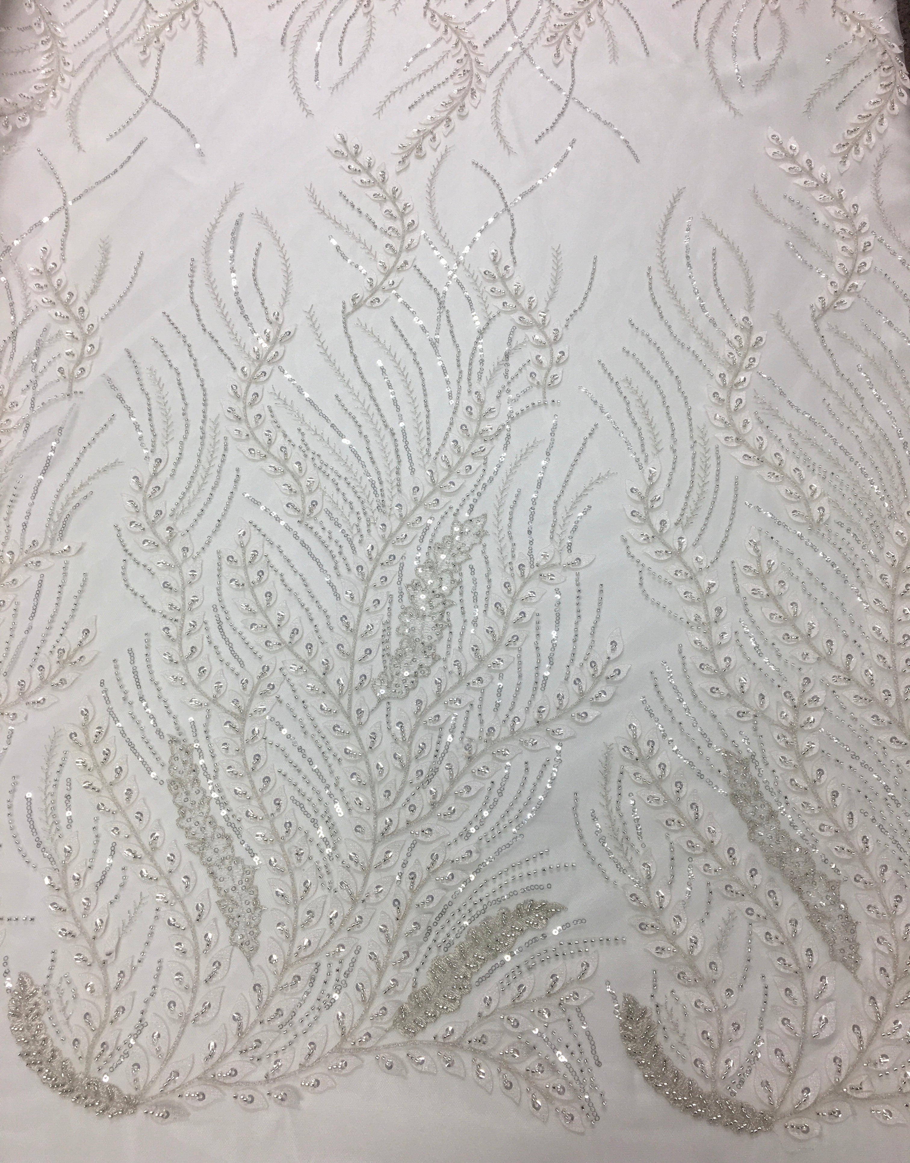 Feather Branch Hand Beaded Lace