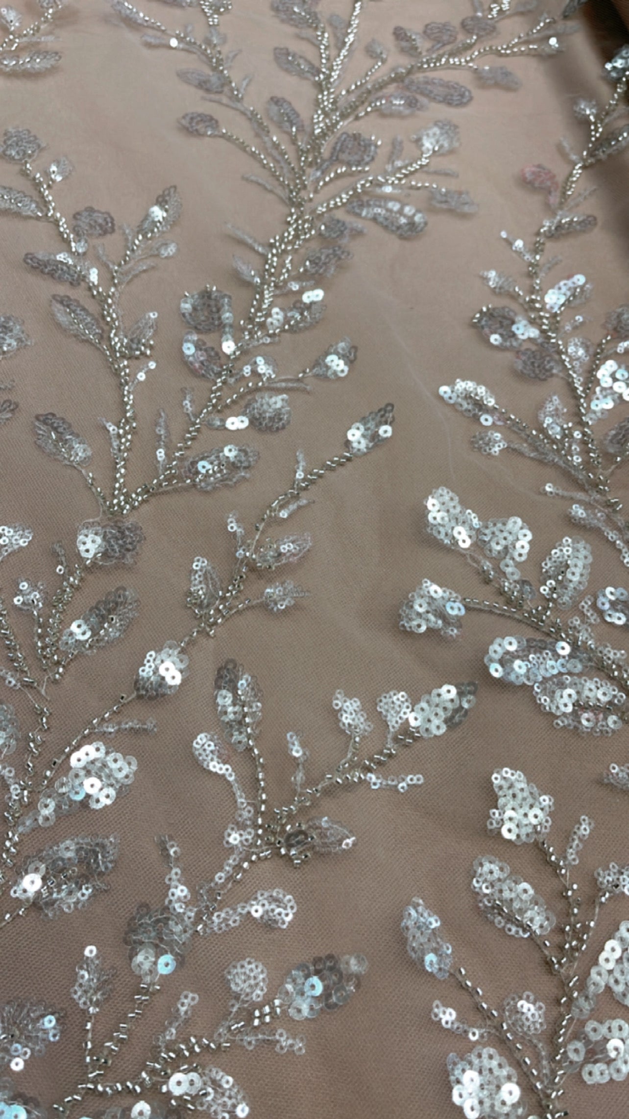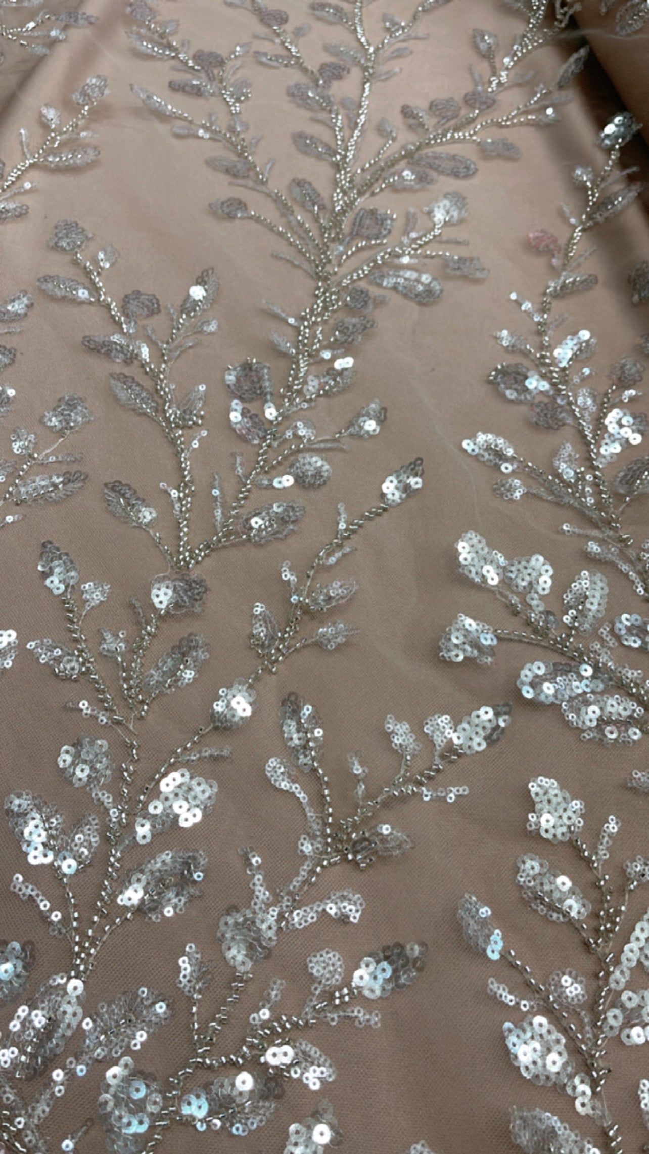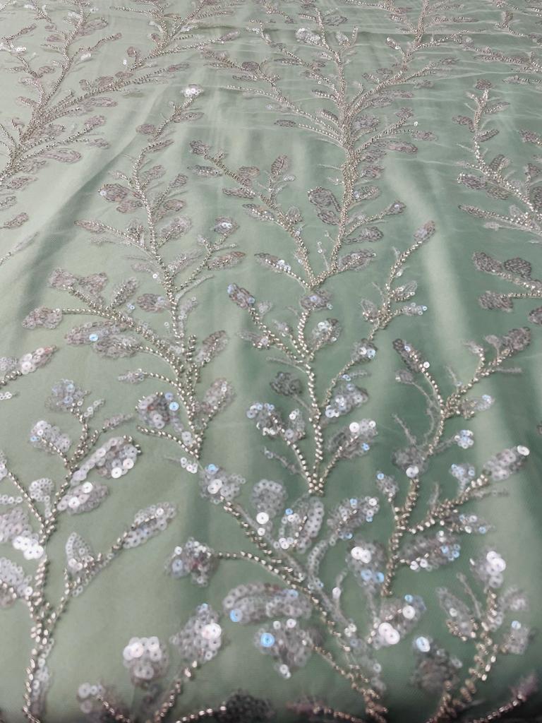Feather Branch Hand Beaded Lace