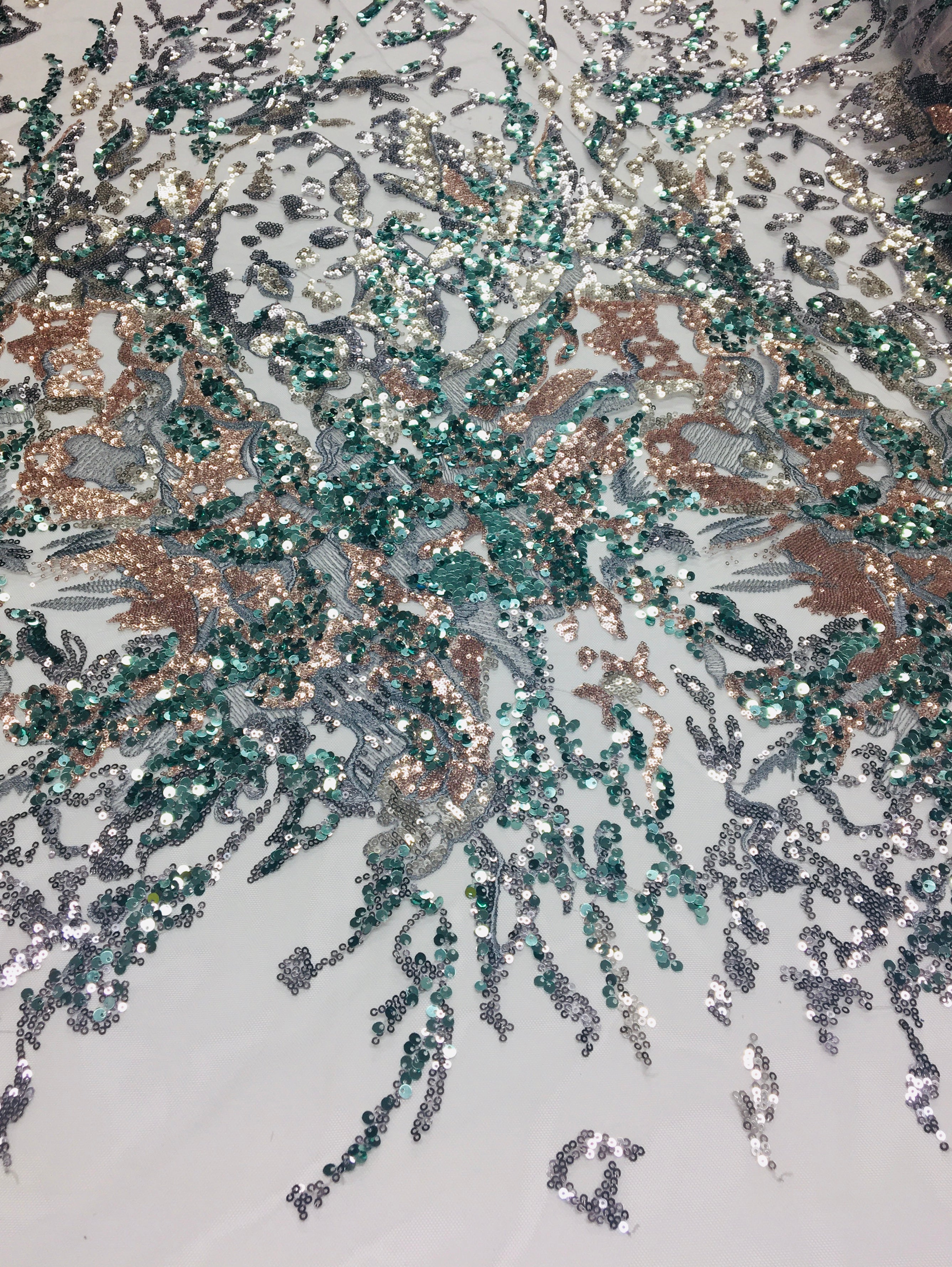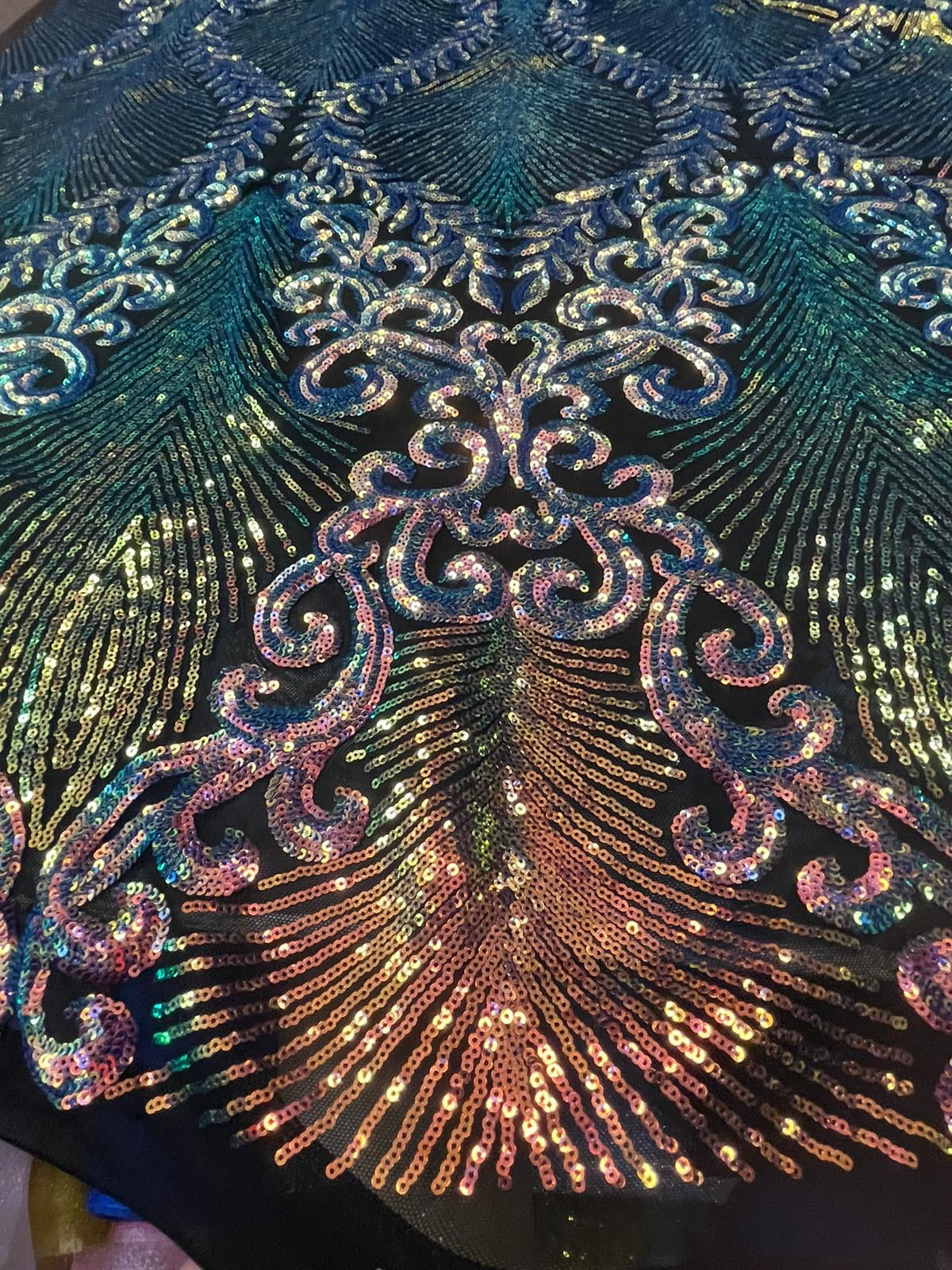 Peacock lace chantely sequins