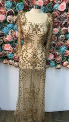 "Flowing elegance in every detail- our long gold panel with sleeves is made to dazzle."