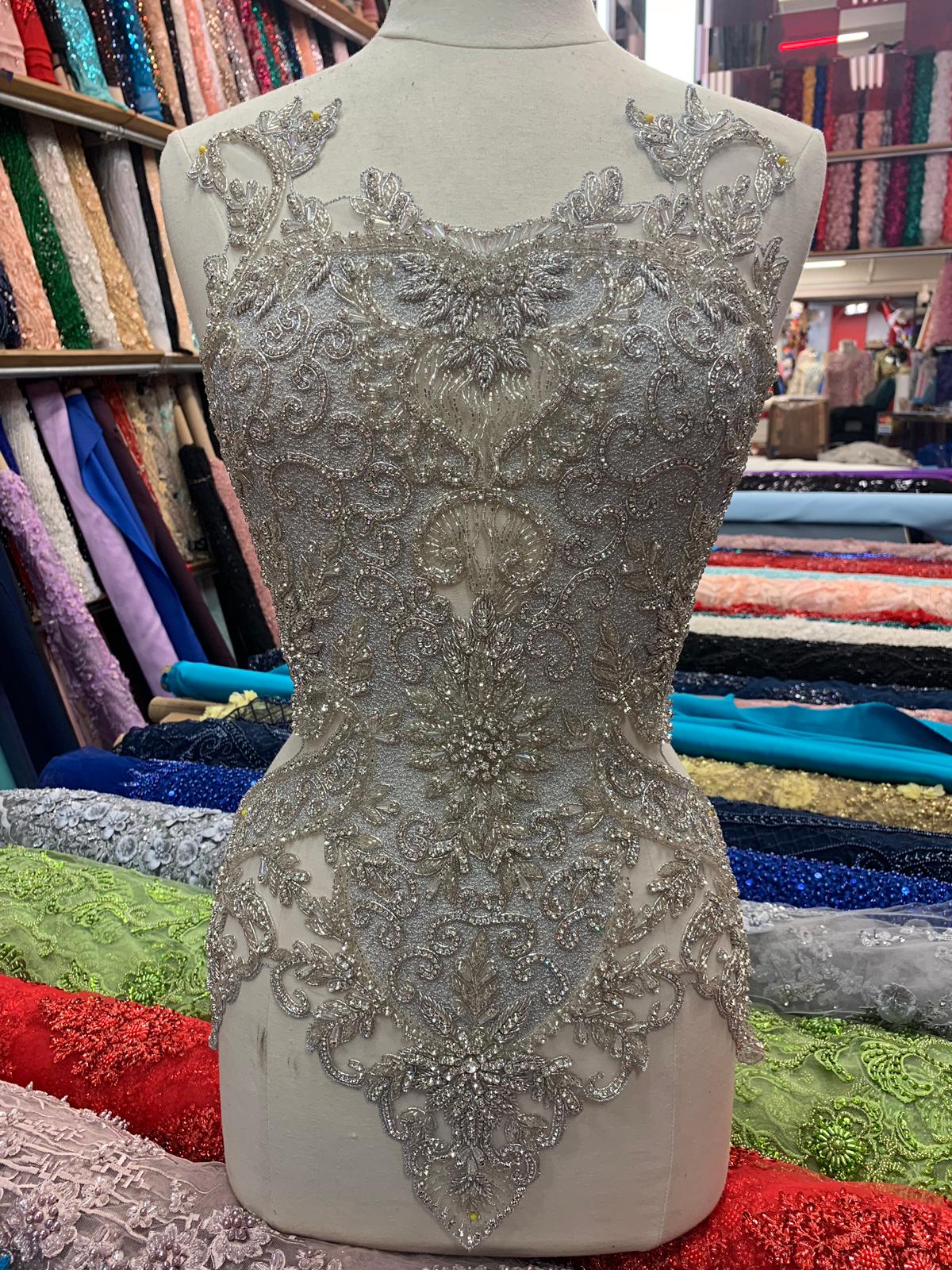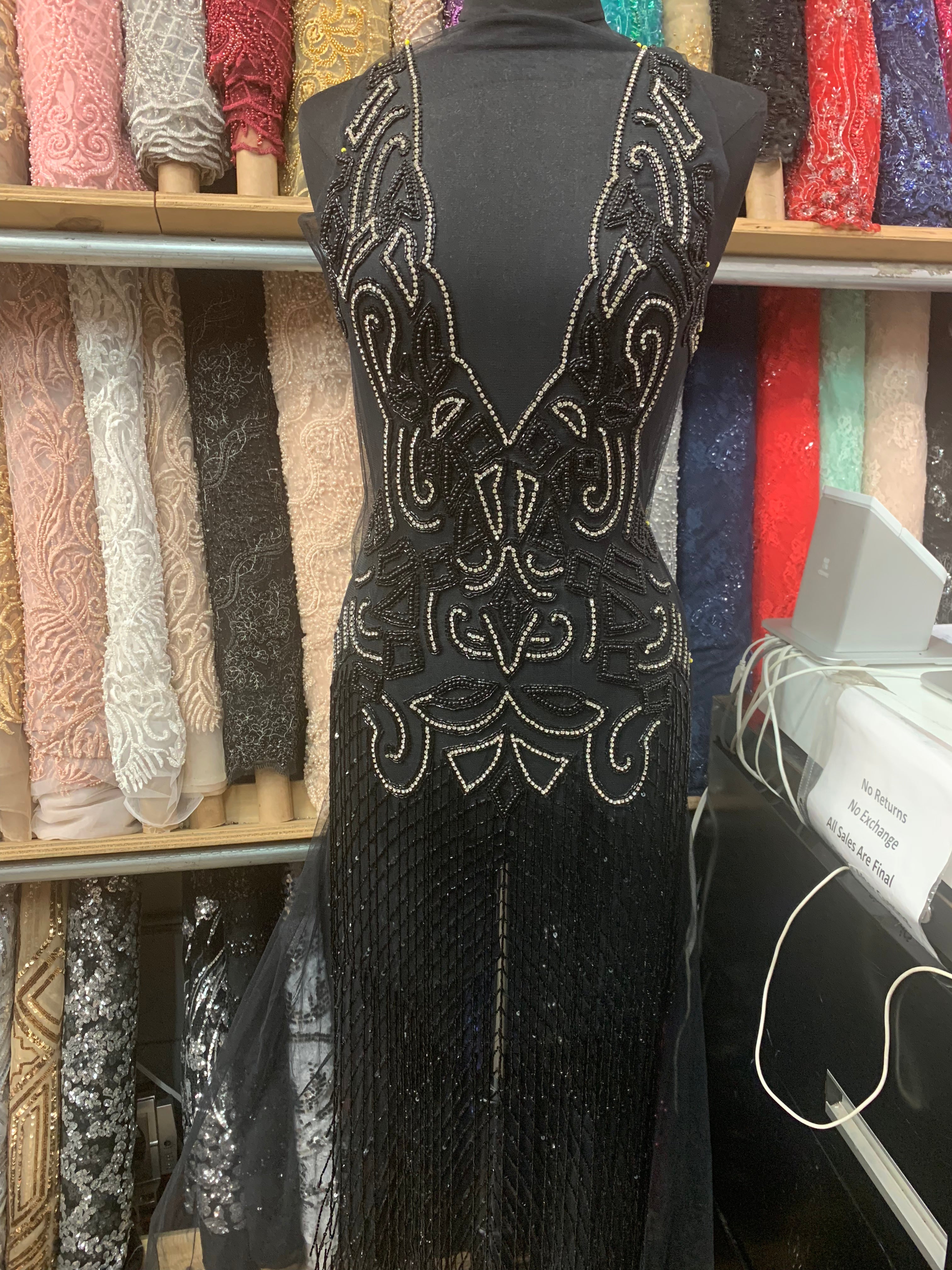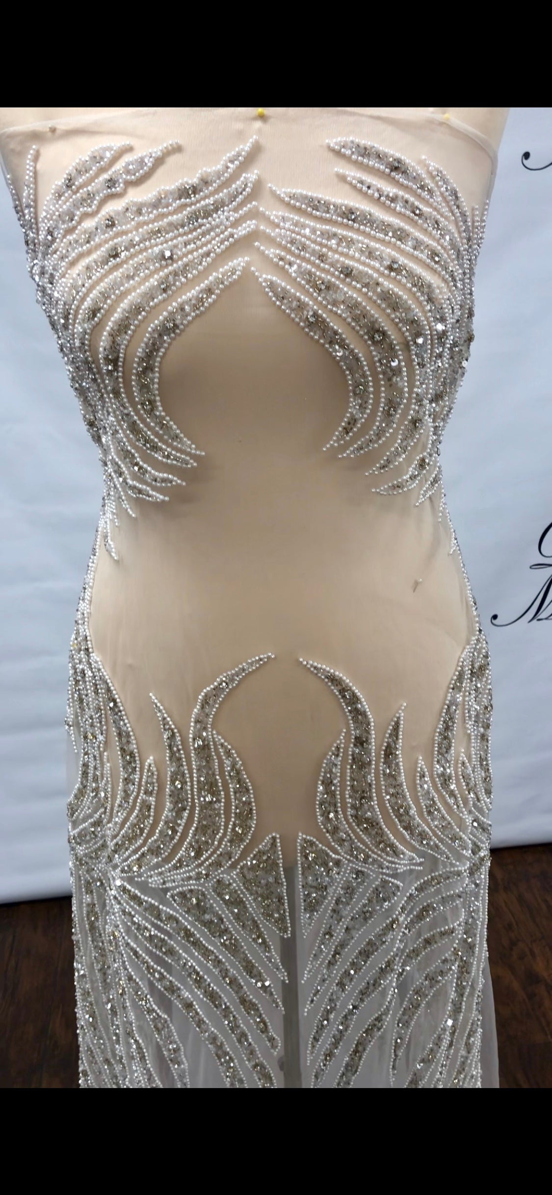 Beautiful beaded and rhinestone panels perfect for appliques on dresses.