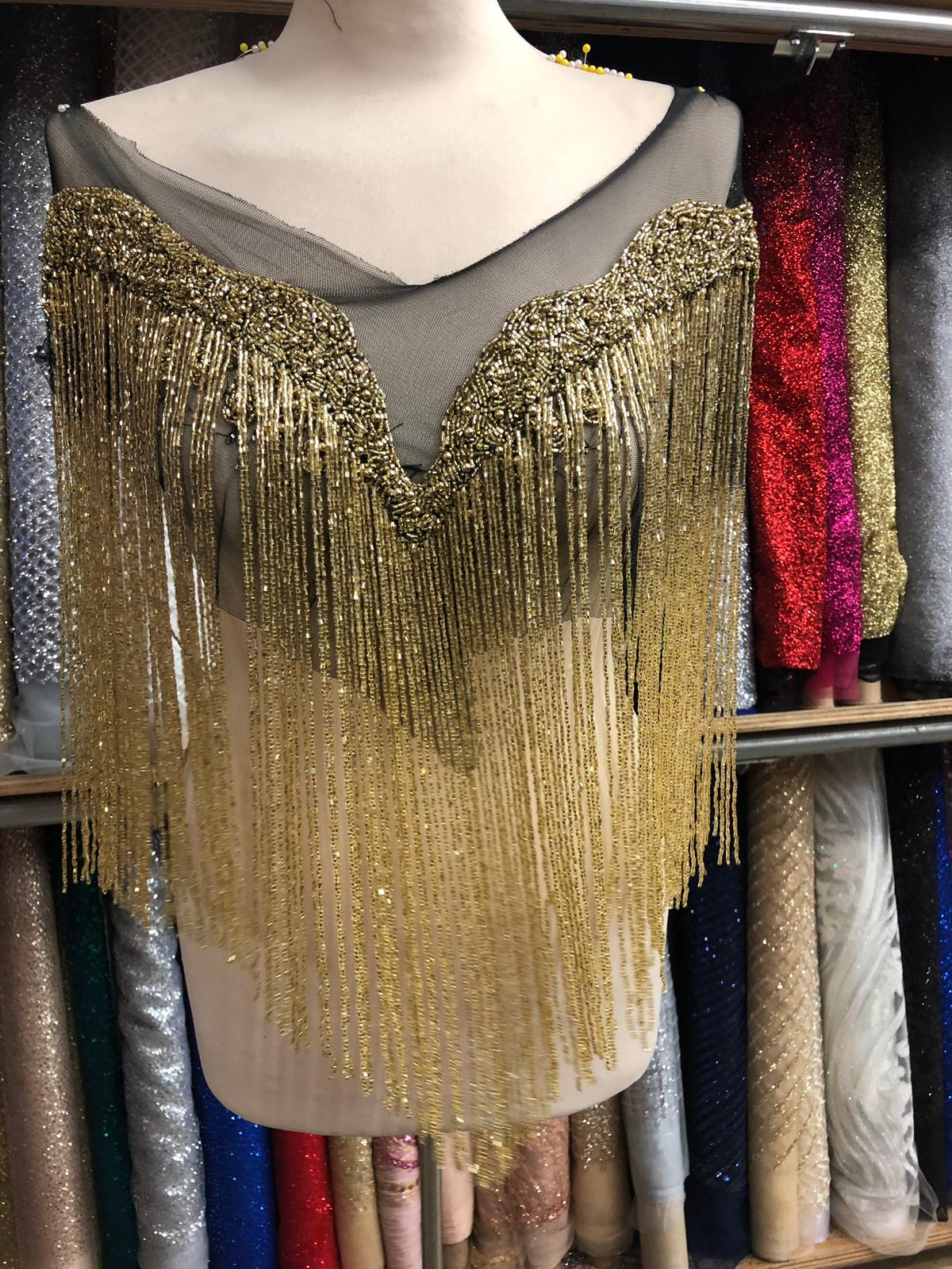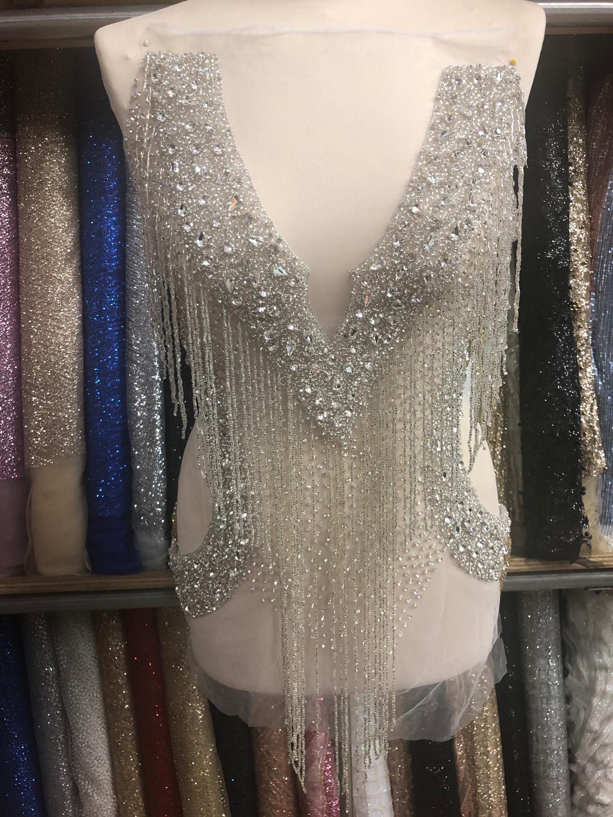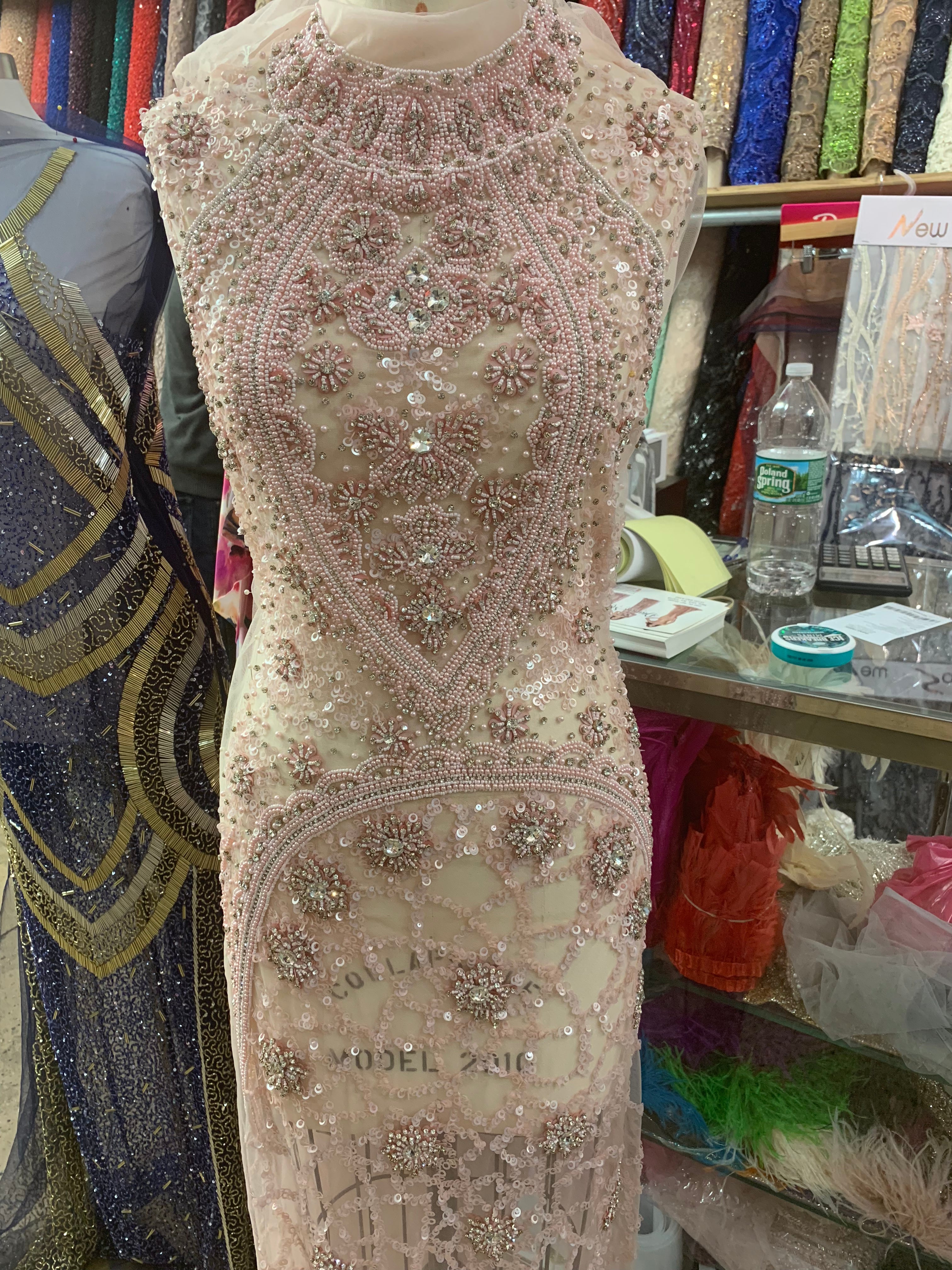 Beautiful beaded and rhinestone panels perfect for appliques on dresses.