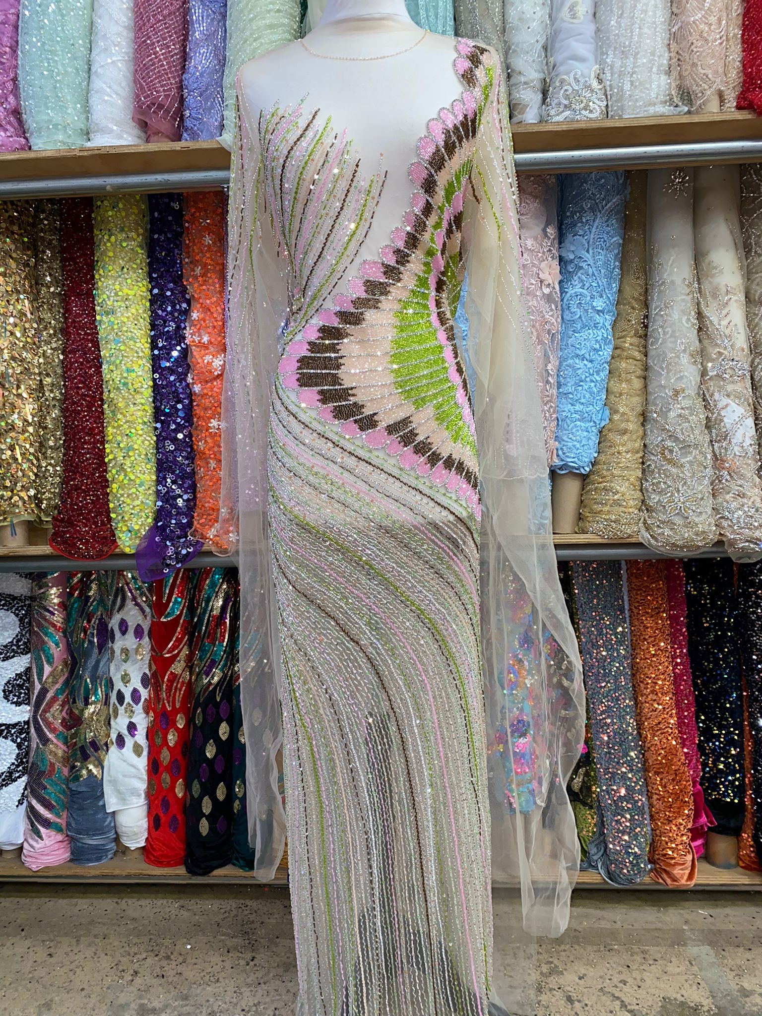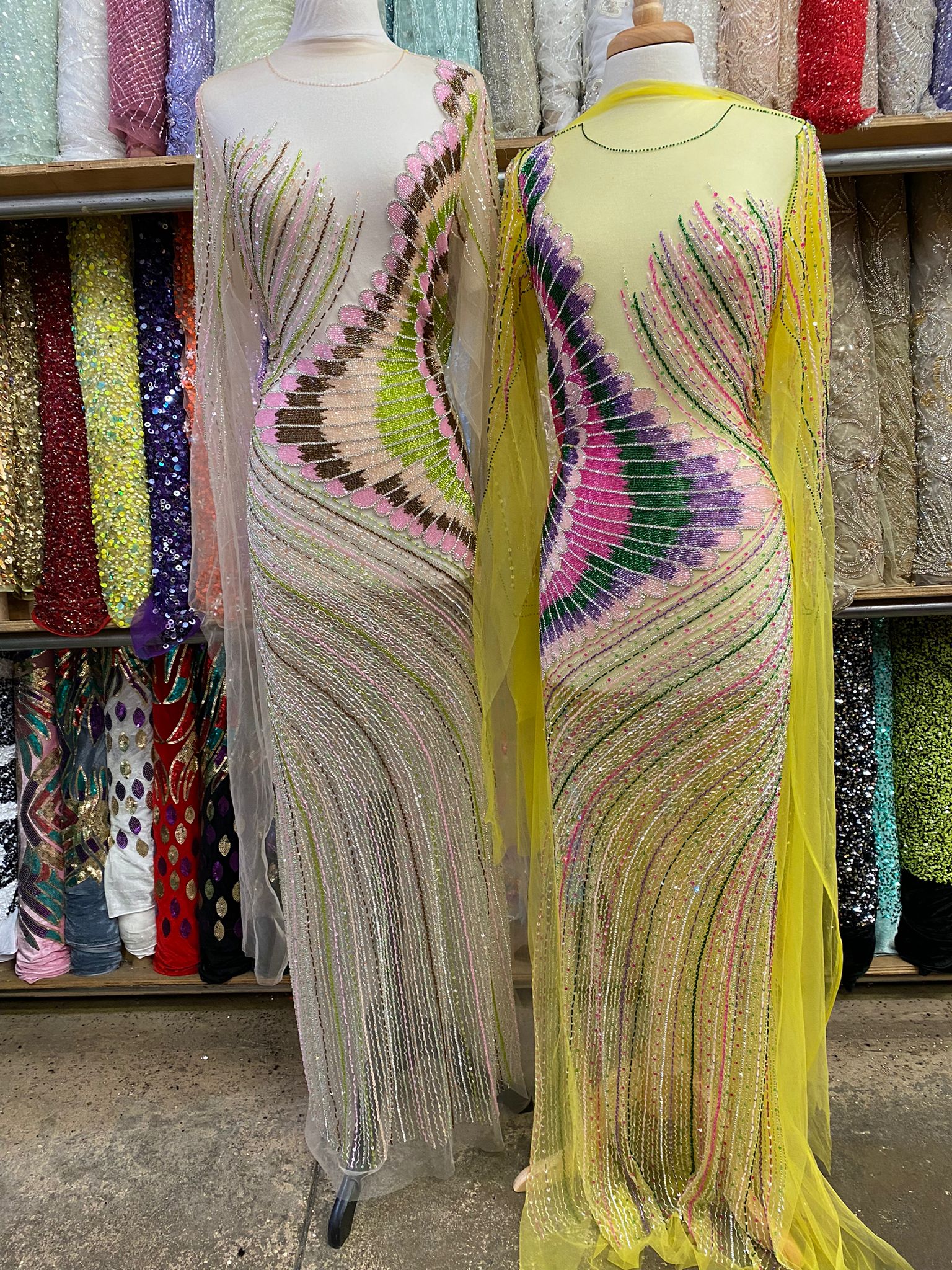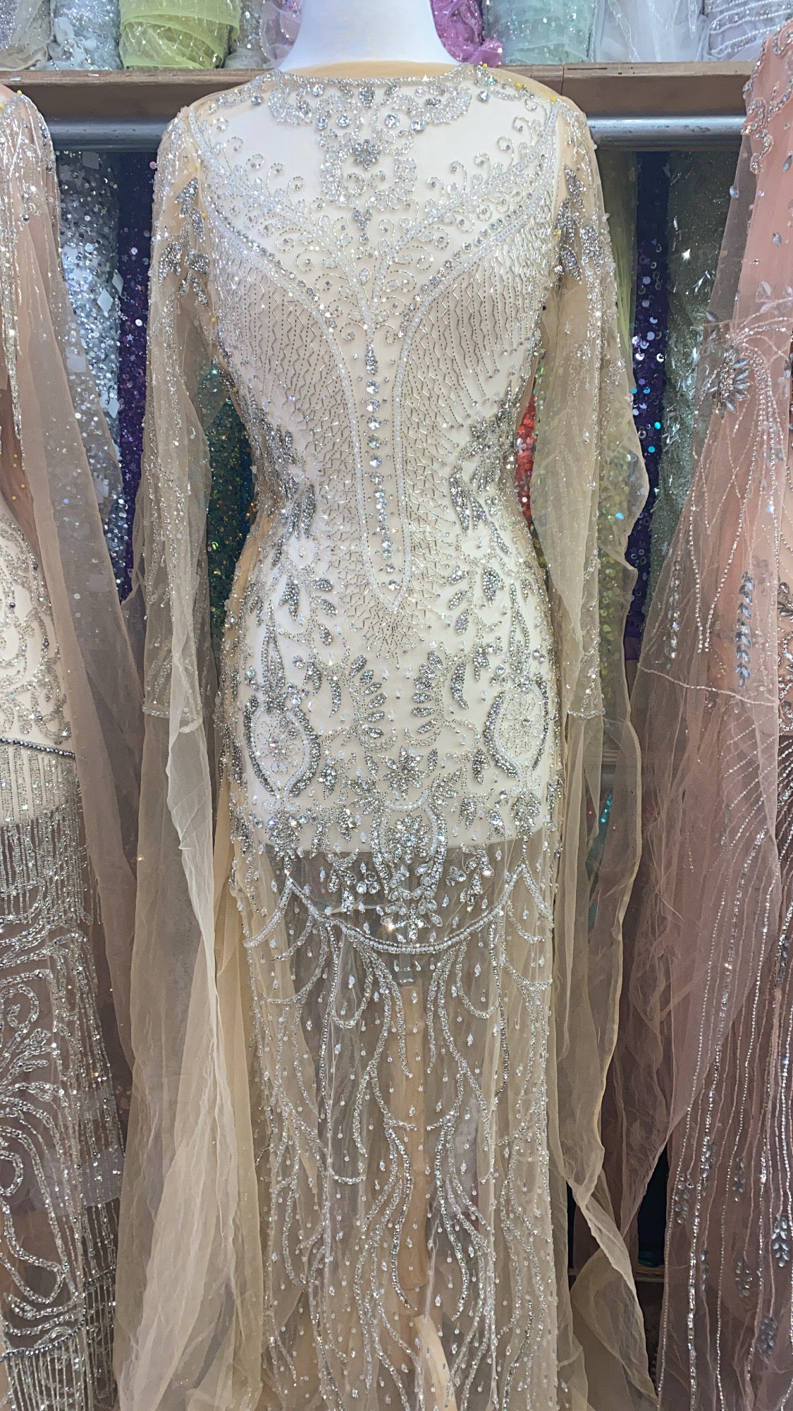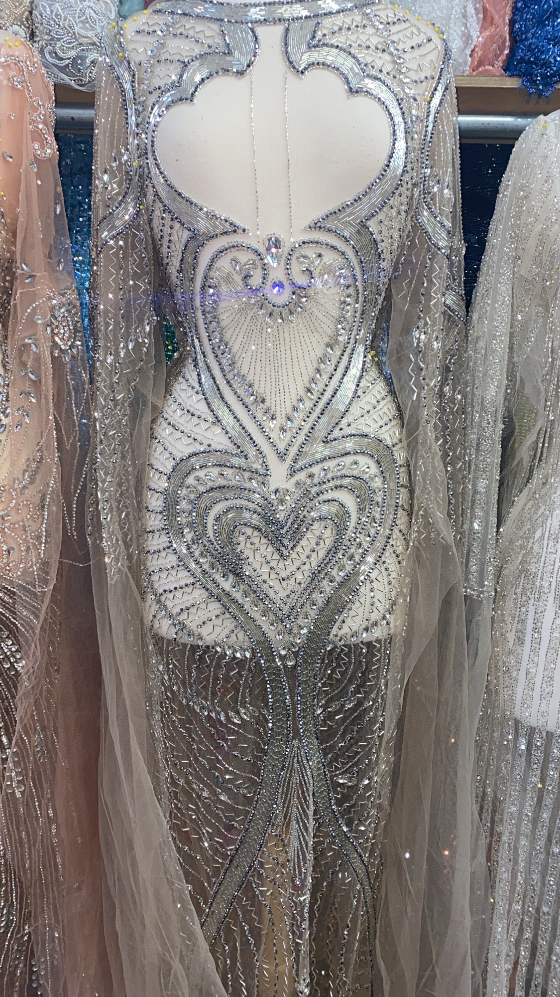 Beautiful beaded and rhinestone panels perfect for appliques on dresses.