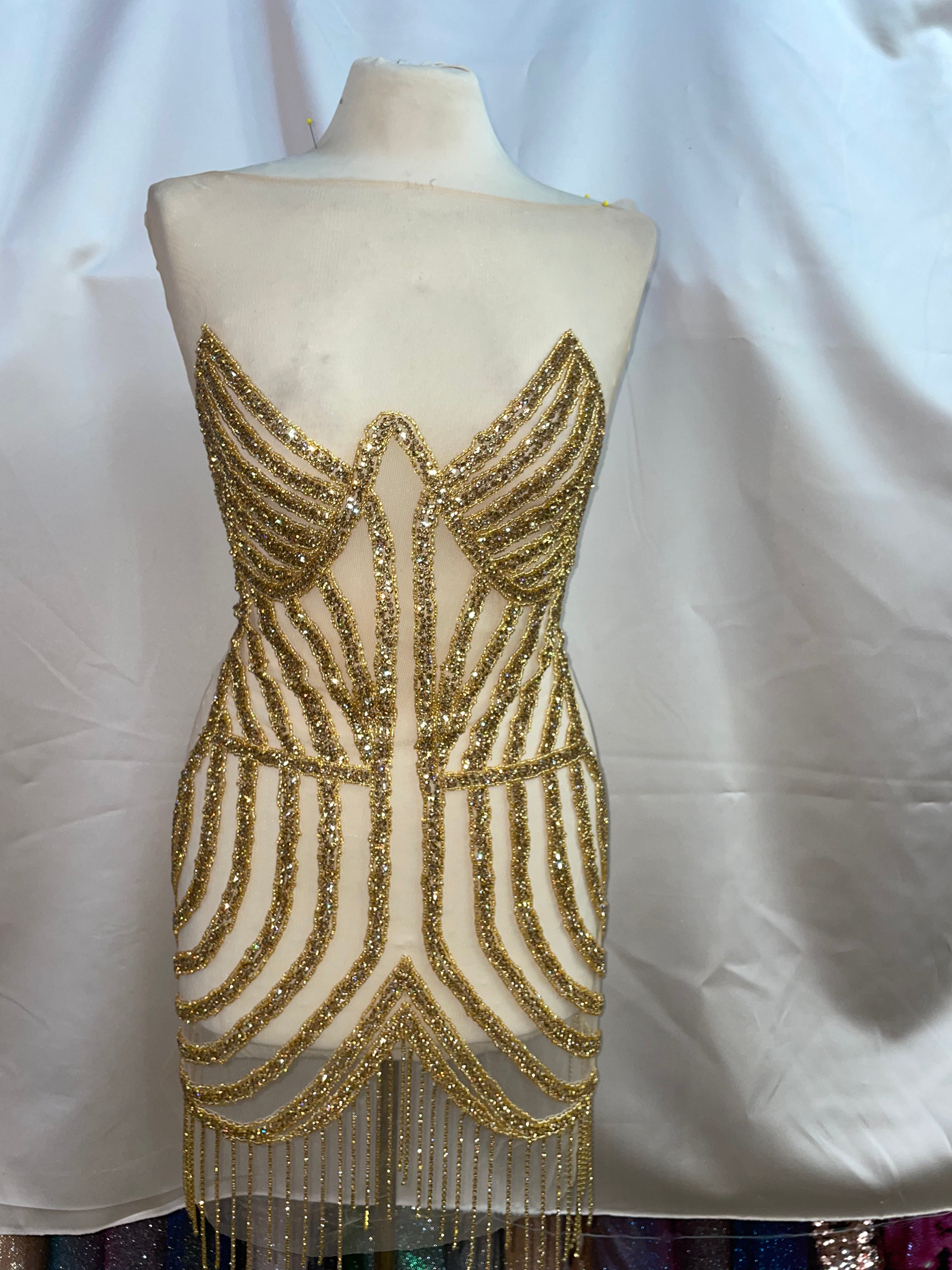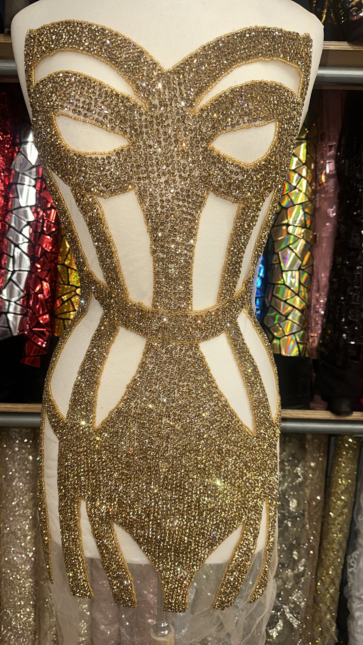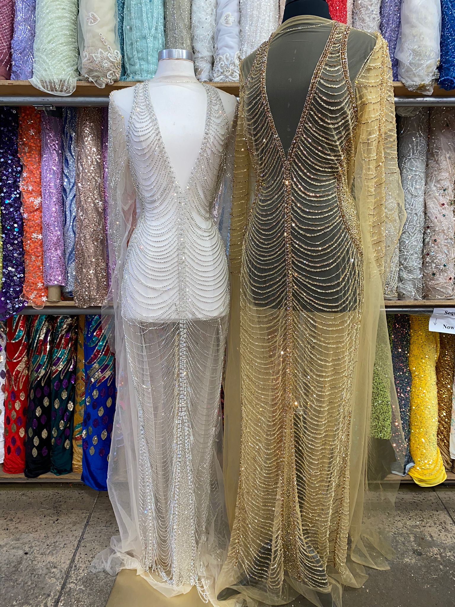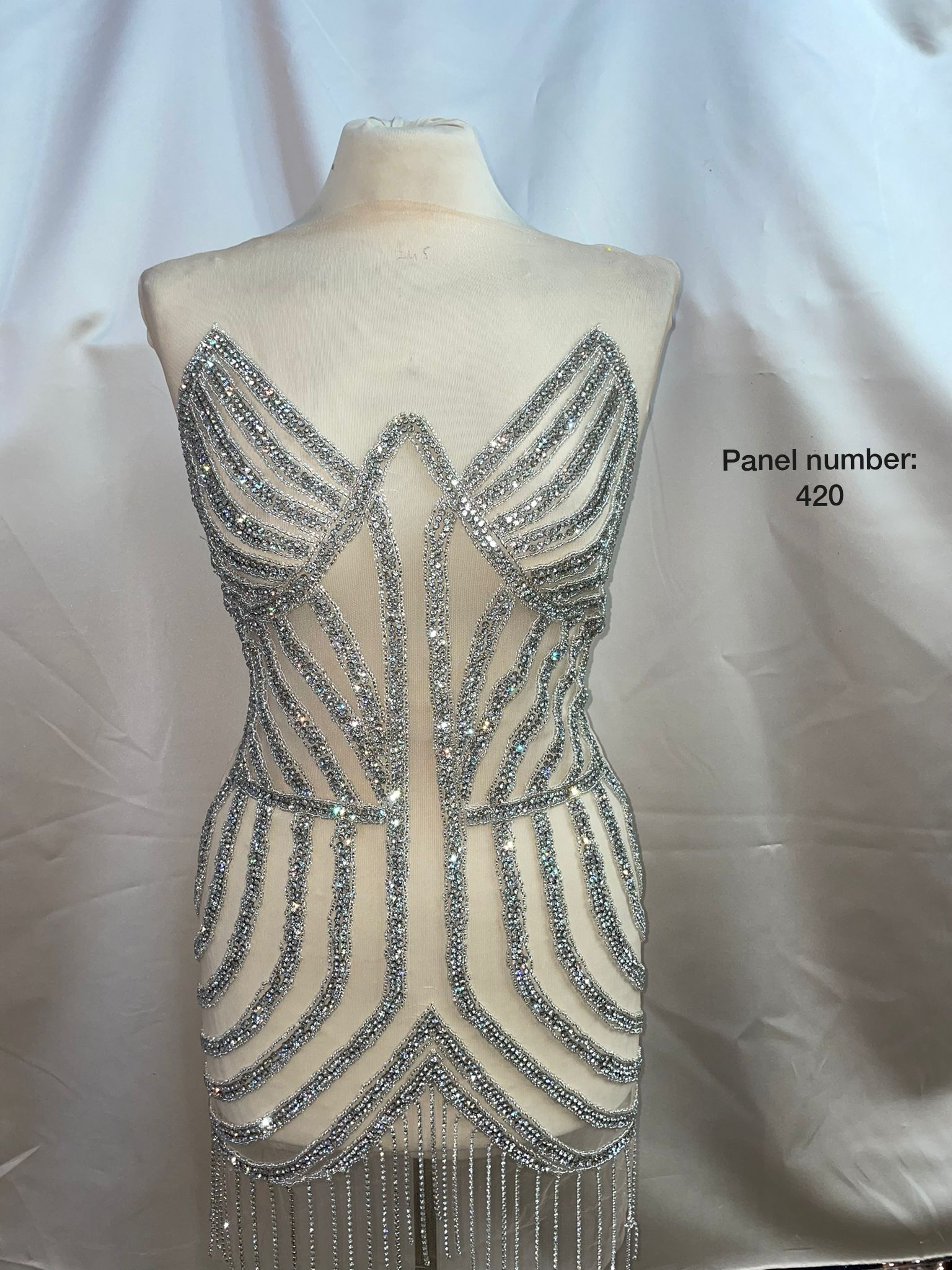 Beautiful beaded and rhinestone panels perfect for appliques on dresses.