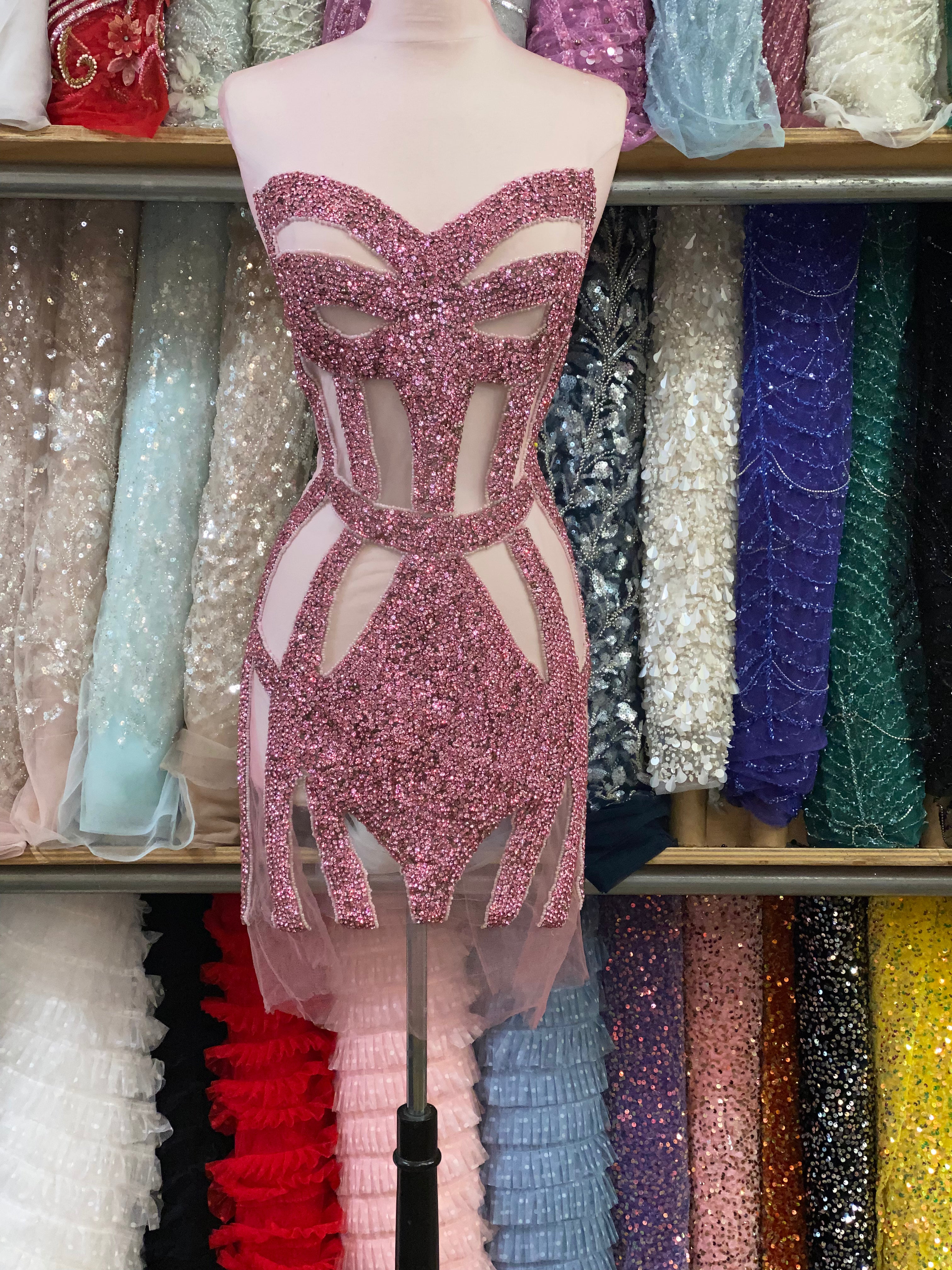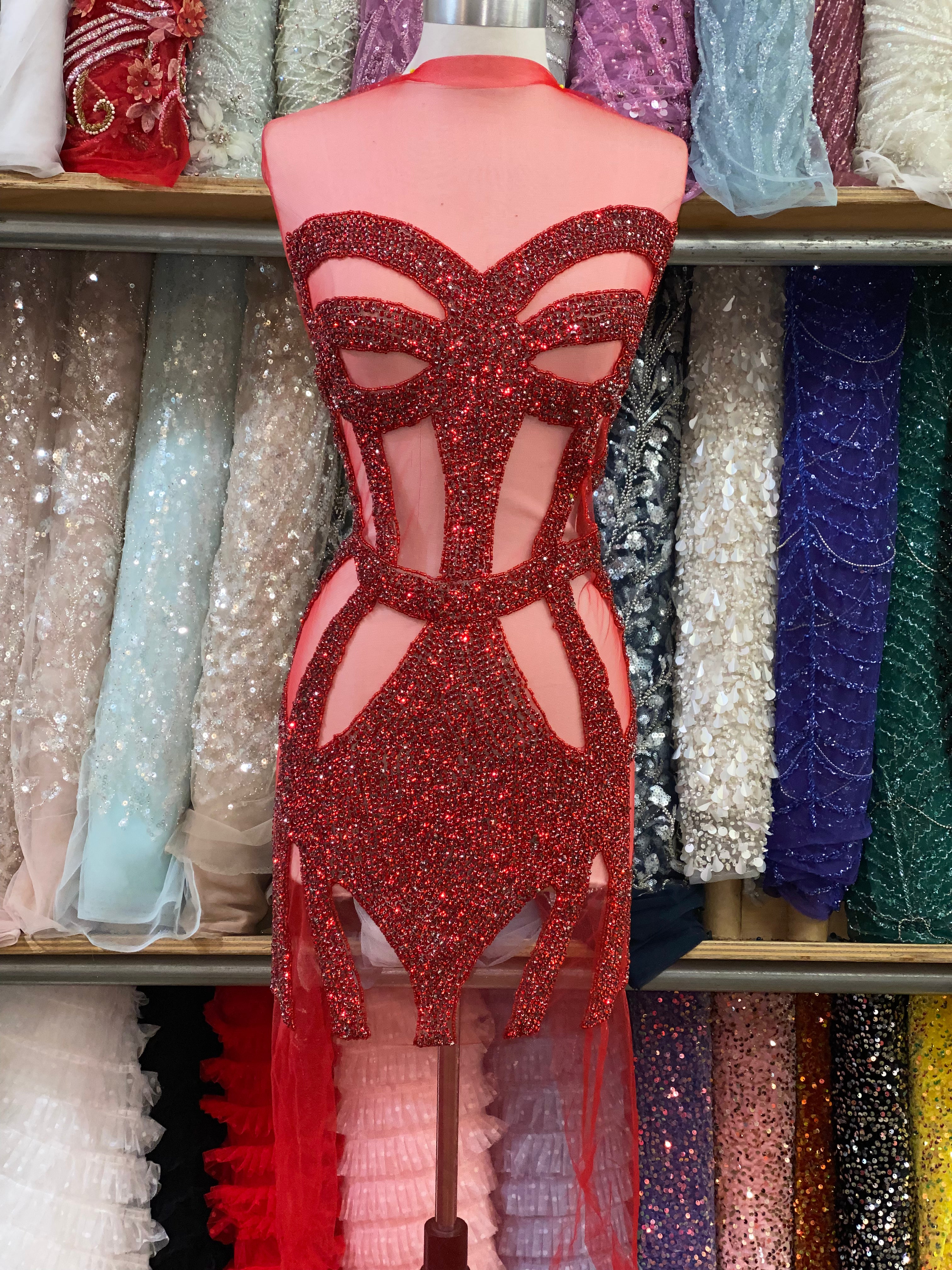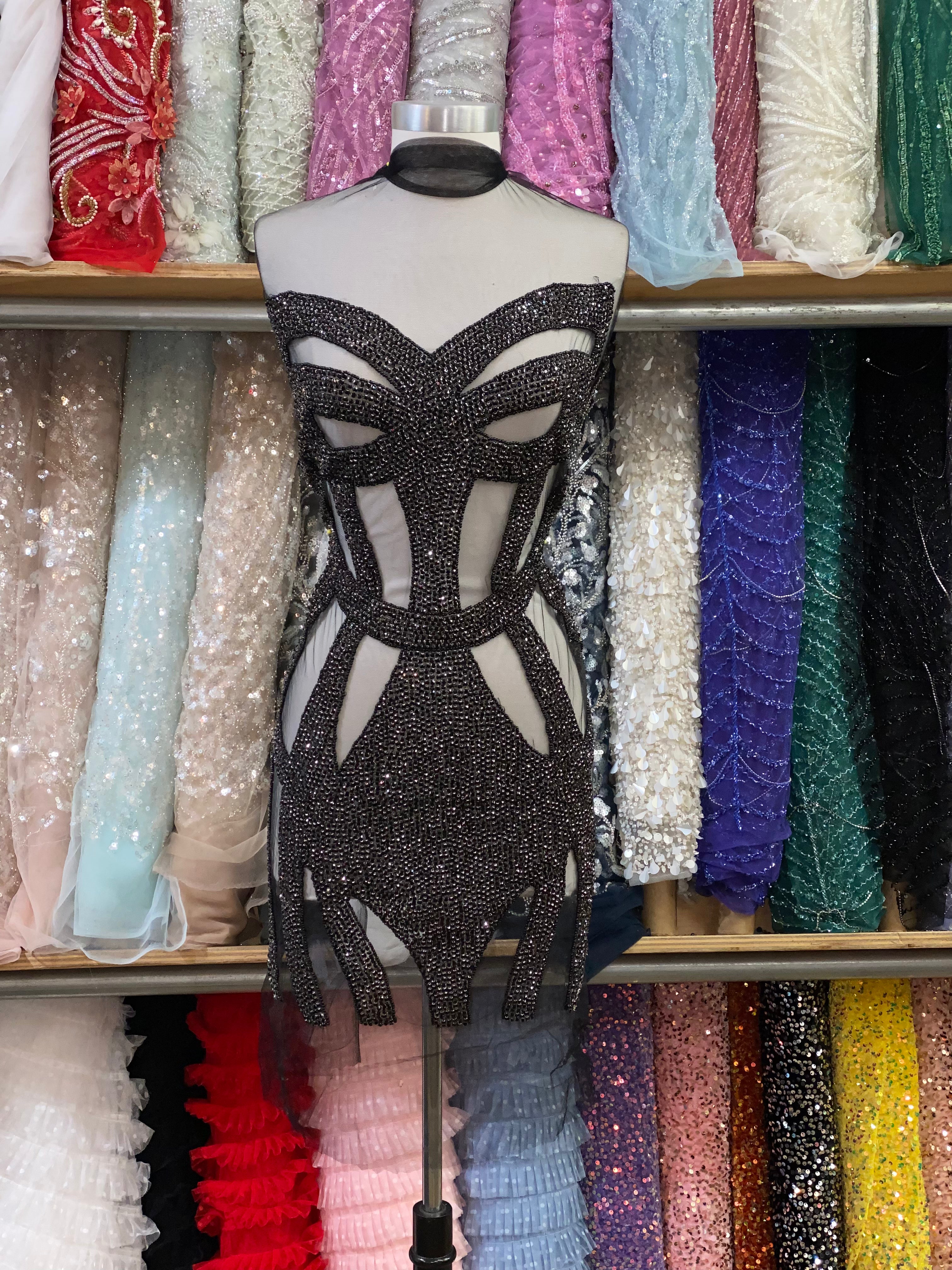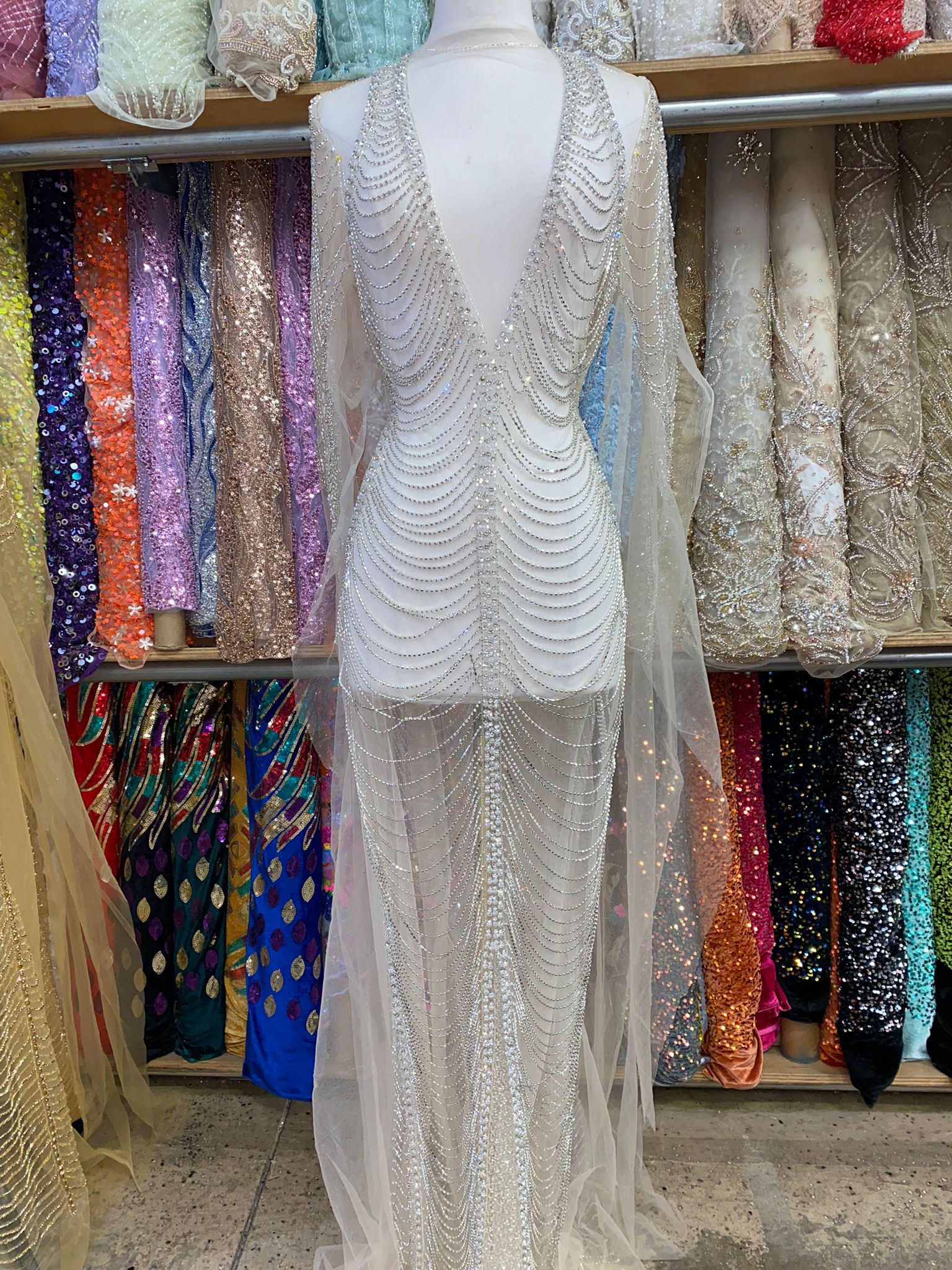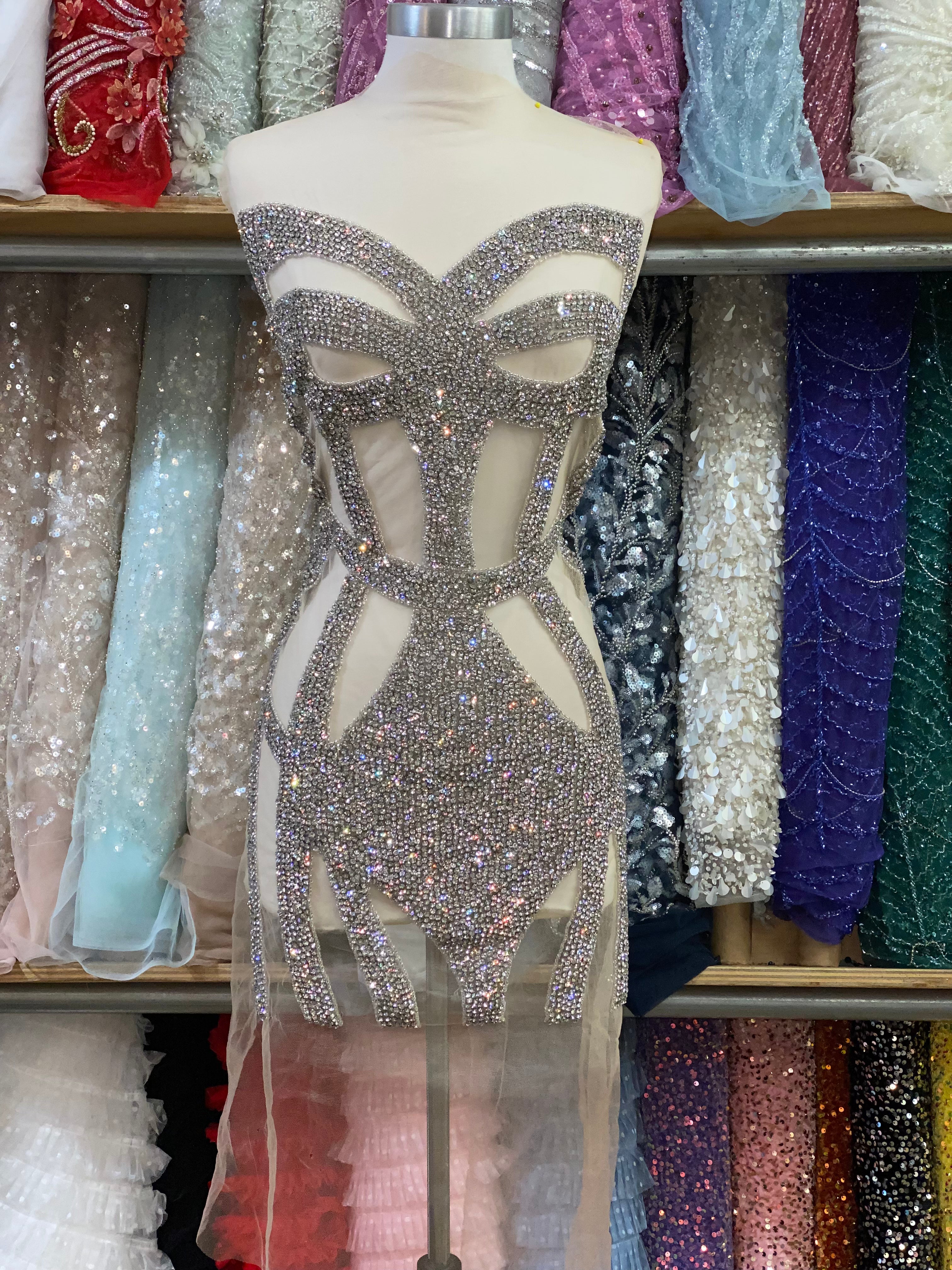 Beautiful beaded and rhinestone panels perfect for appliques on dresses.