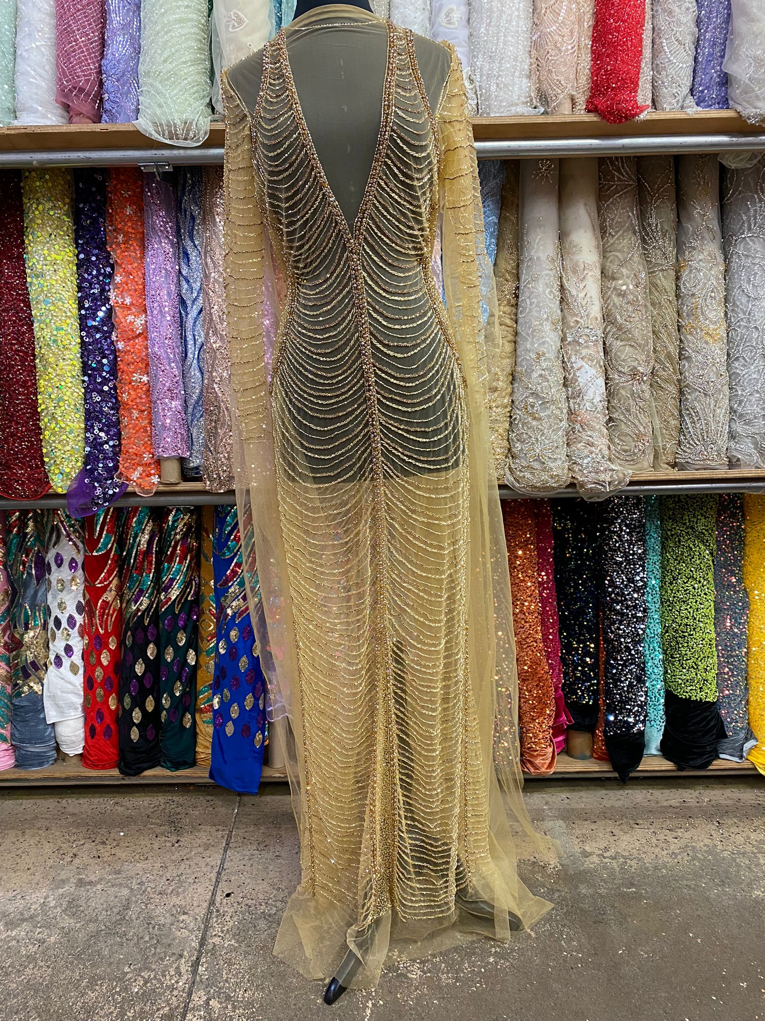 Alice Hand Beaded Front and Back Applique Dress Panel with Sleeve