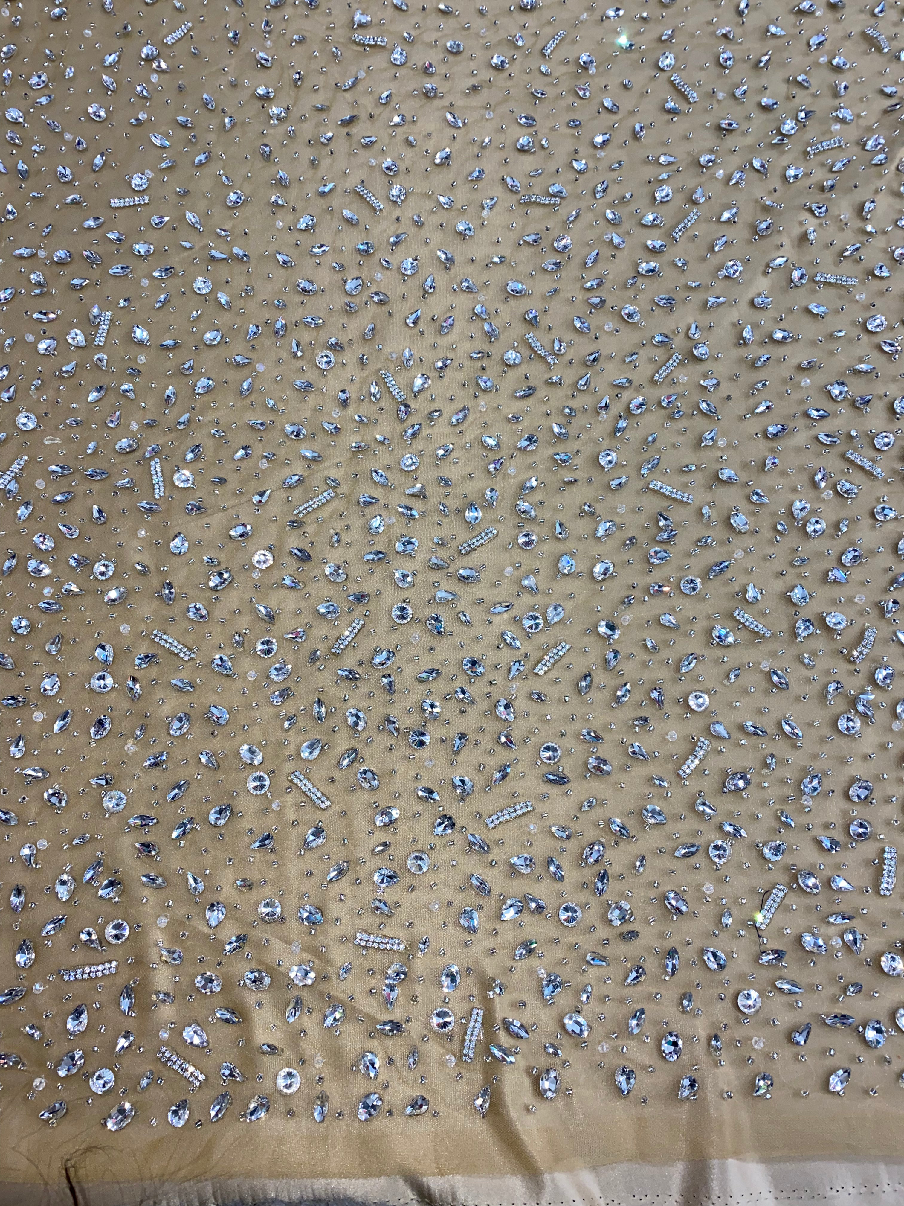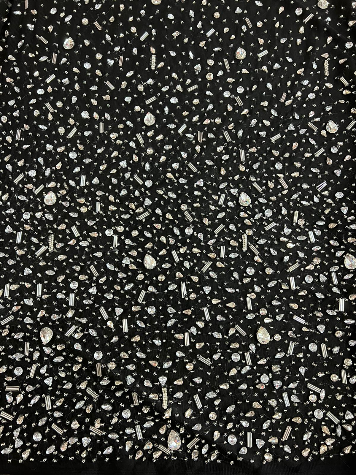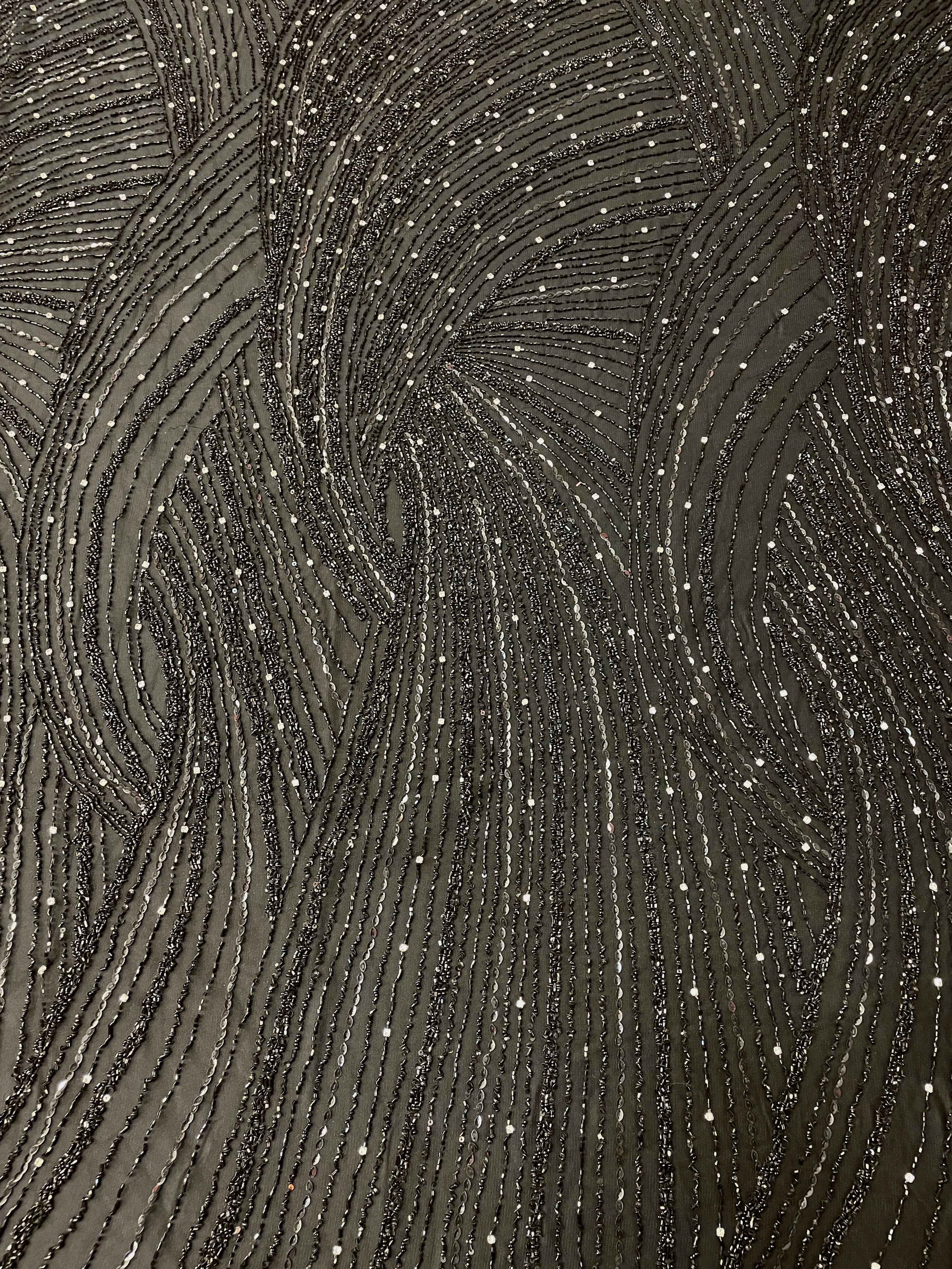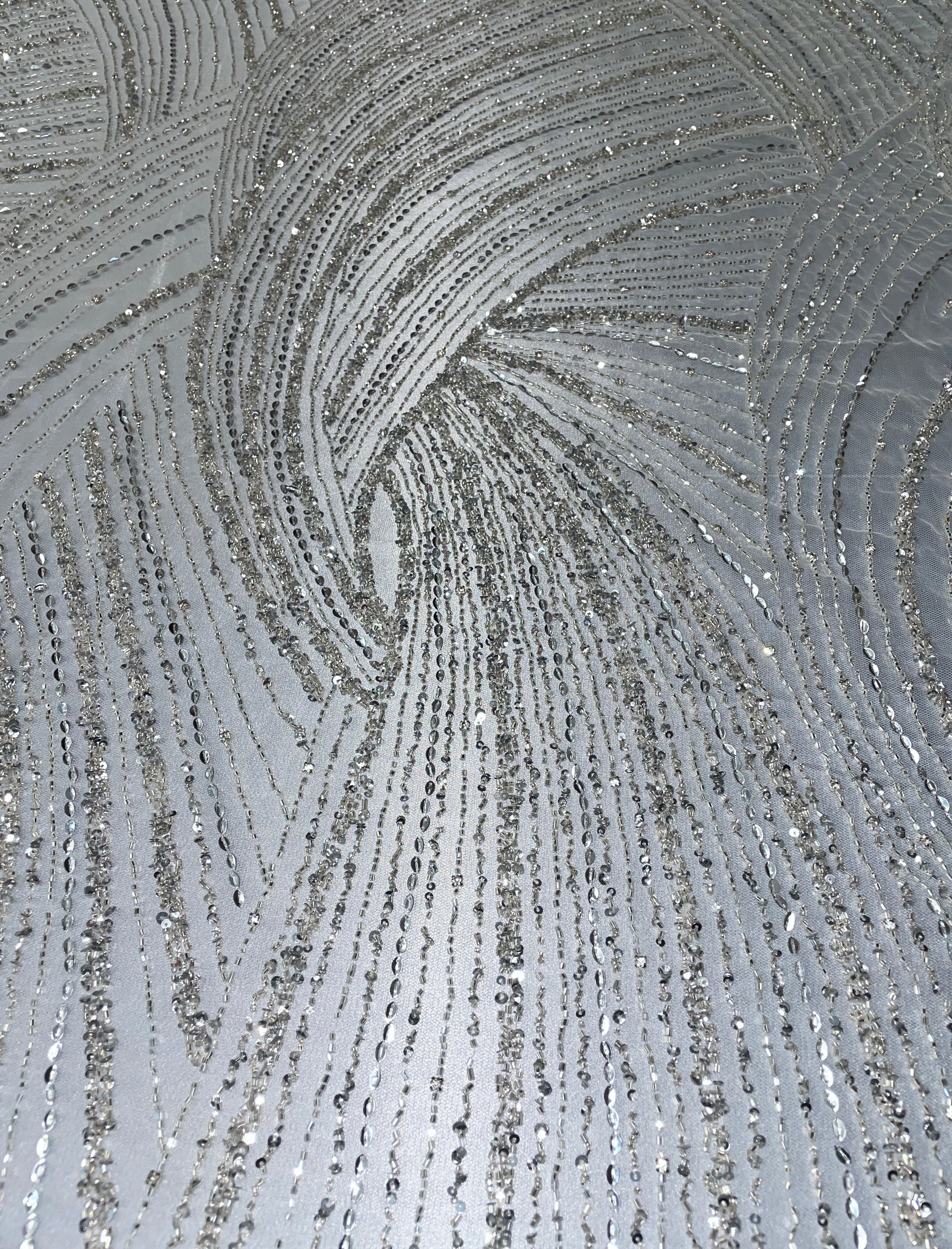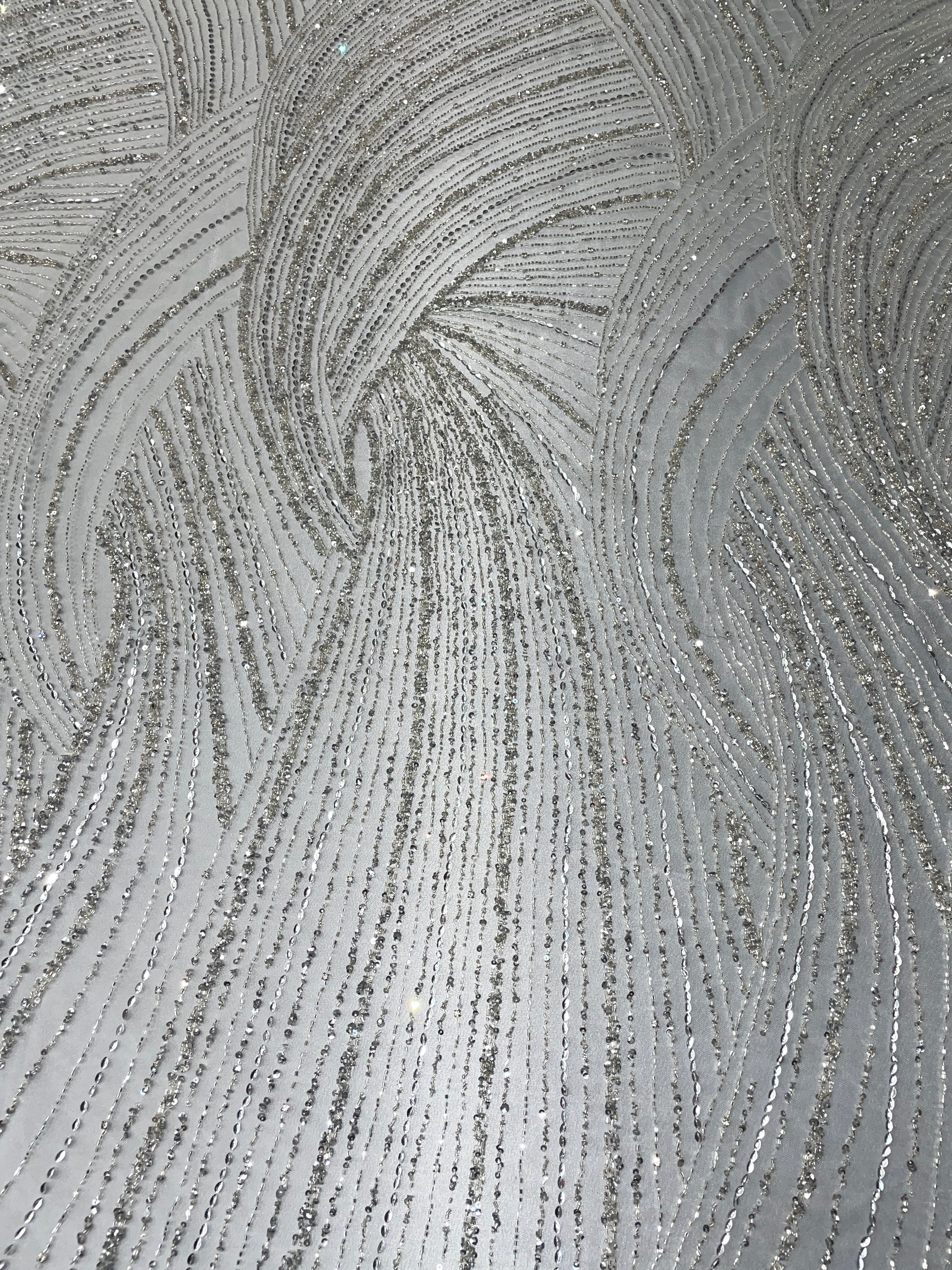 Swirl Hand Beaded And Sequin Mesh With Rhinestones