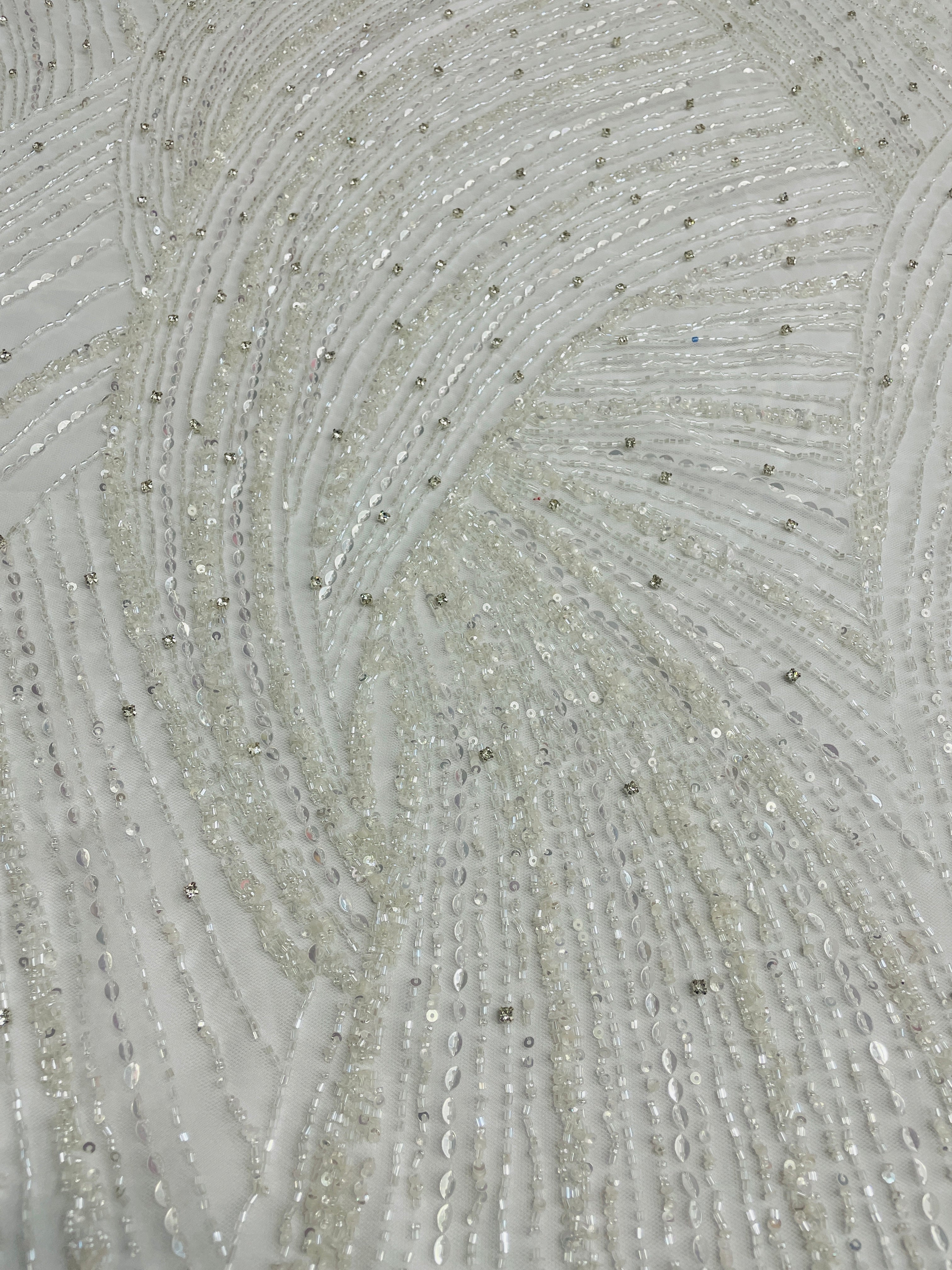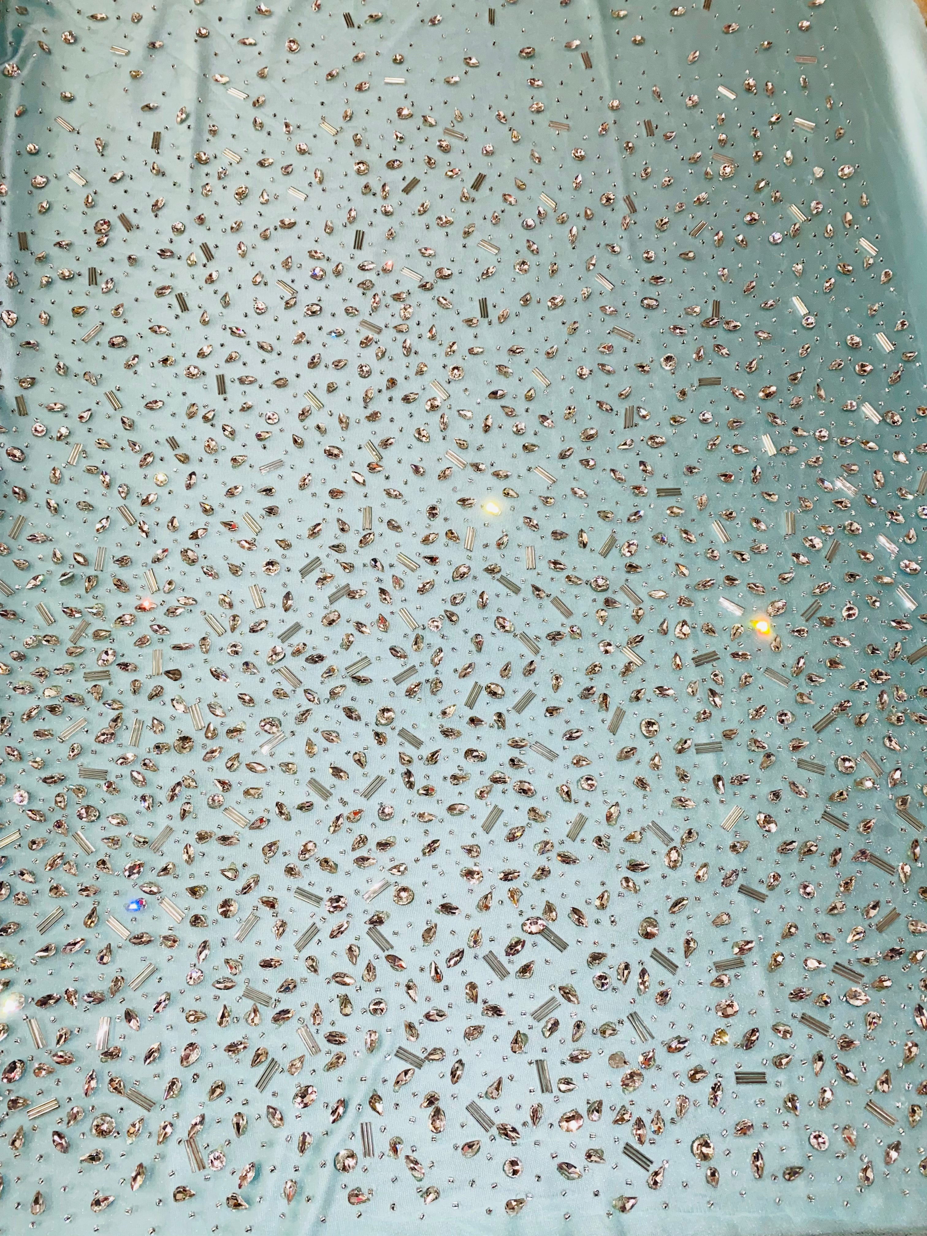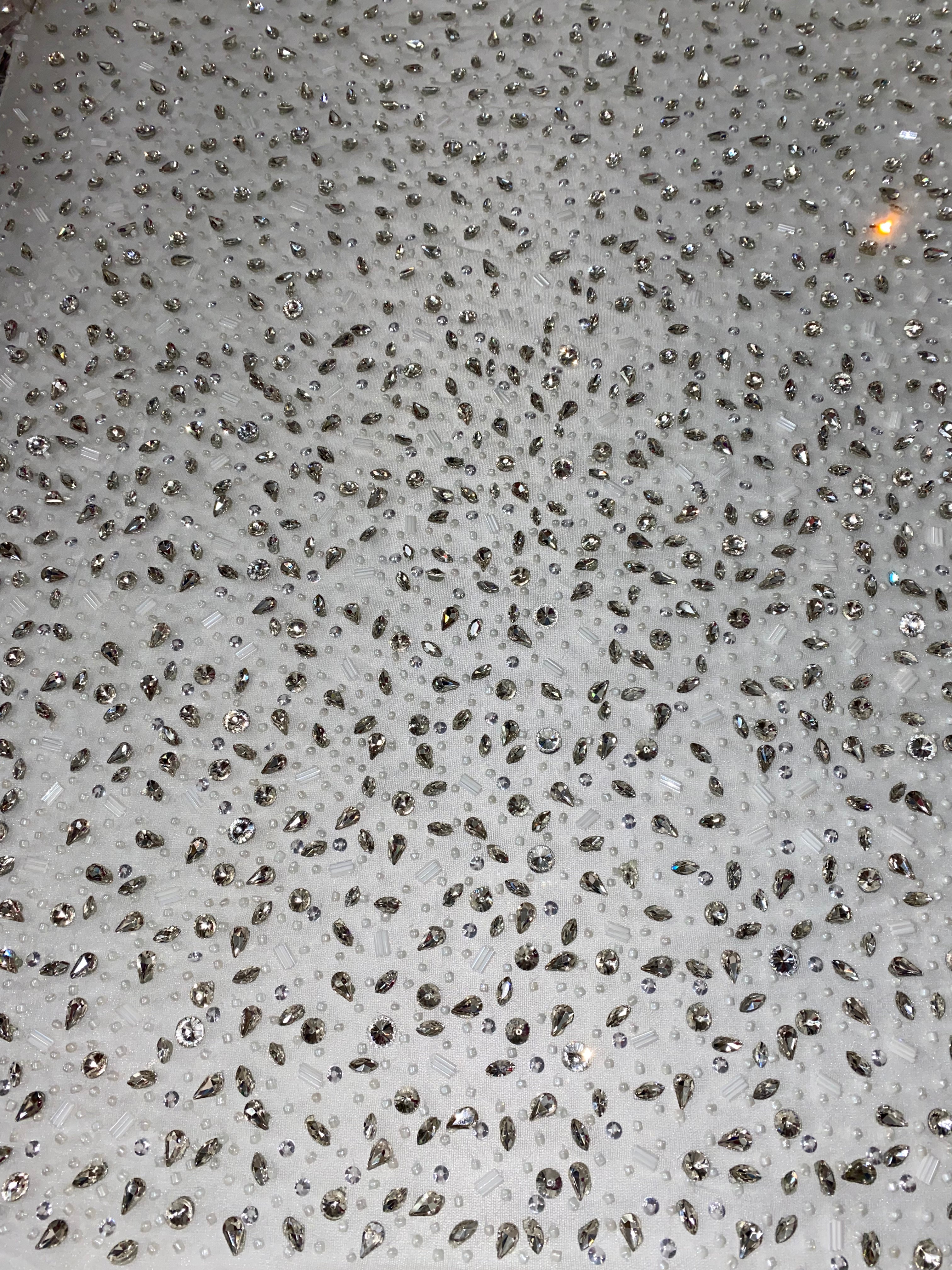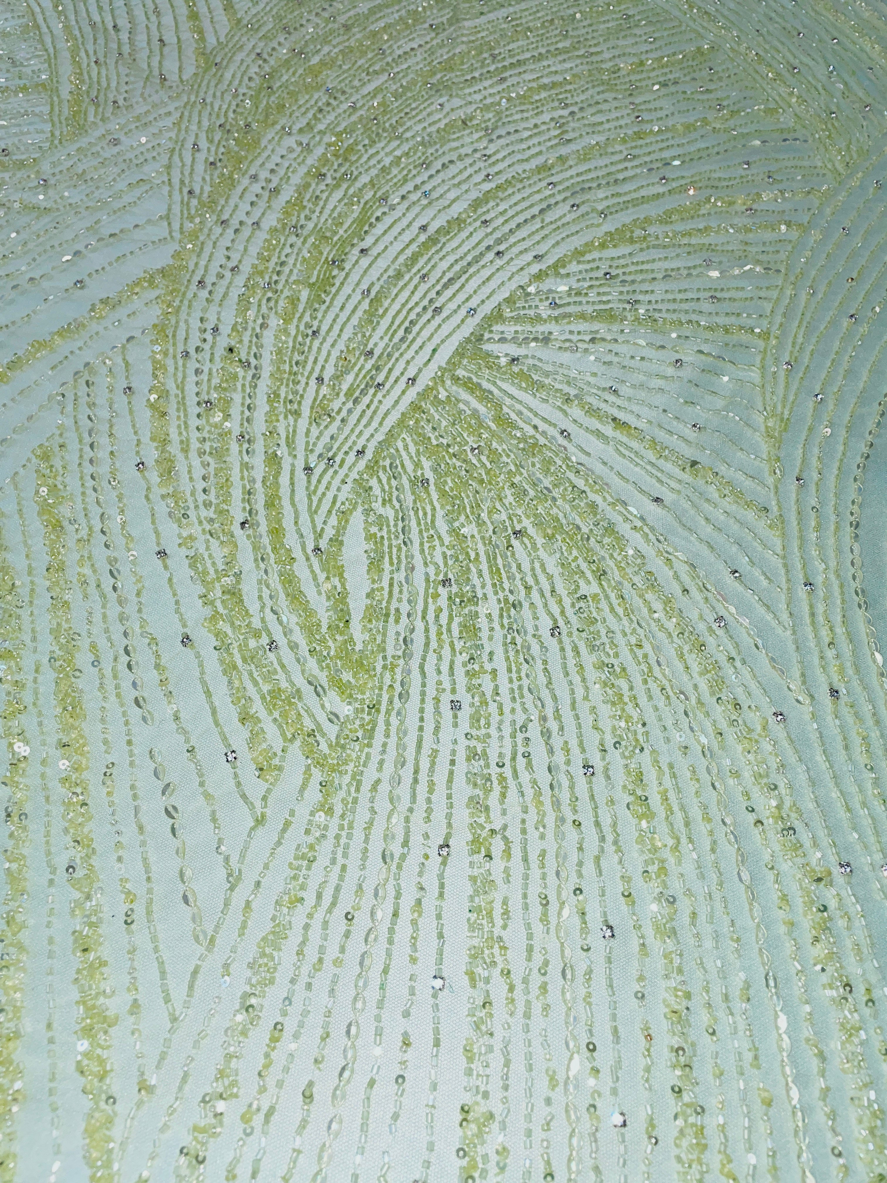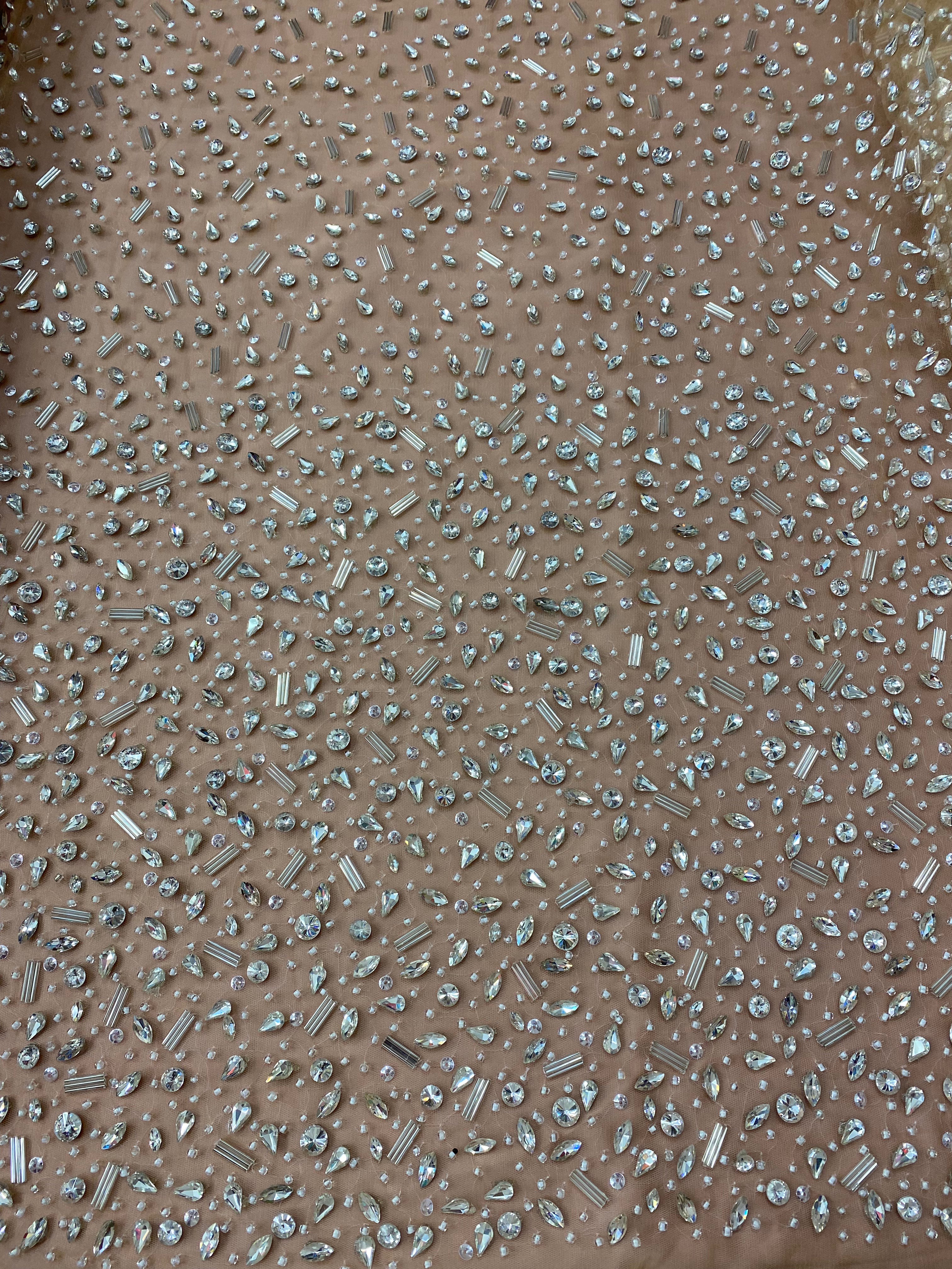 Swirl Hand Beaded And Sequin Mesh With Rhinestones