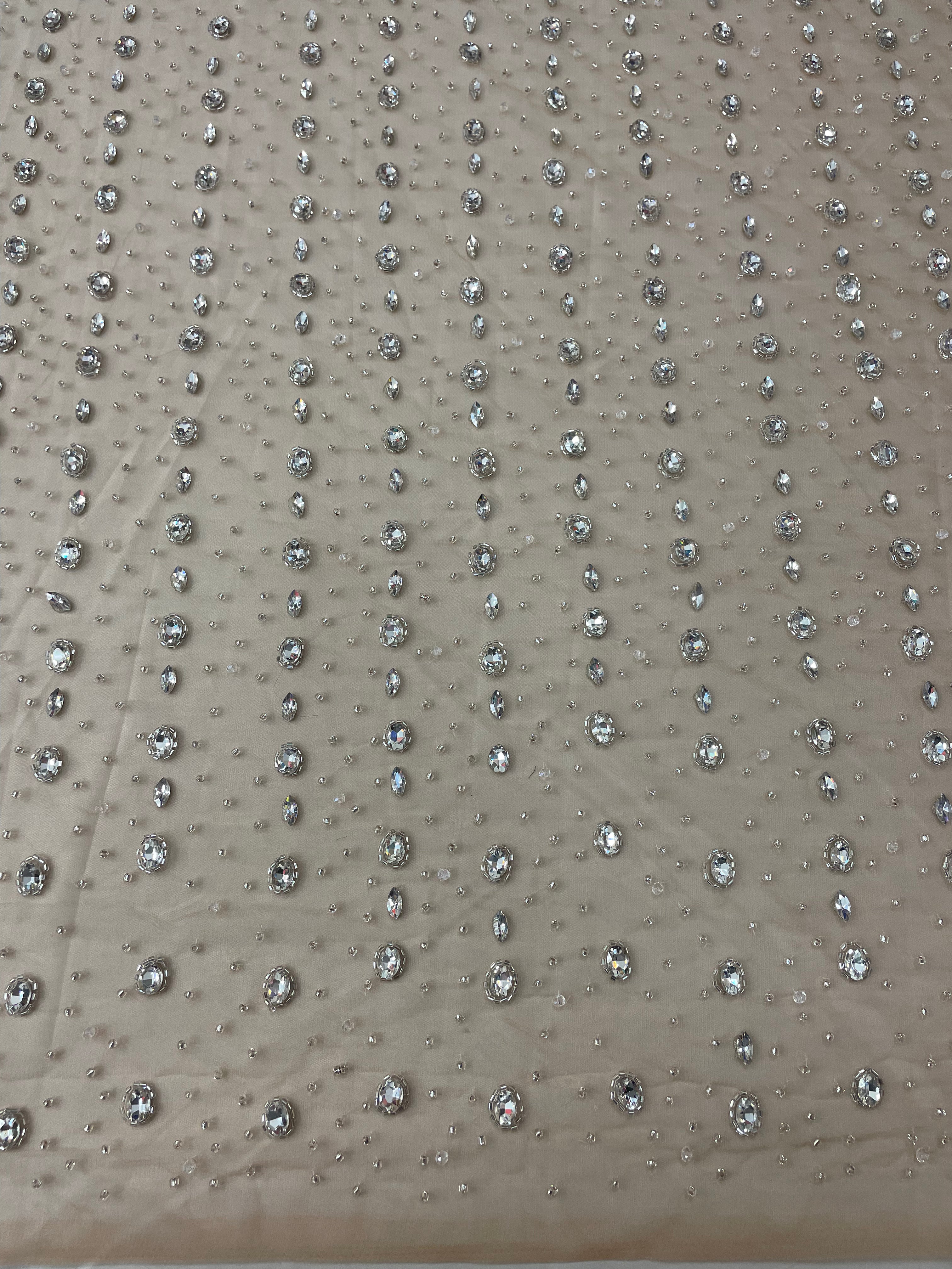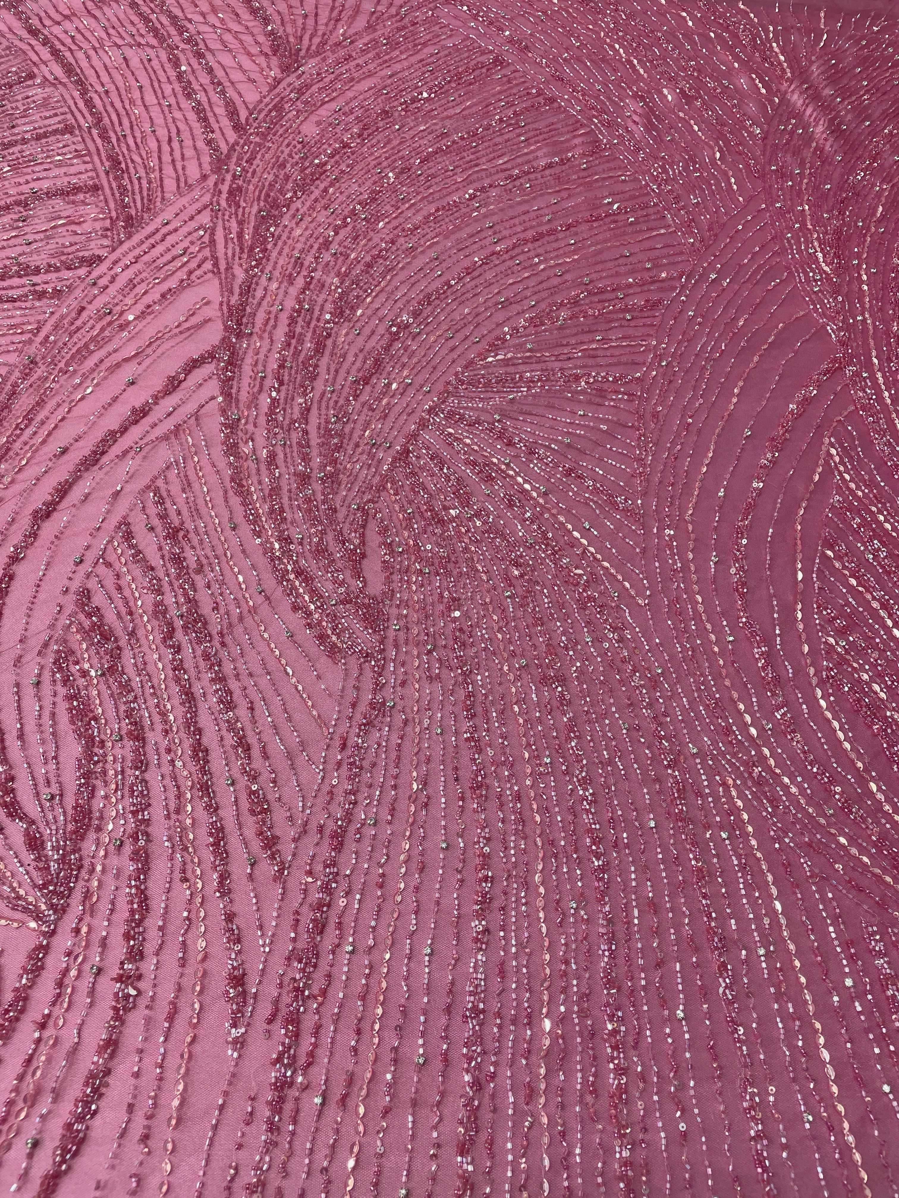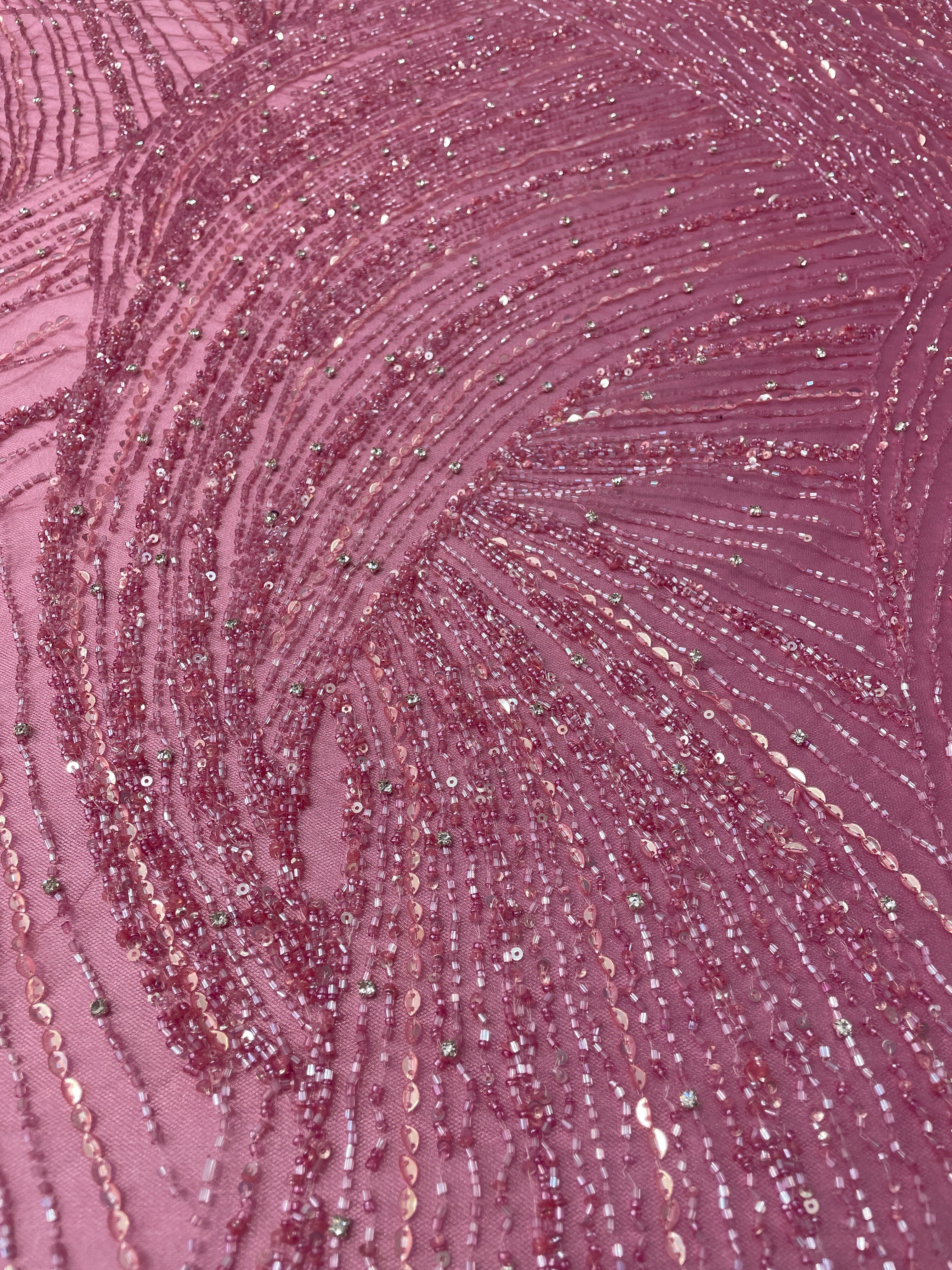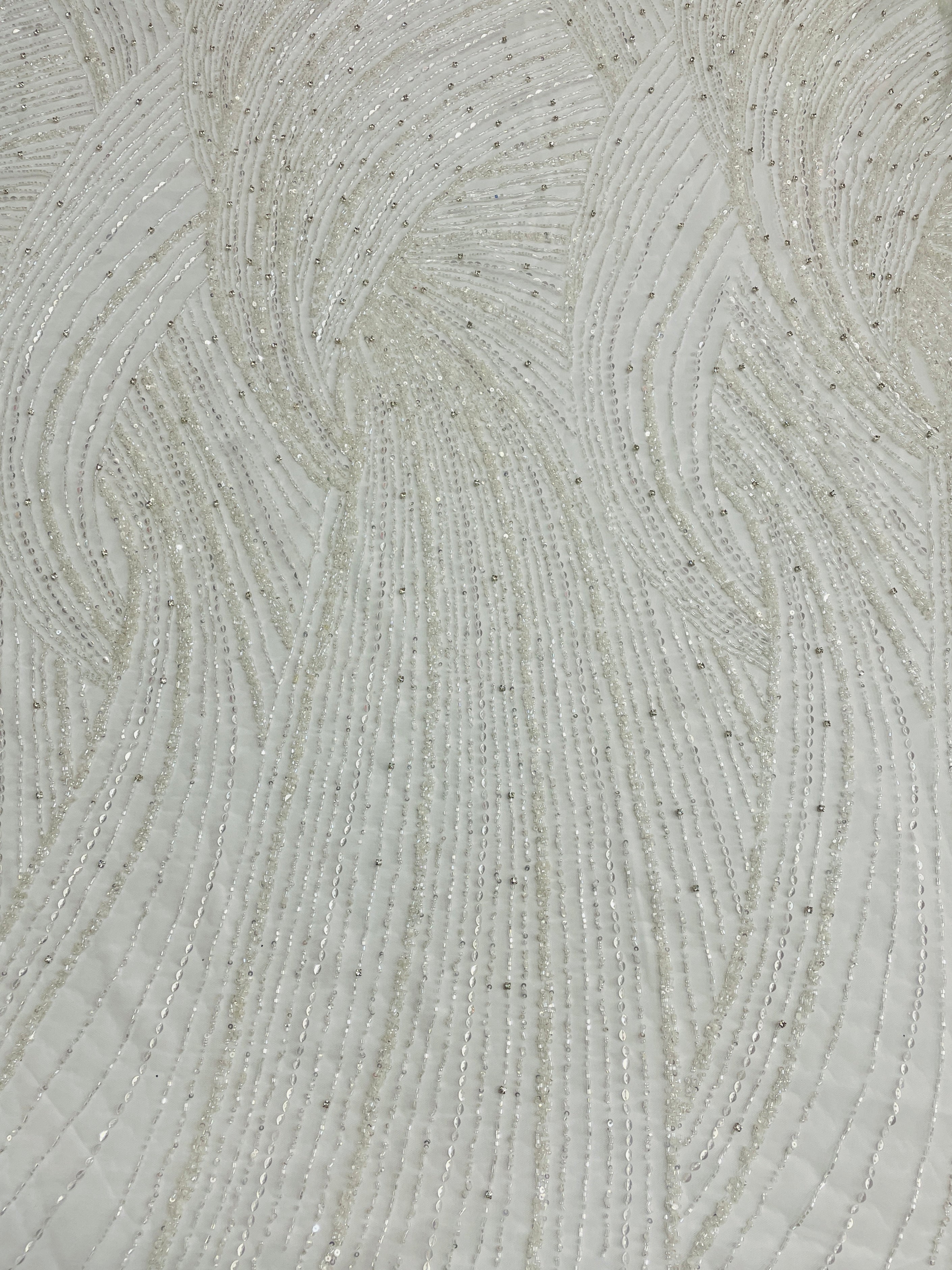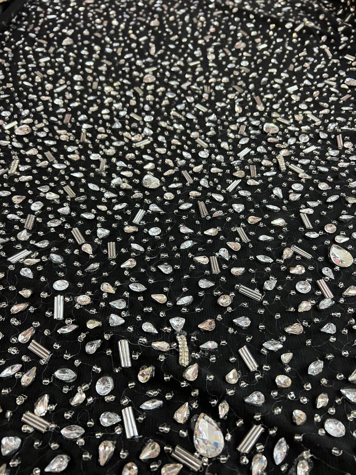 Swirl Hand Beaded And Sequin Mesh With Rhinestones