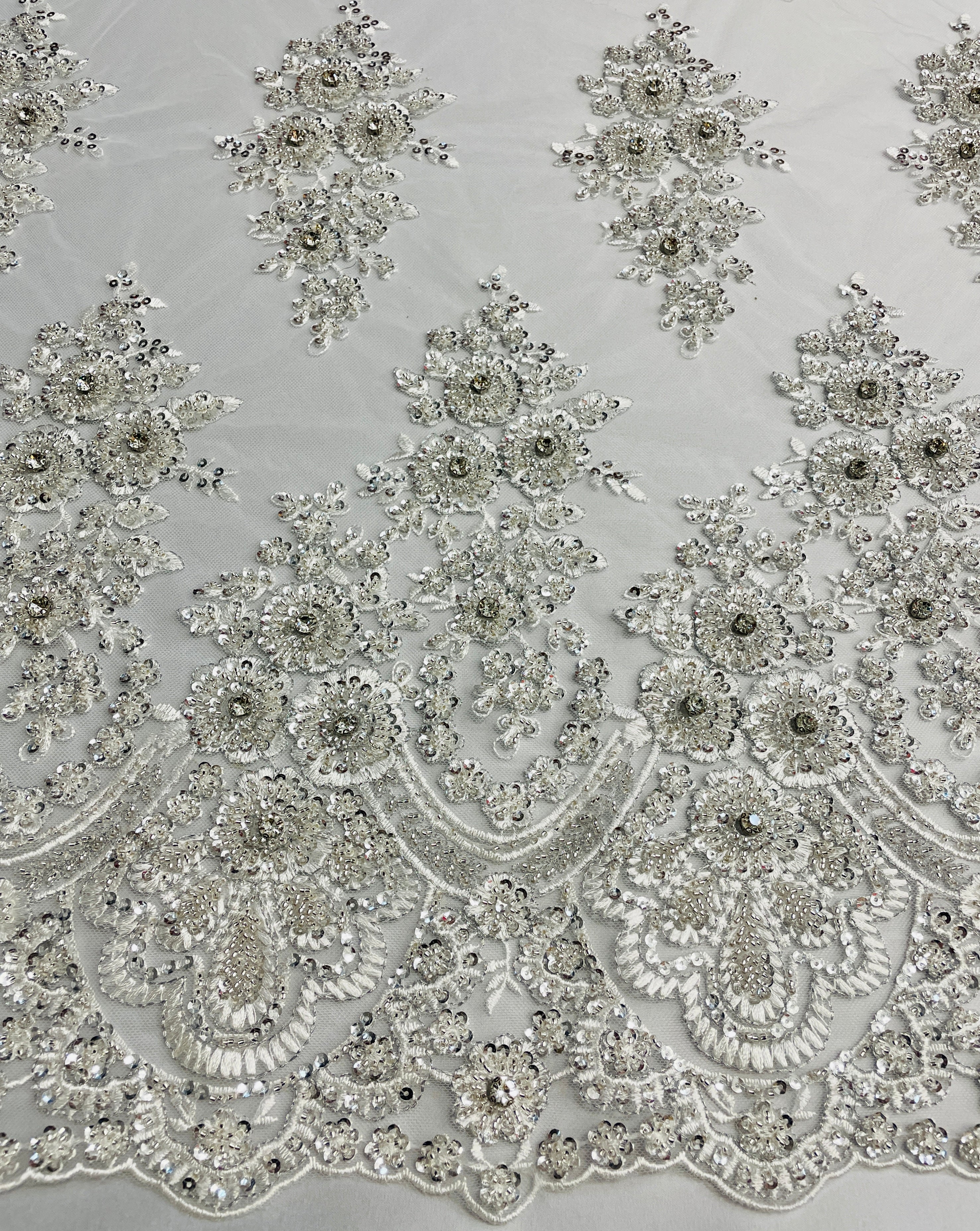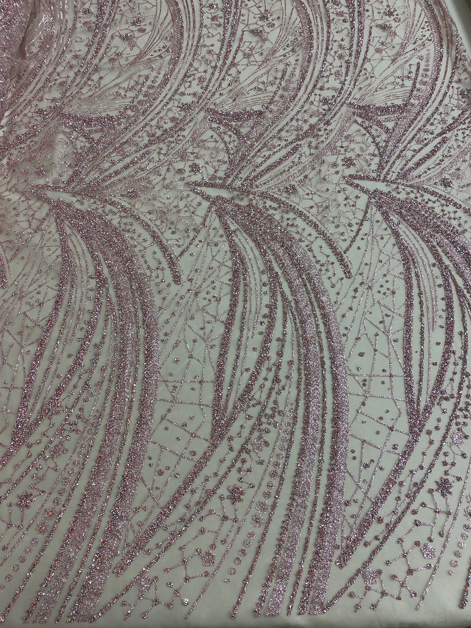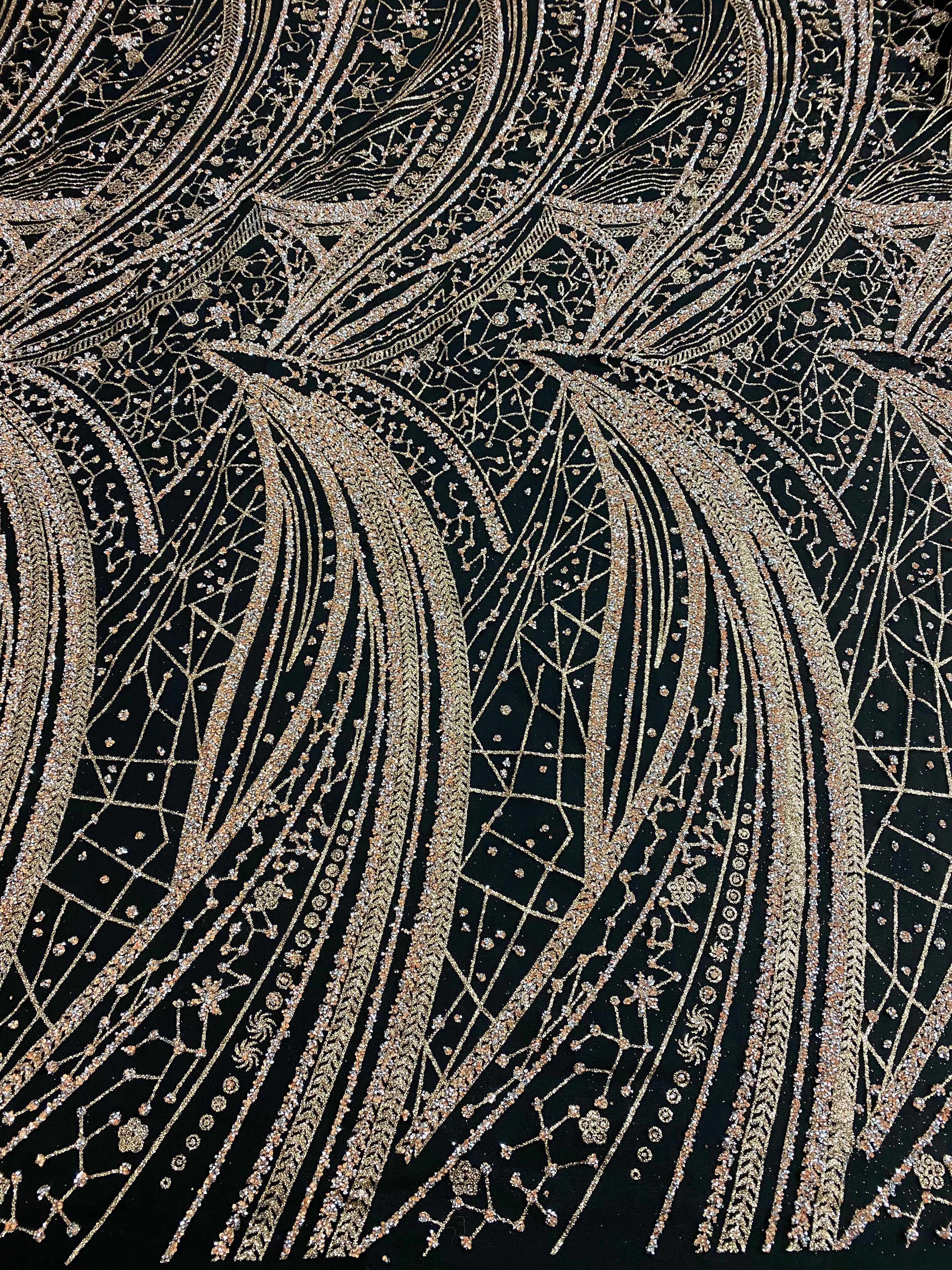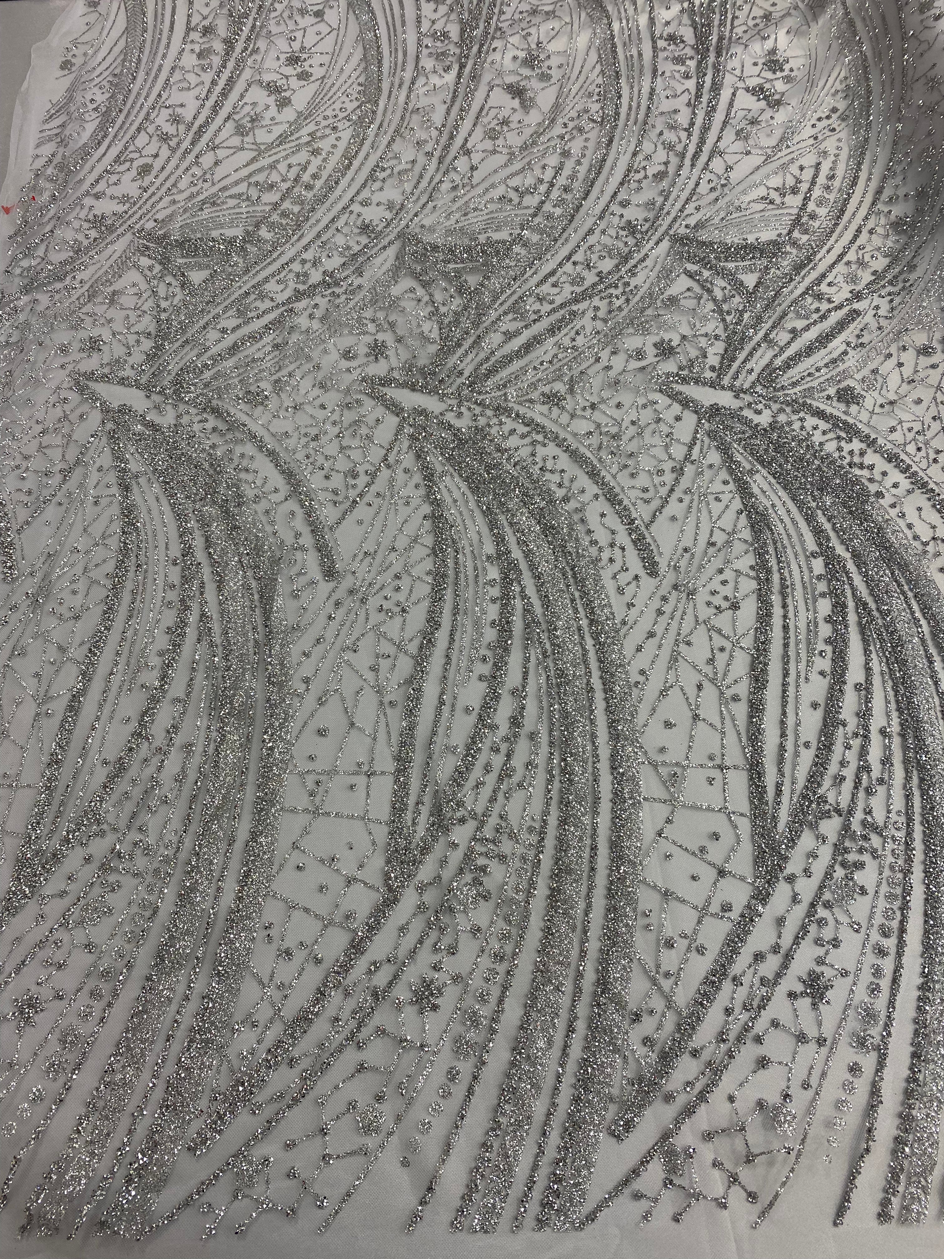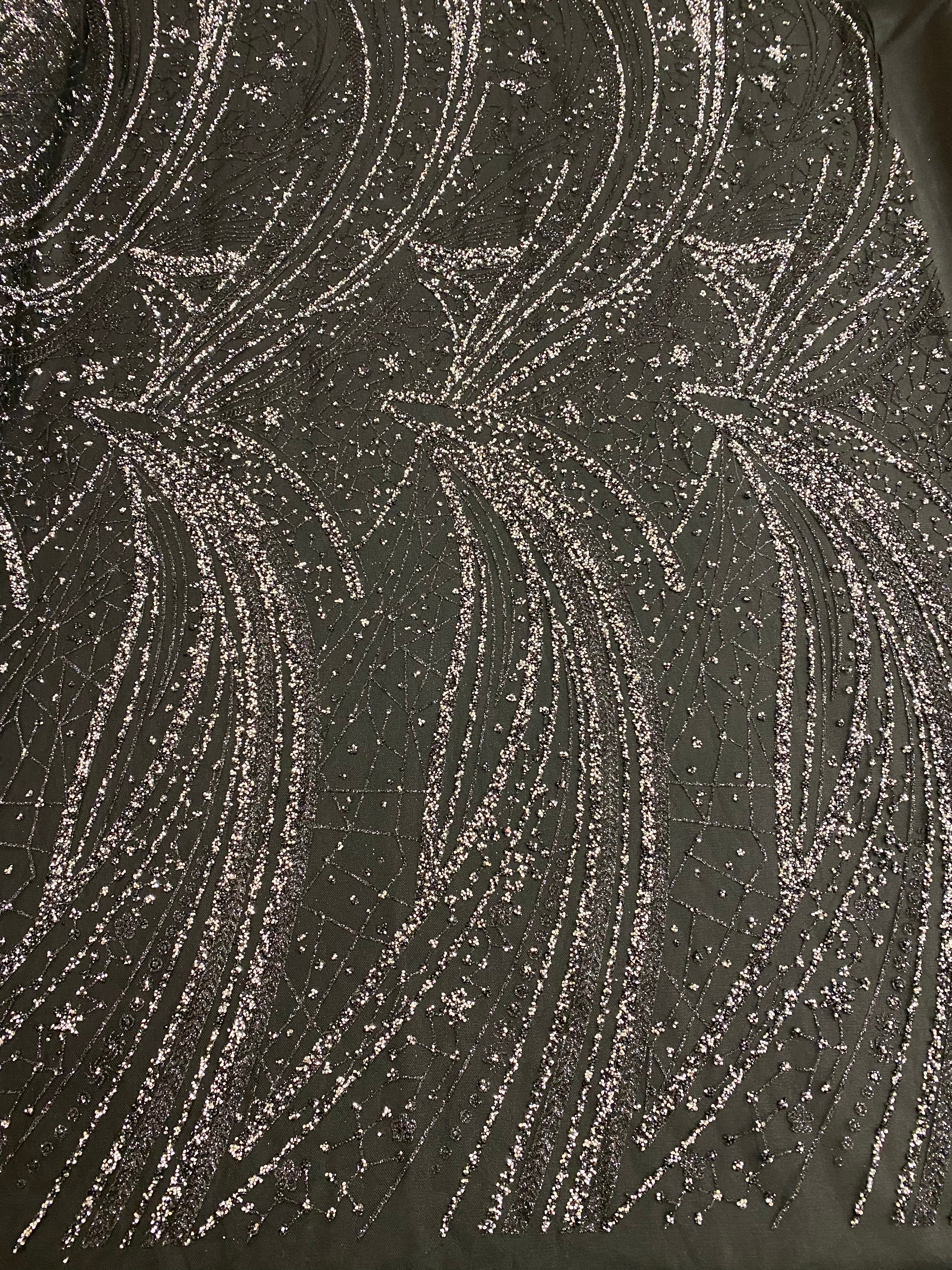 Swirl Hand Beaded And Sequin Mesh With Rhinestones