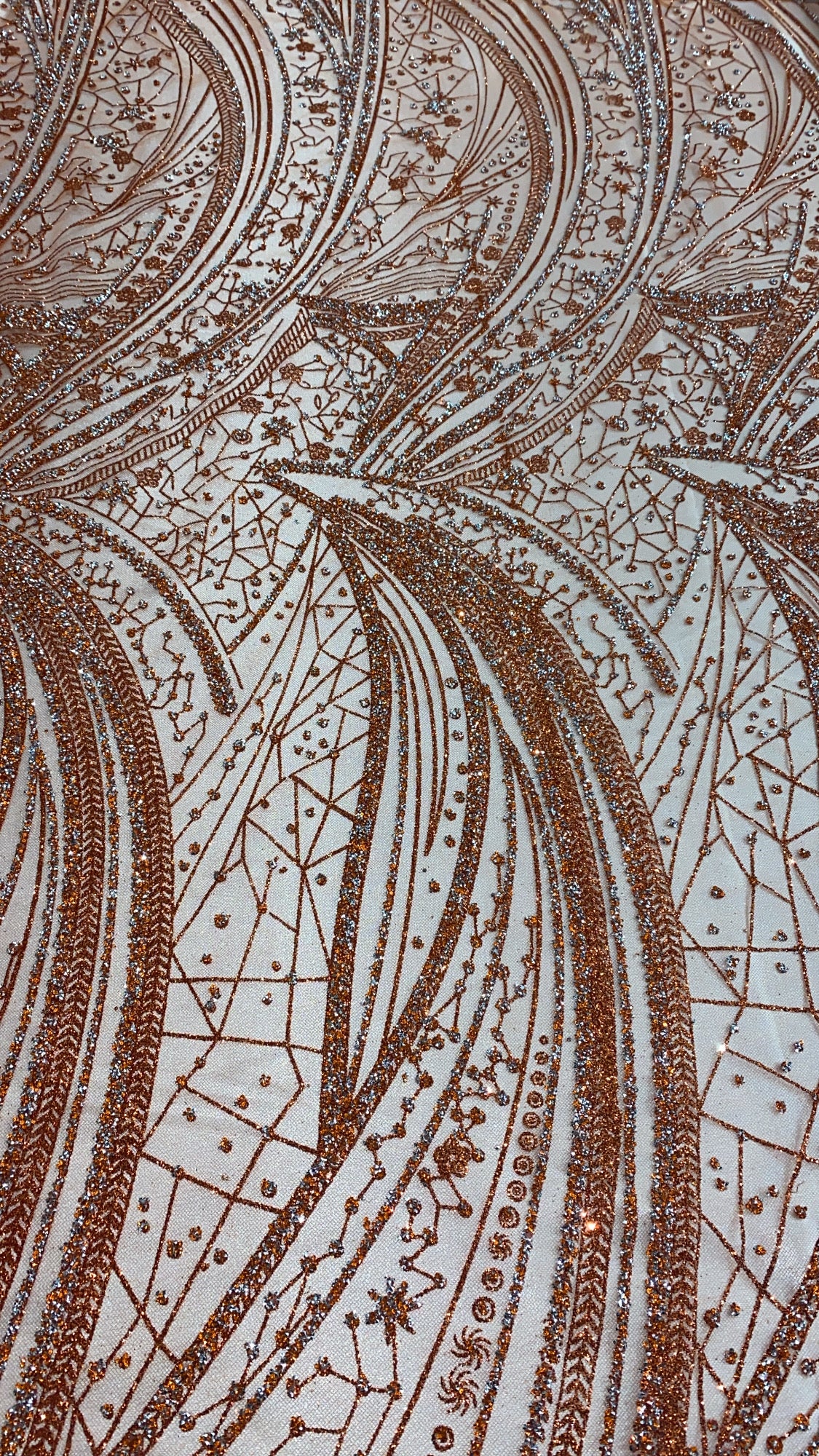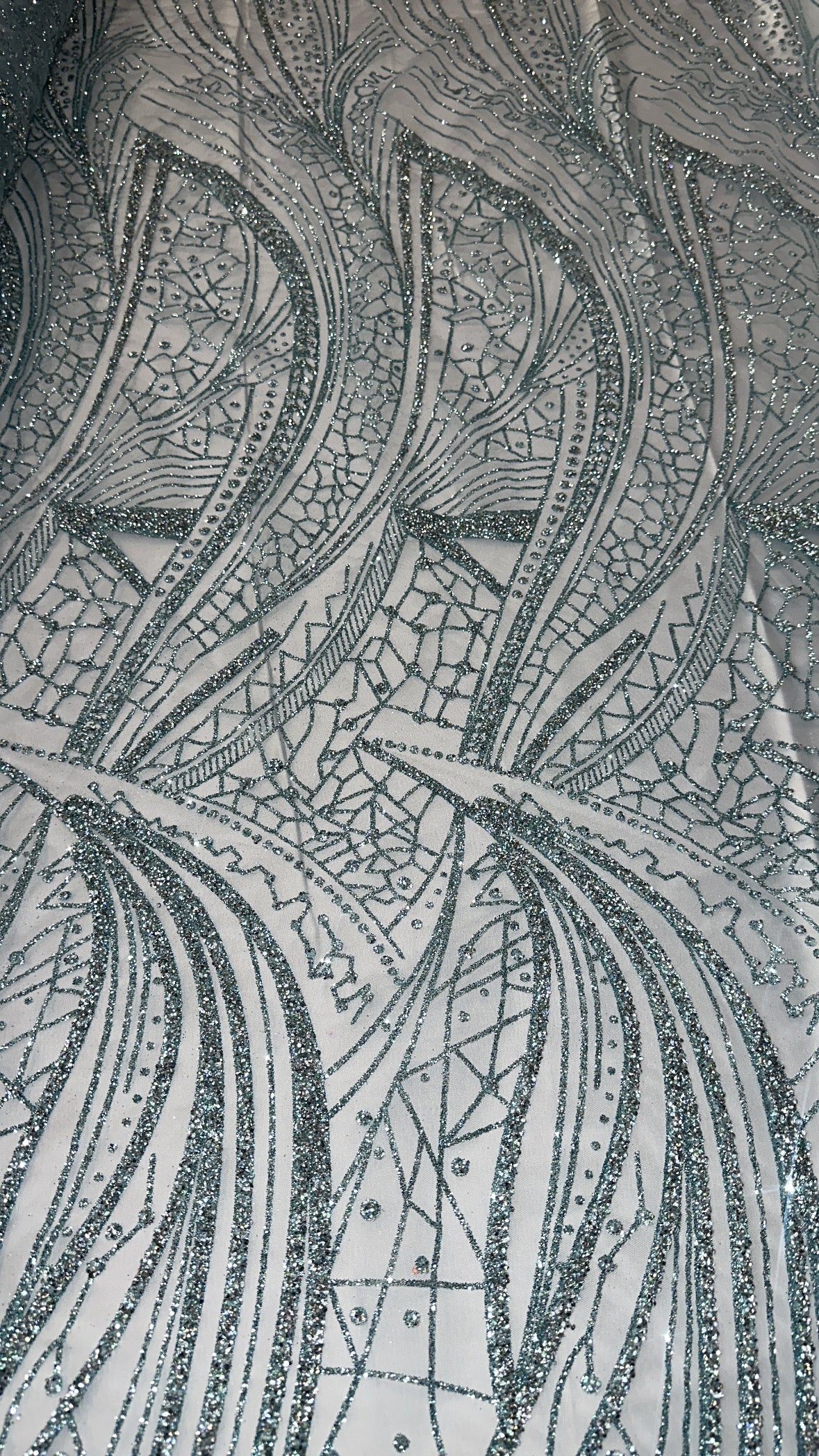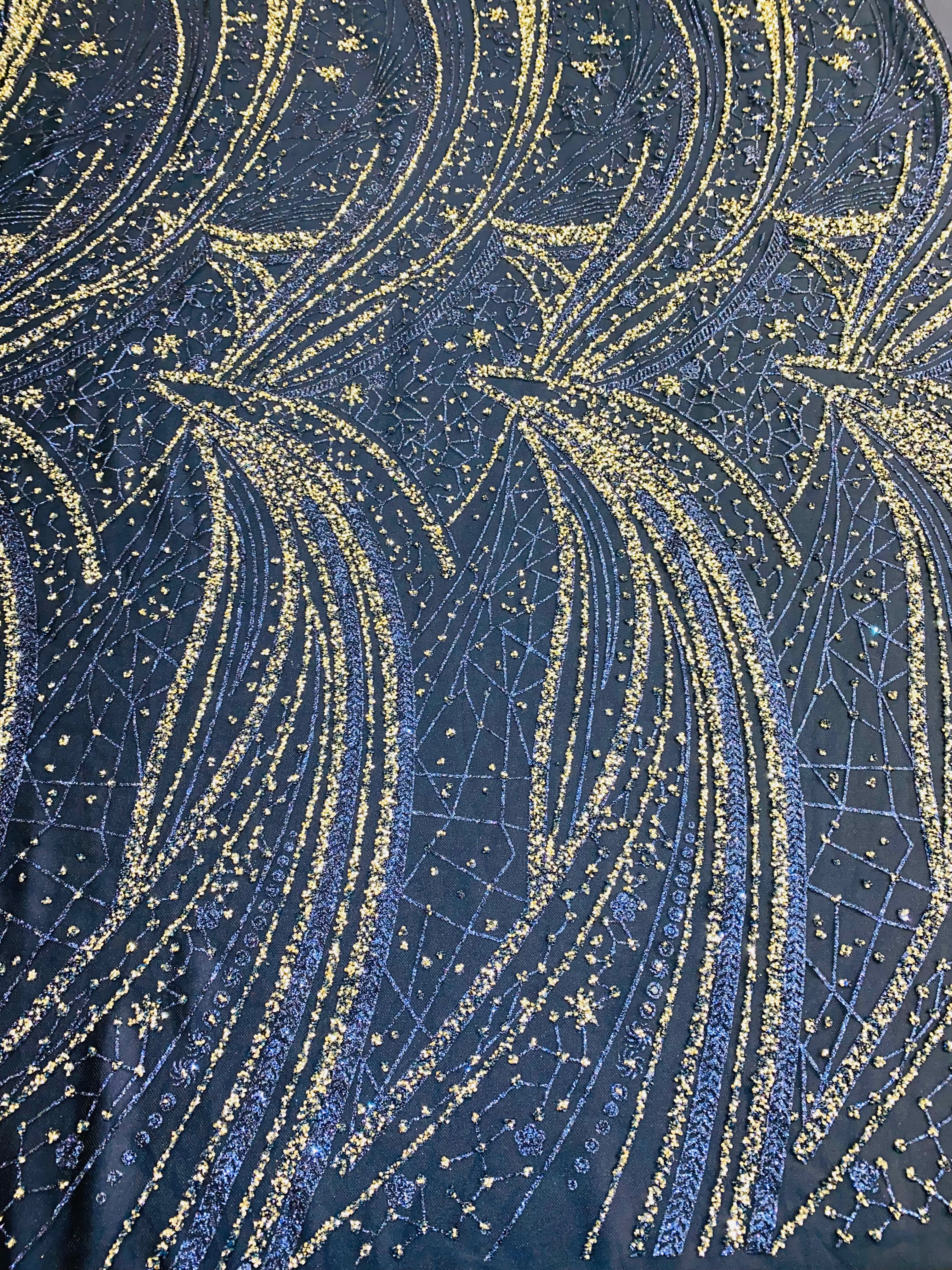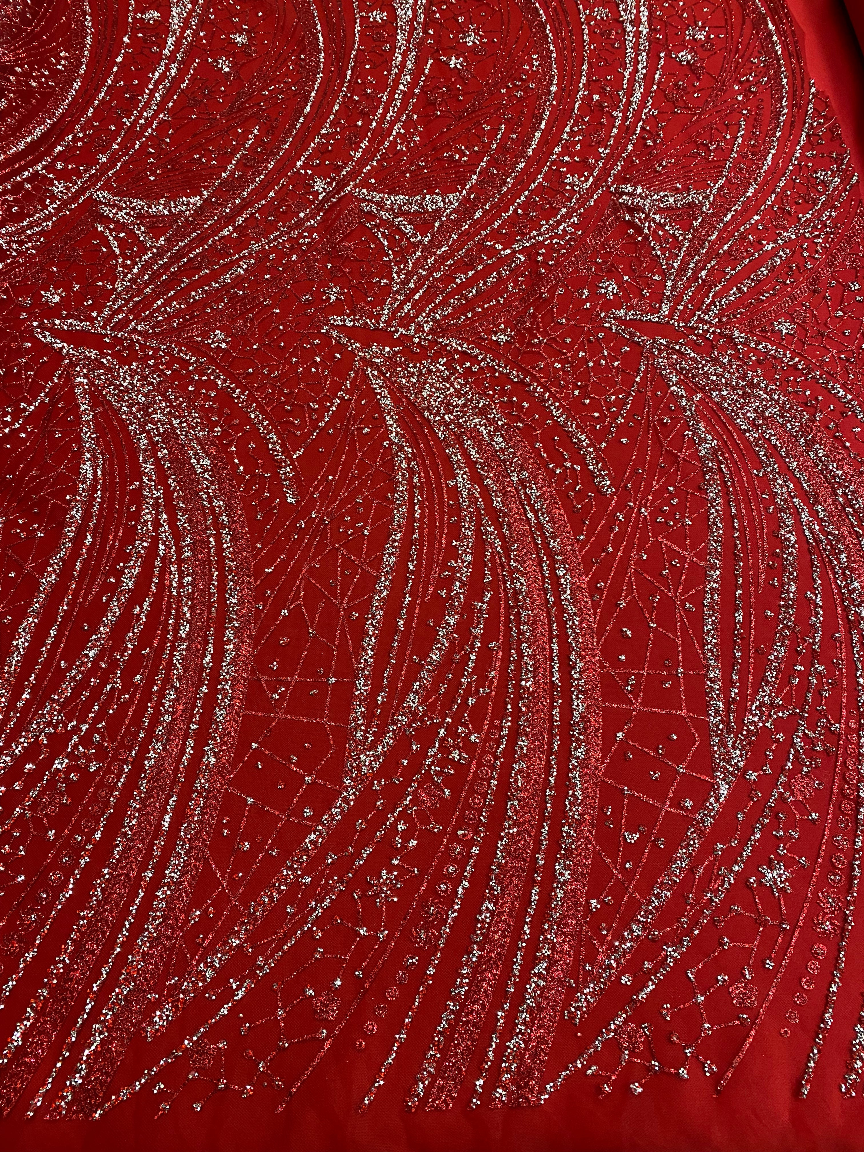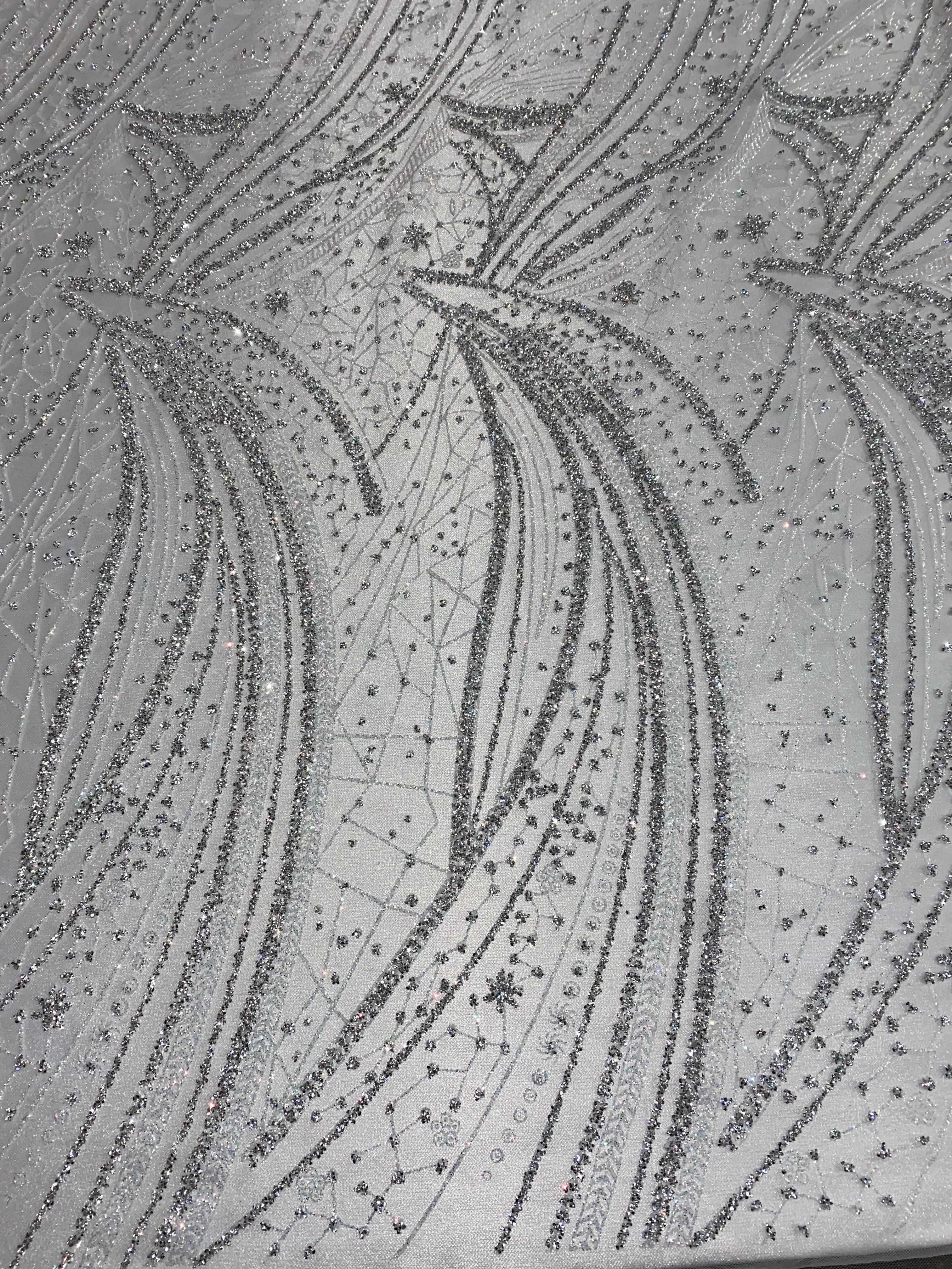 Swirl Hand Beaded And Sequin Mesh With Rhinestones