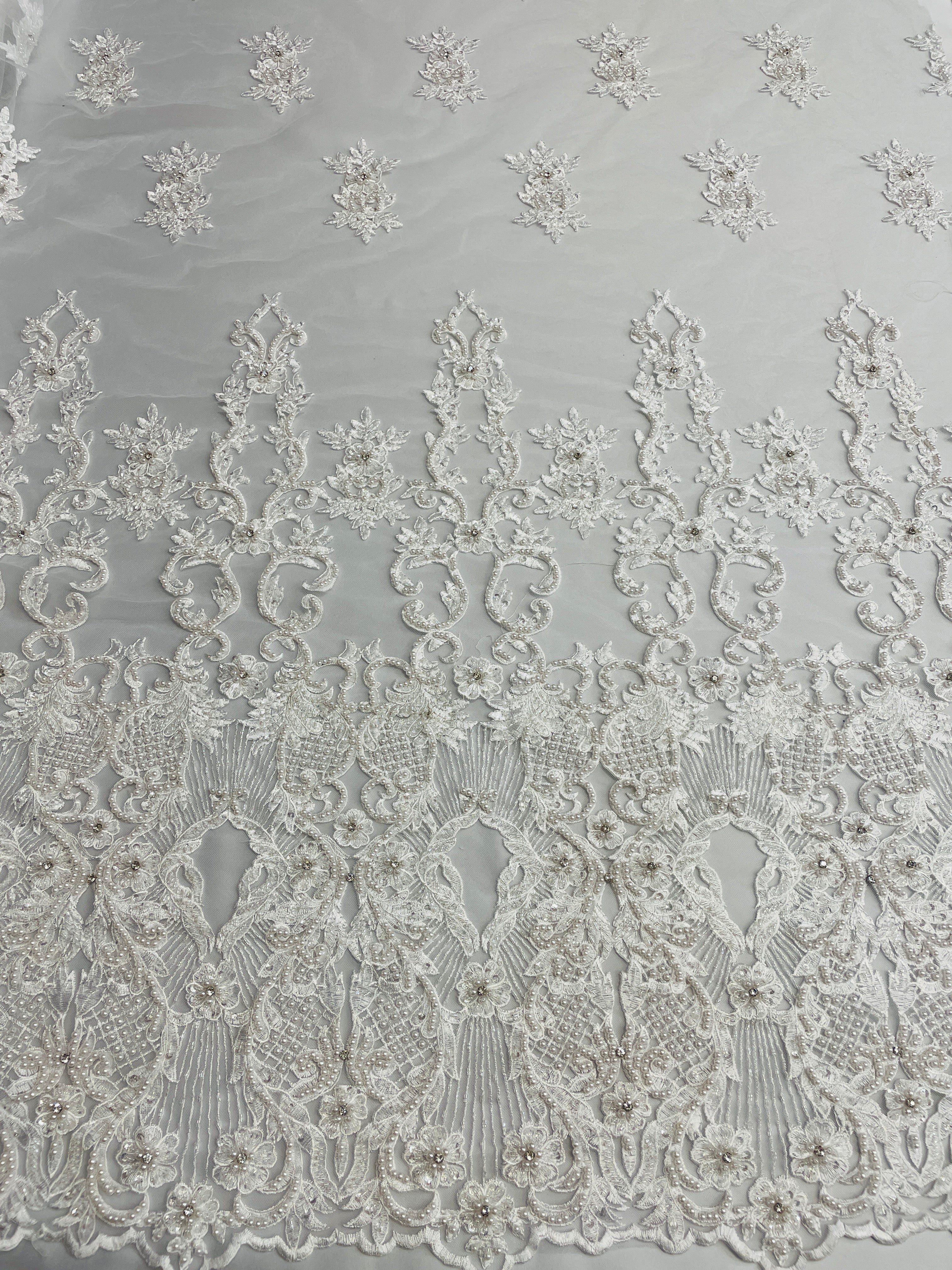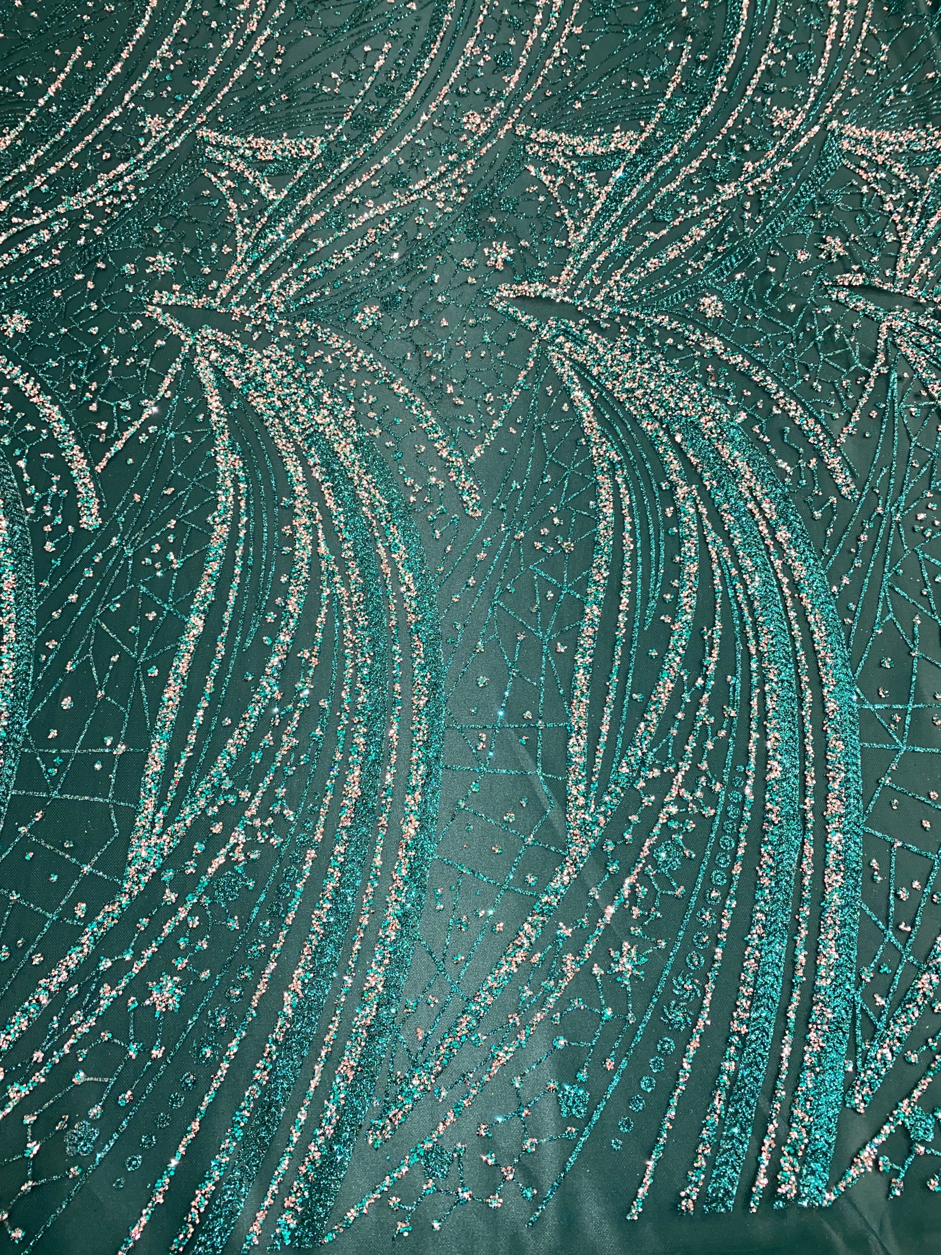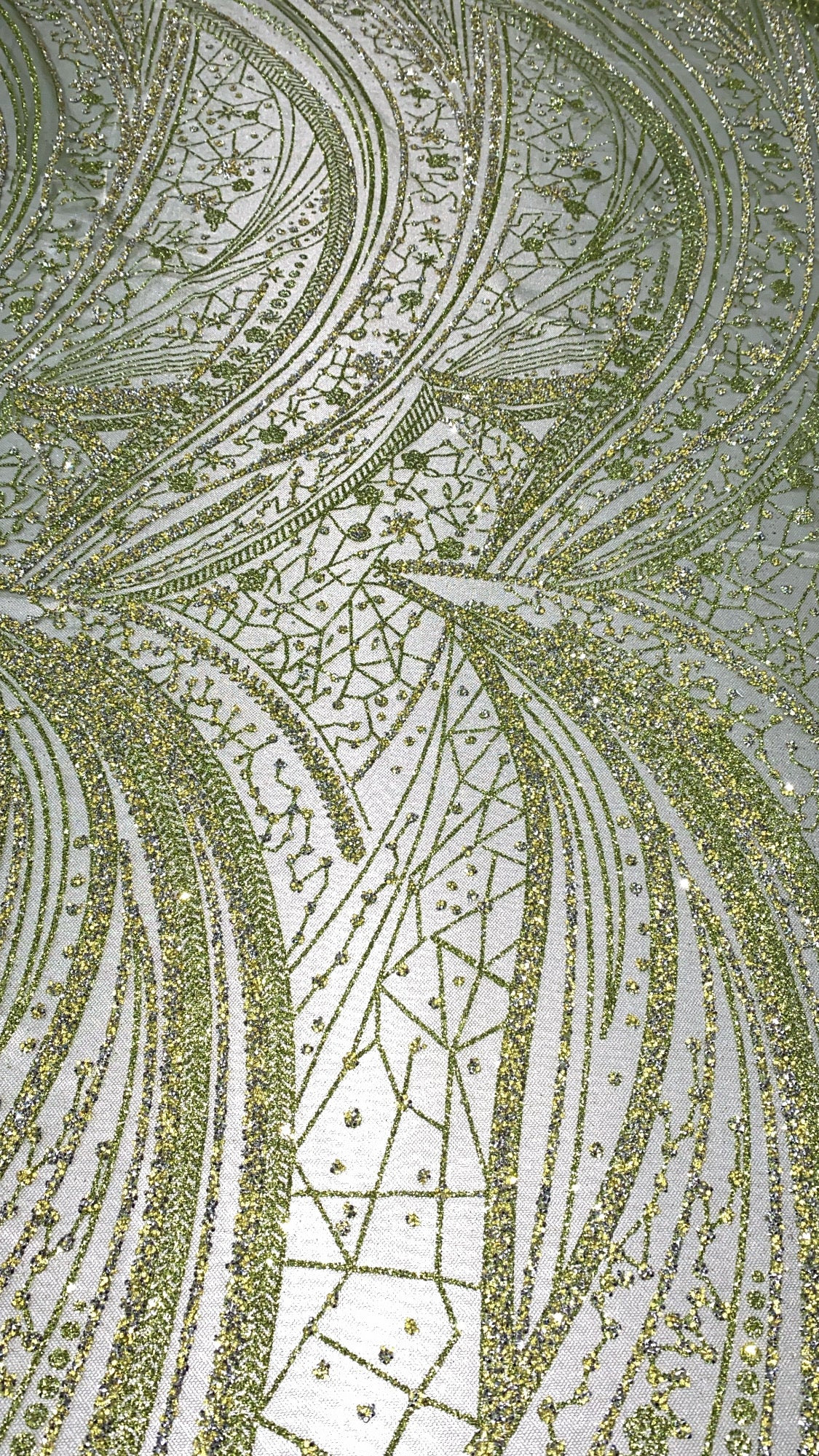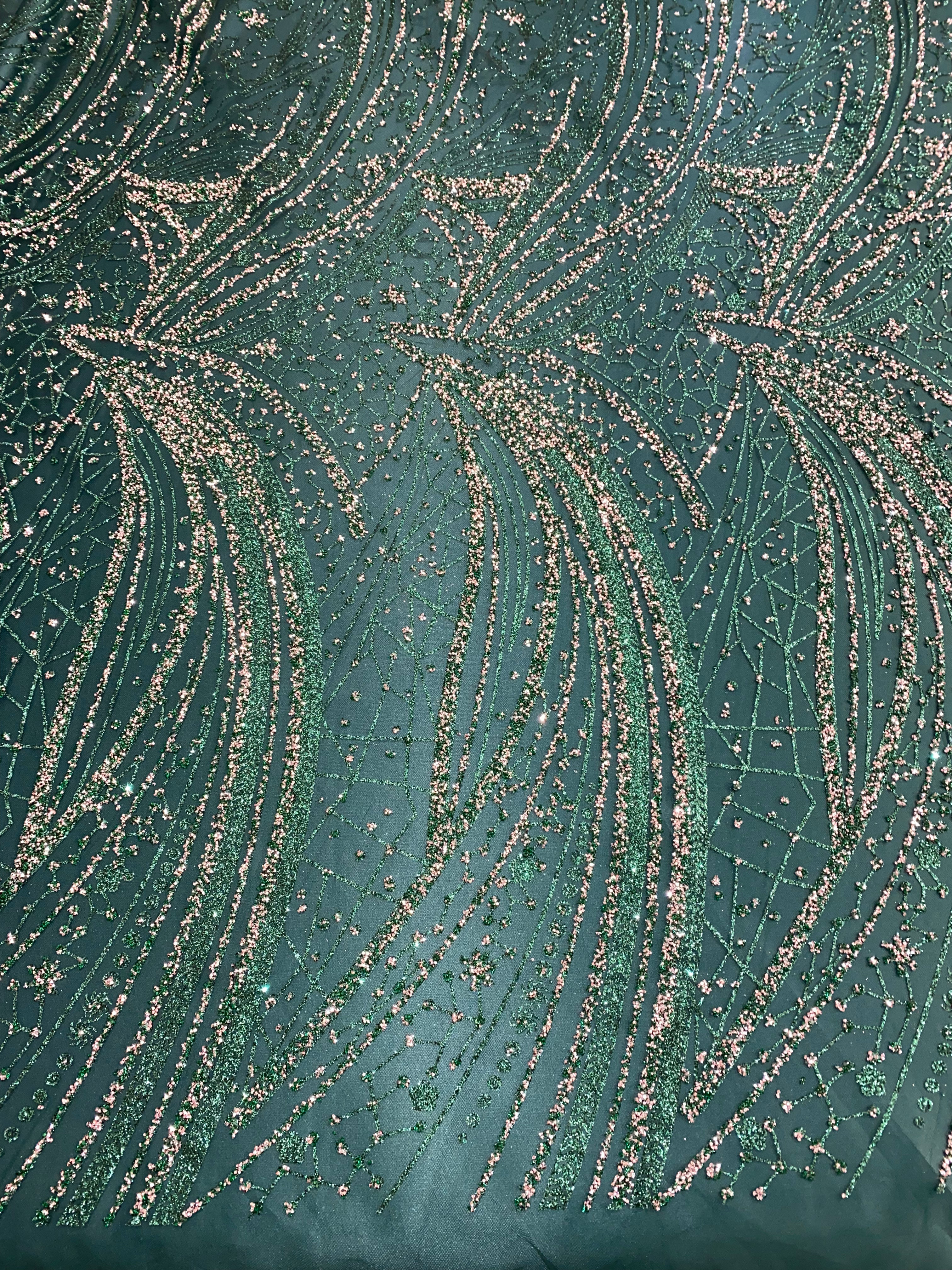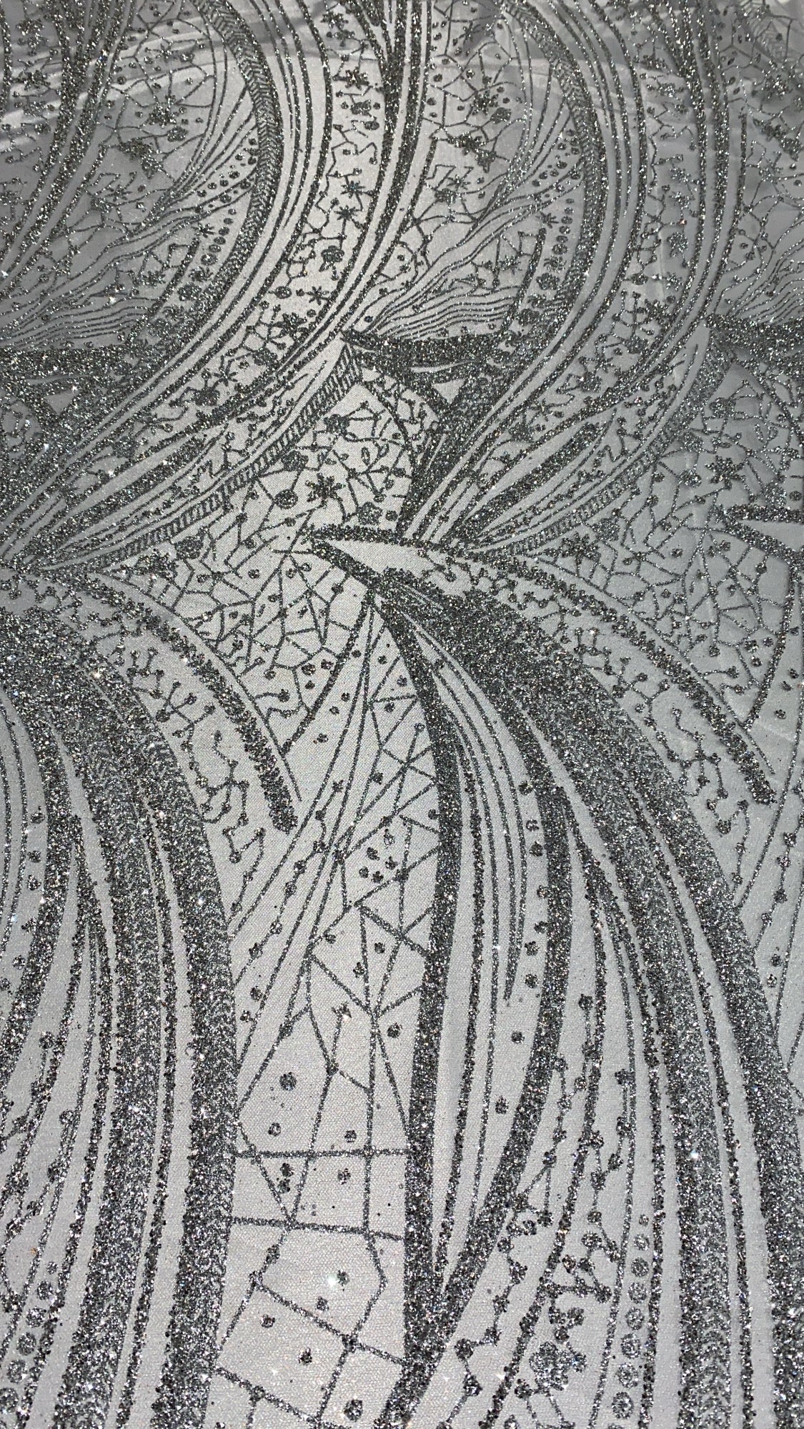 Swirl Hand Beaded And Sequin Mesh With Rhinestones