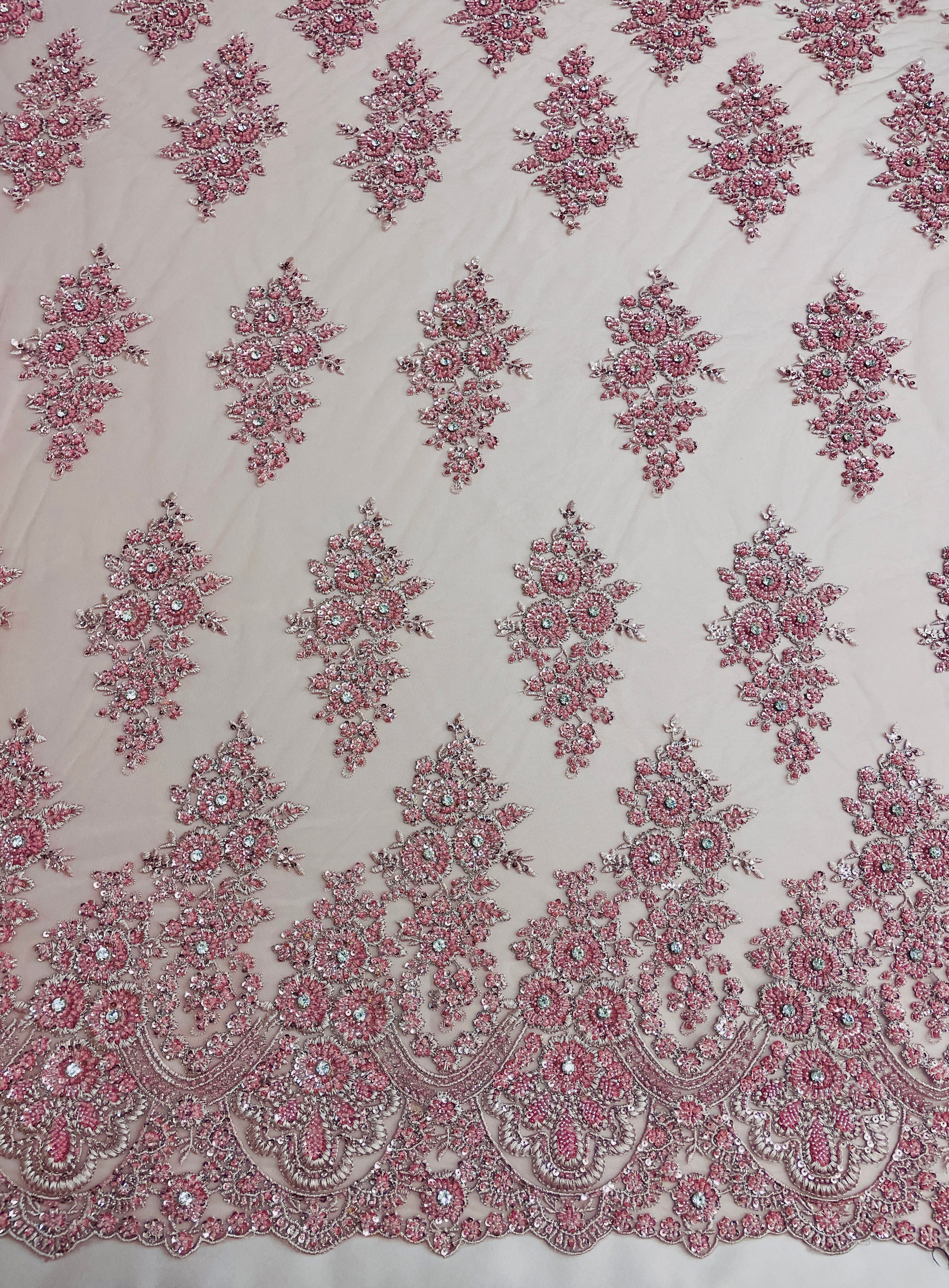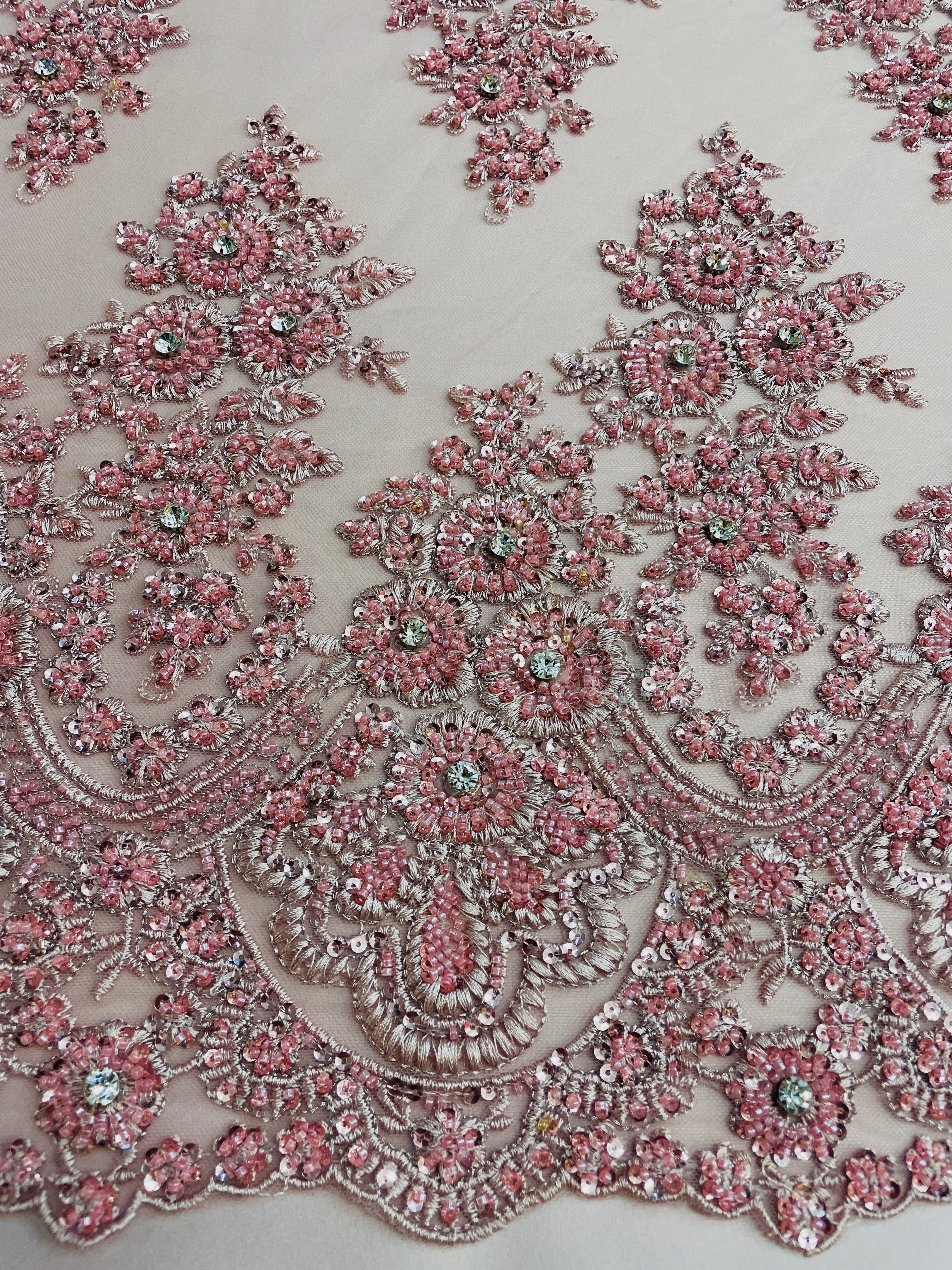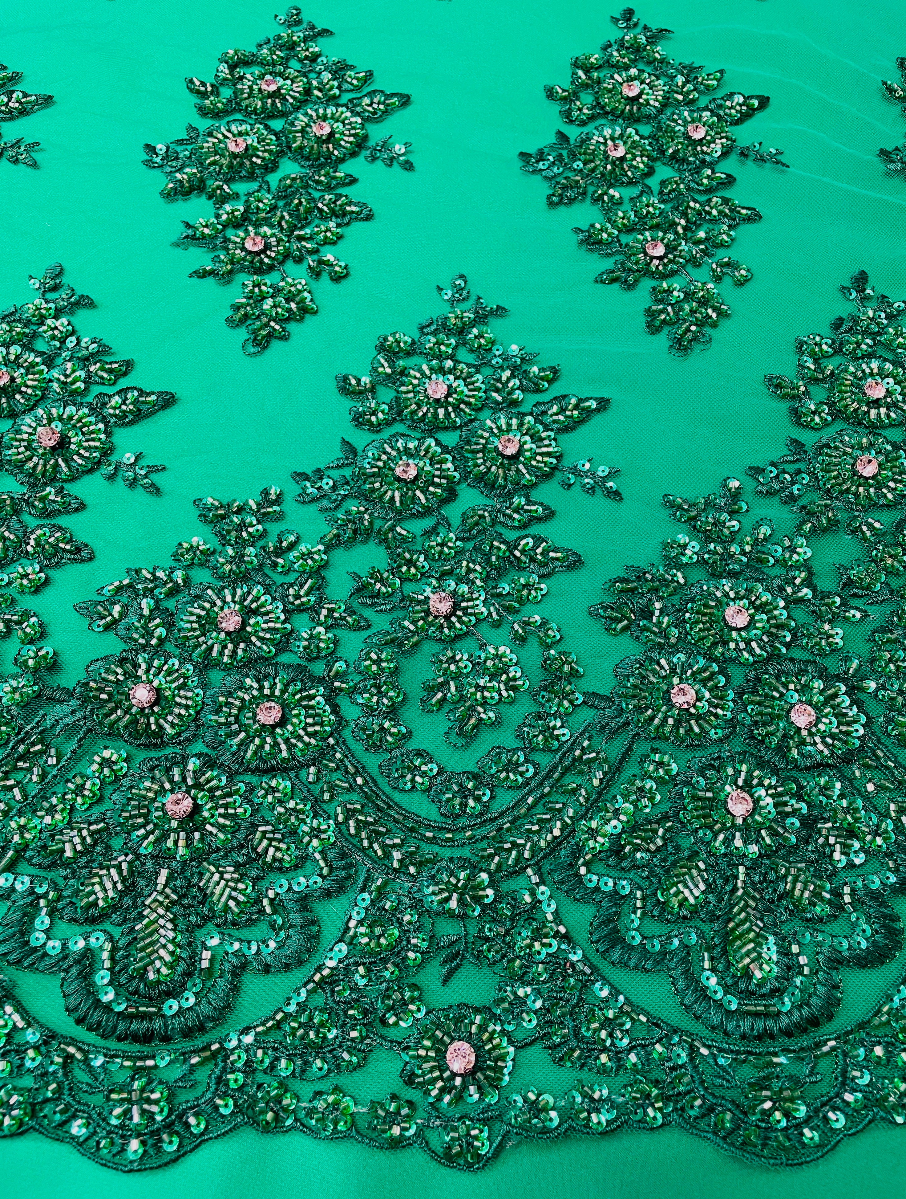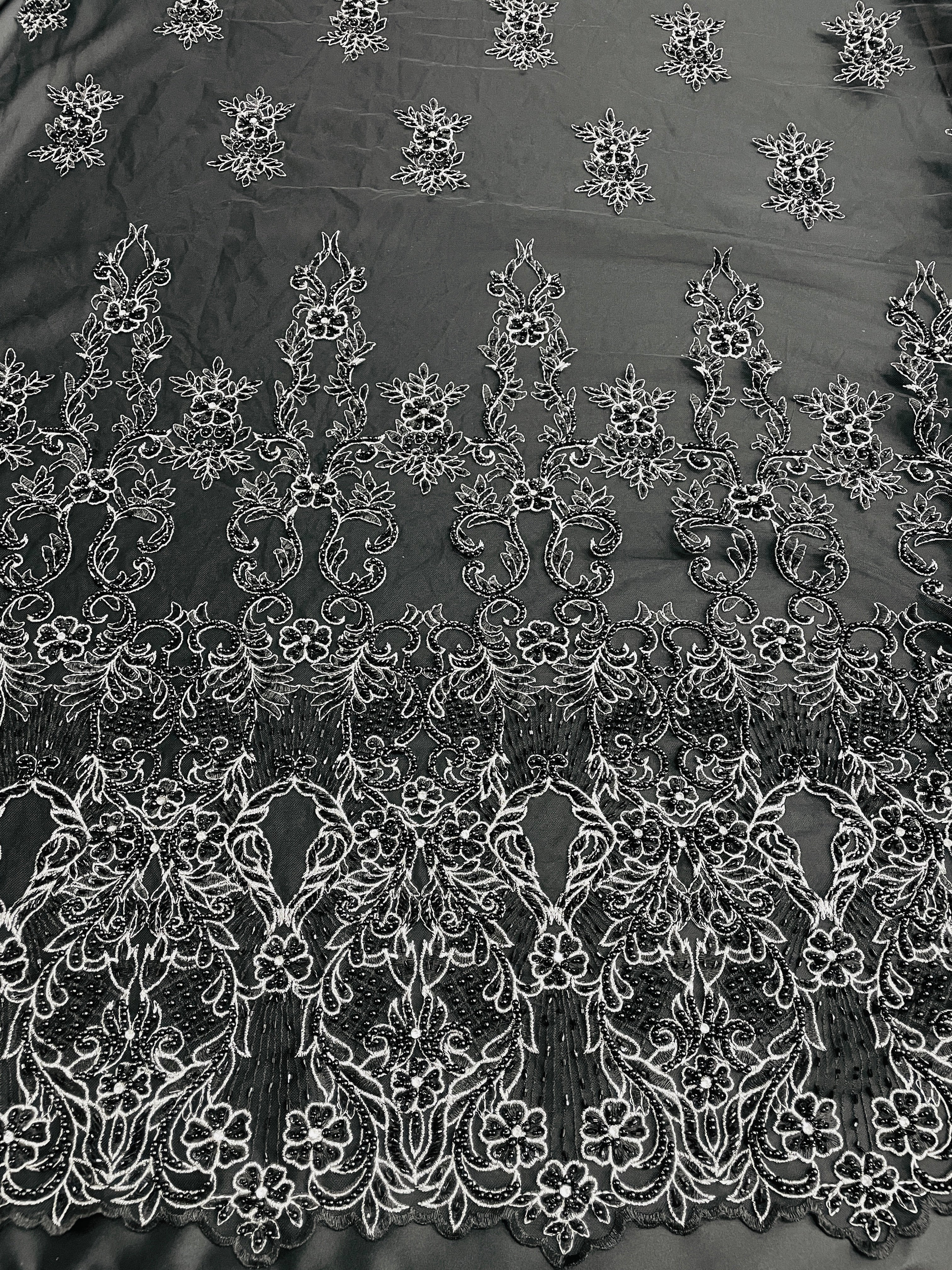 Hand Beaded Flower Garden - Applique Beaded Mesh