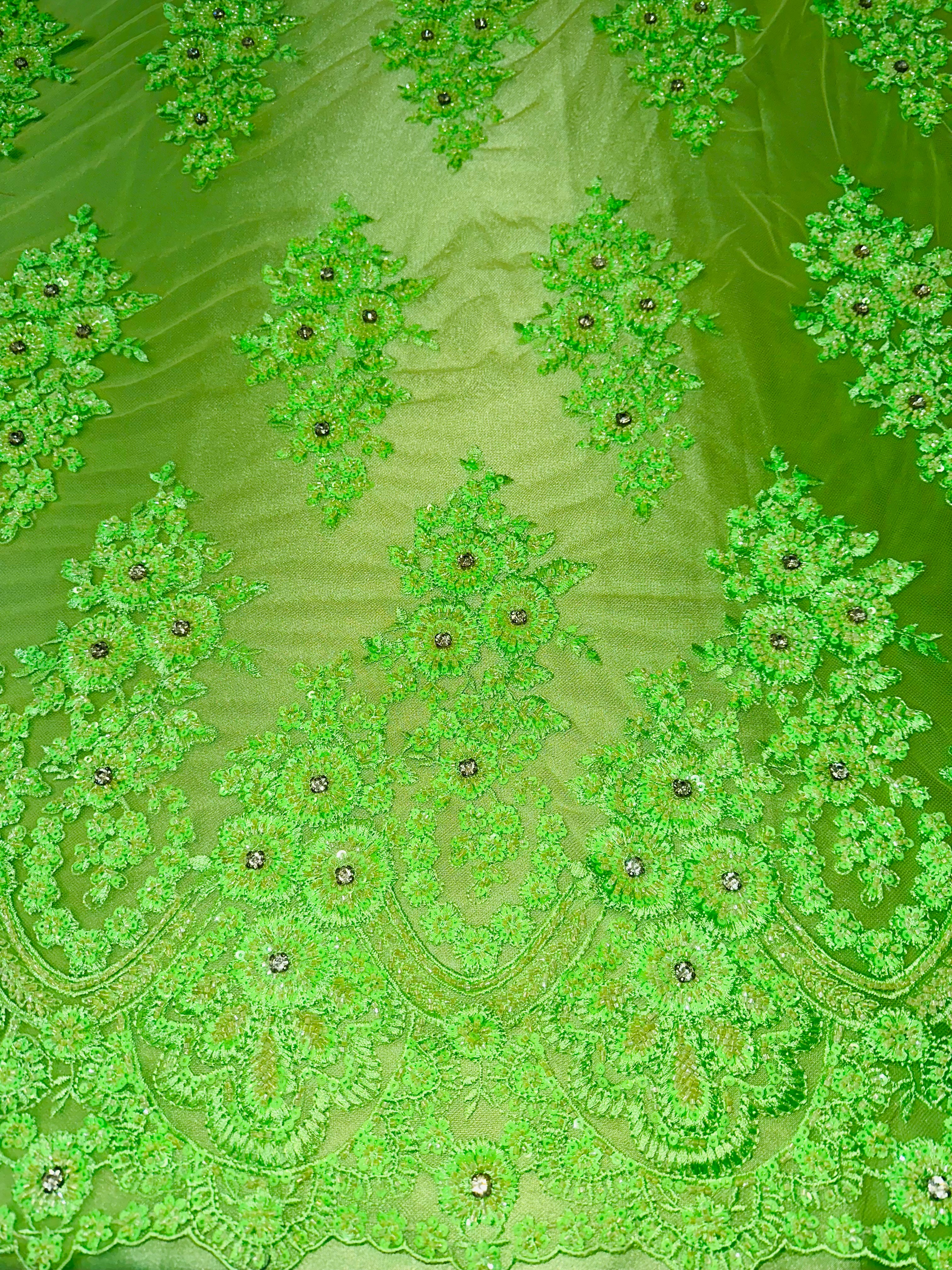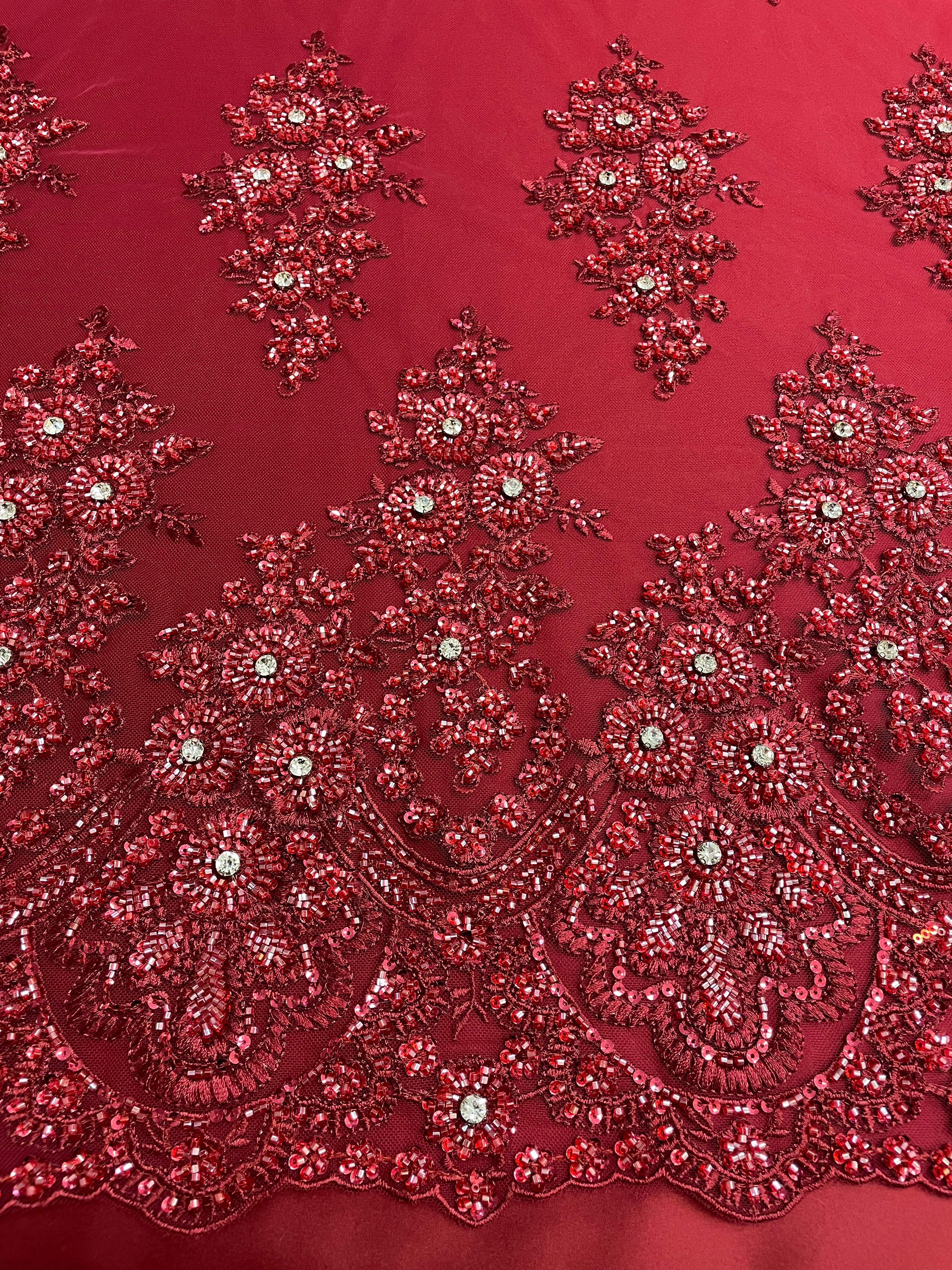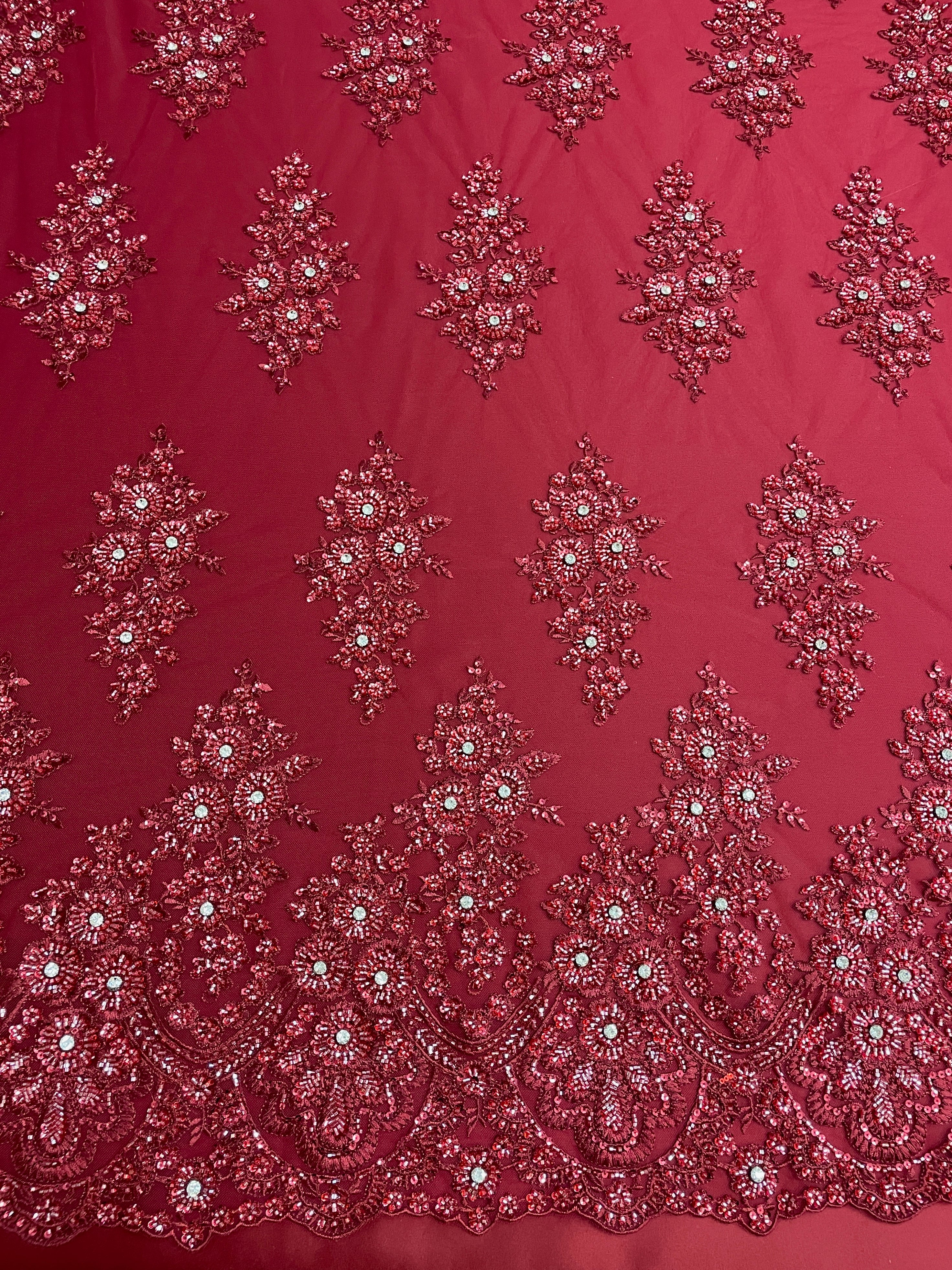 Hand Beaded Flower Garden - Applique Beaded Mesh