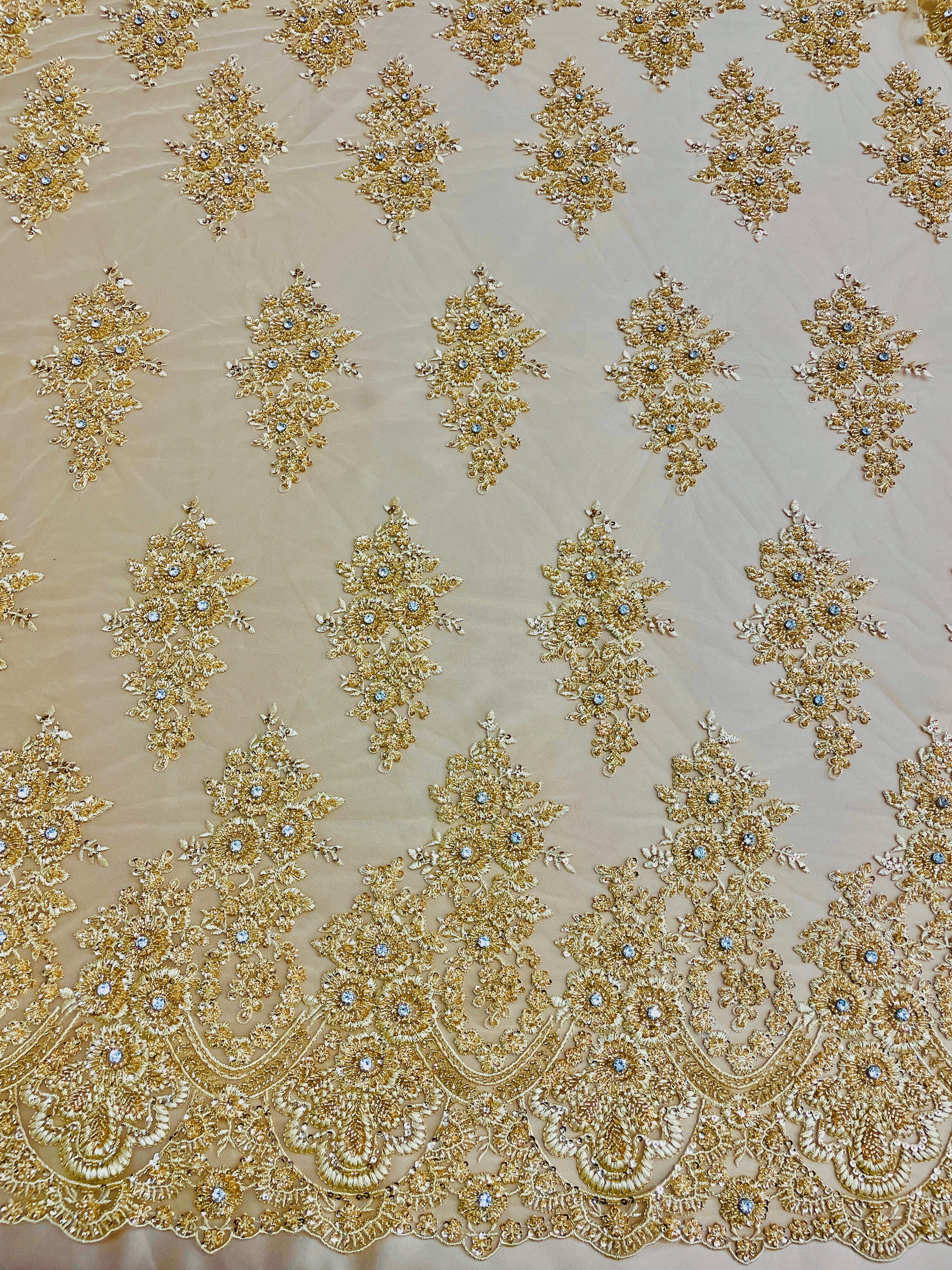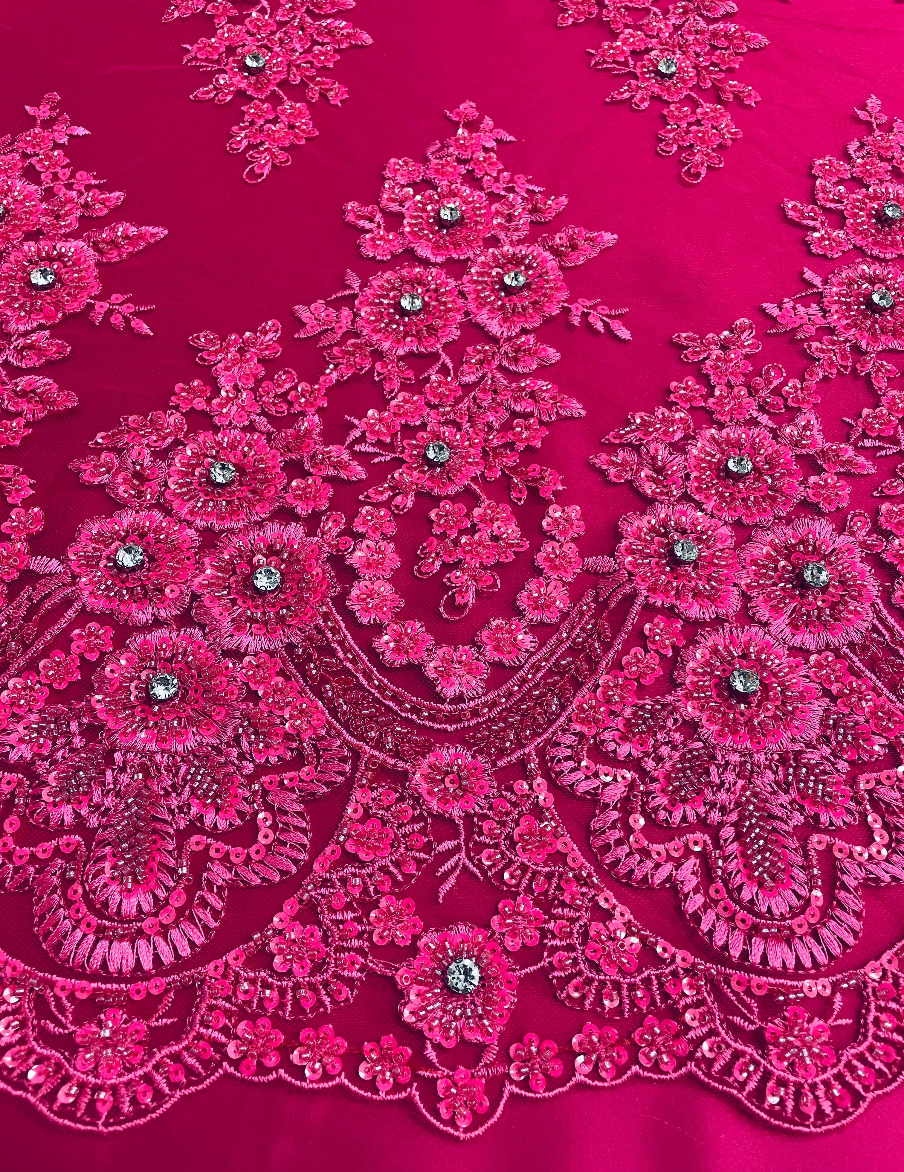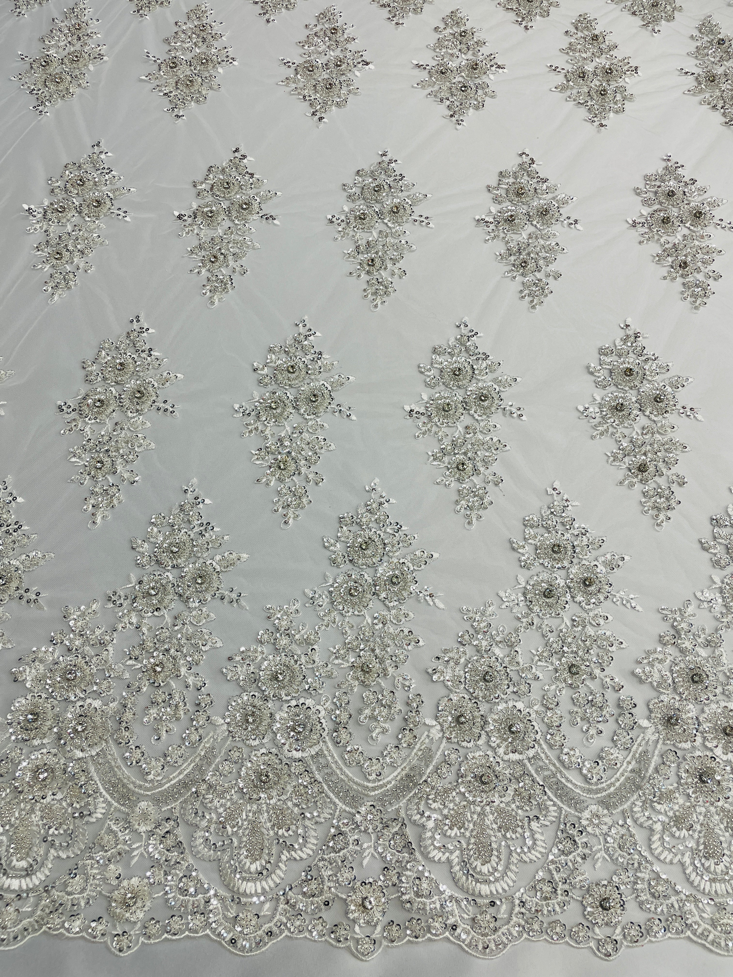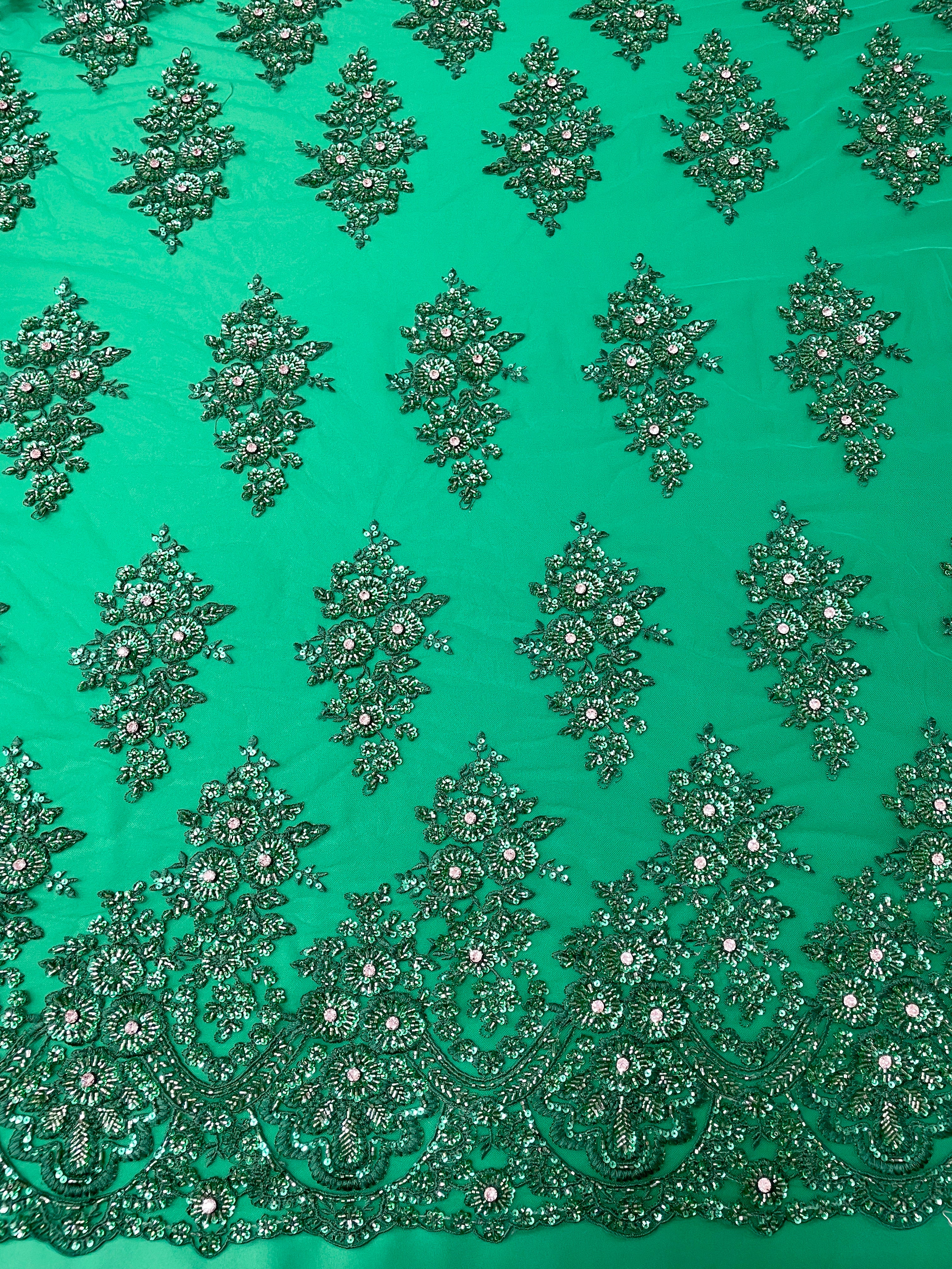 Hand Beaded Flower Garden - Applique Beaded Mesh