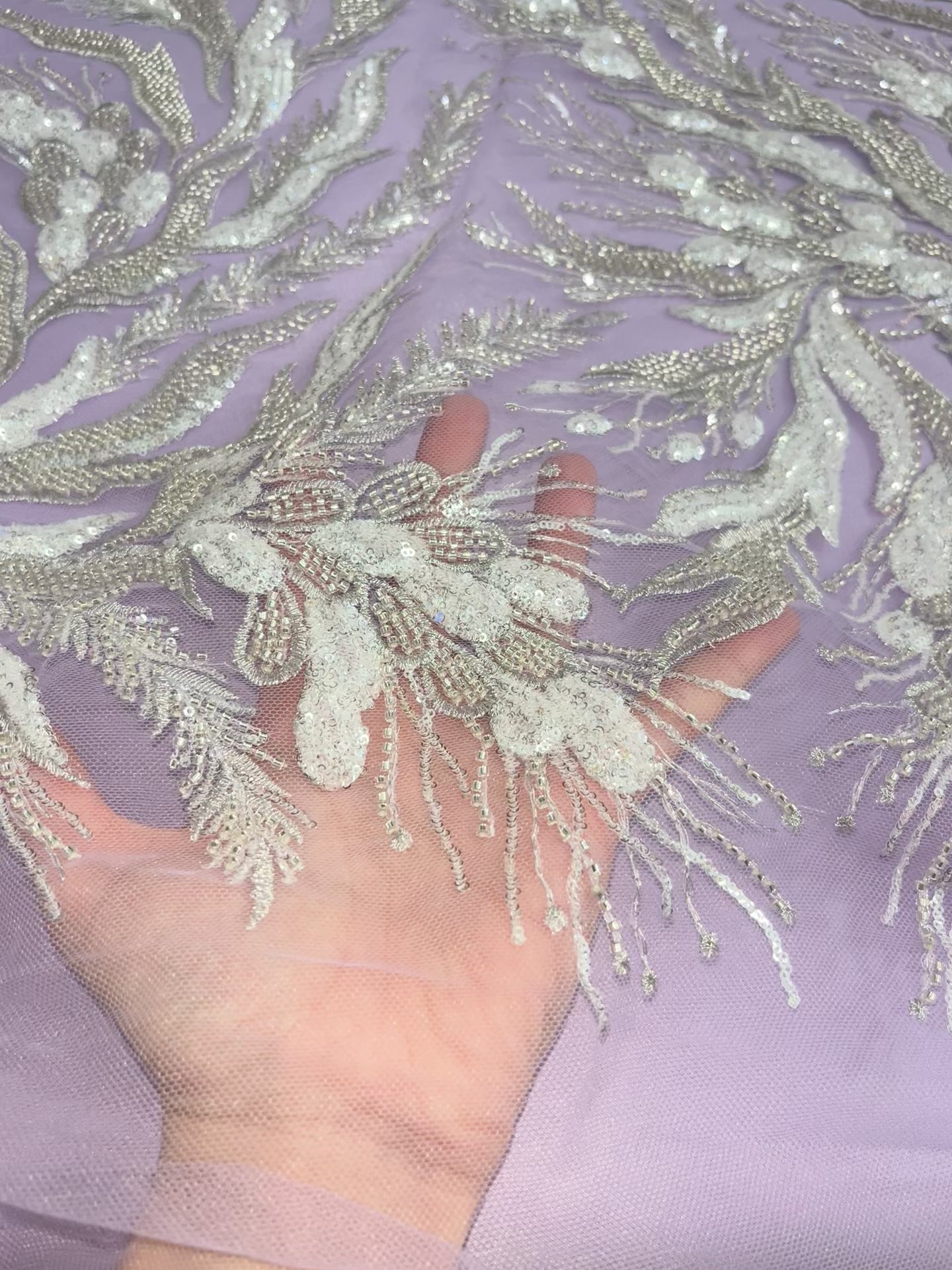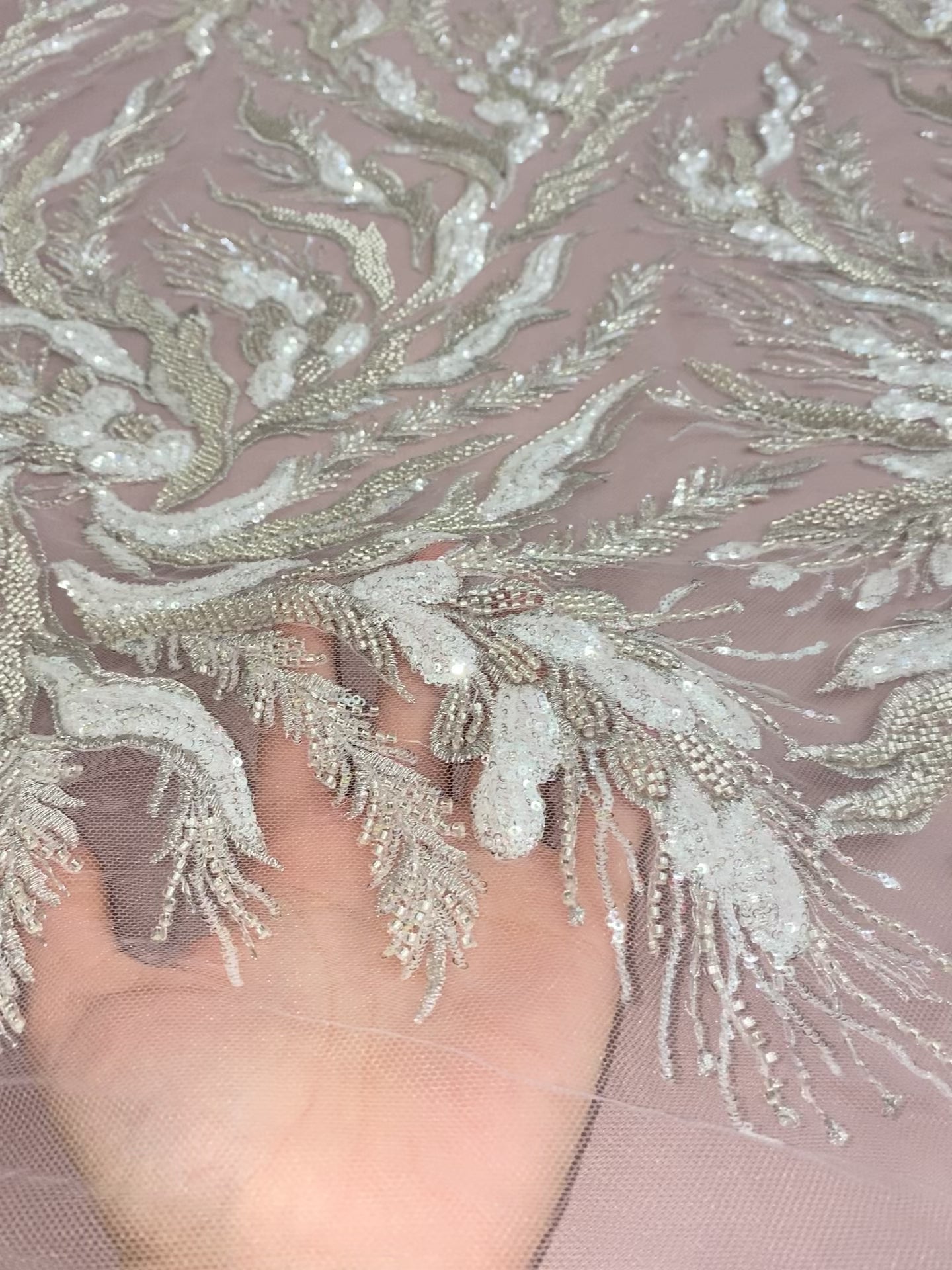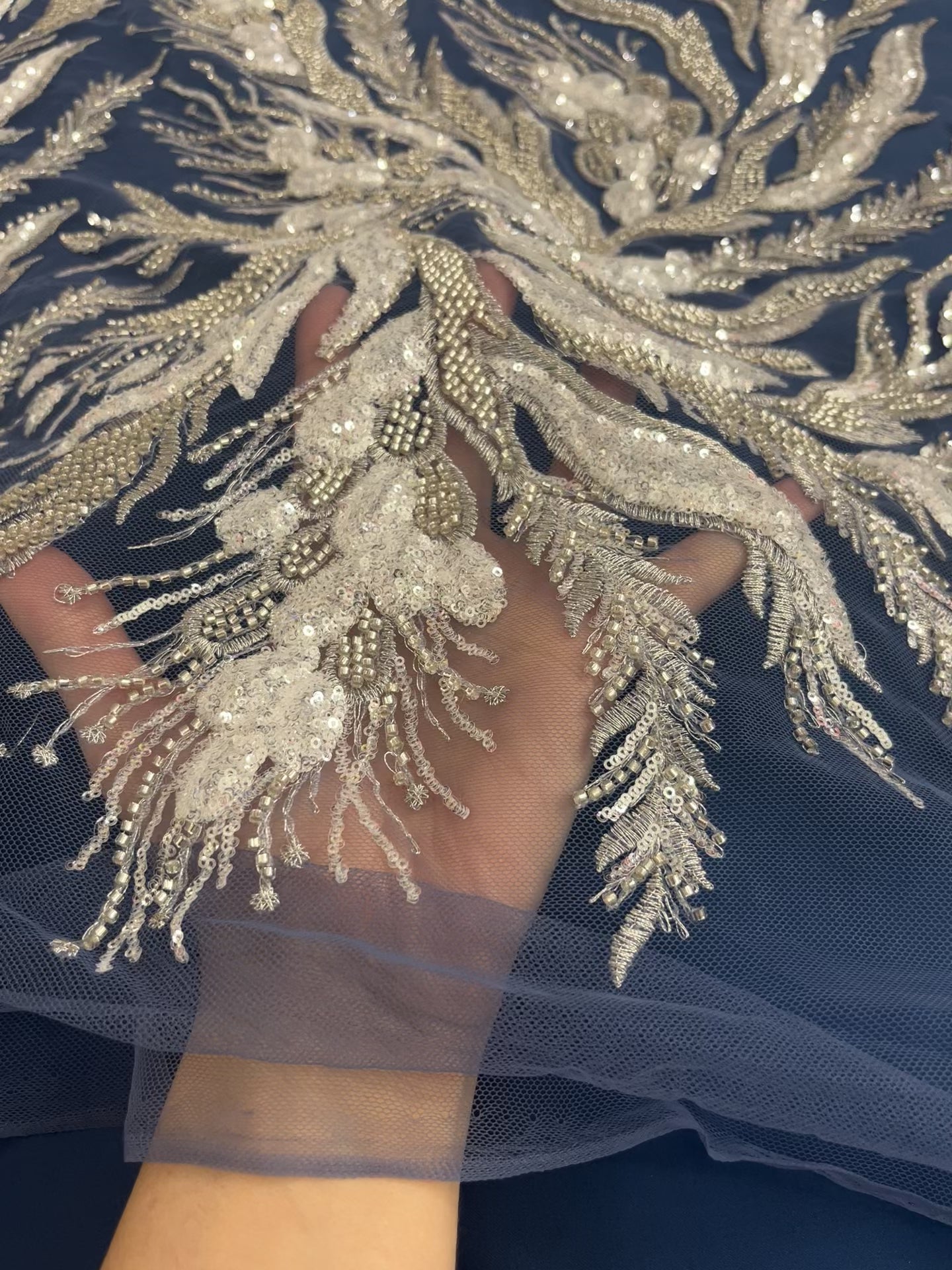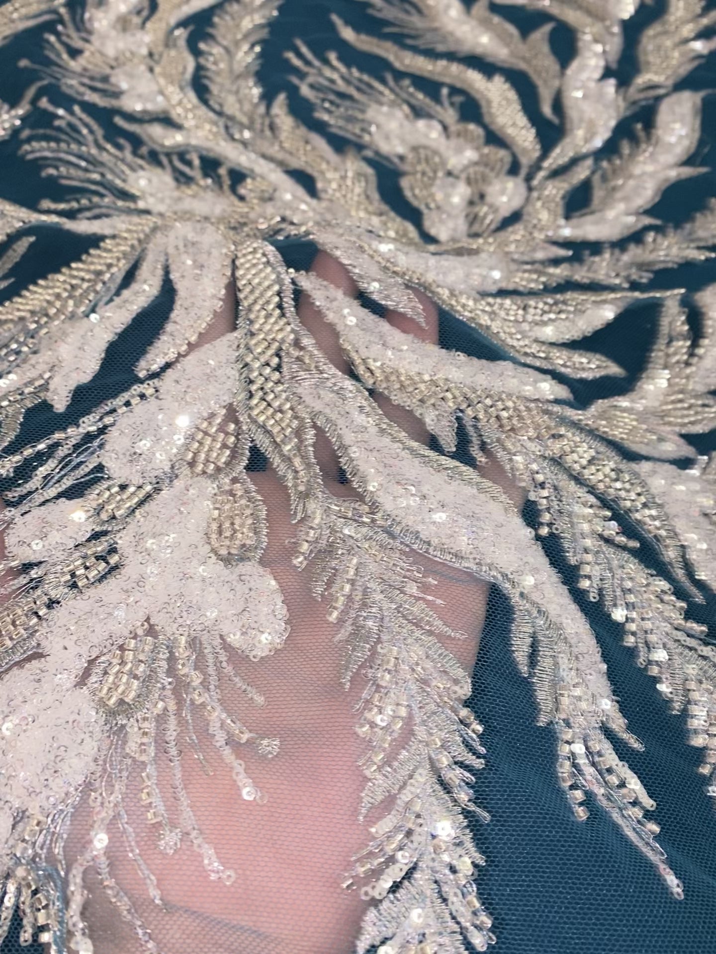- Beaded & Sequin Fabric on illusion mesh,