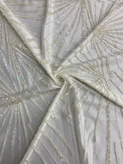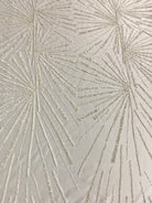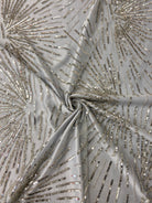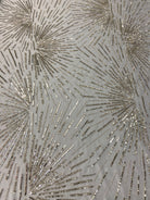 Fire burst sequin pattern on two way transparent mesh 58" wide with a slight vertical two way stretch.