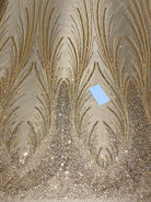 Gold Swirl Sequins Pearls Lace