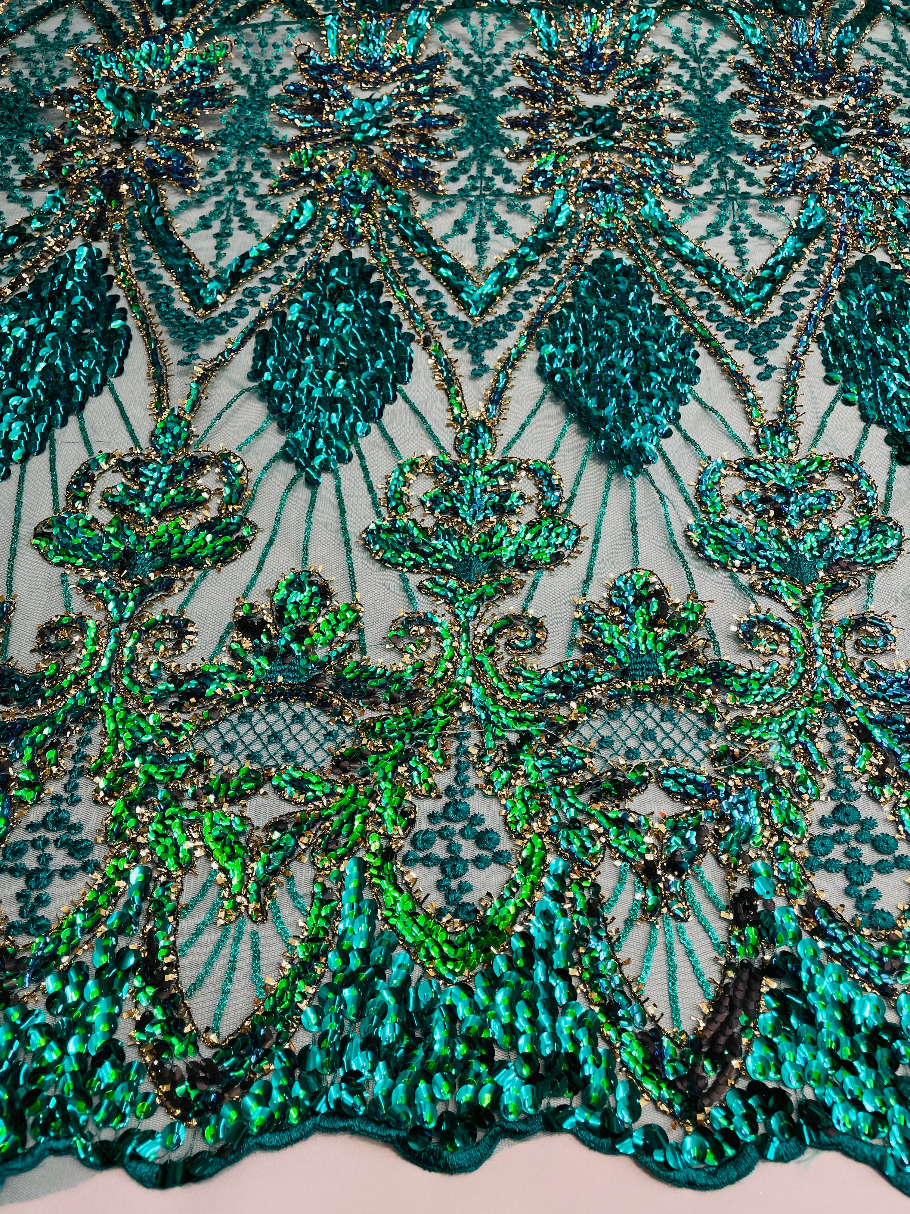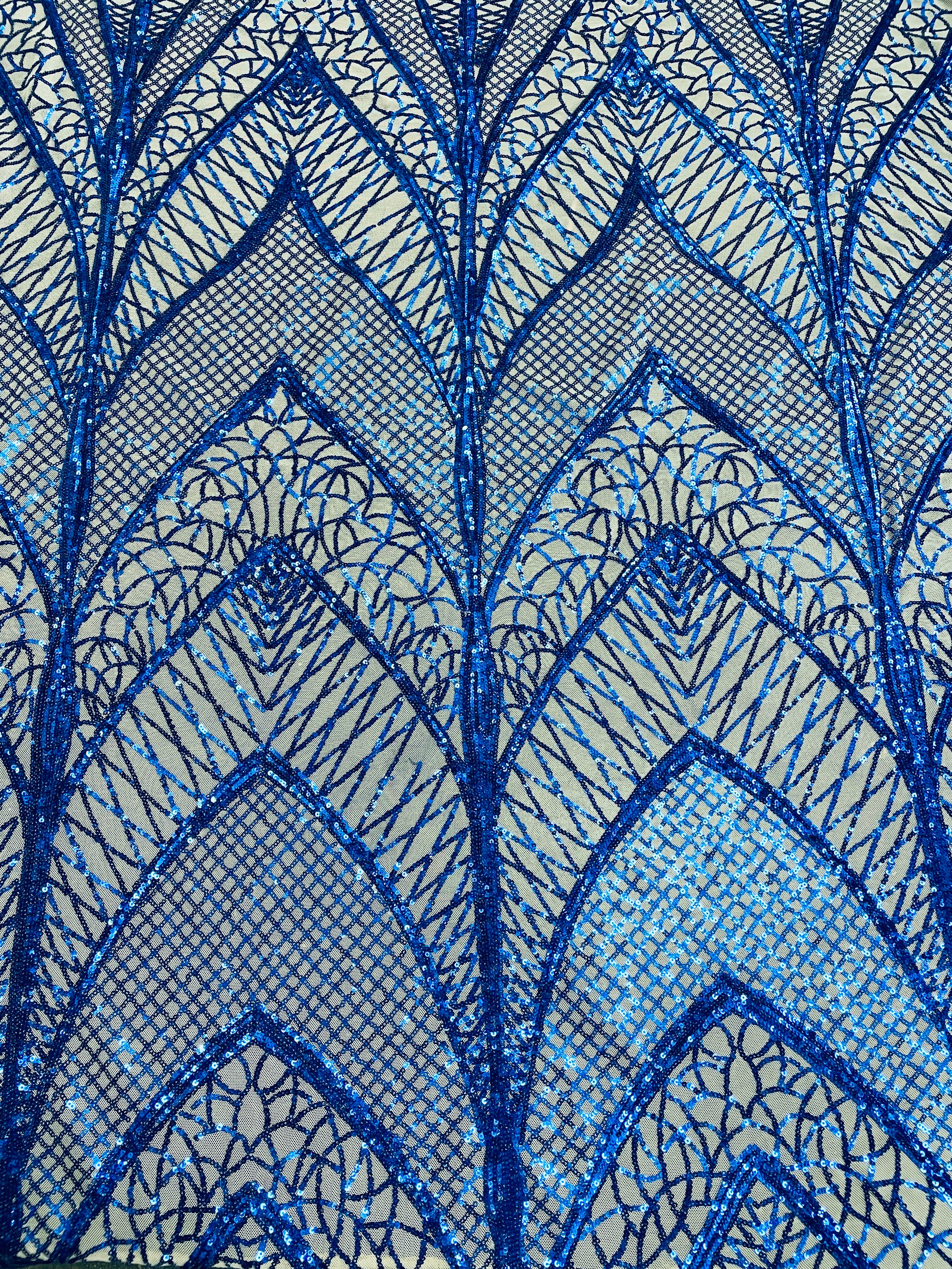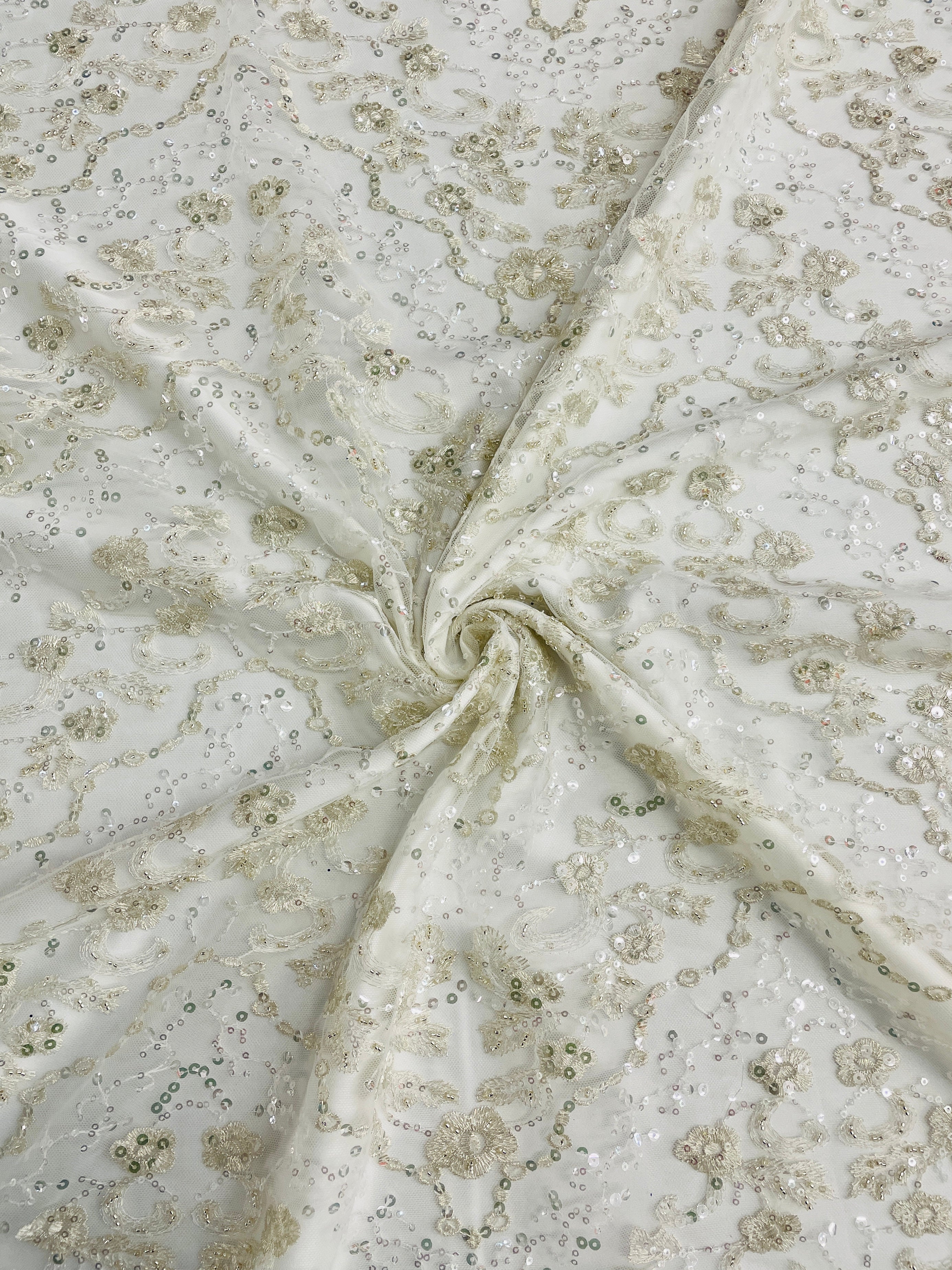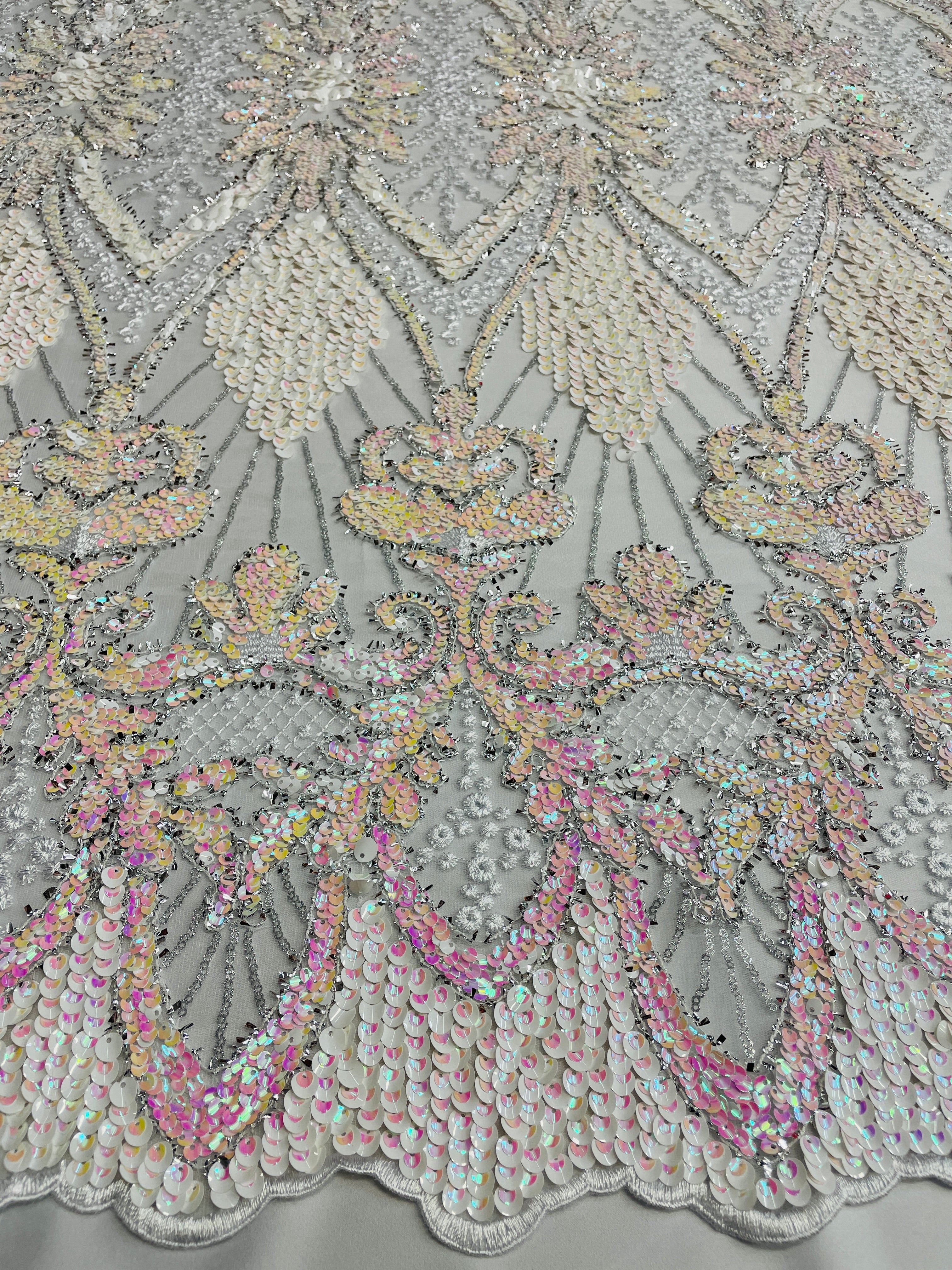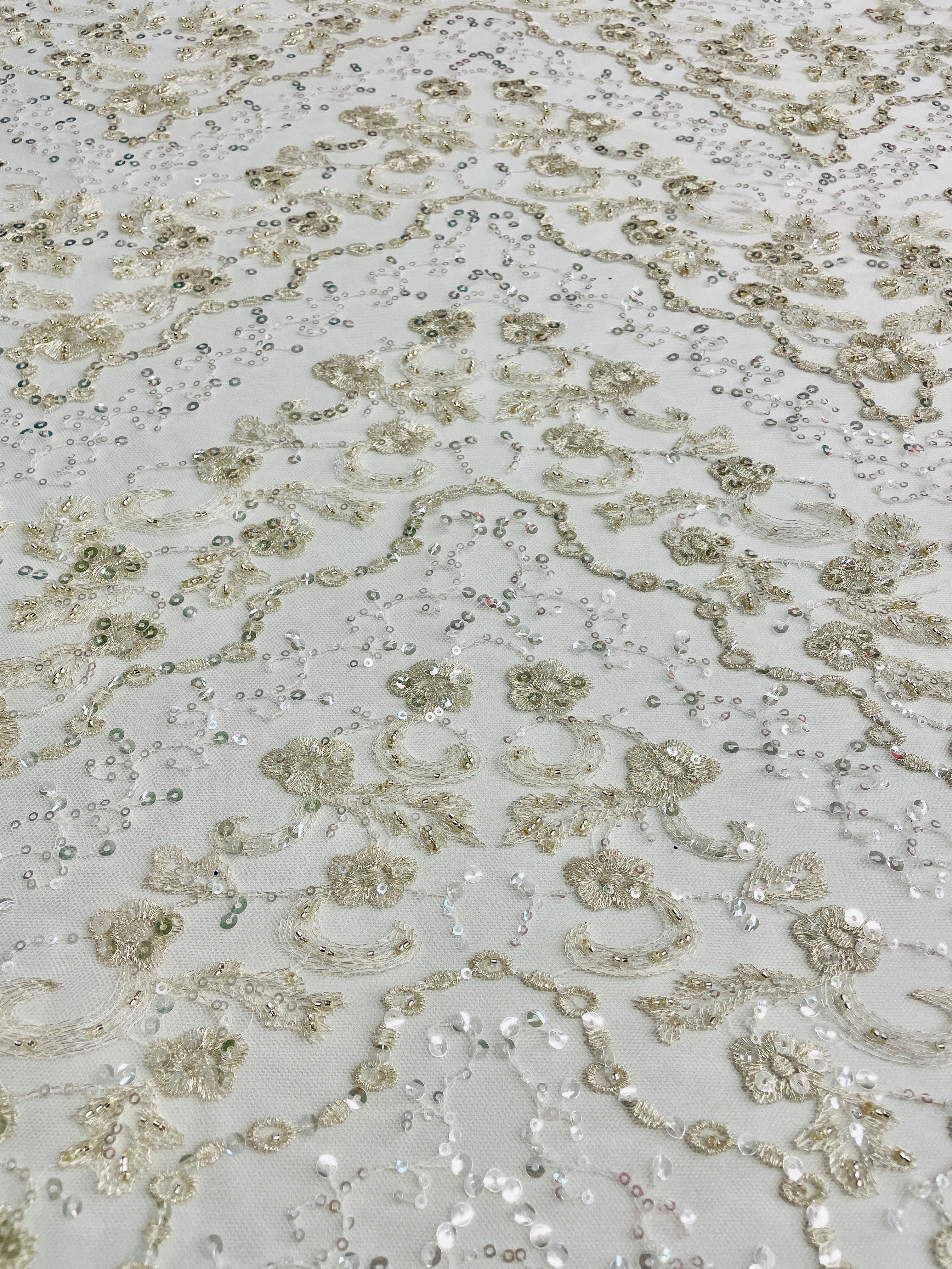 Hand Beaded Sequin Zig Zag Bridal Lace