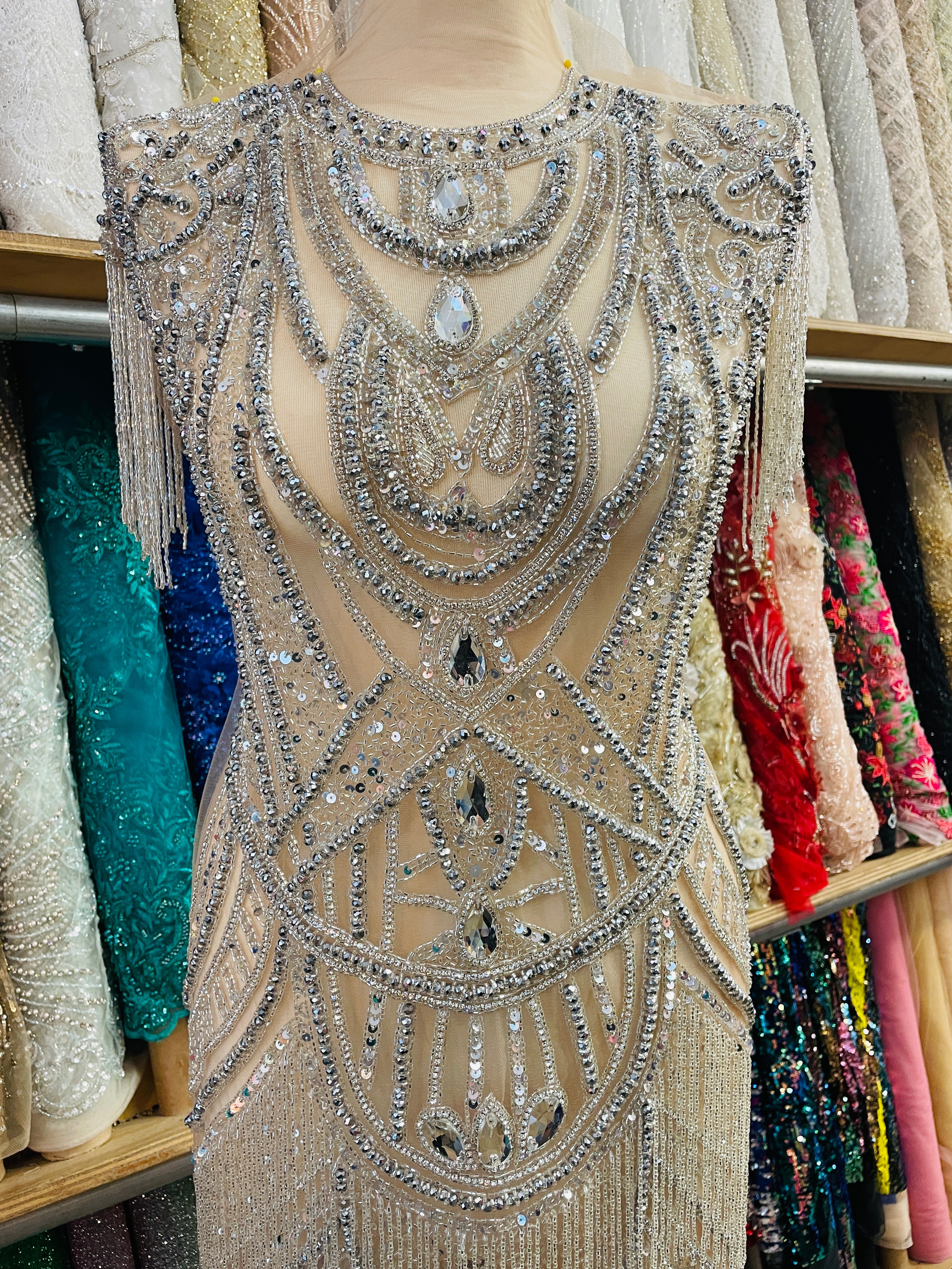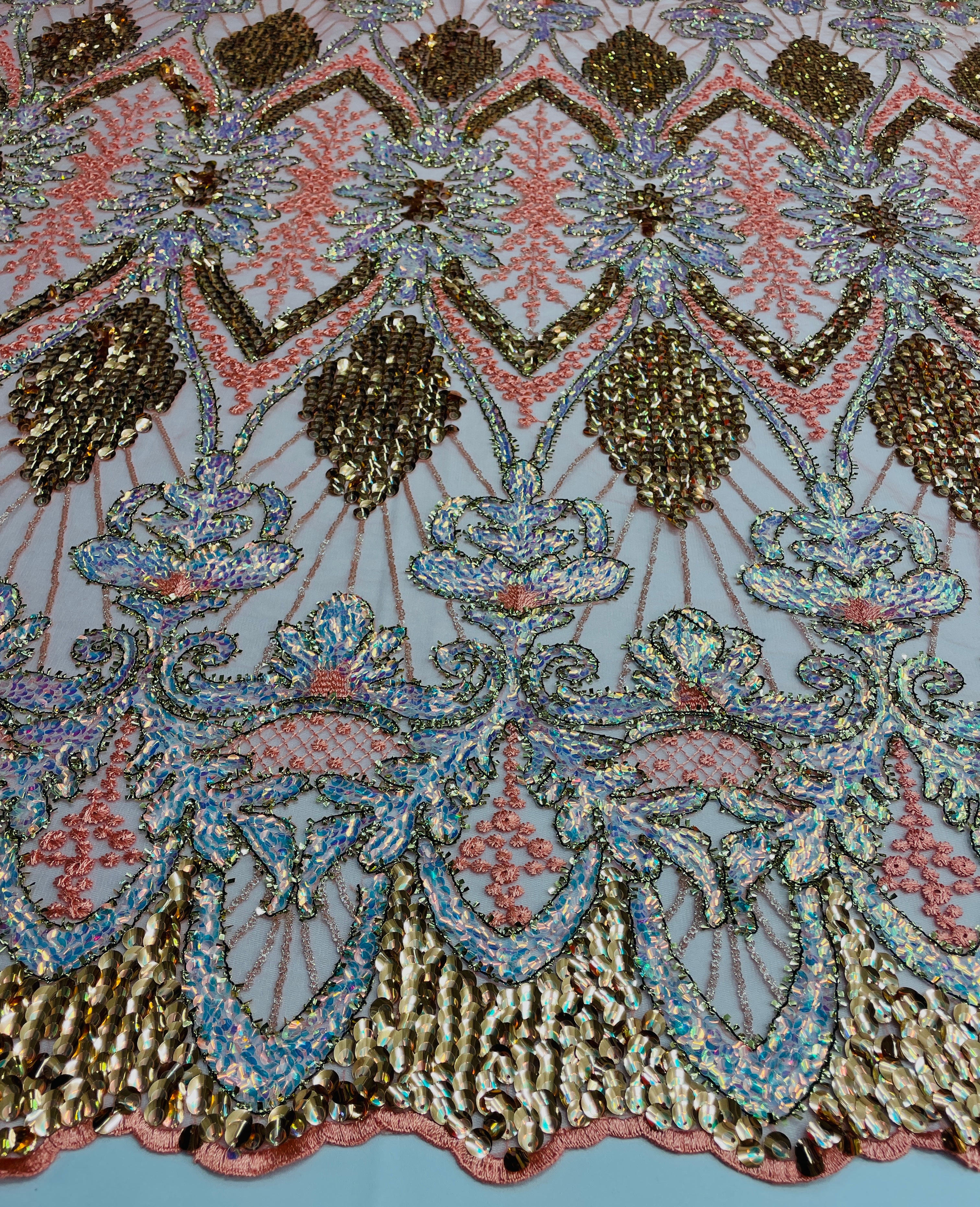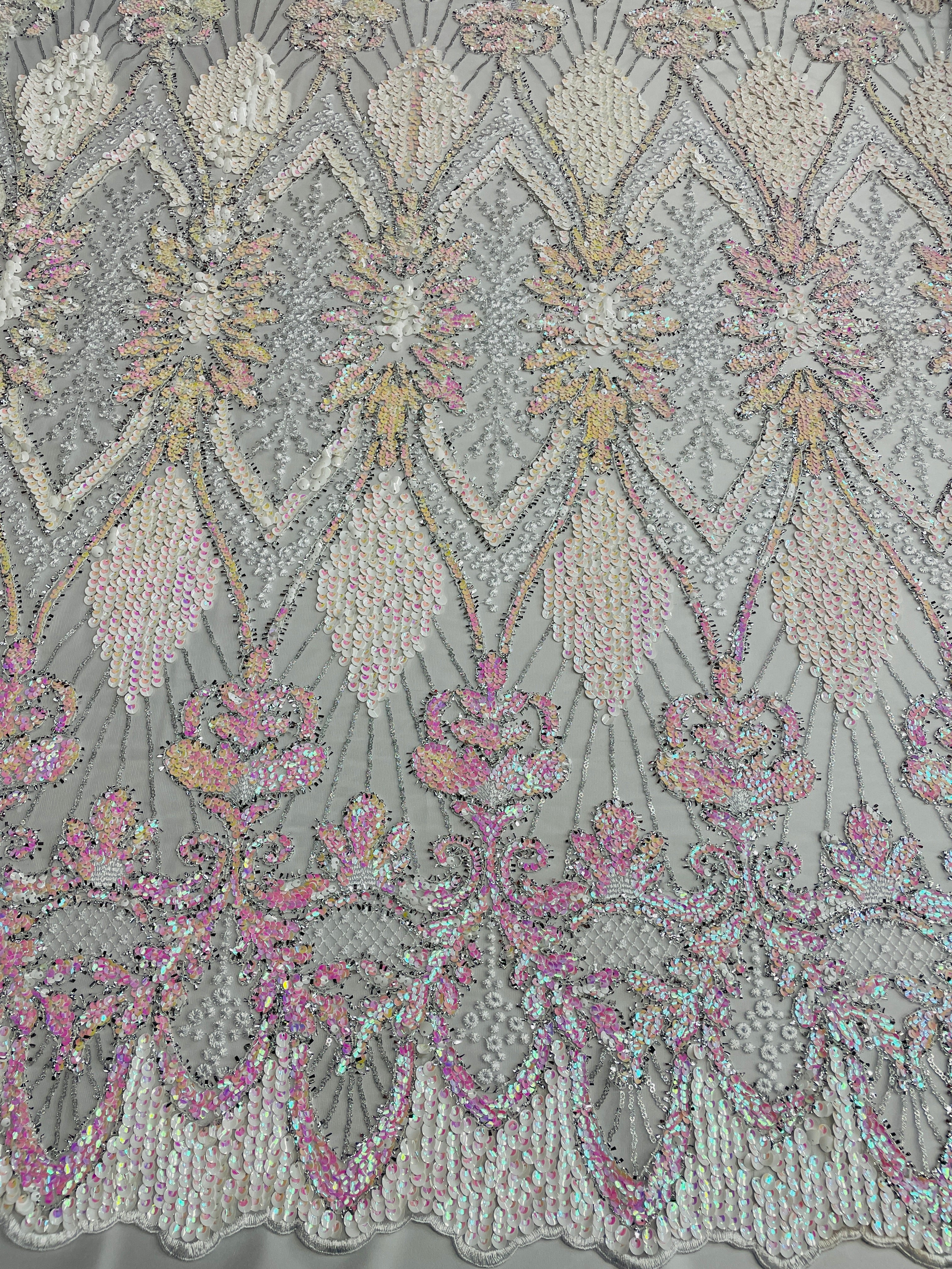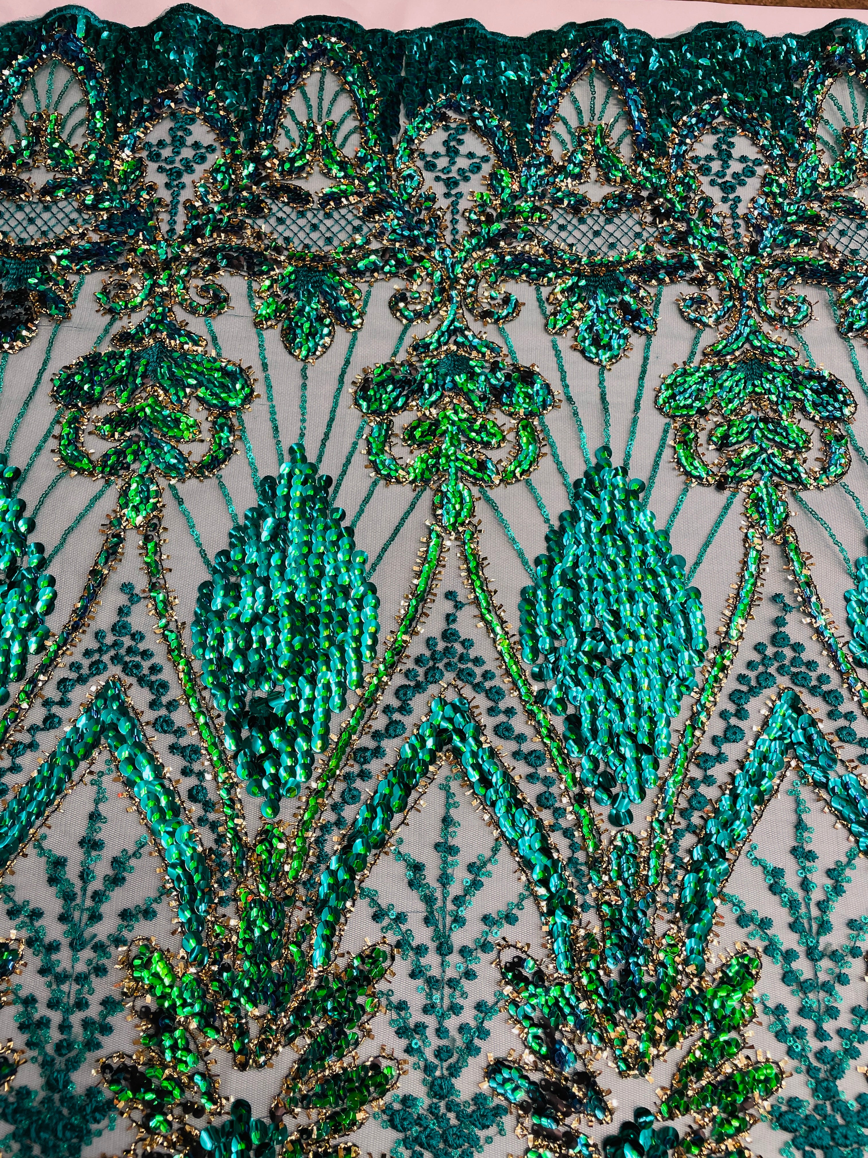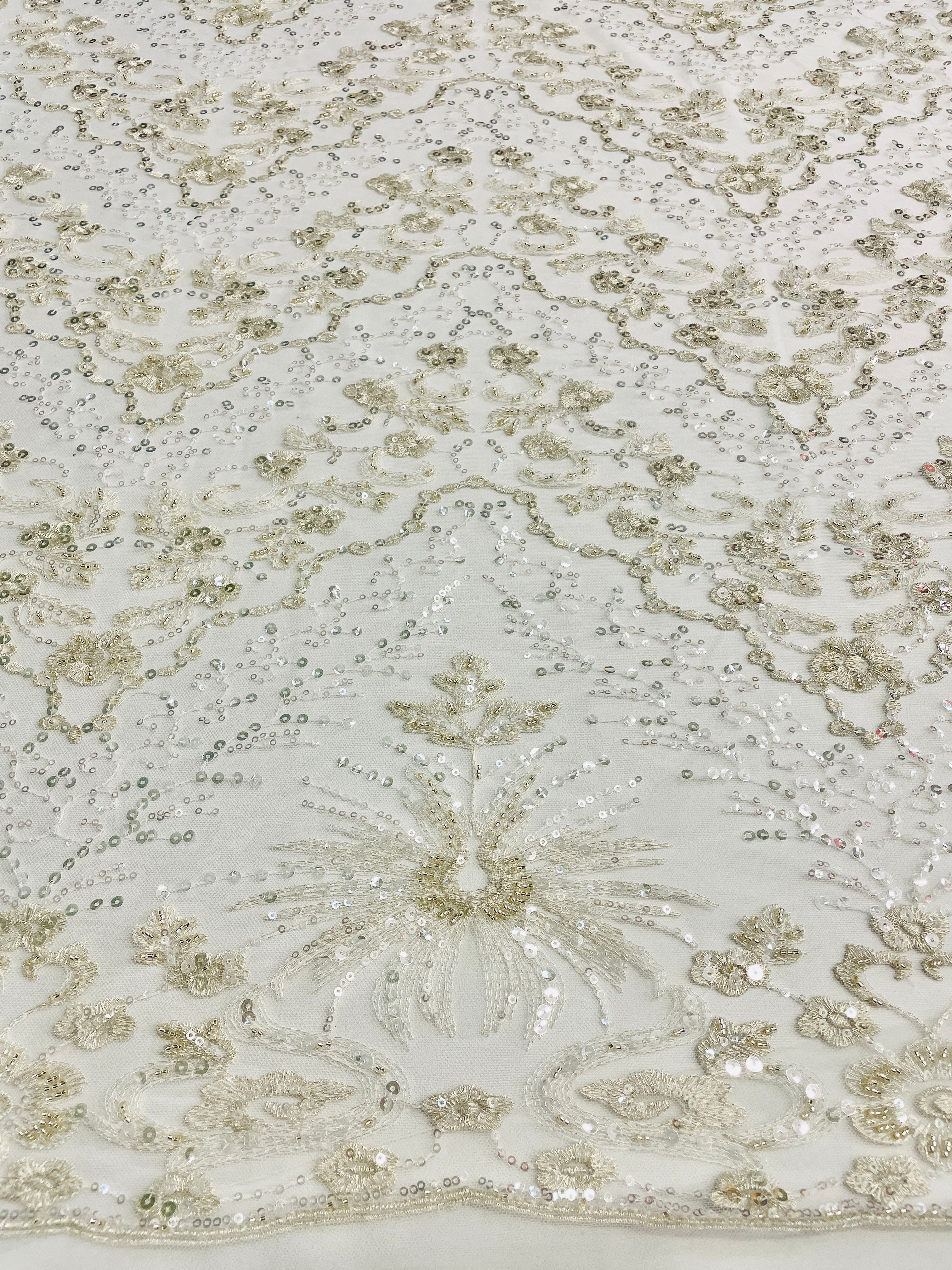 Hand Beaded Sequin Zig Zag Bridal Lace