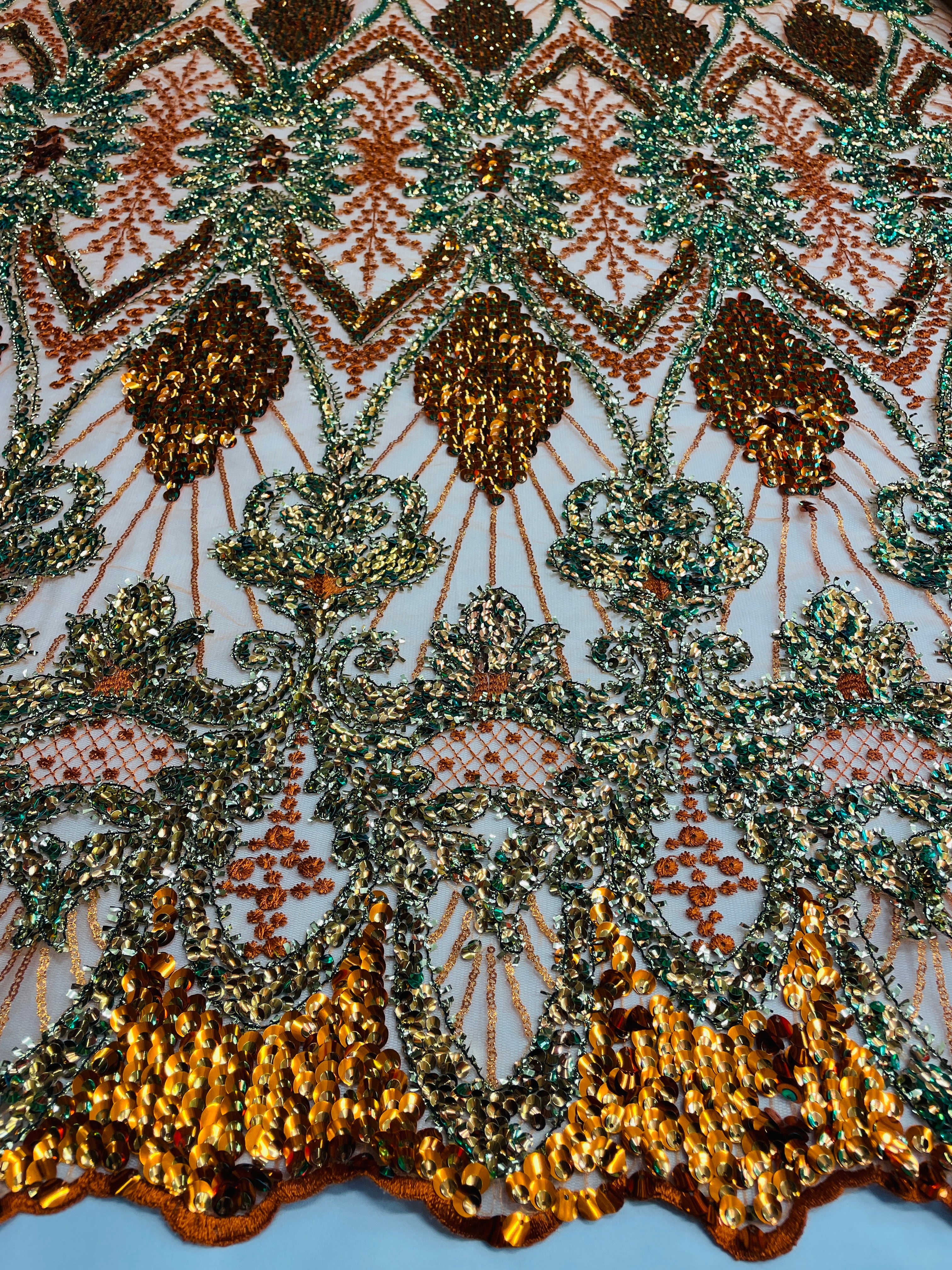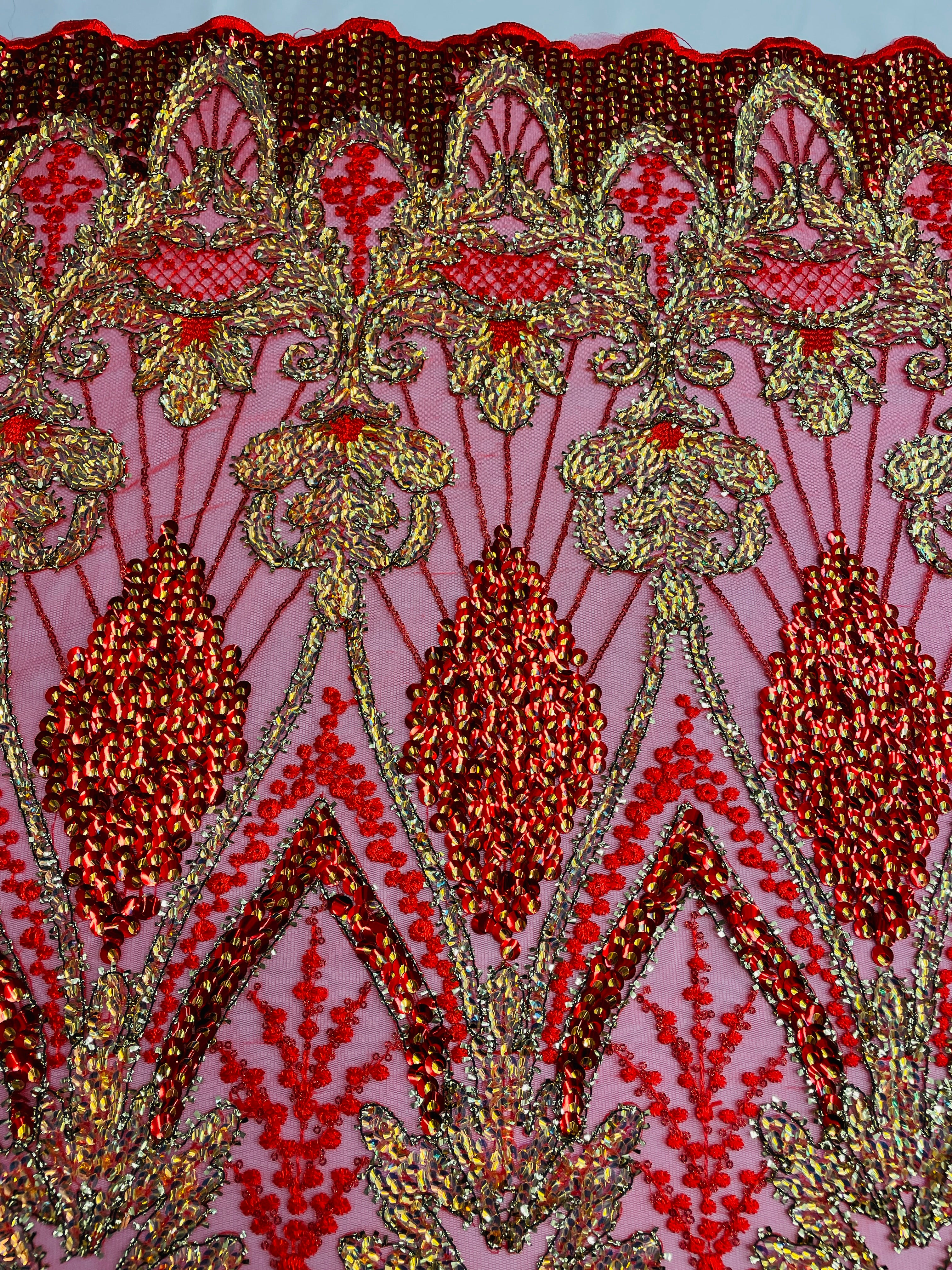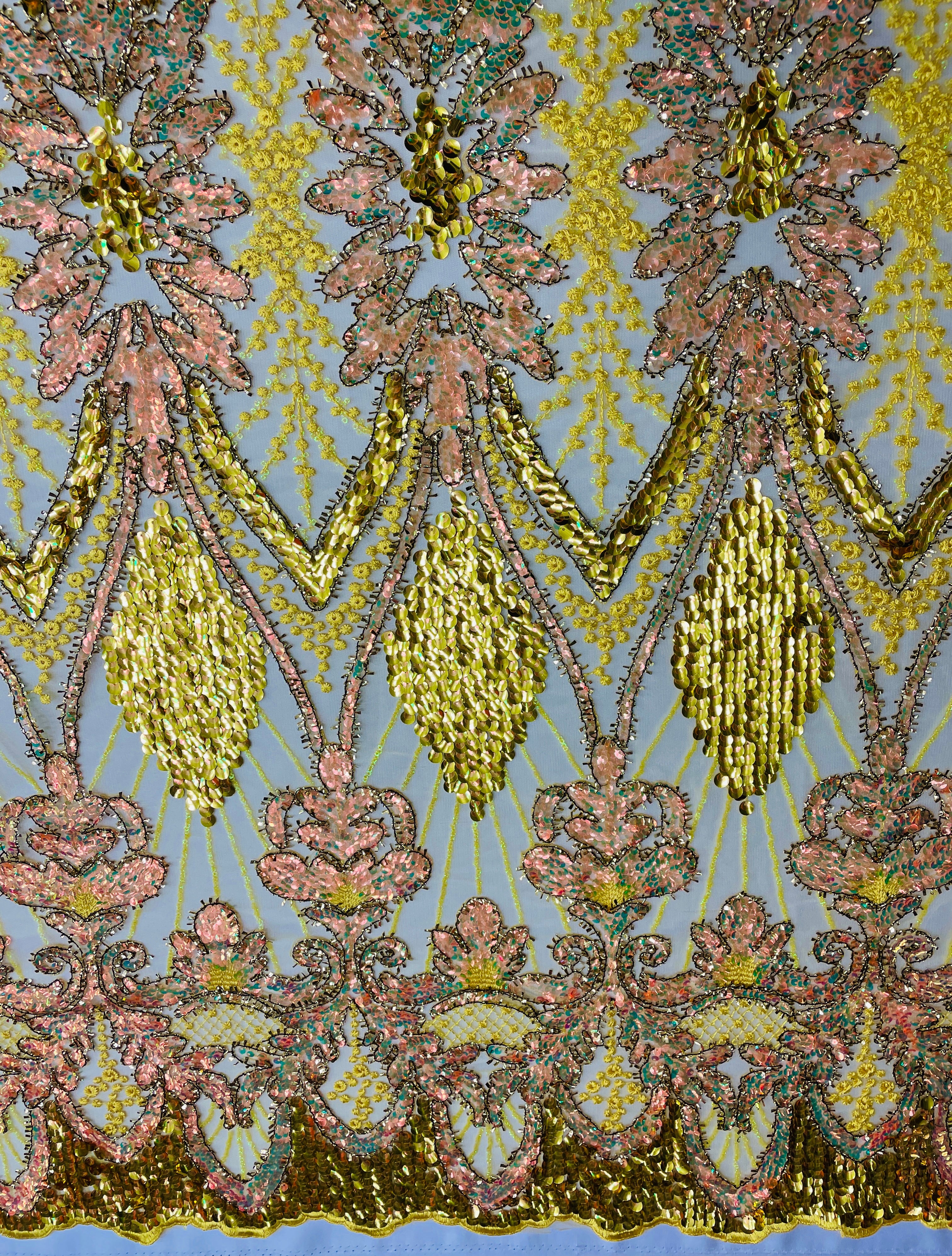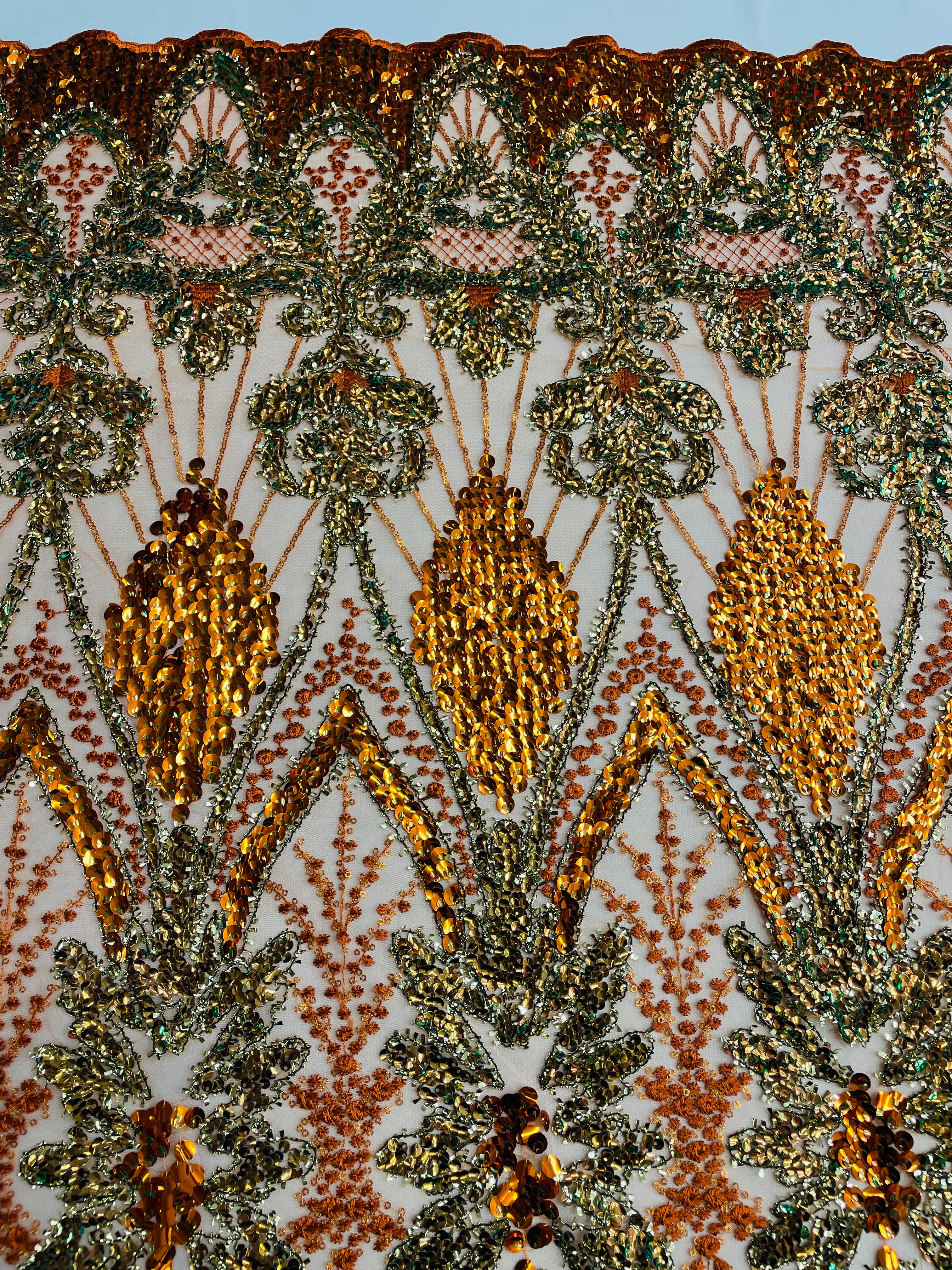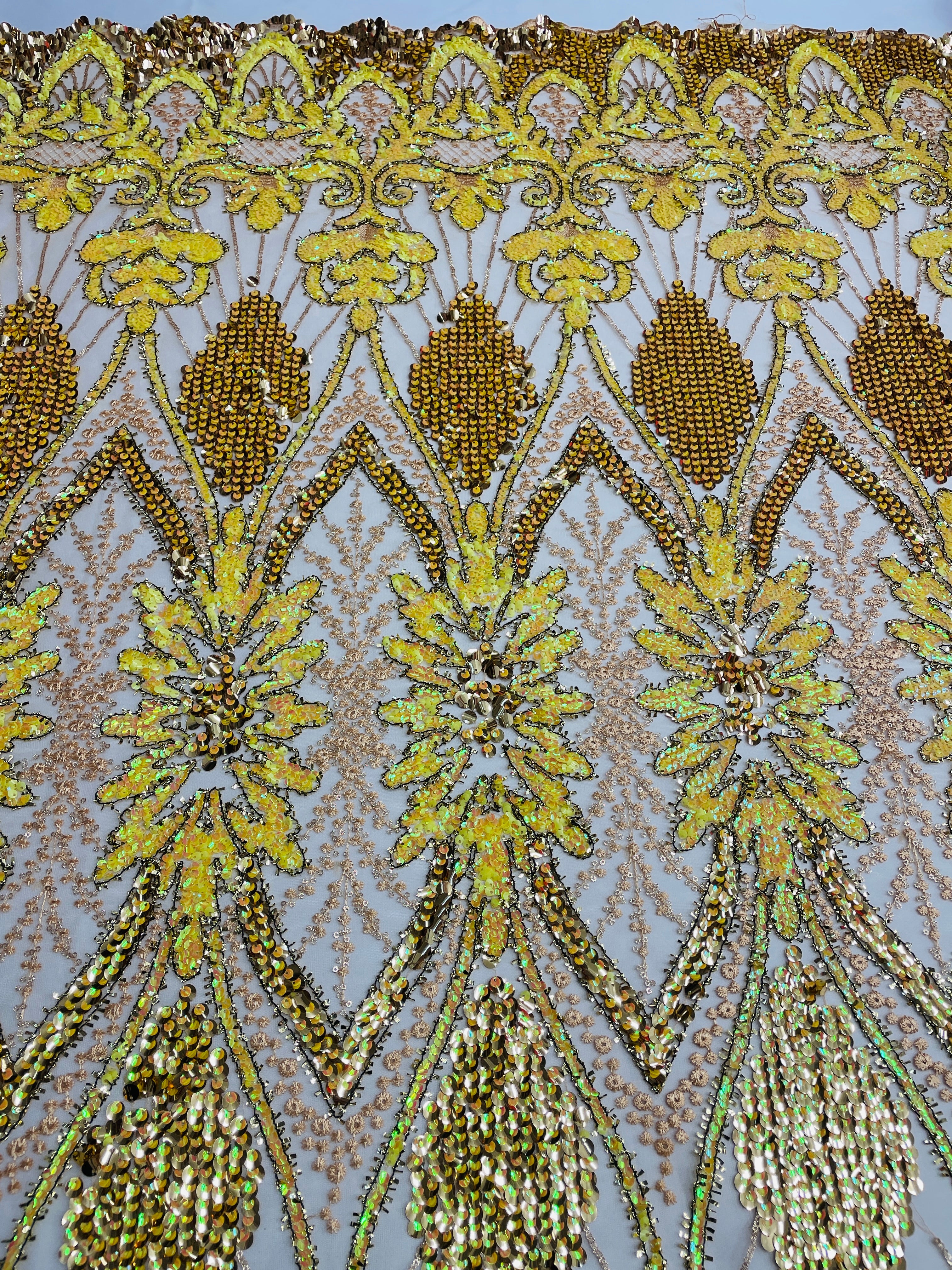 Hand Beaded Sequin Zig Zag Bridal Lace