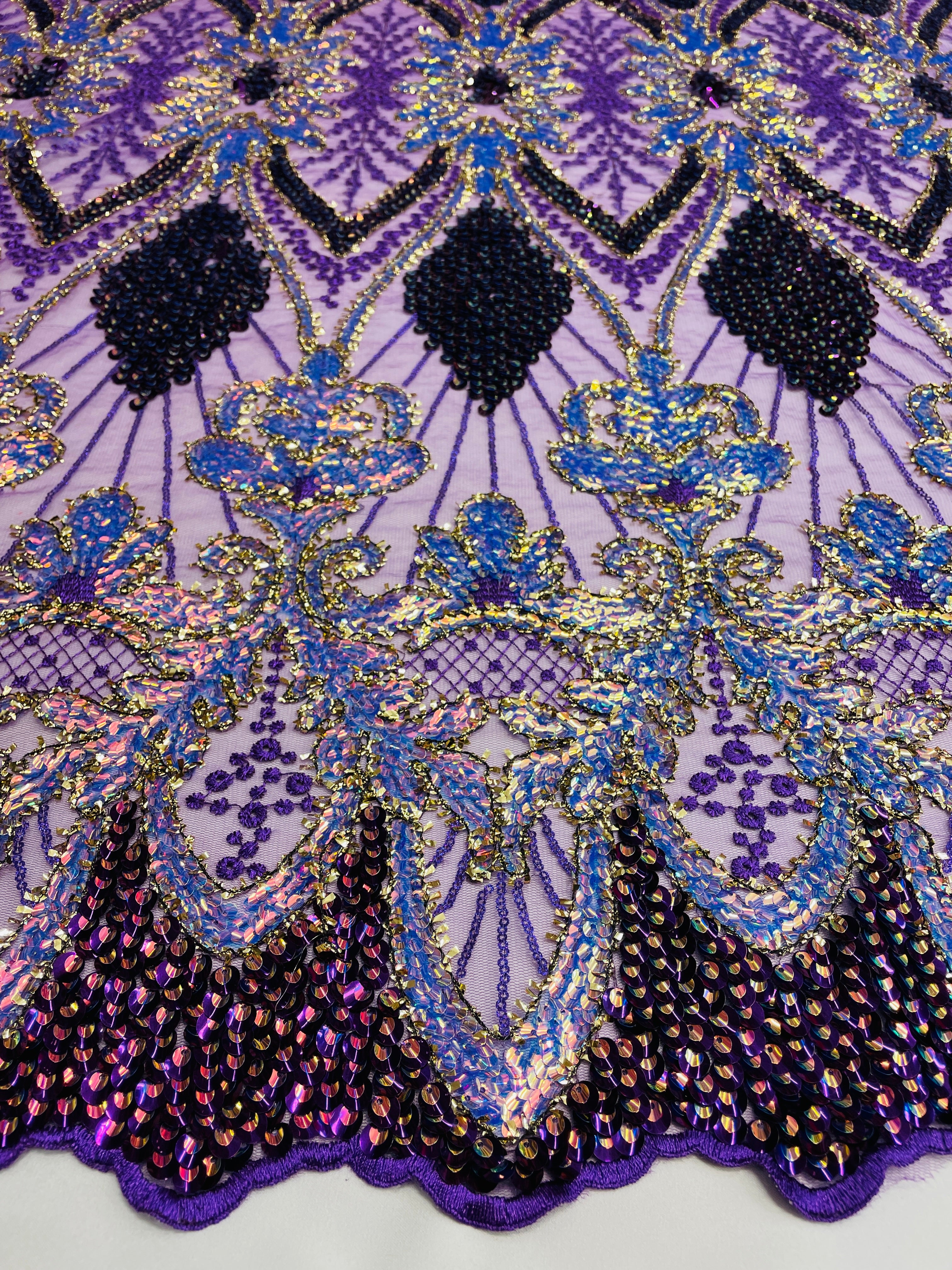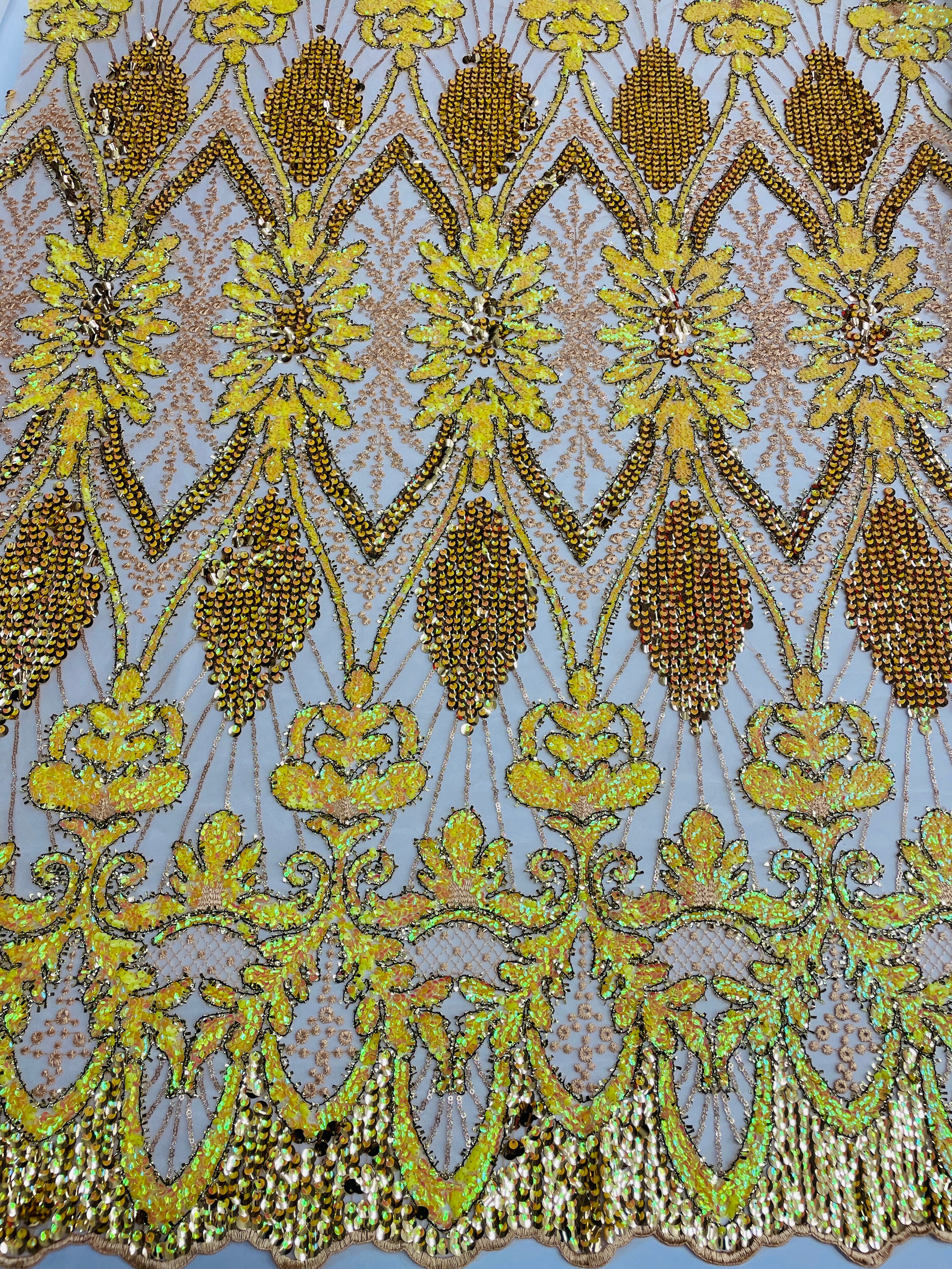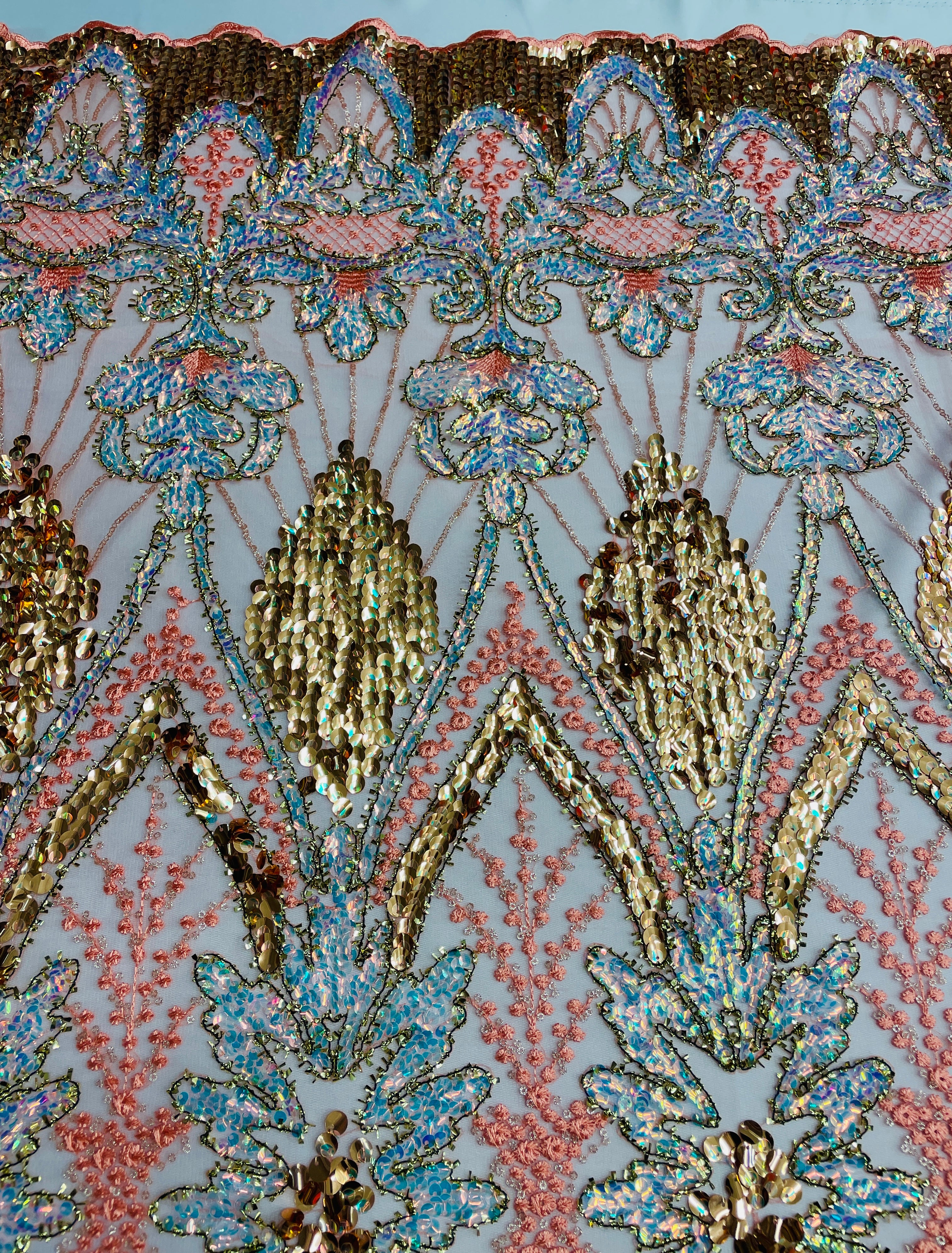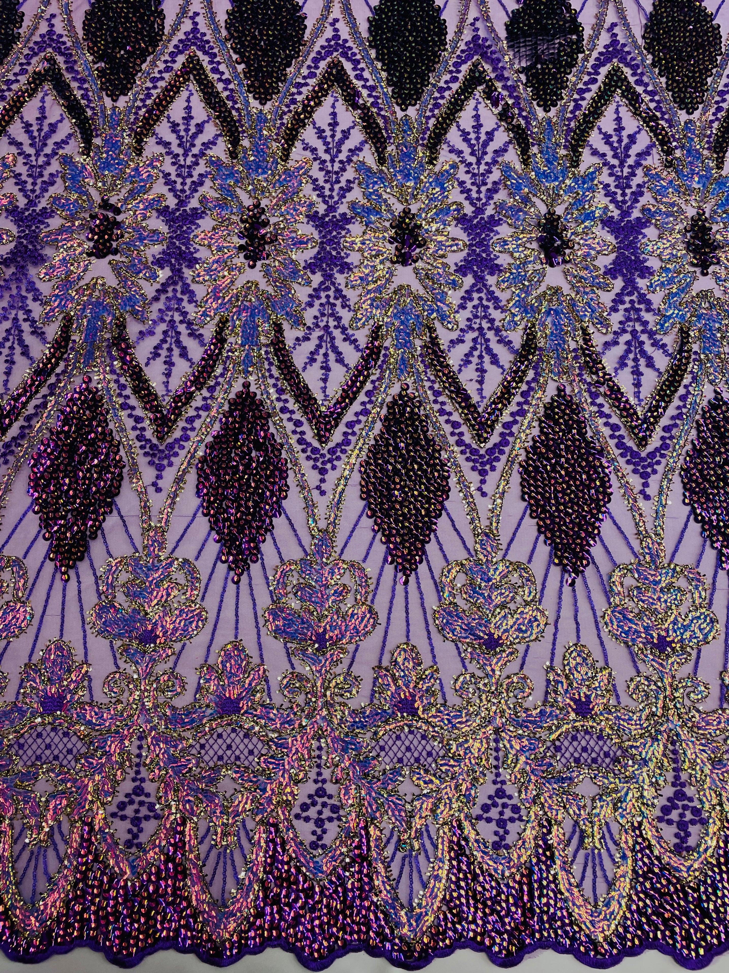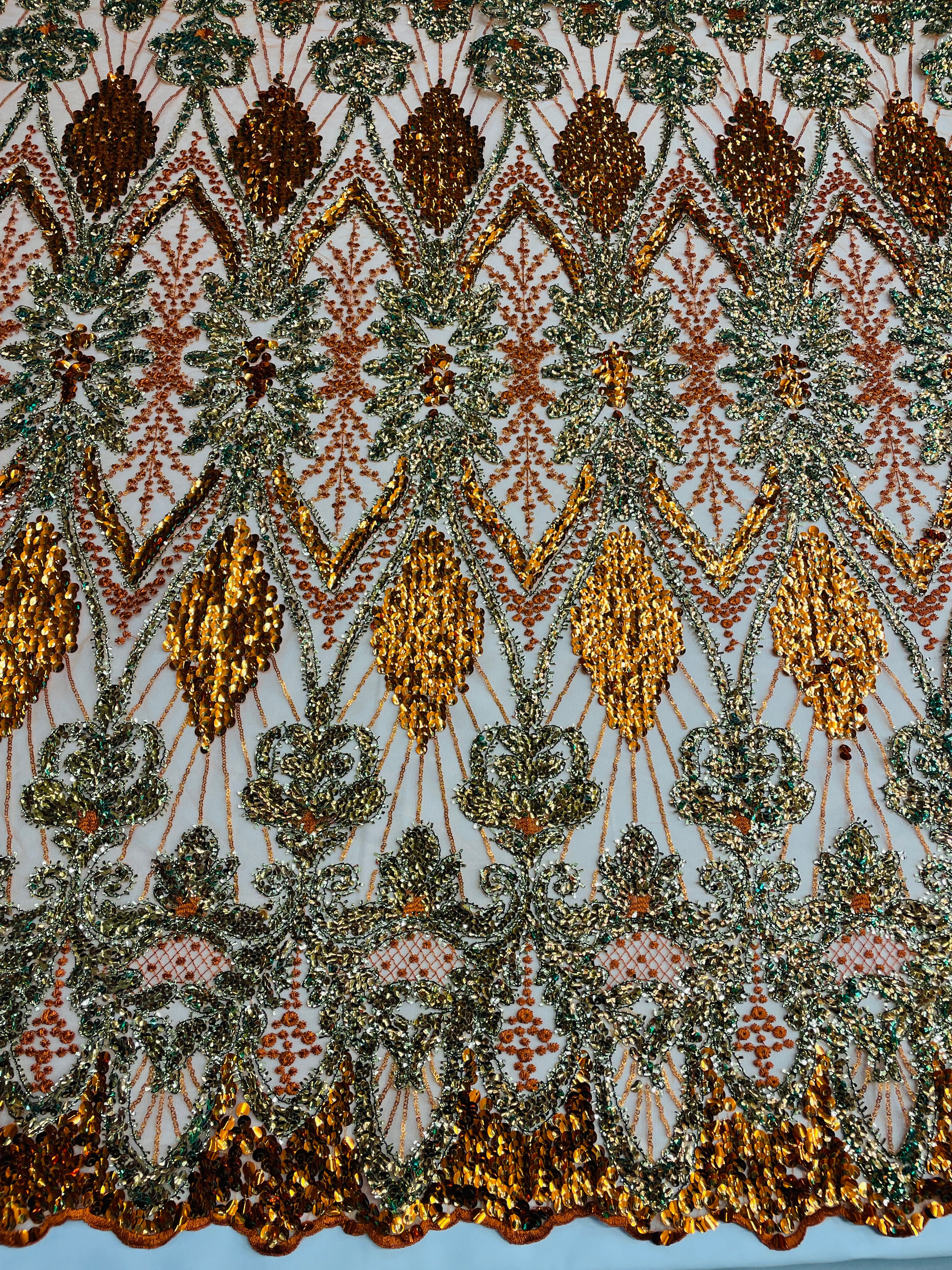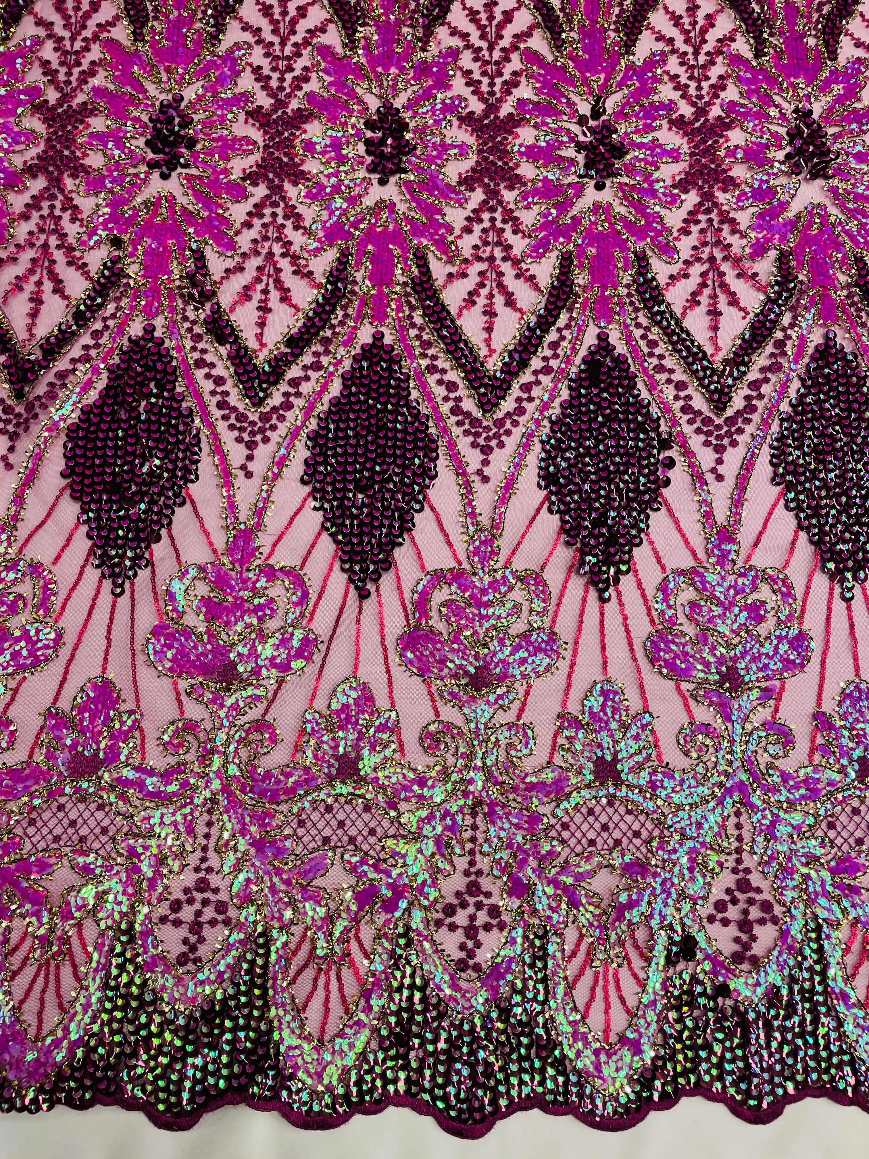 Hand Beaded Sequin Zig Zag Bridal Lace