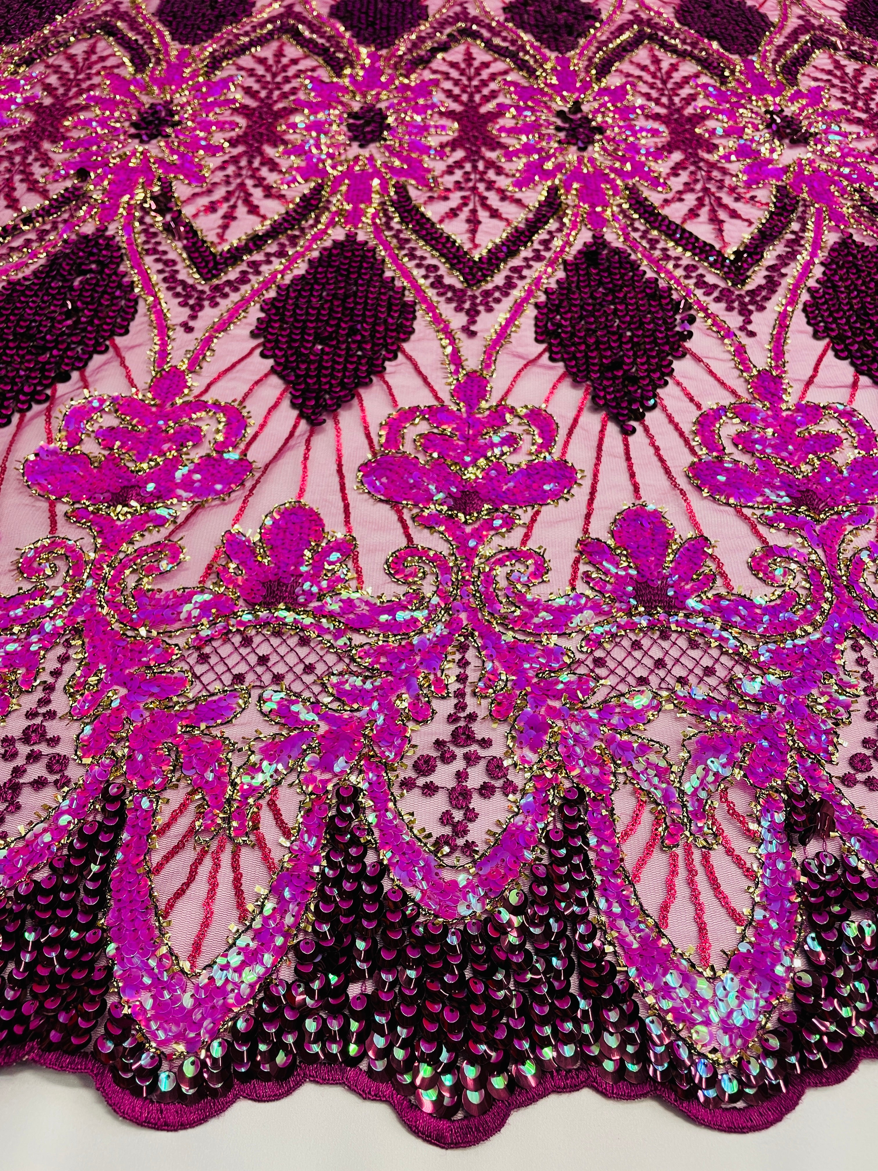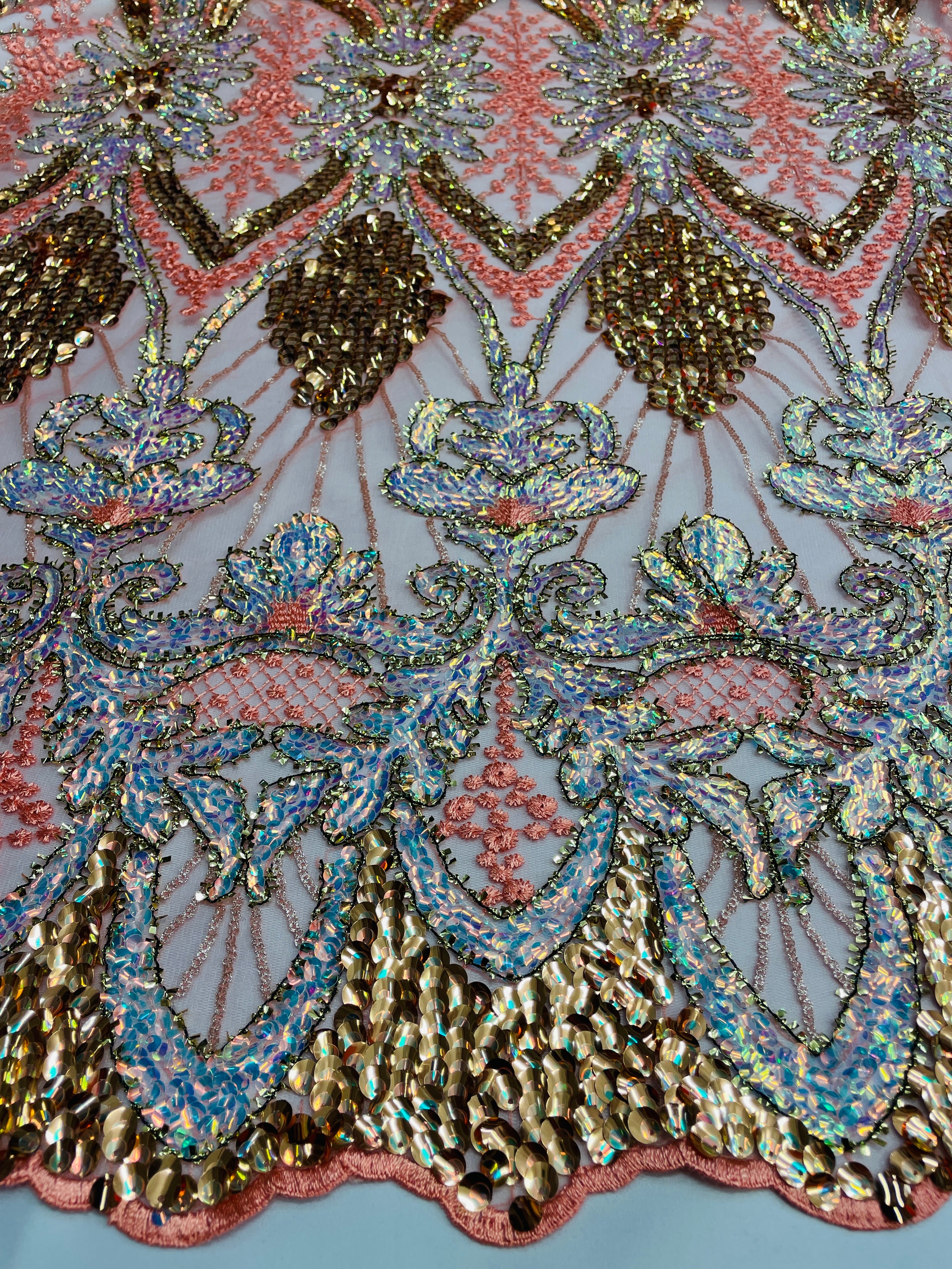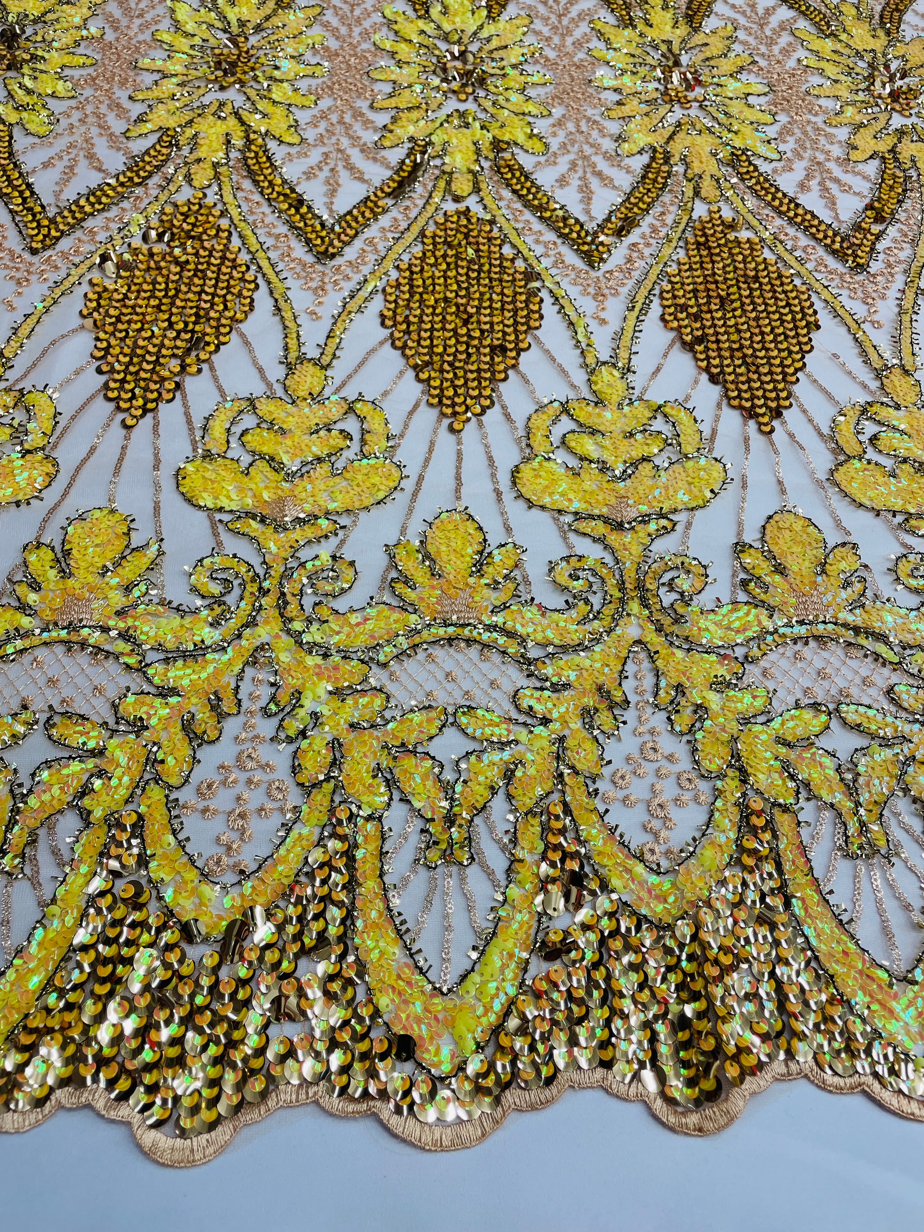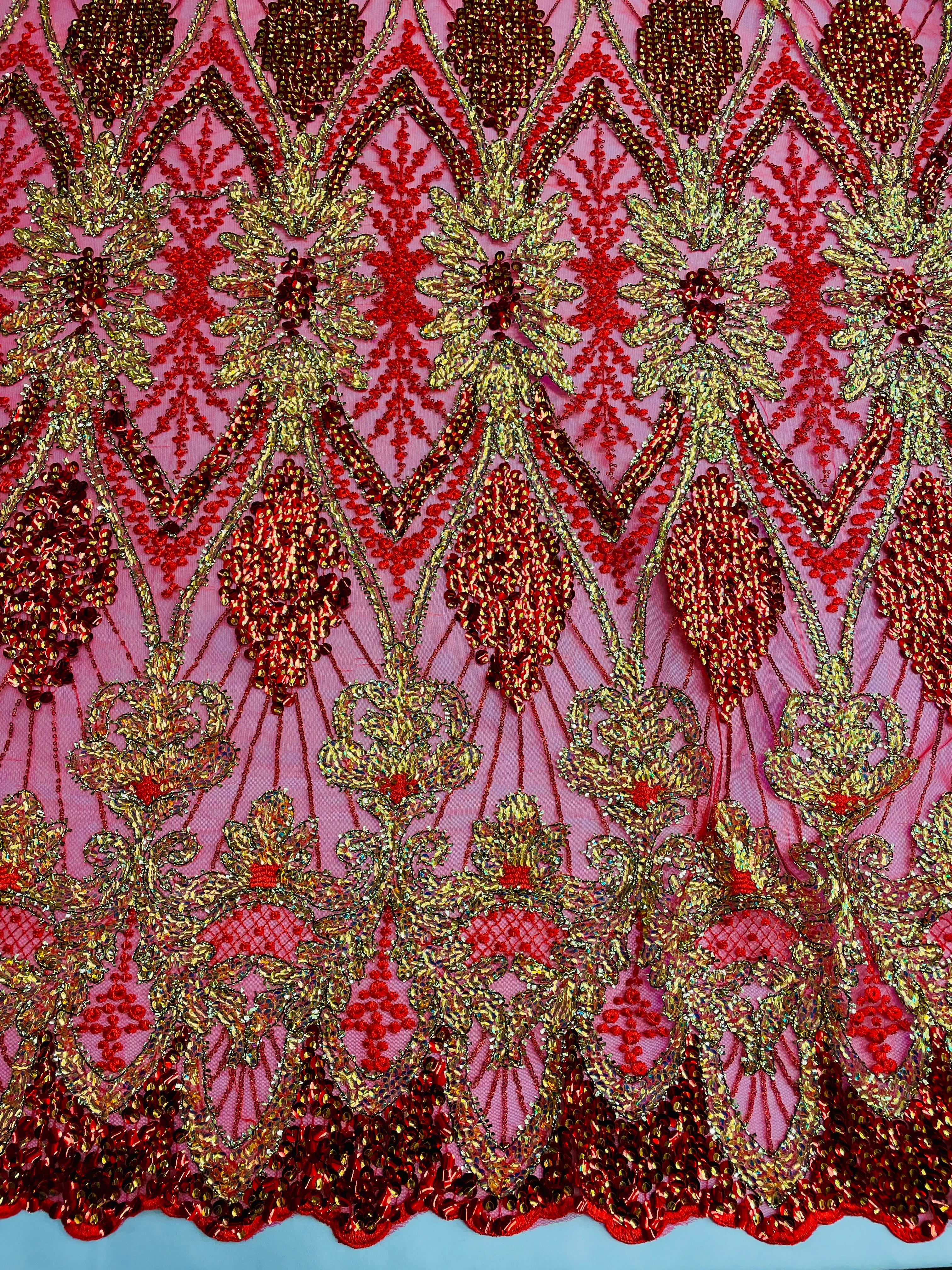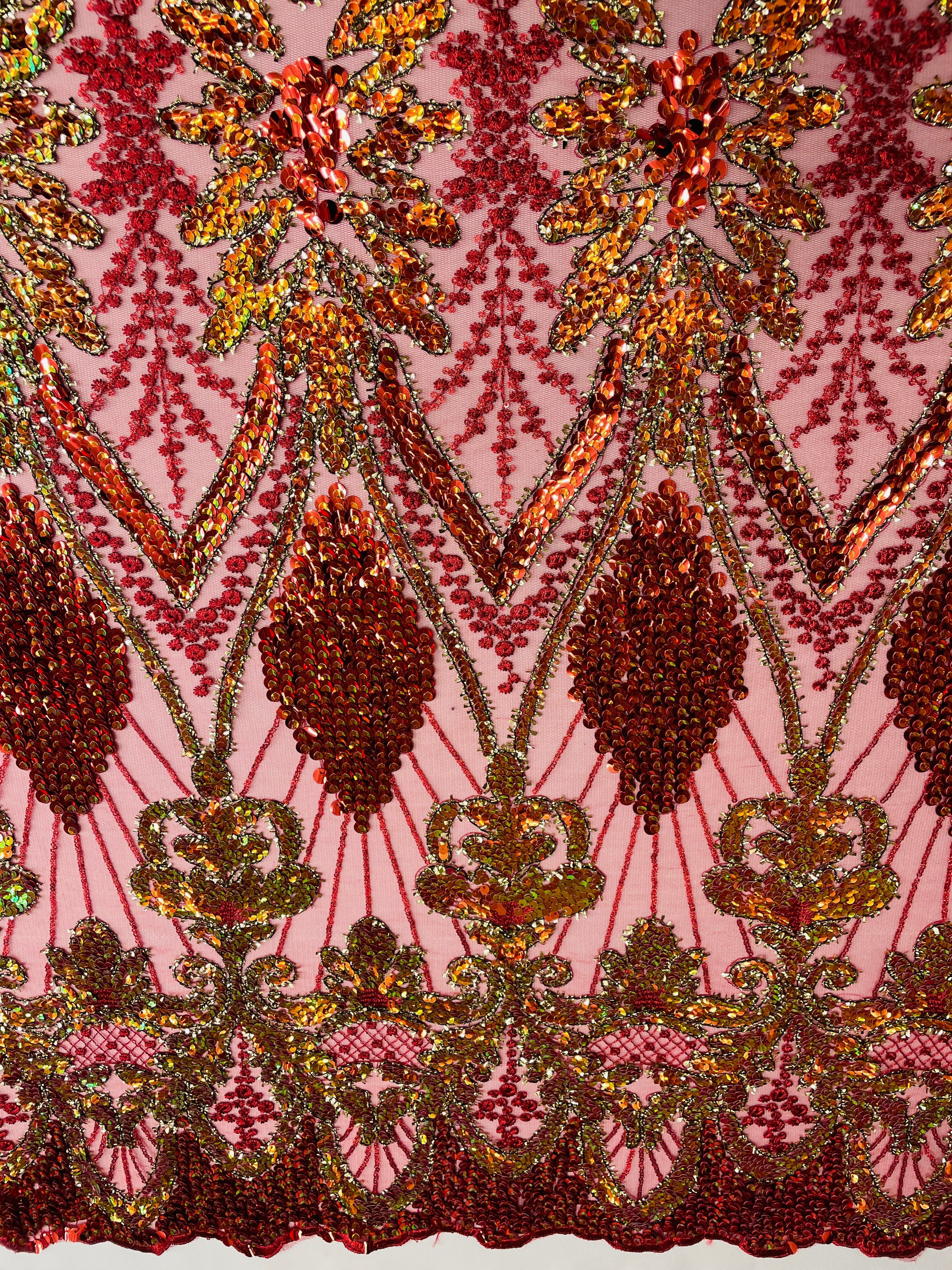 Hand Beaded Sequin Zig Zag Bridal Lace