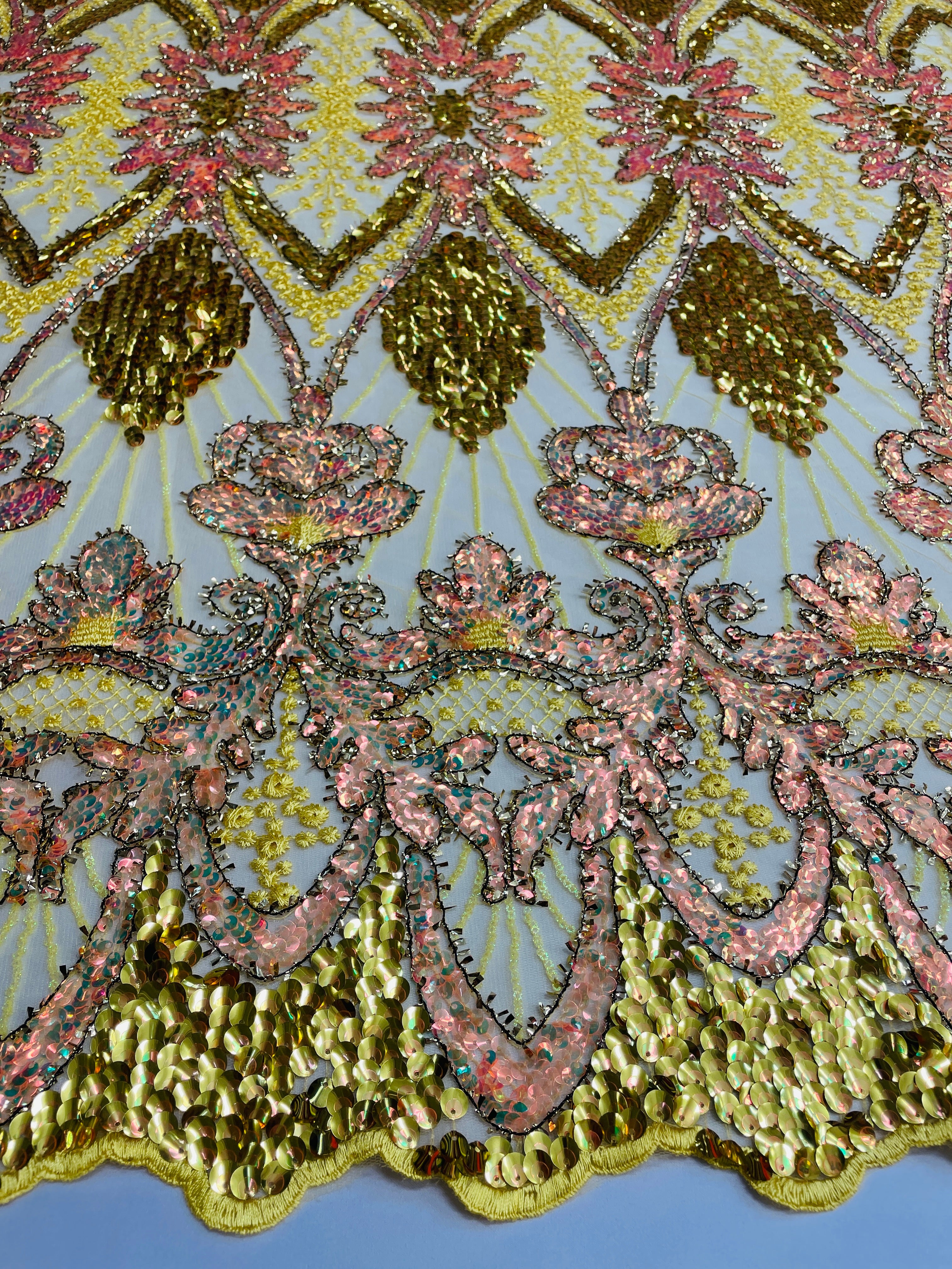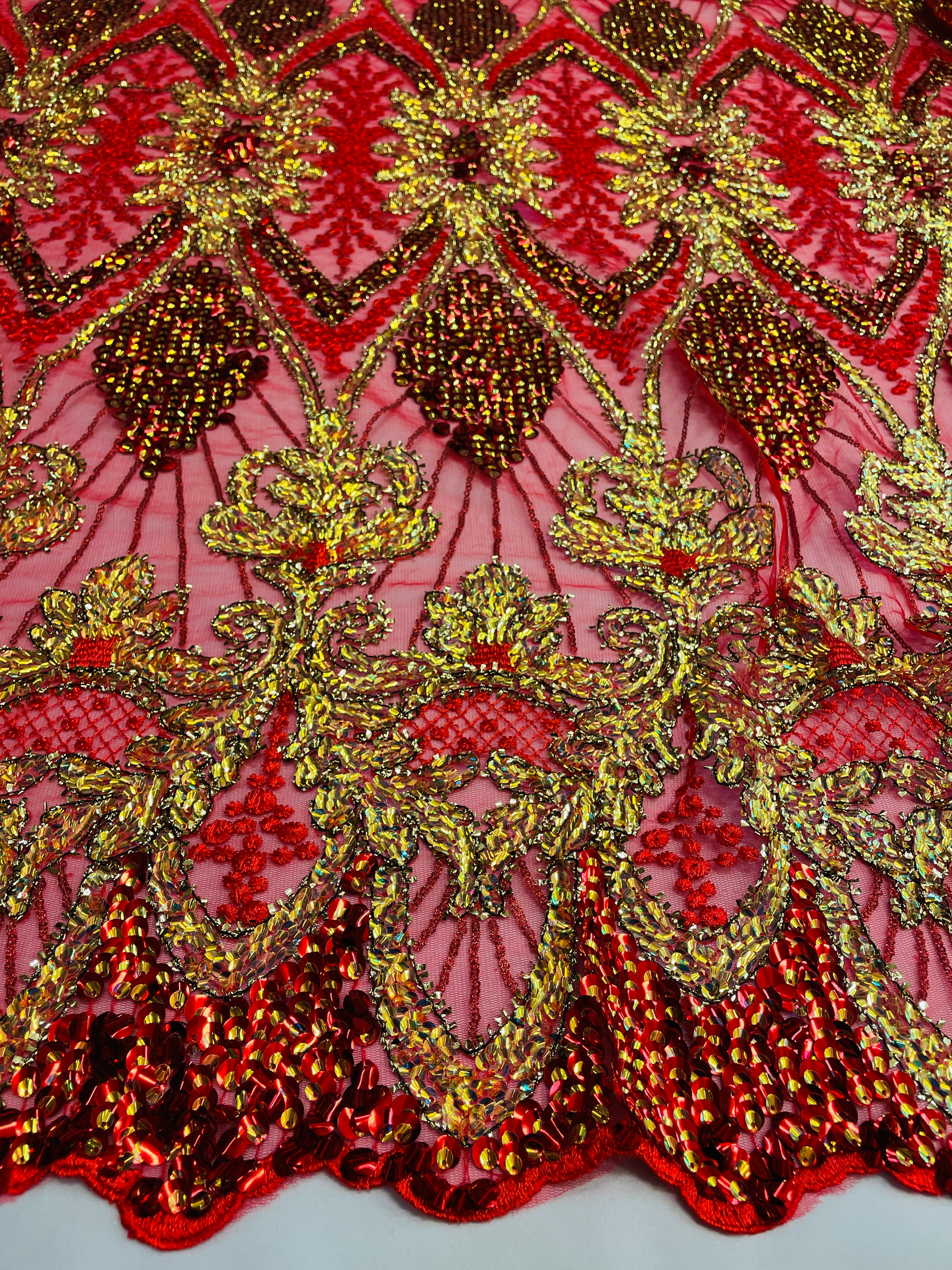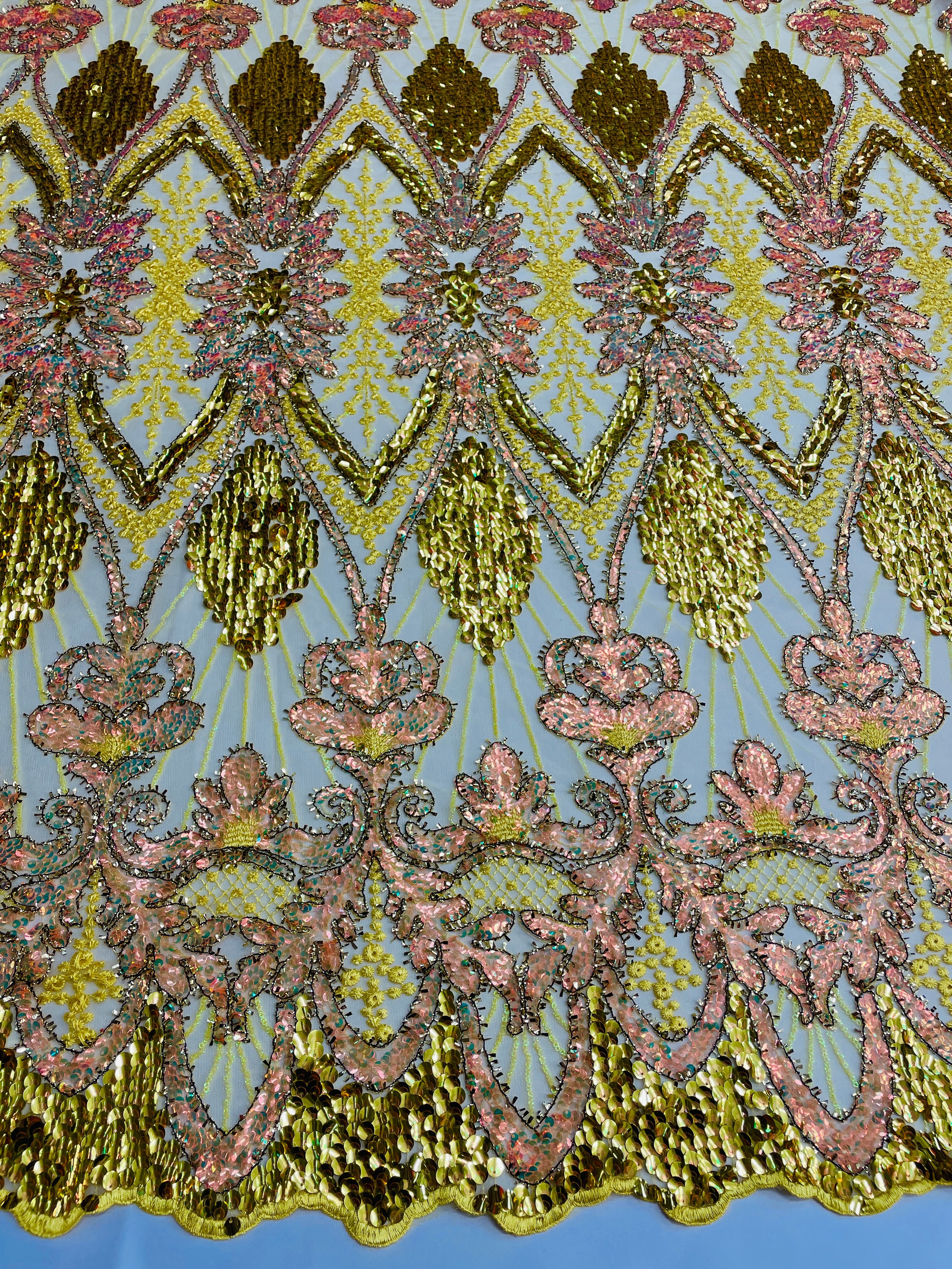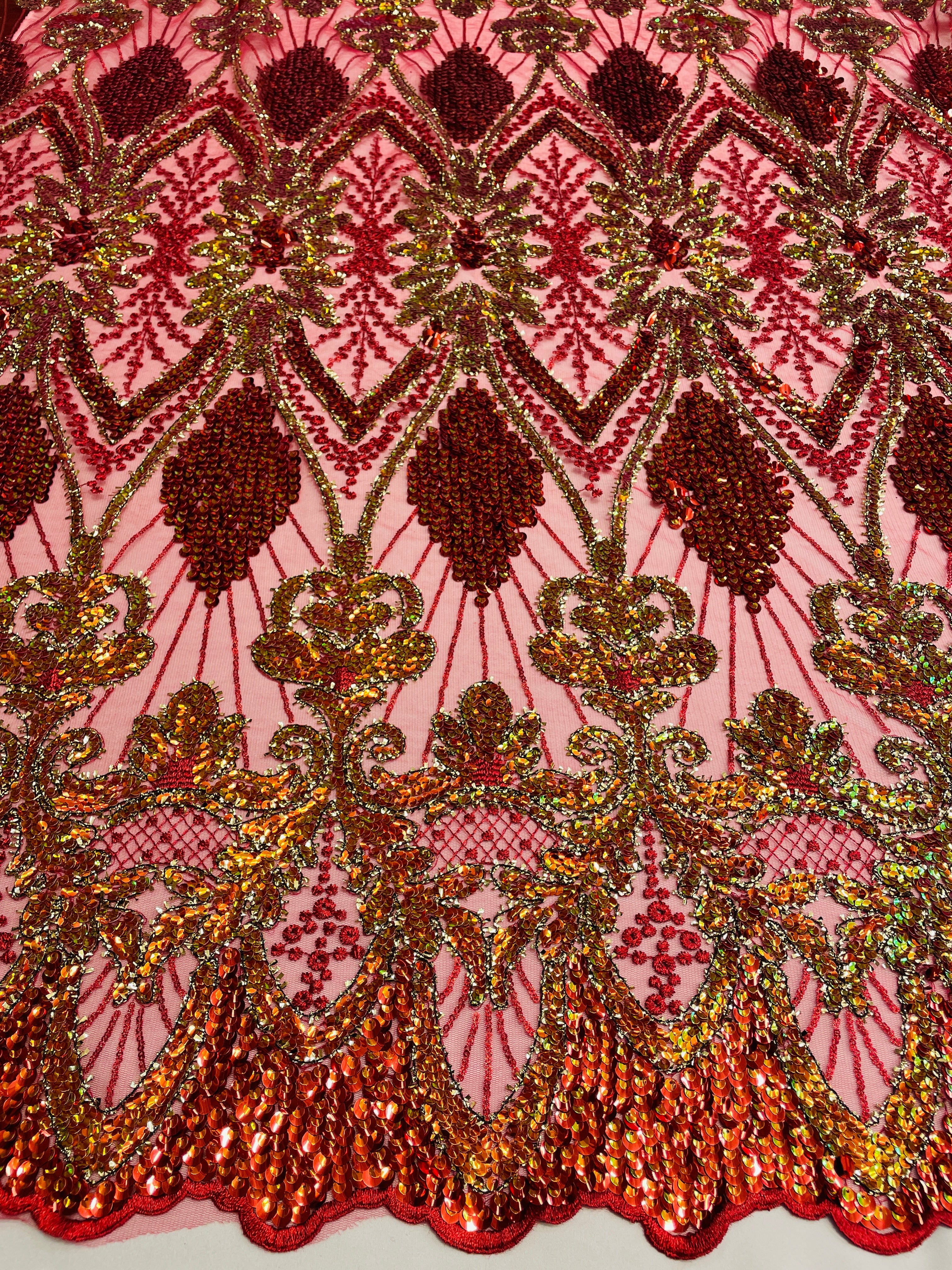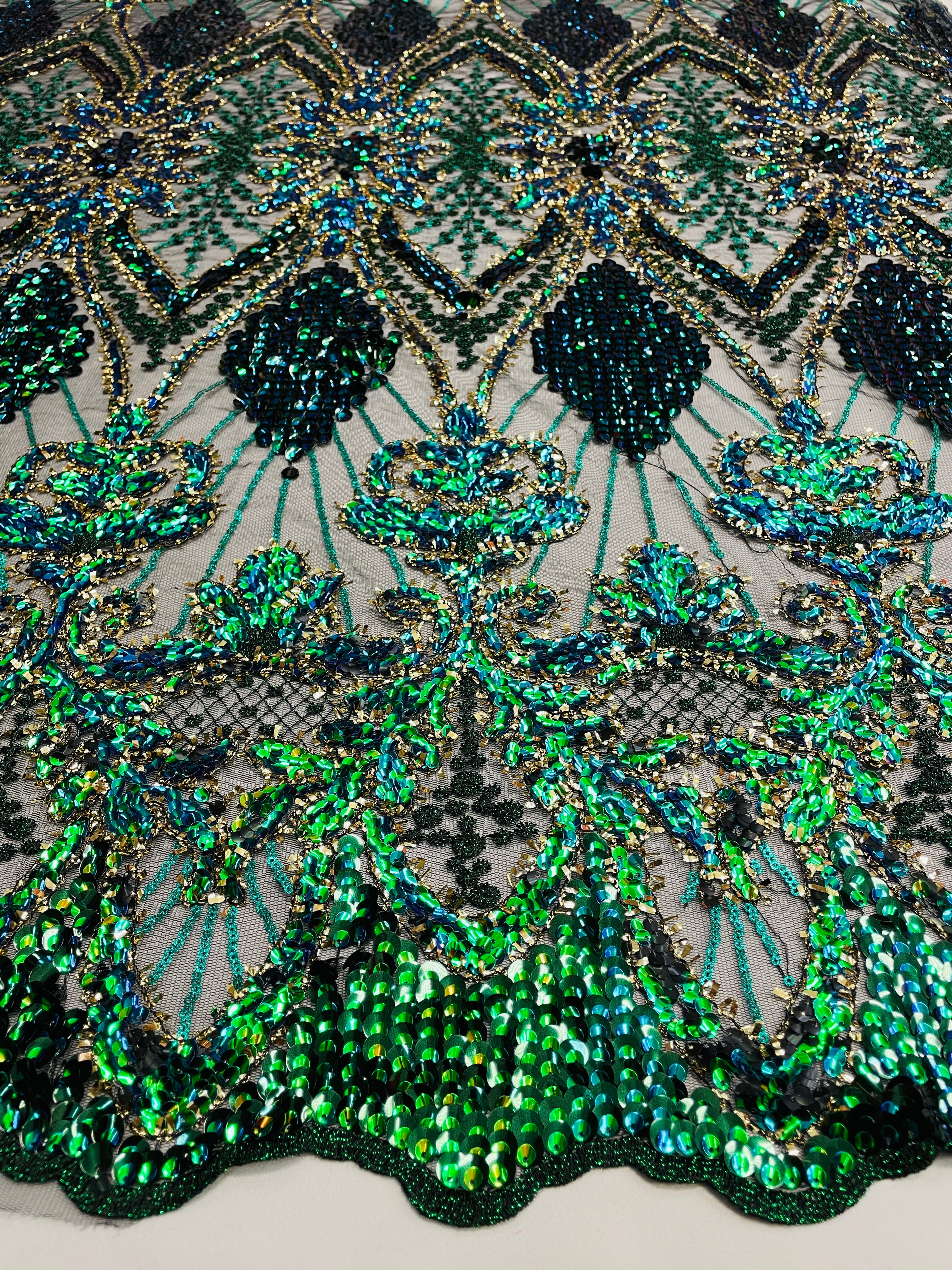 Hand Beaded Sequin Zig Zag Bridal Lace
