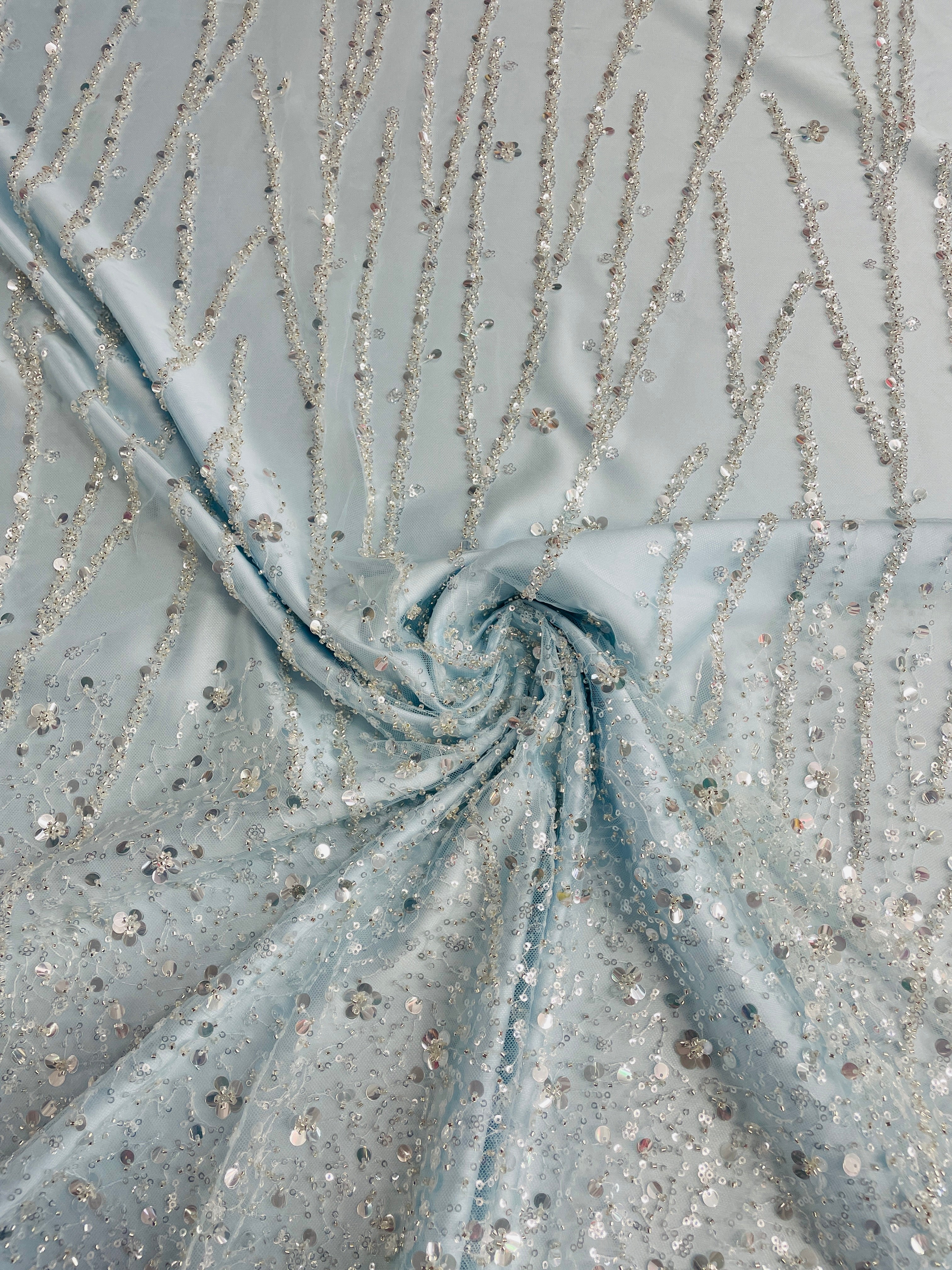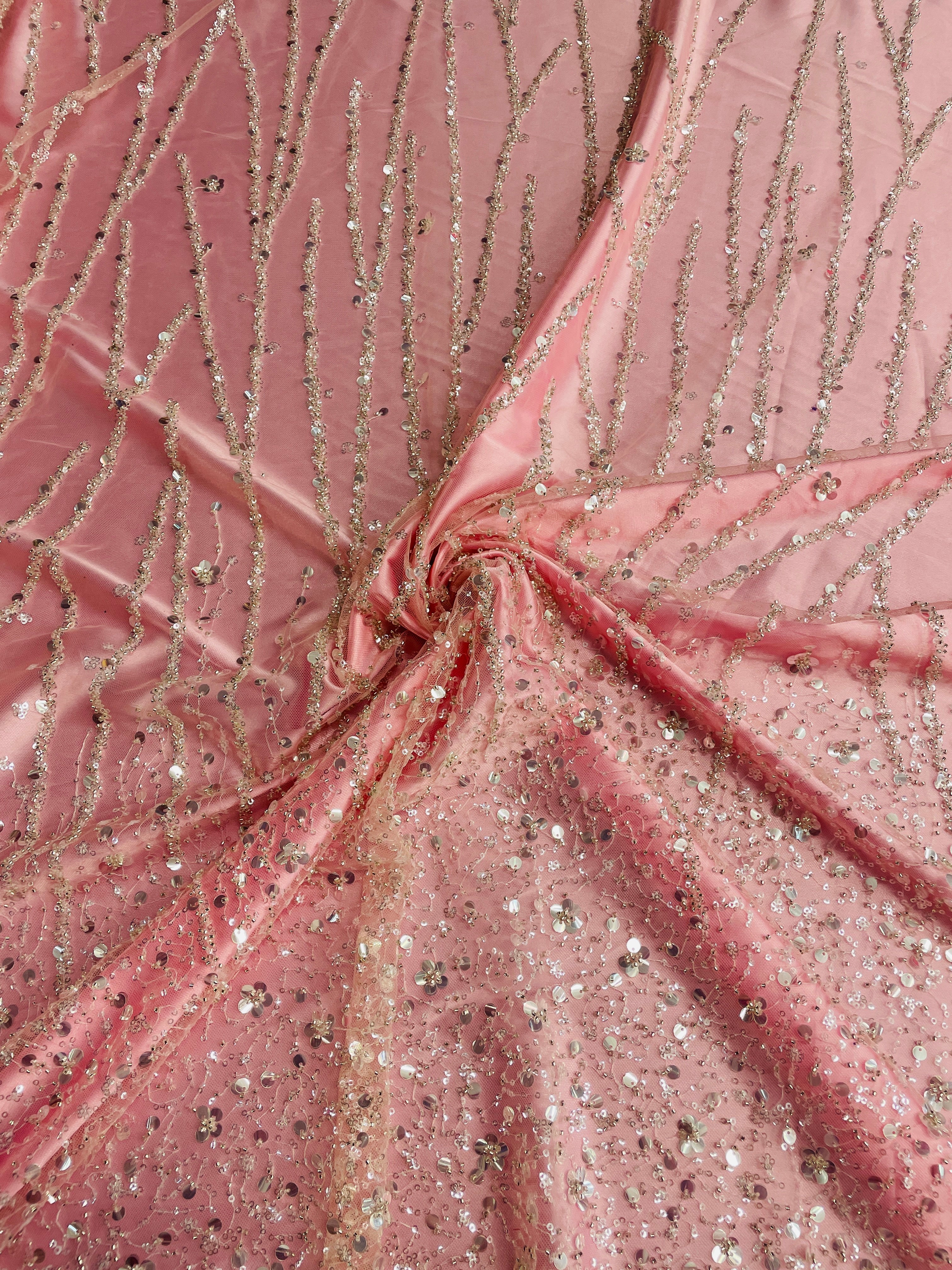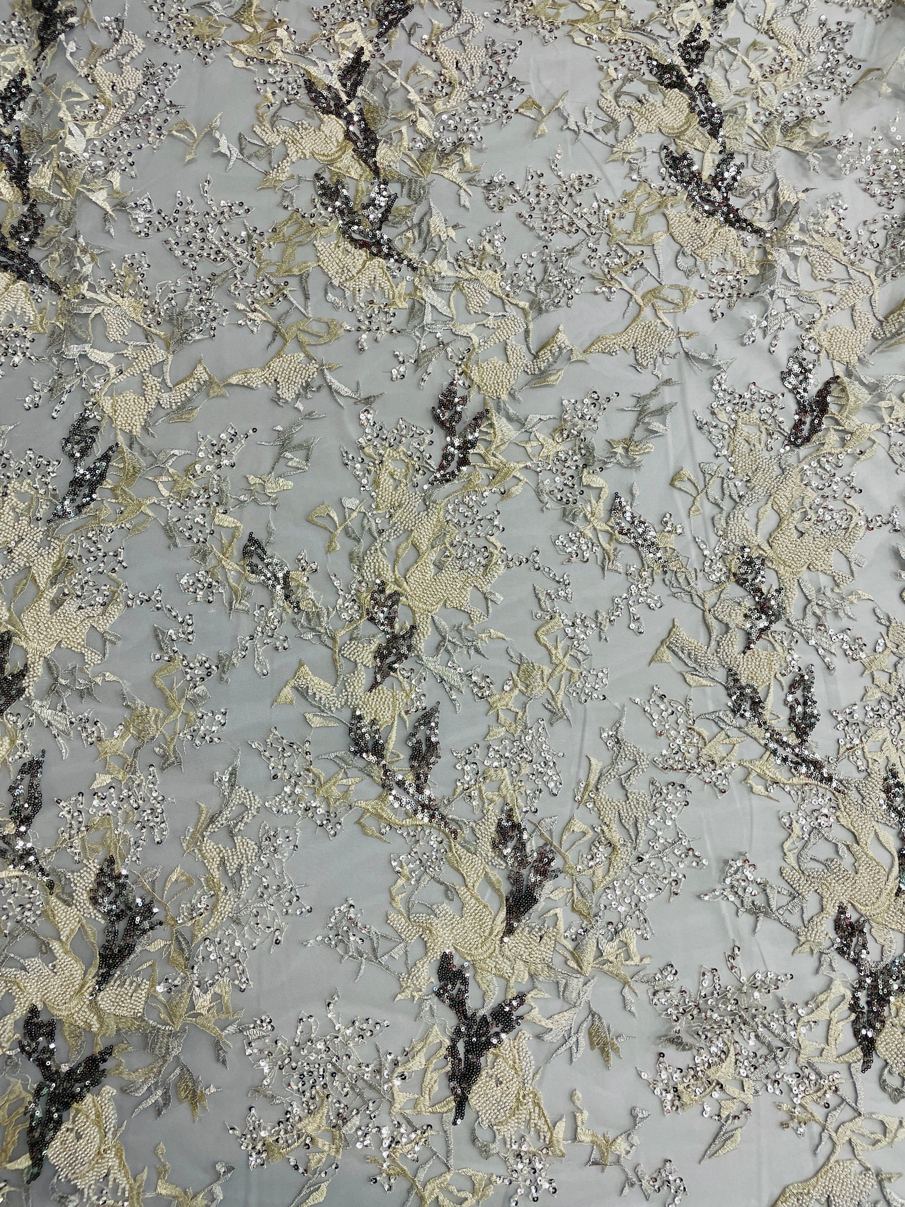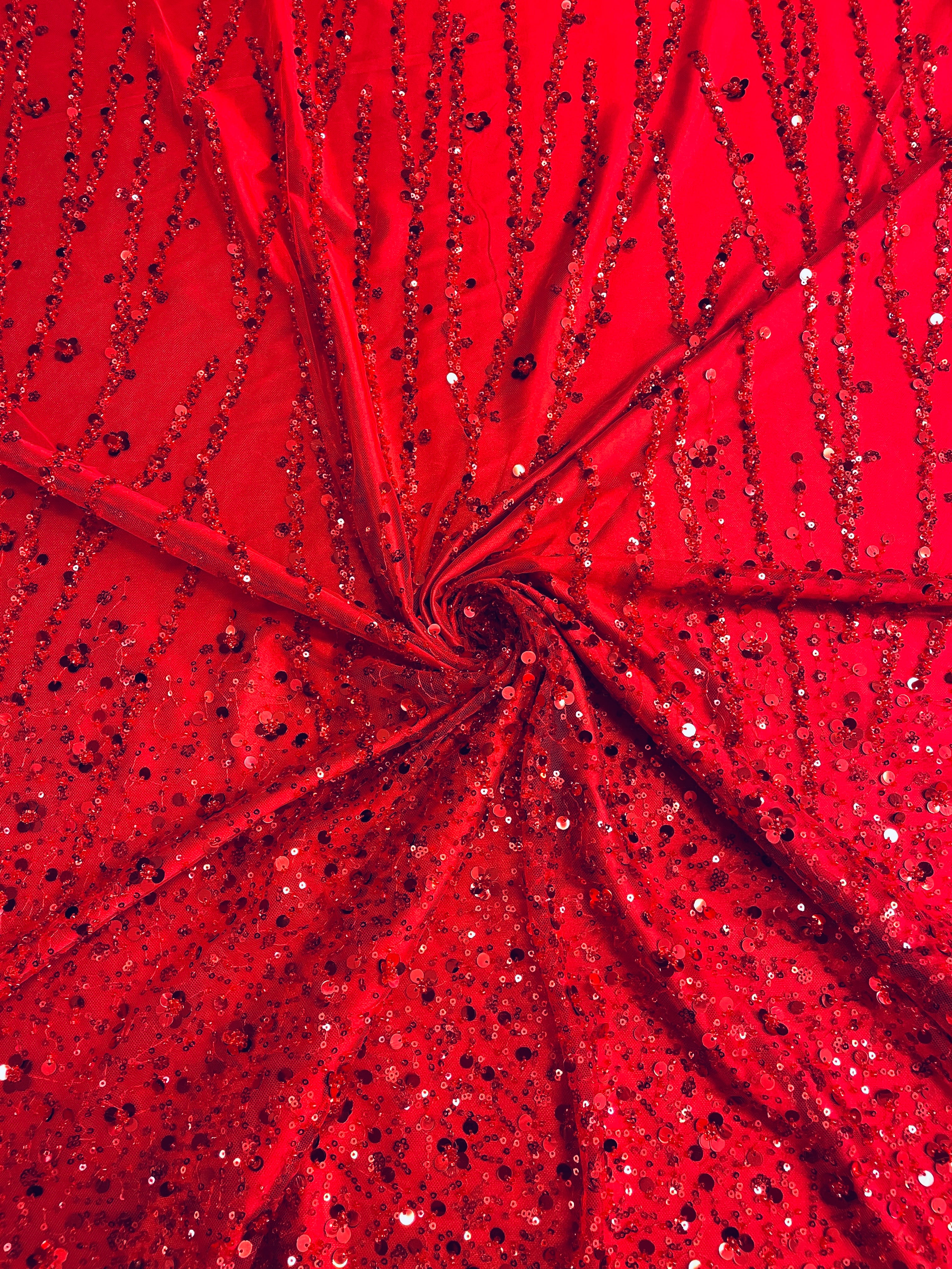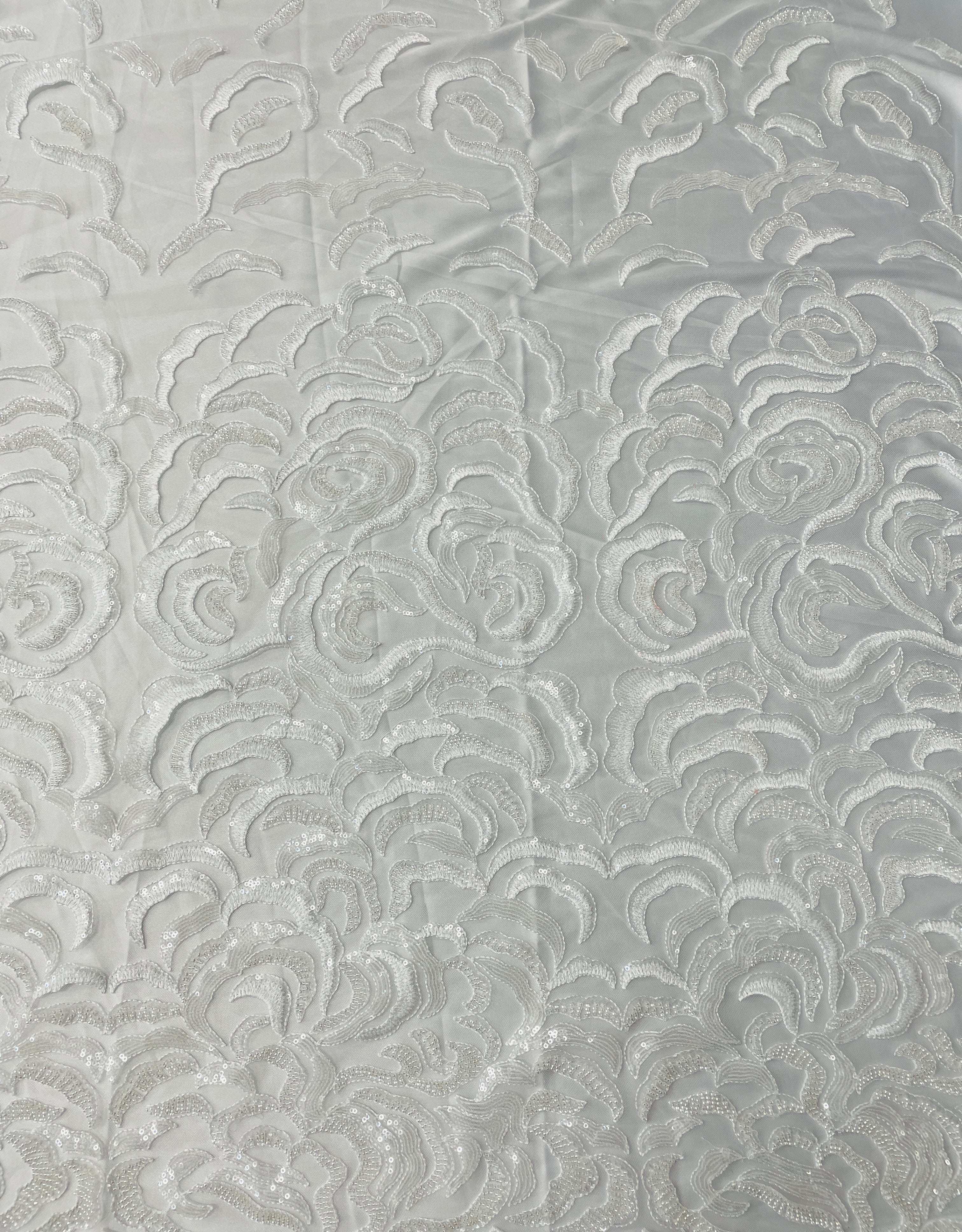 Firecracker Holographic Sequin Appliques on Nude Illusion mesh- 2 way stretch and 60" wide