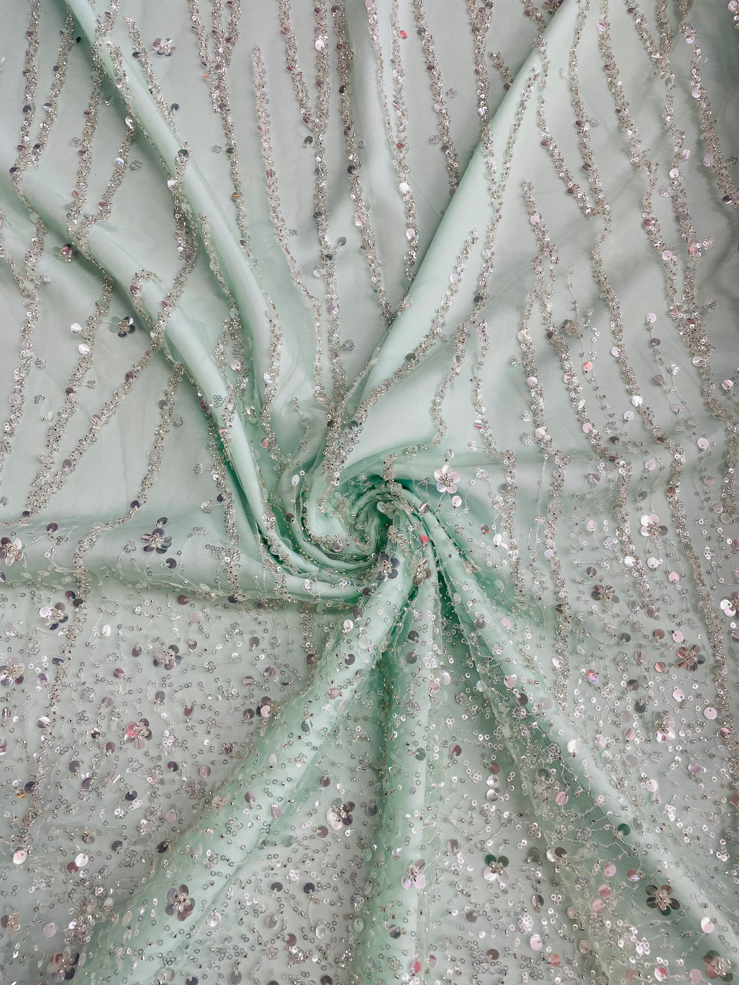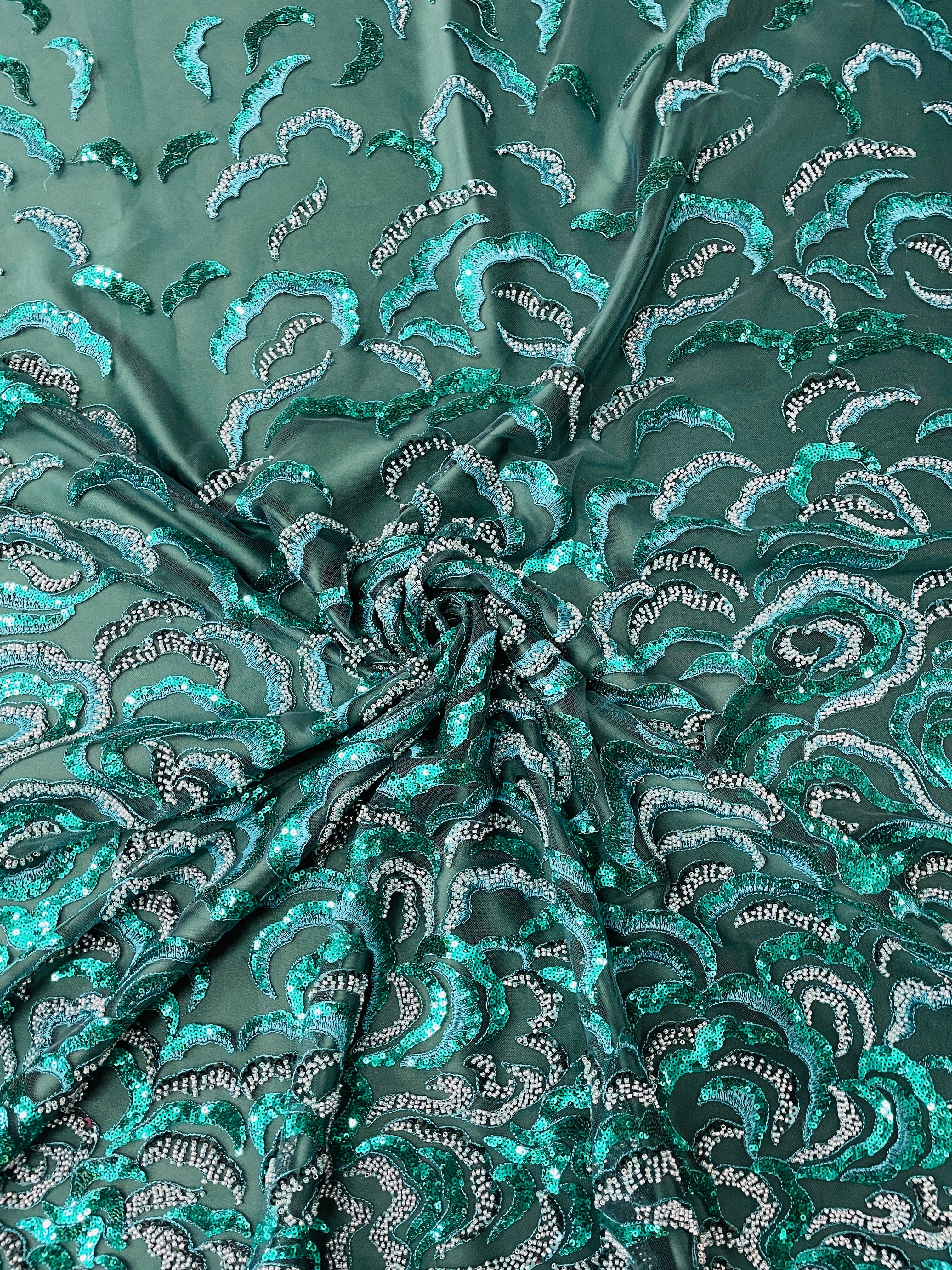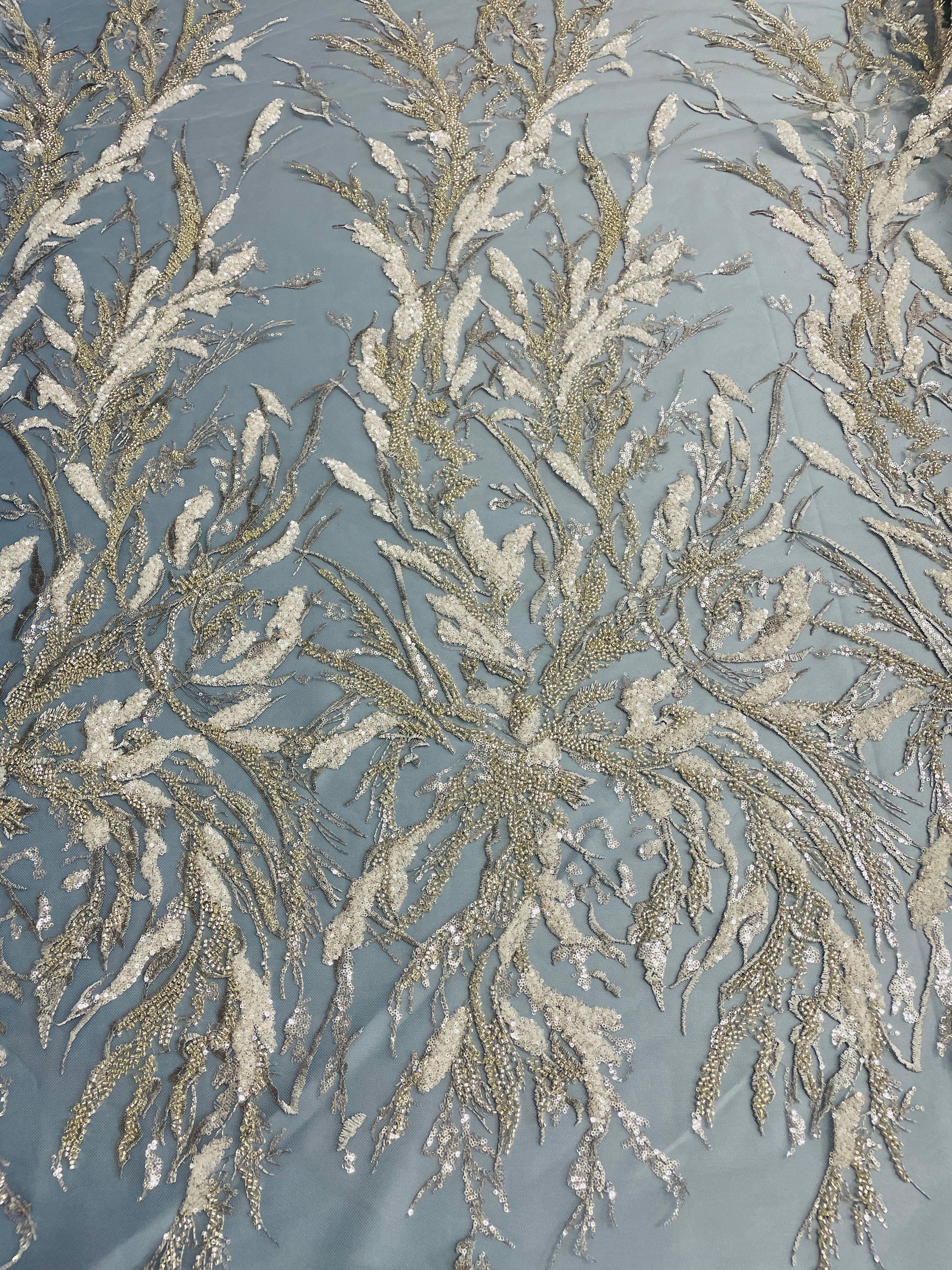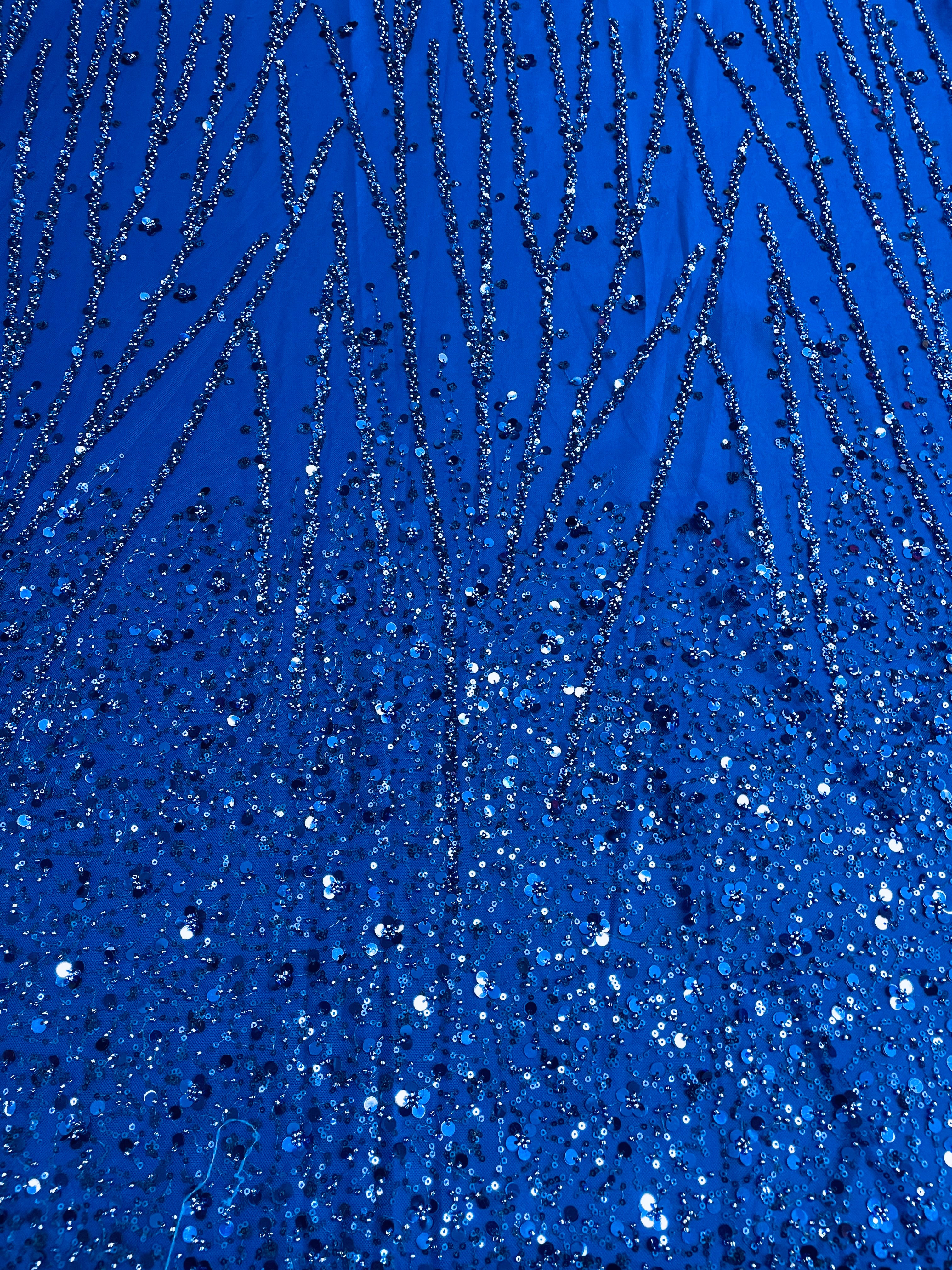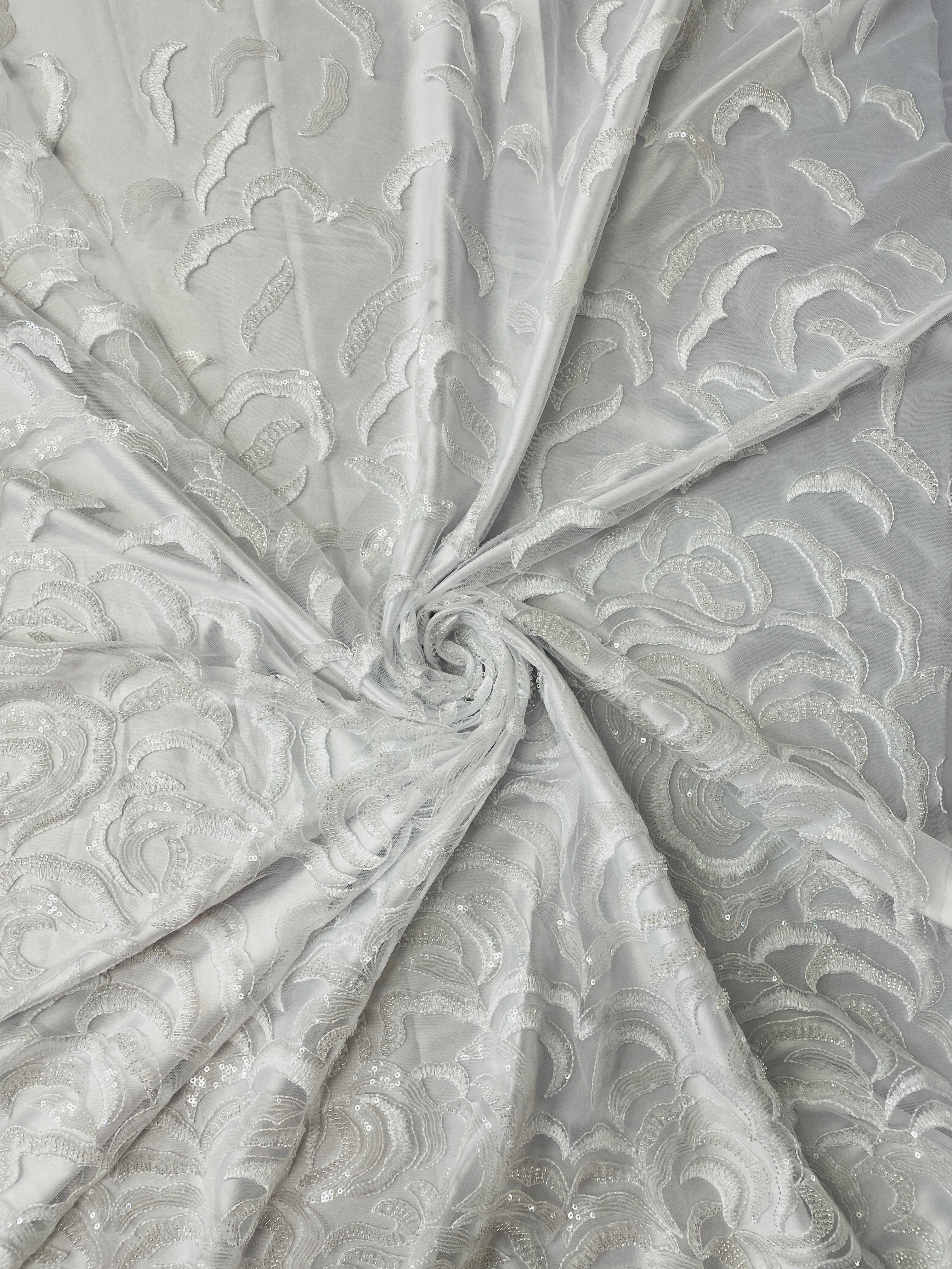 Firecracker Holographic Sequin Appliques on Nude Illusion mesh- 2 way stretch and 60" wide